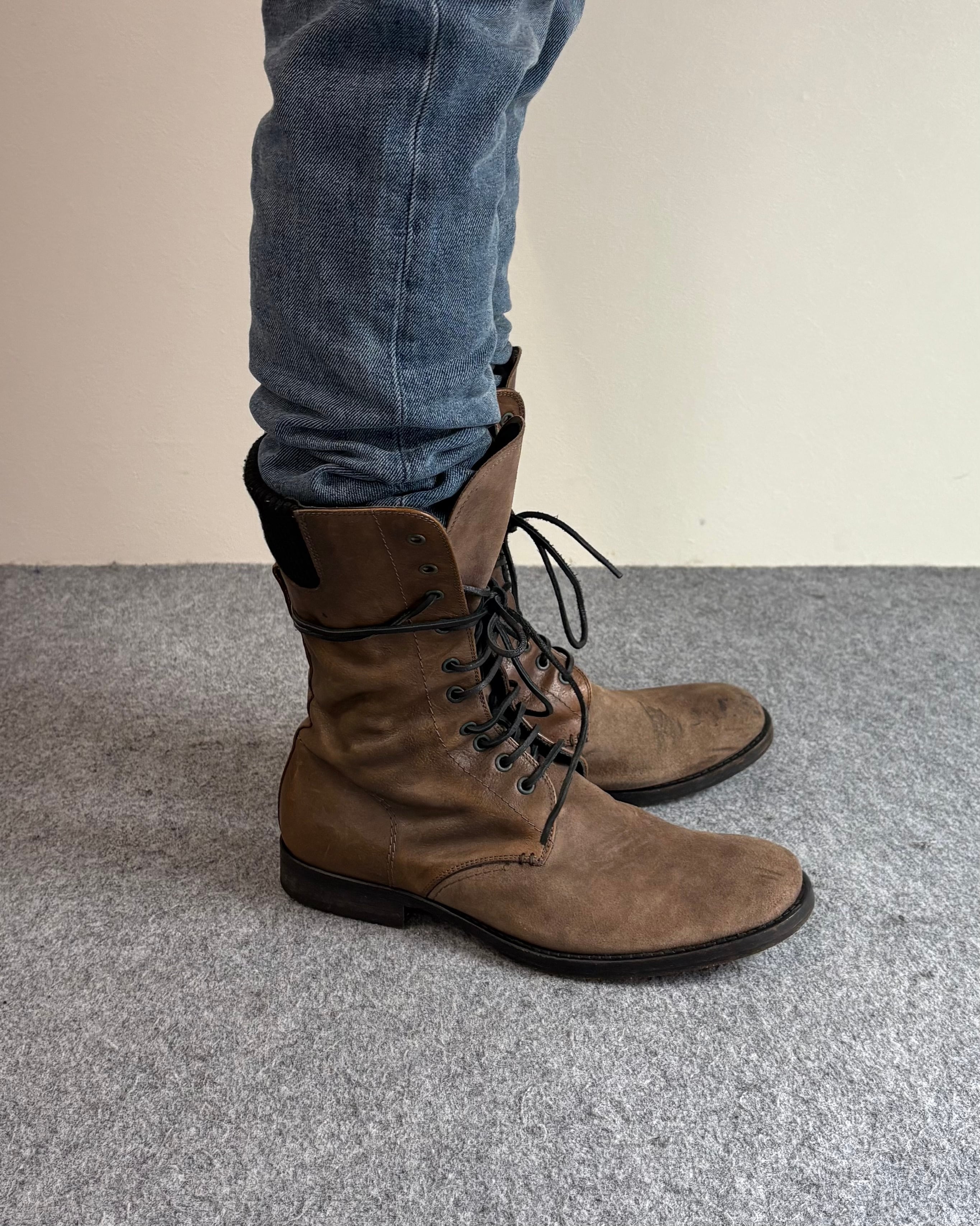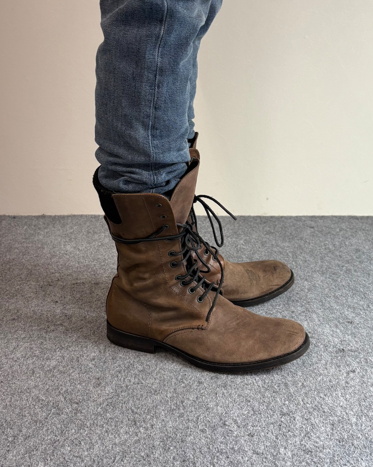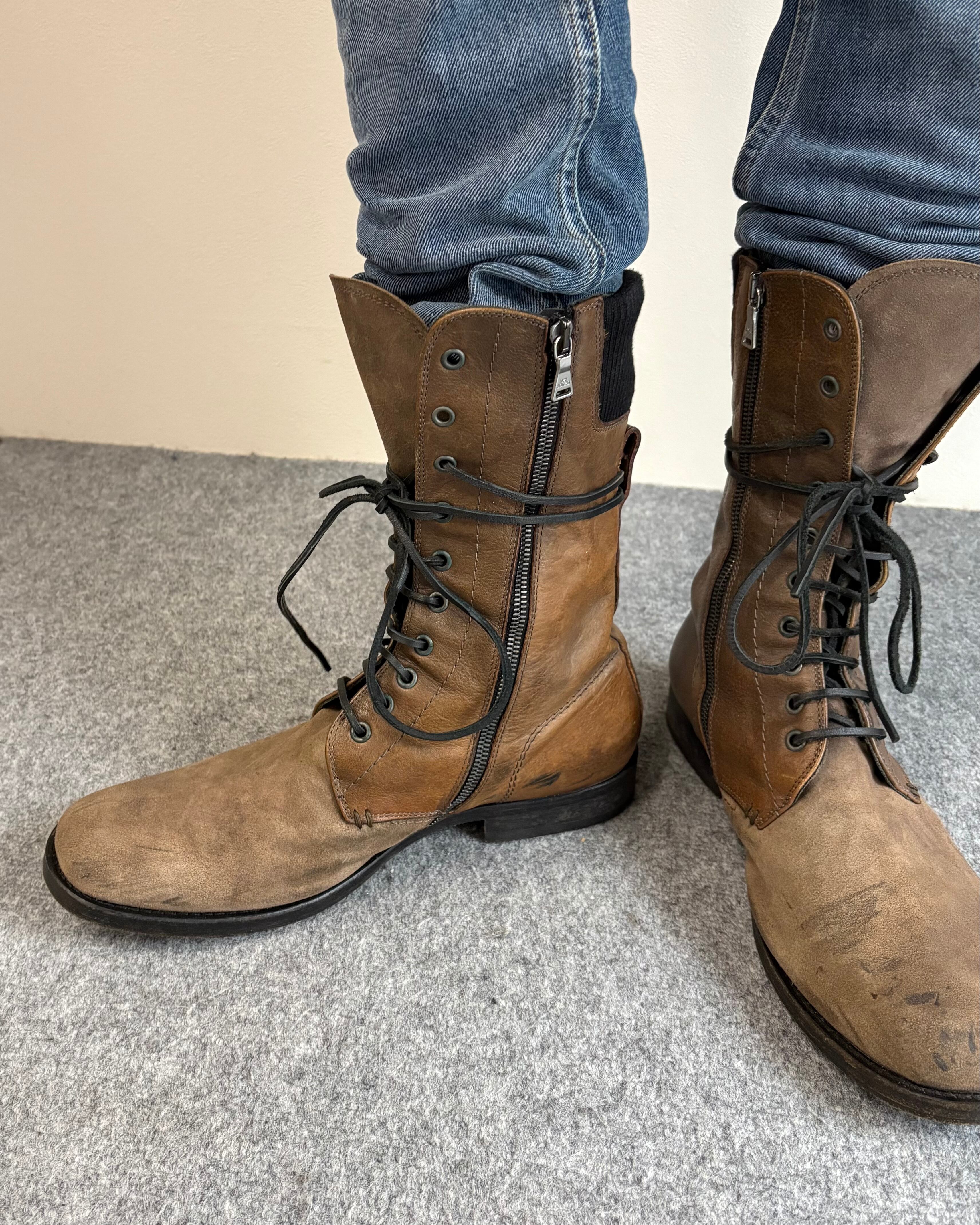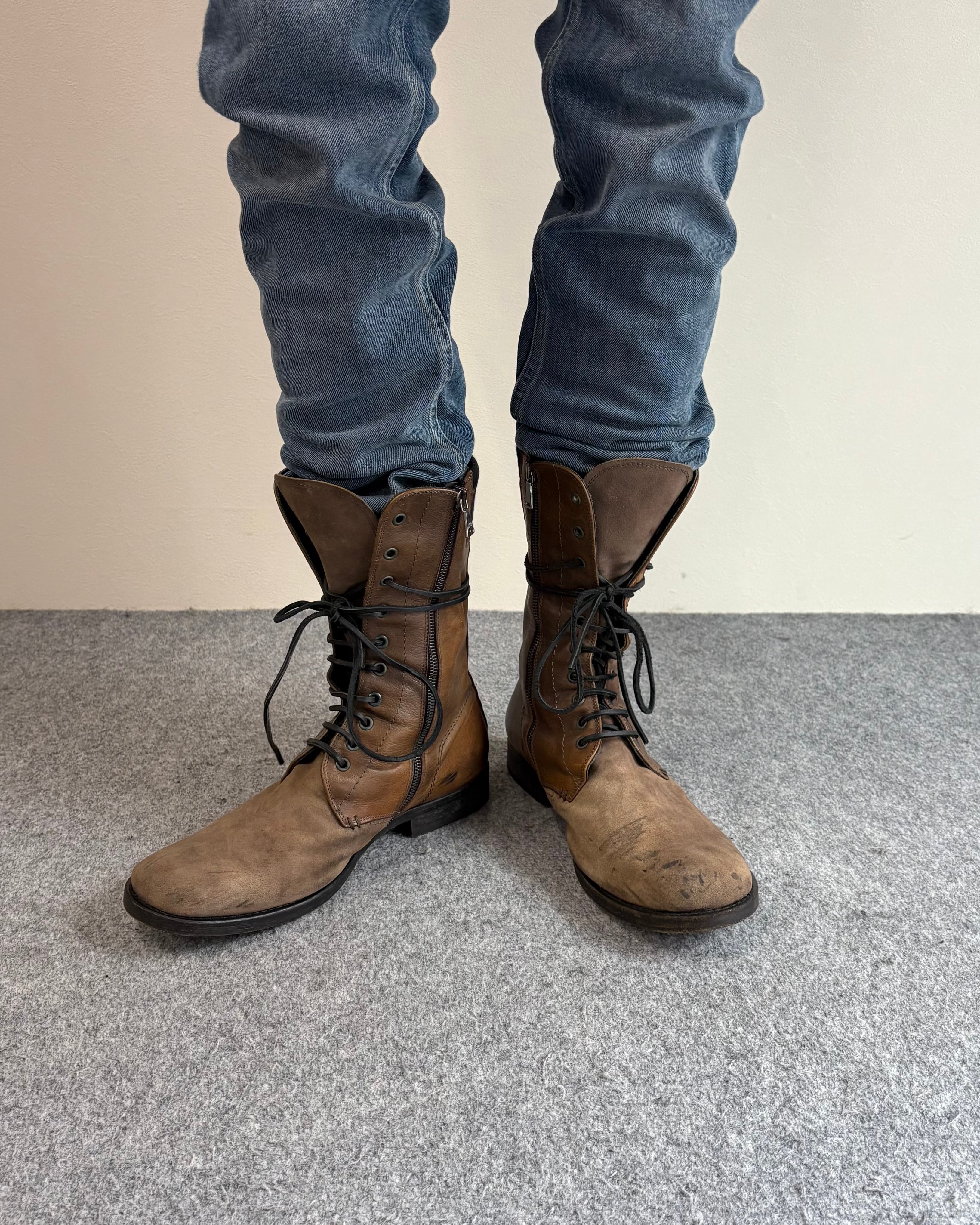 サイドジップ付きで、簡易的に脱ぎ履きできる利便性を兼ね備えたスウェード調のレザーブーツ