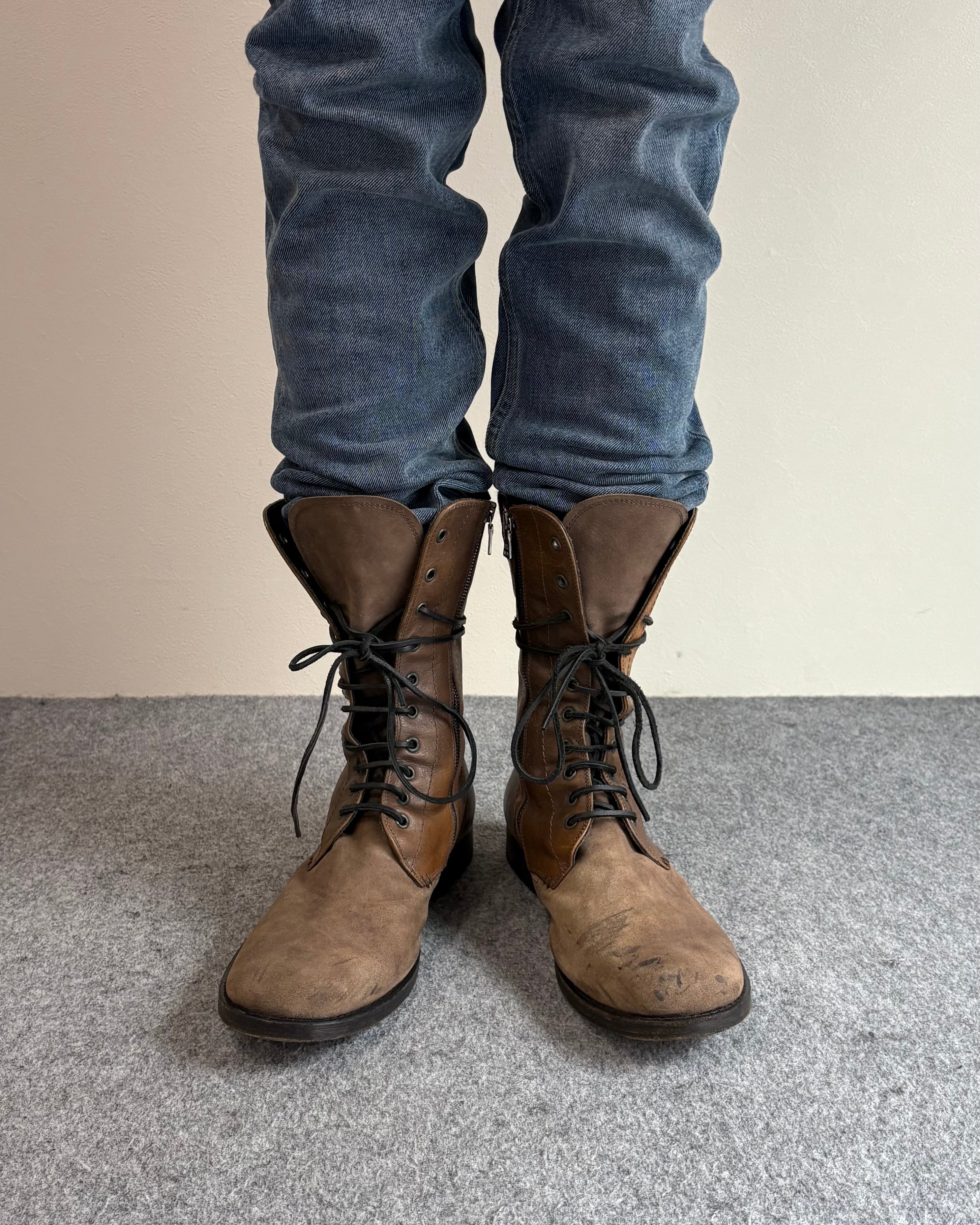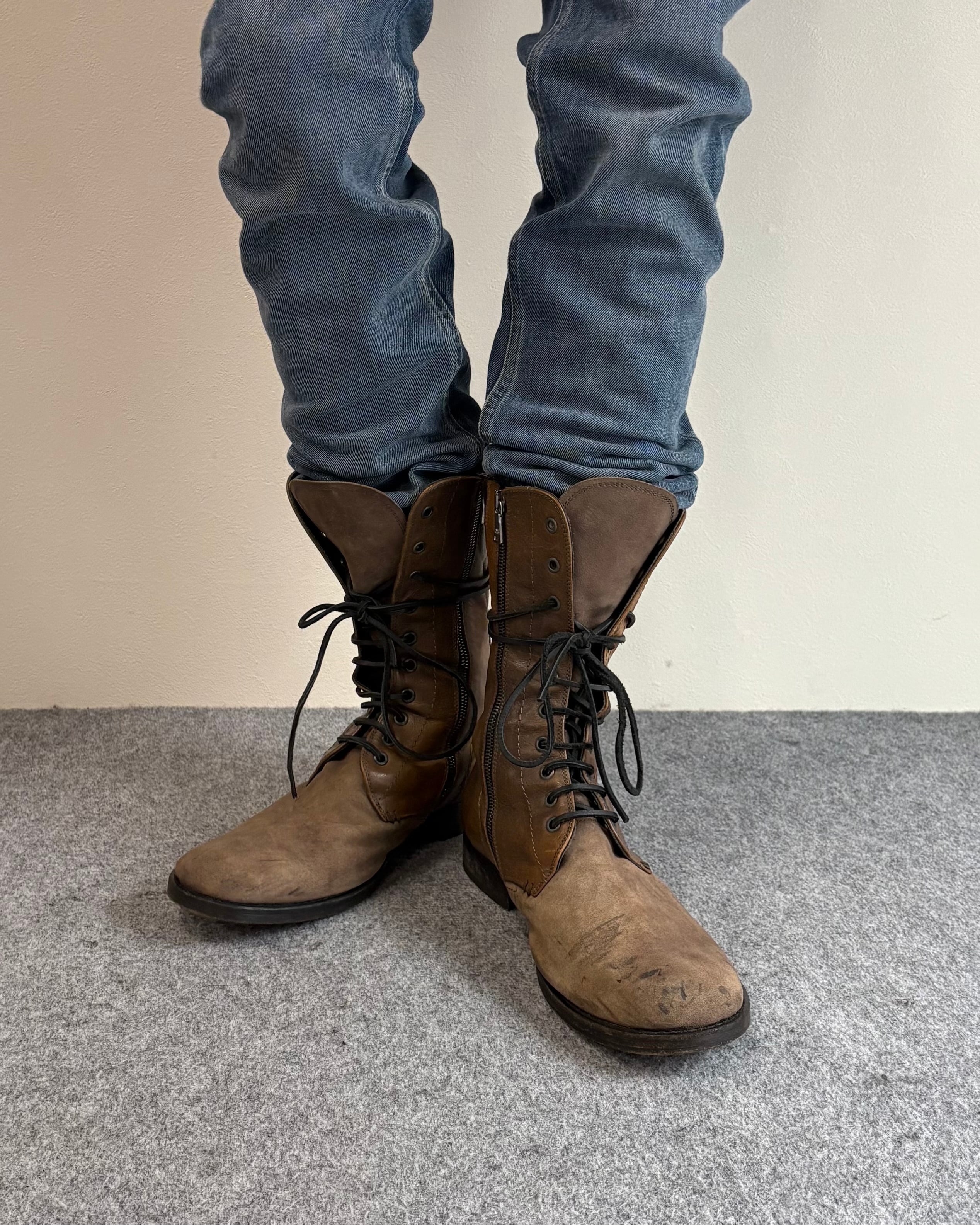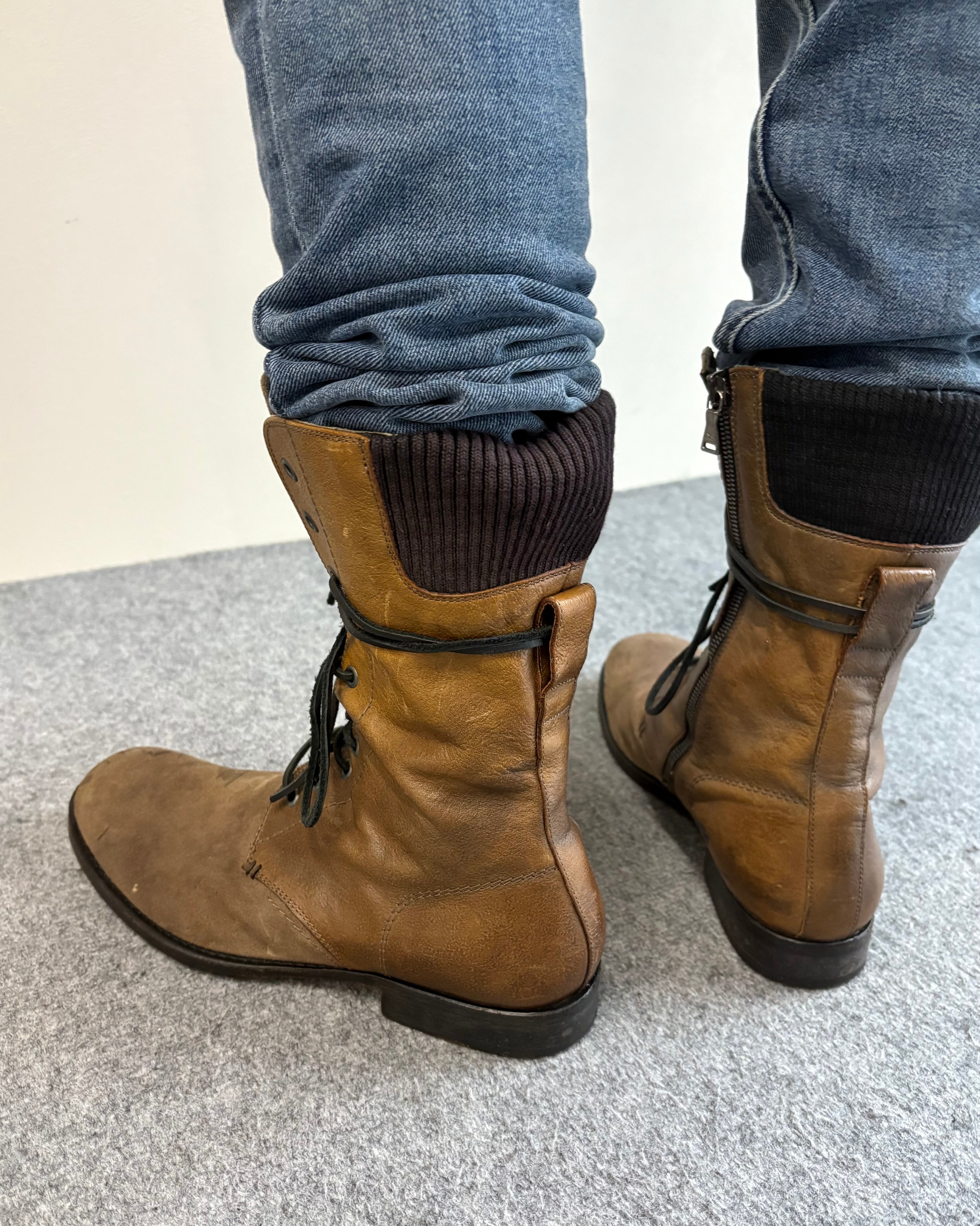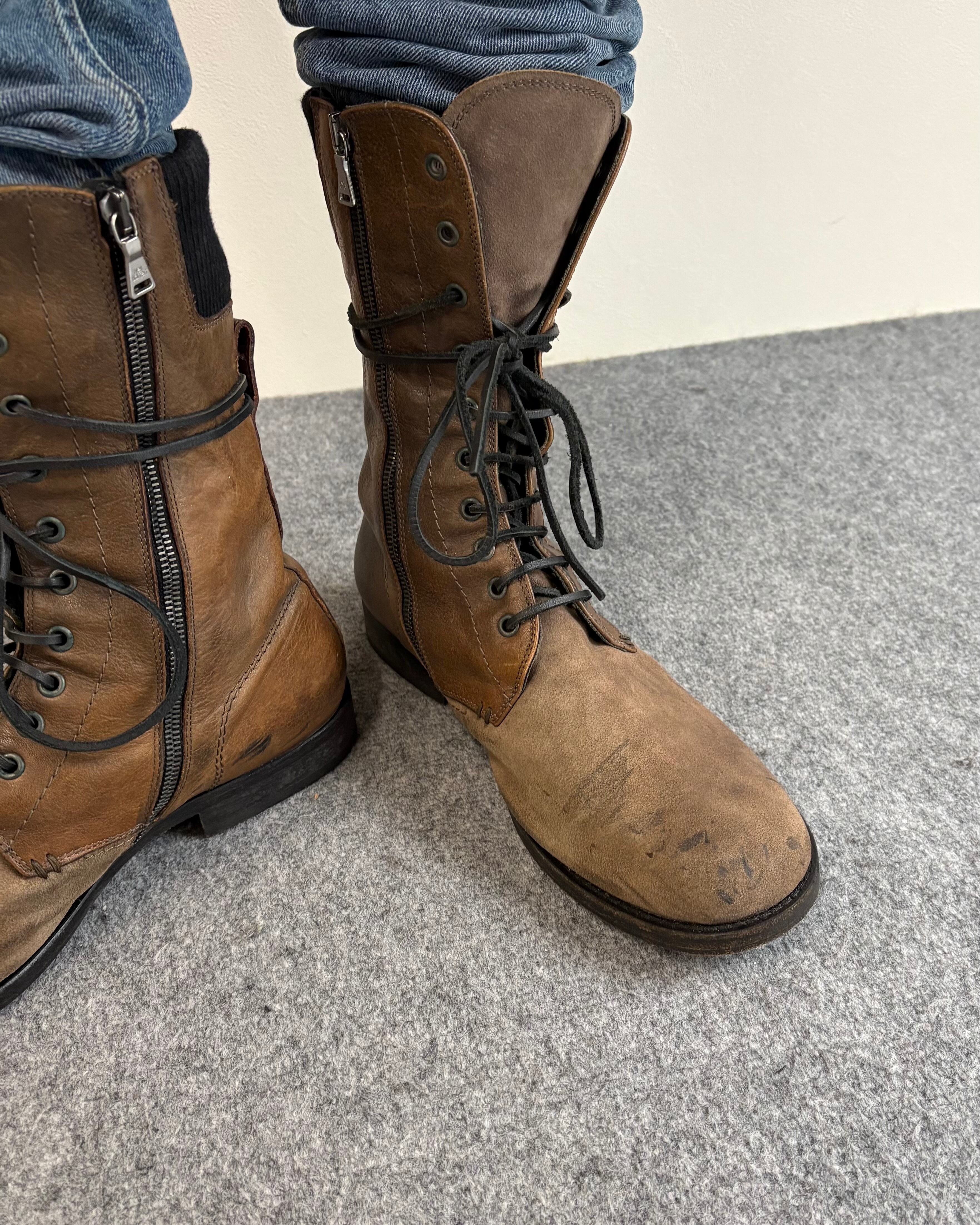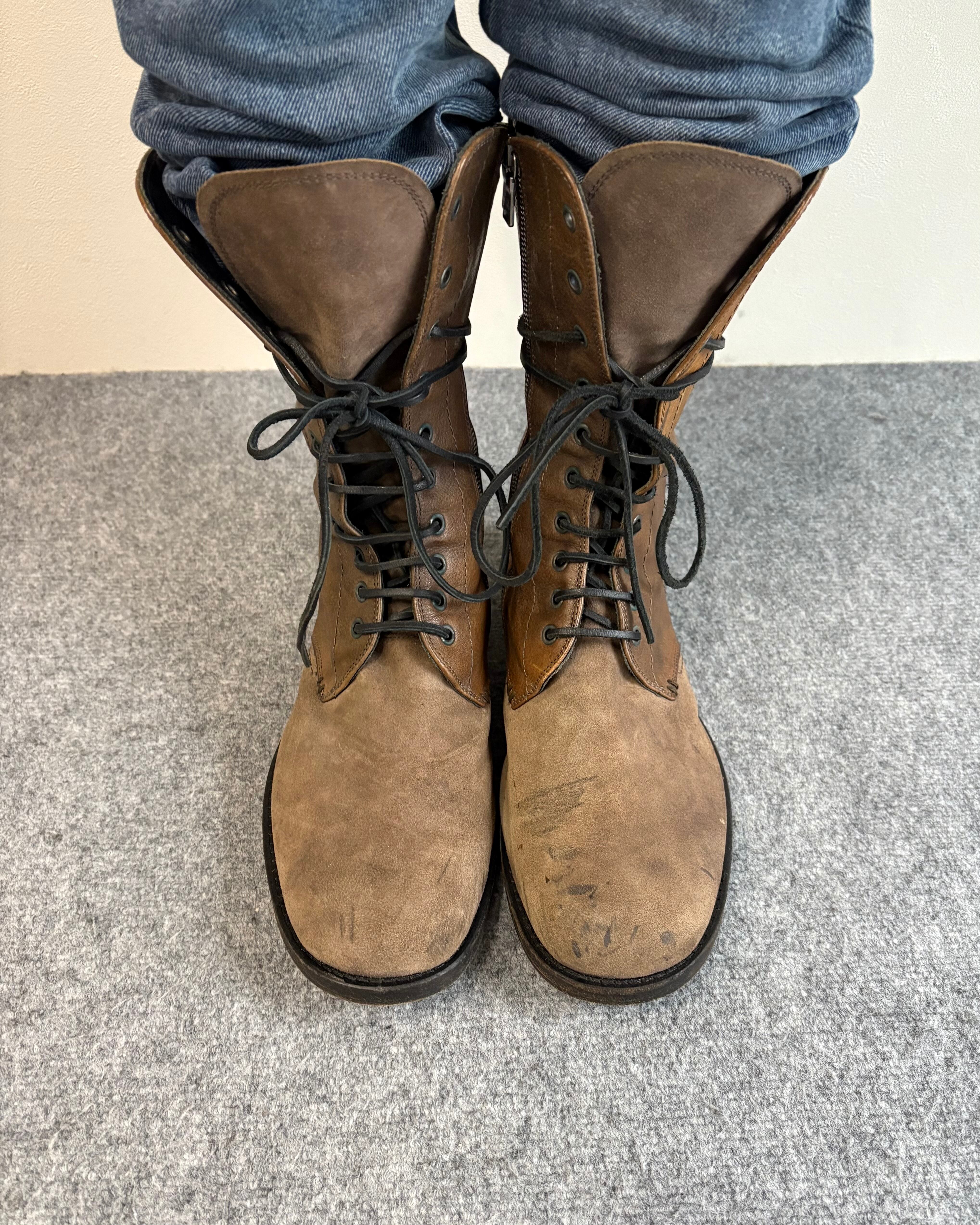 サイドジップ付きで、簡易的に脱ぎ履きできる利便性を兼ね備えたスウェード調のレザーブーツ