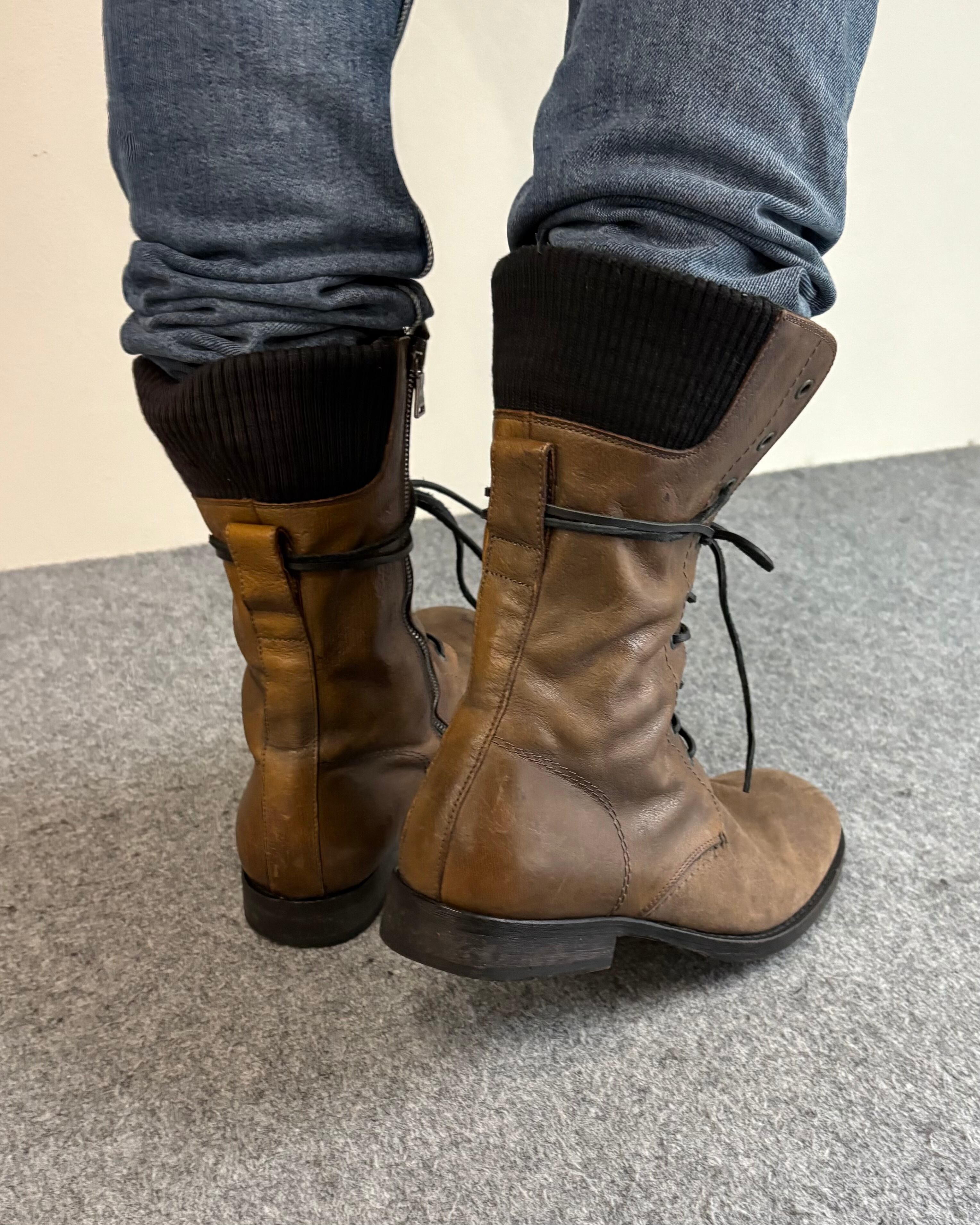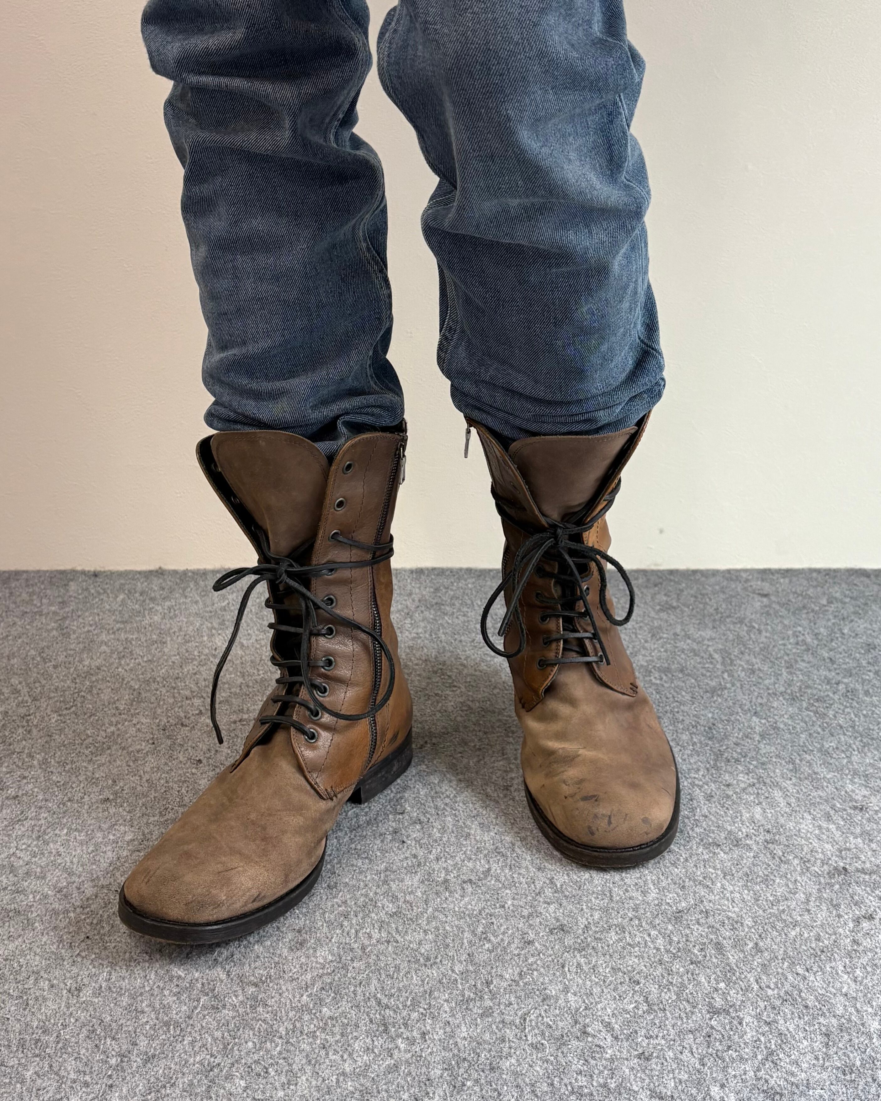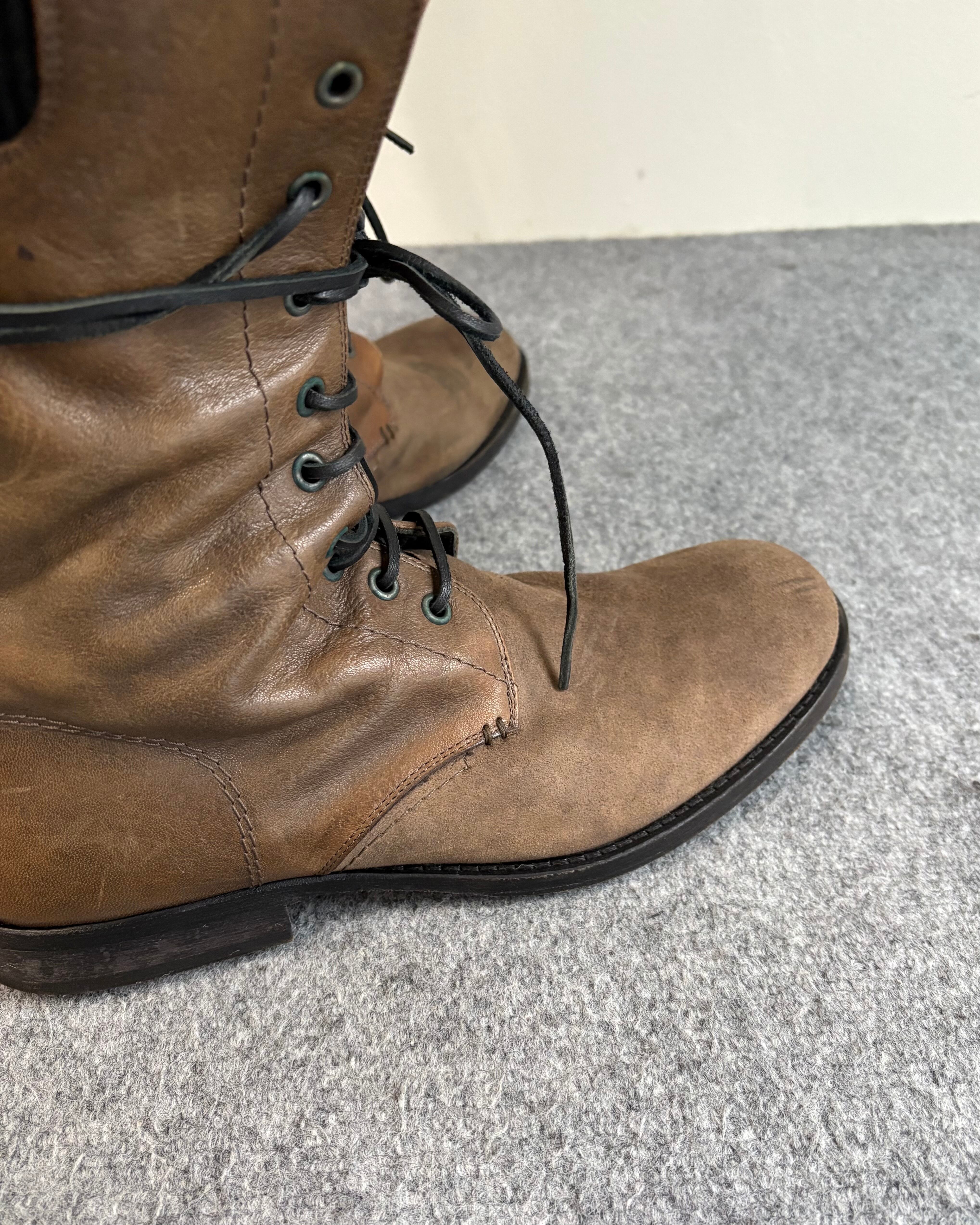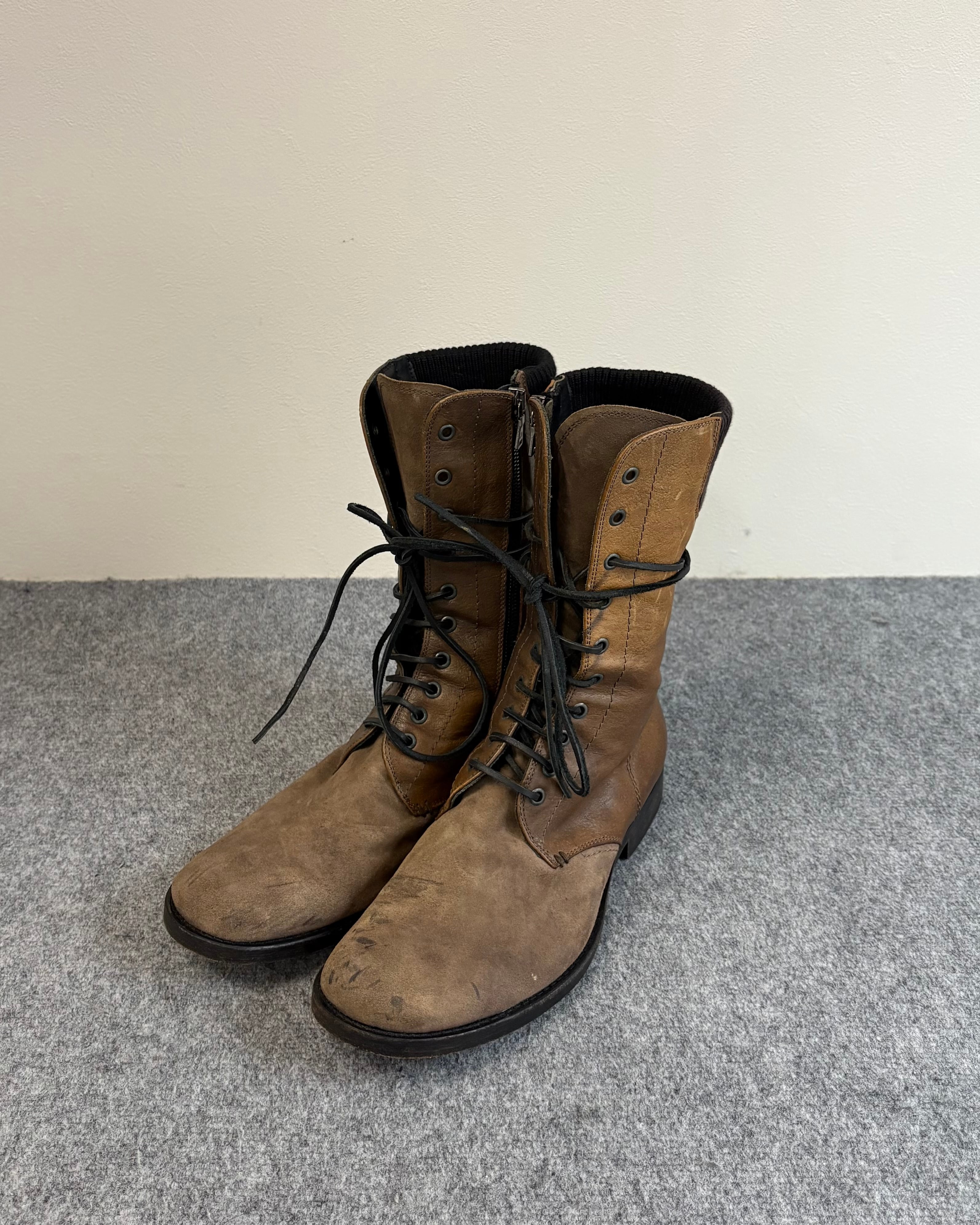サイドジップ付きで、簡易的に脱ぎ履きできる利便性を兼ね備えたスウェード調のレザーブーツ