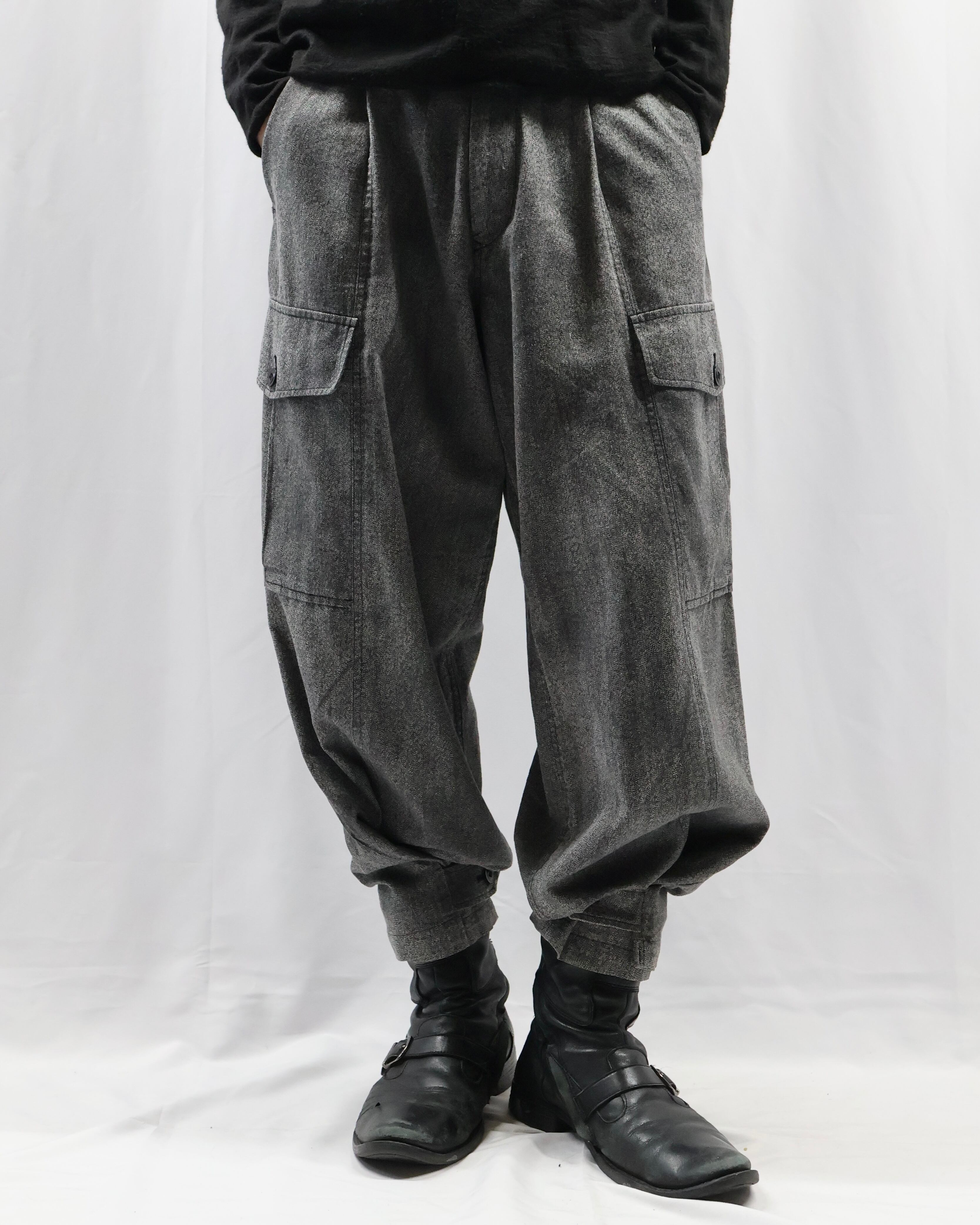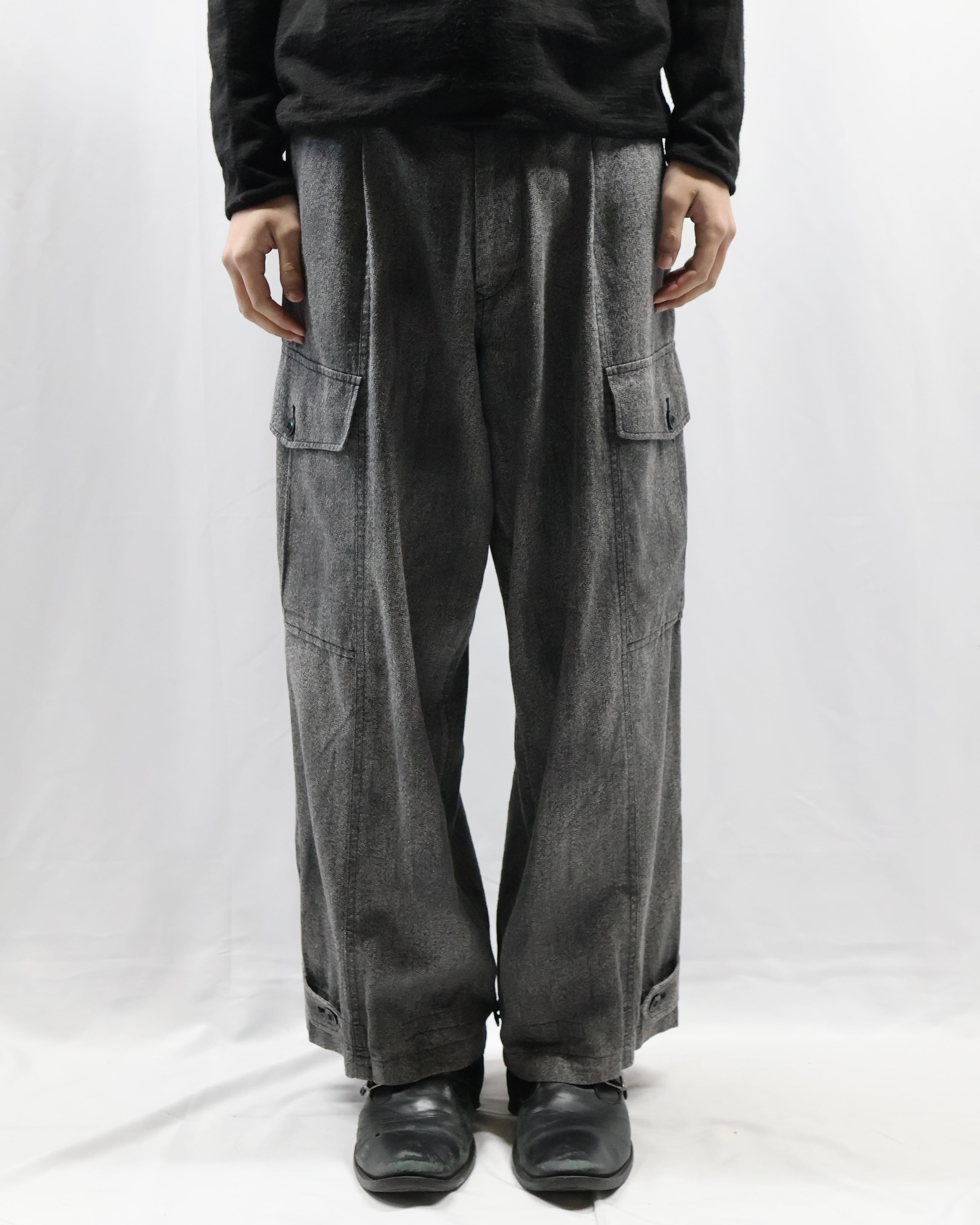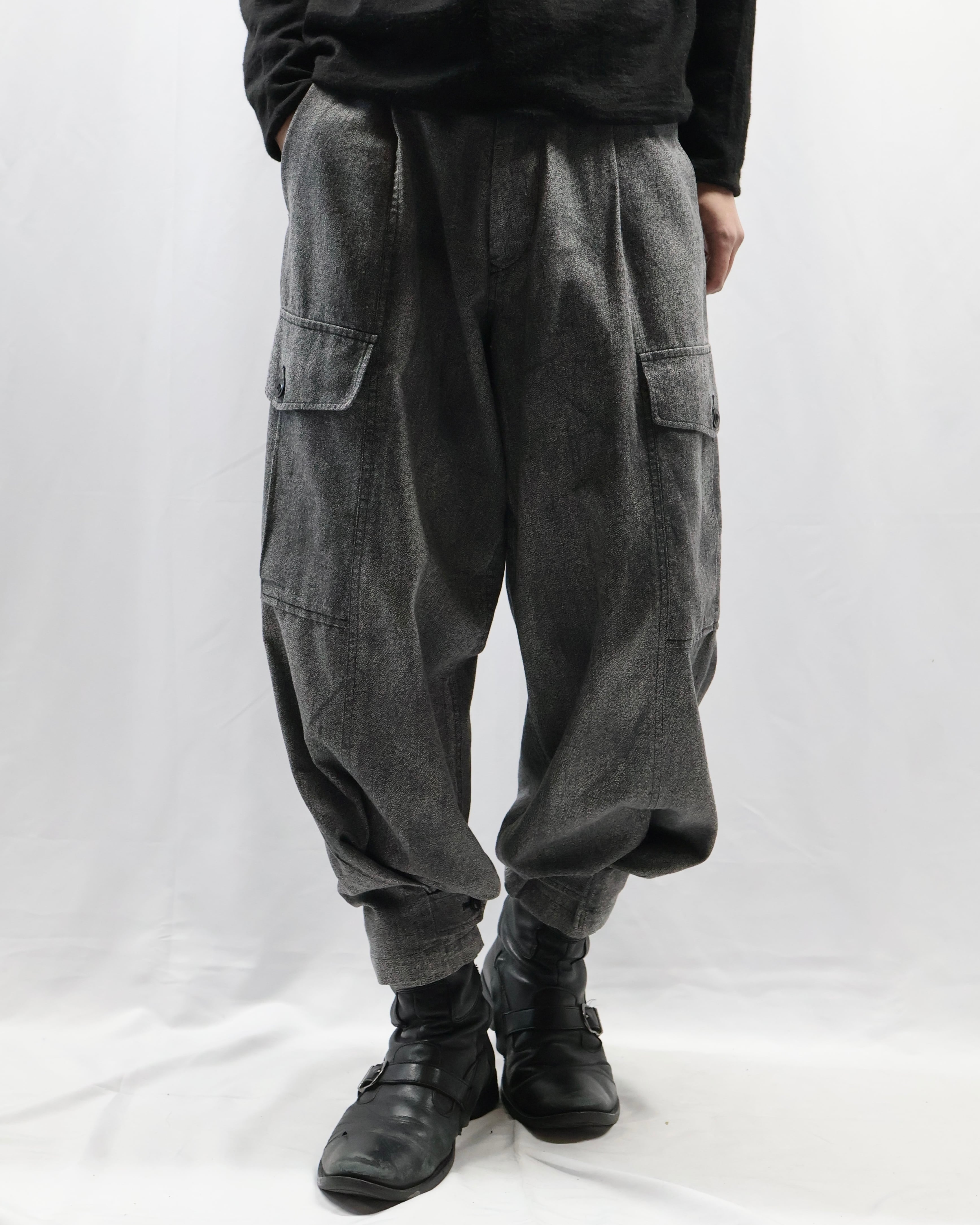 無骨な風合いでコーディネートを格上げしてくれるようなパンツ。ブランドらしい、シンプルながらも存在感を放つパンツで、やりたいスタイルを100%叶えてくれる一枚です。裾のギミックも良く、コーディネートにアクセントを加えてくれ、シンプルかつ複雑な両面を併せ持つ洋服です。