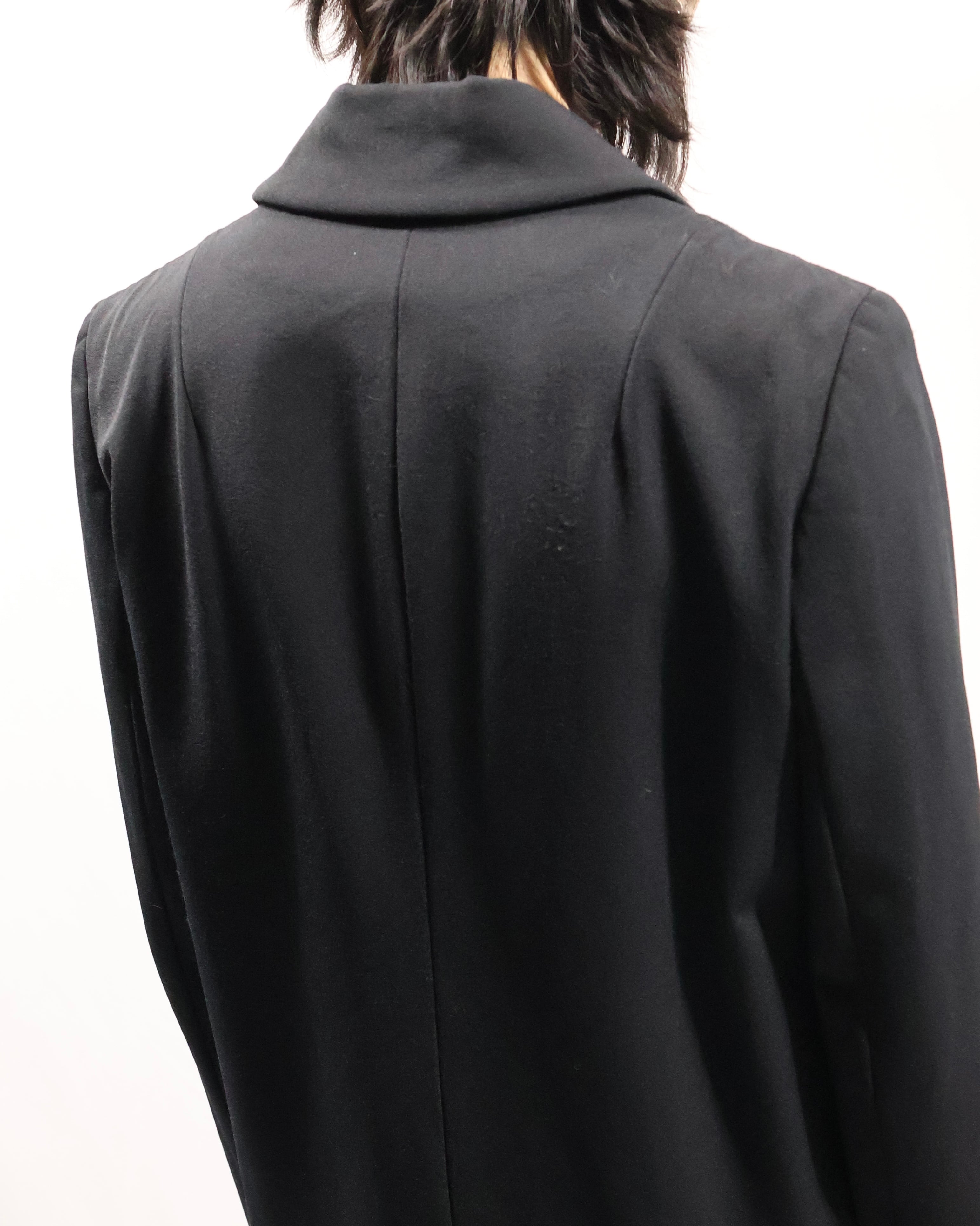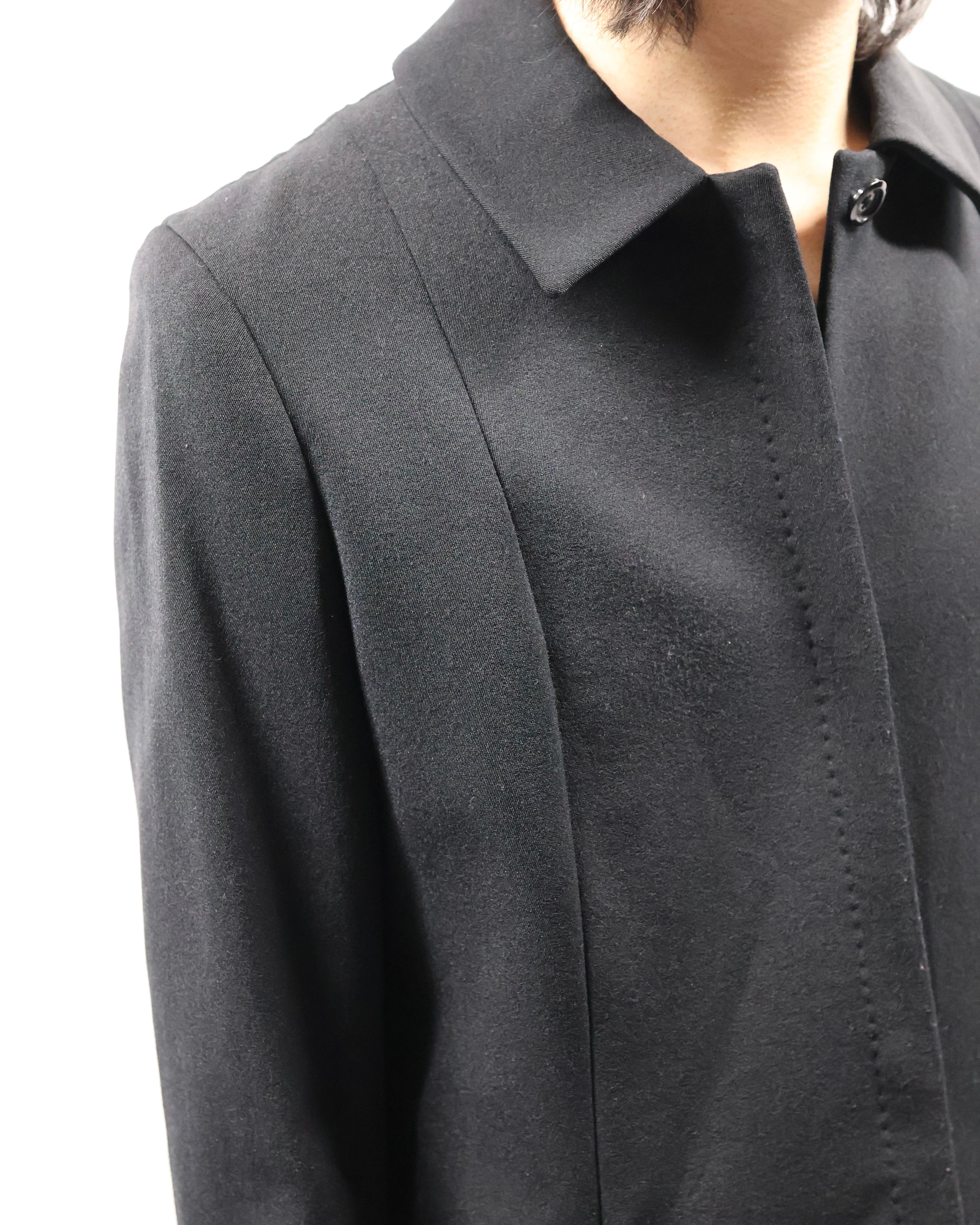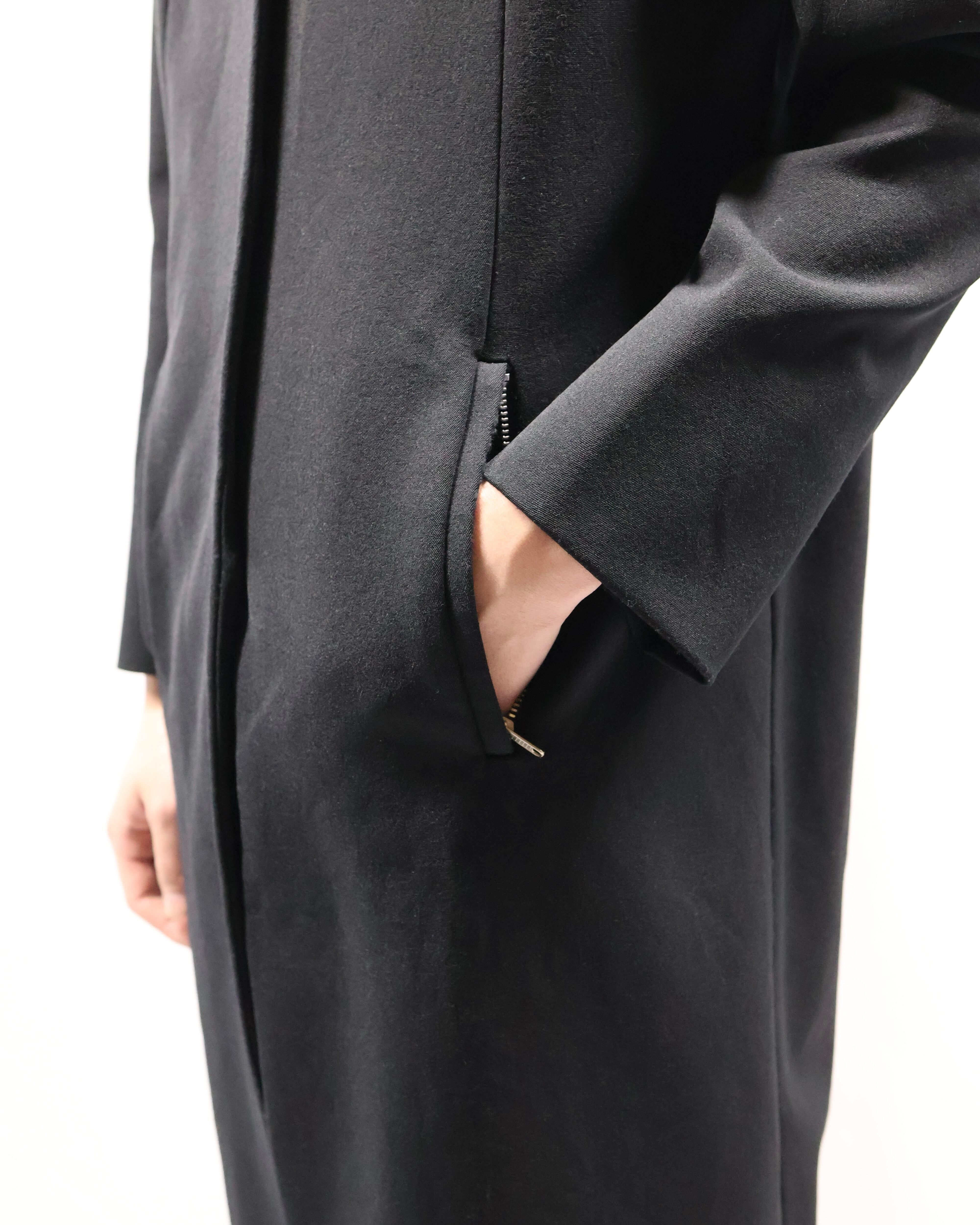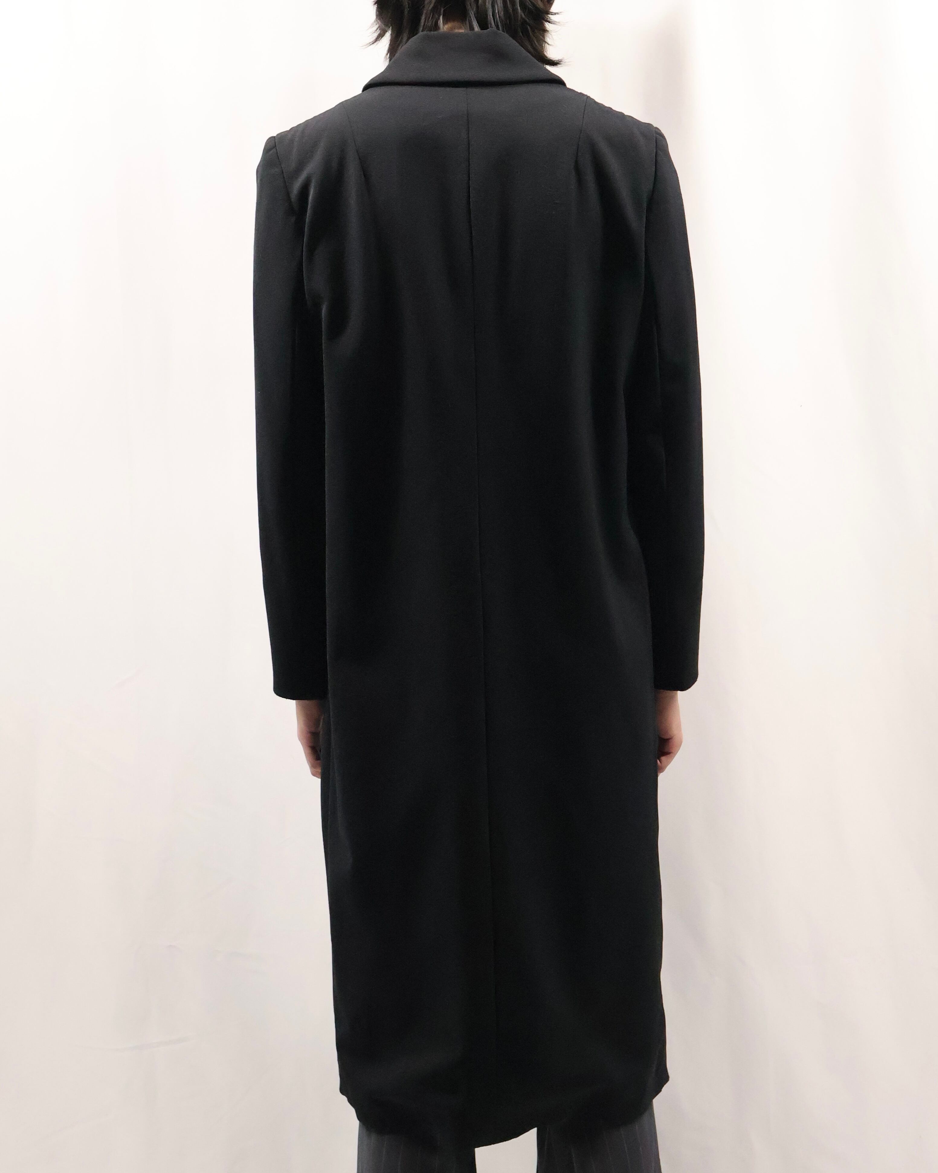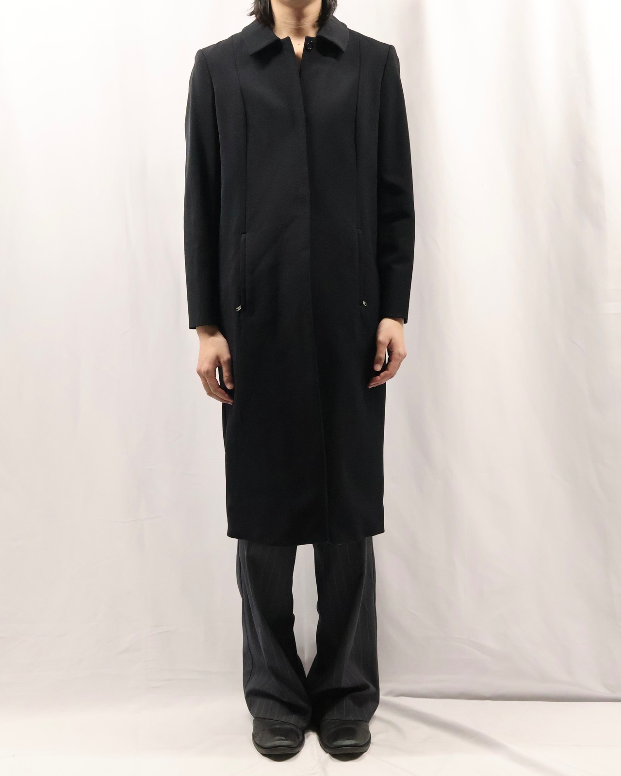 色味とシルエットがシャープなロングコート。こちらのコートの特徴はなんといってもシルエット。シェイプがしっかりと効いており、一枚の存在感は抜群です。タイトな為、ロングシャツライクな運用もgood。コートの可能性を広げてくれるアイテムです。汎用性の高いアイテムをお探しの方におすすめです。