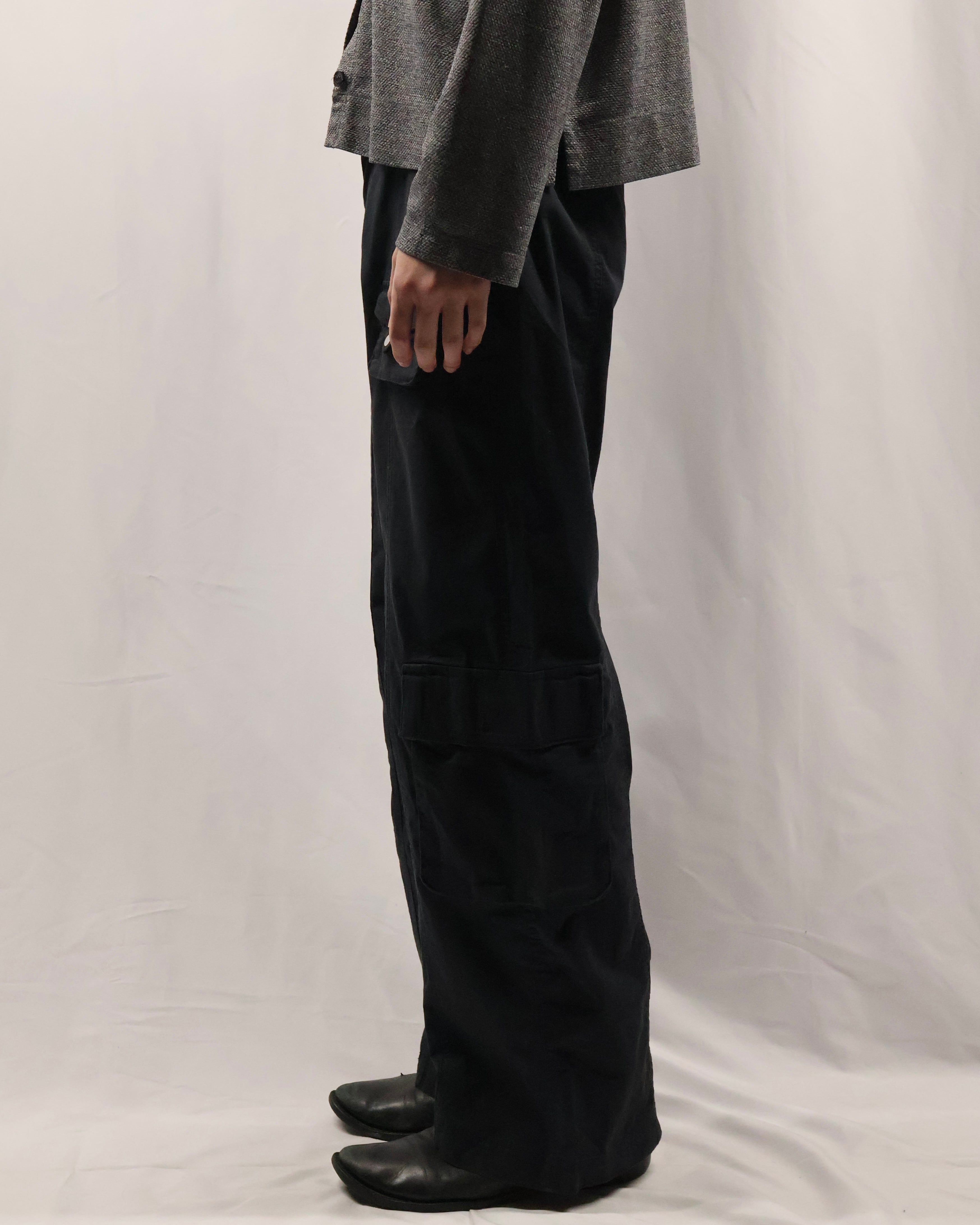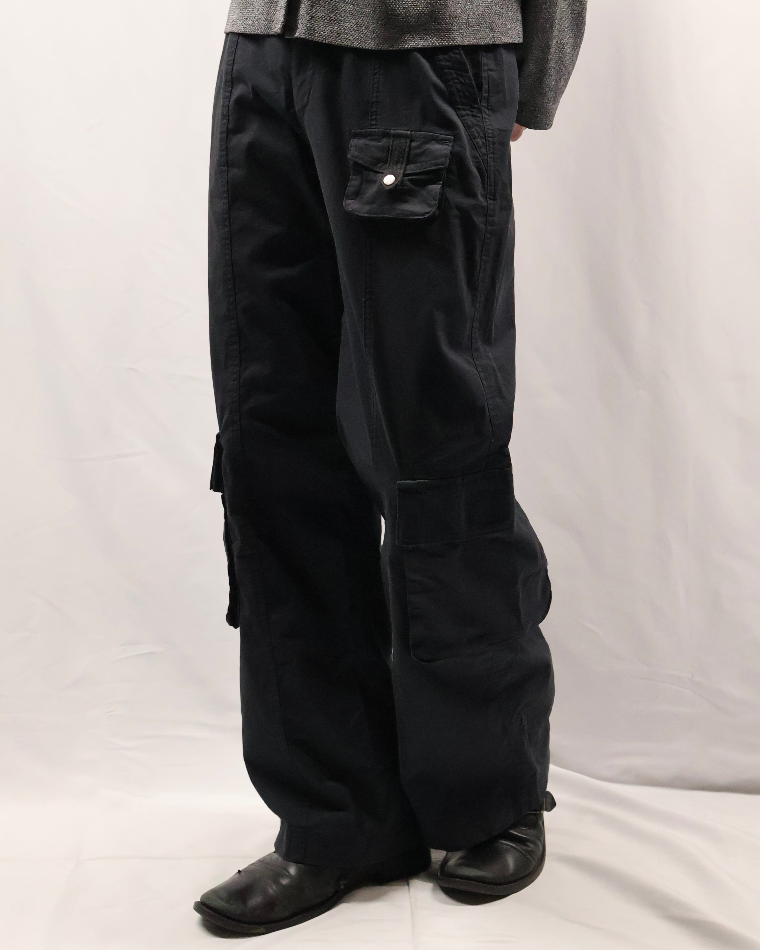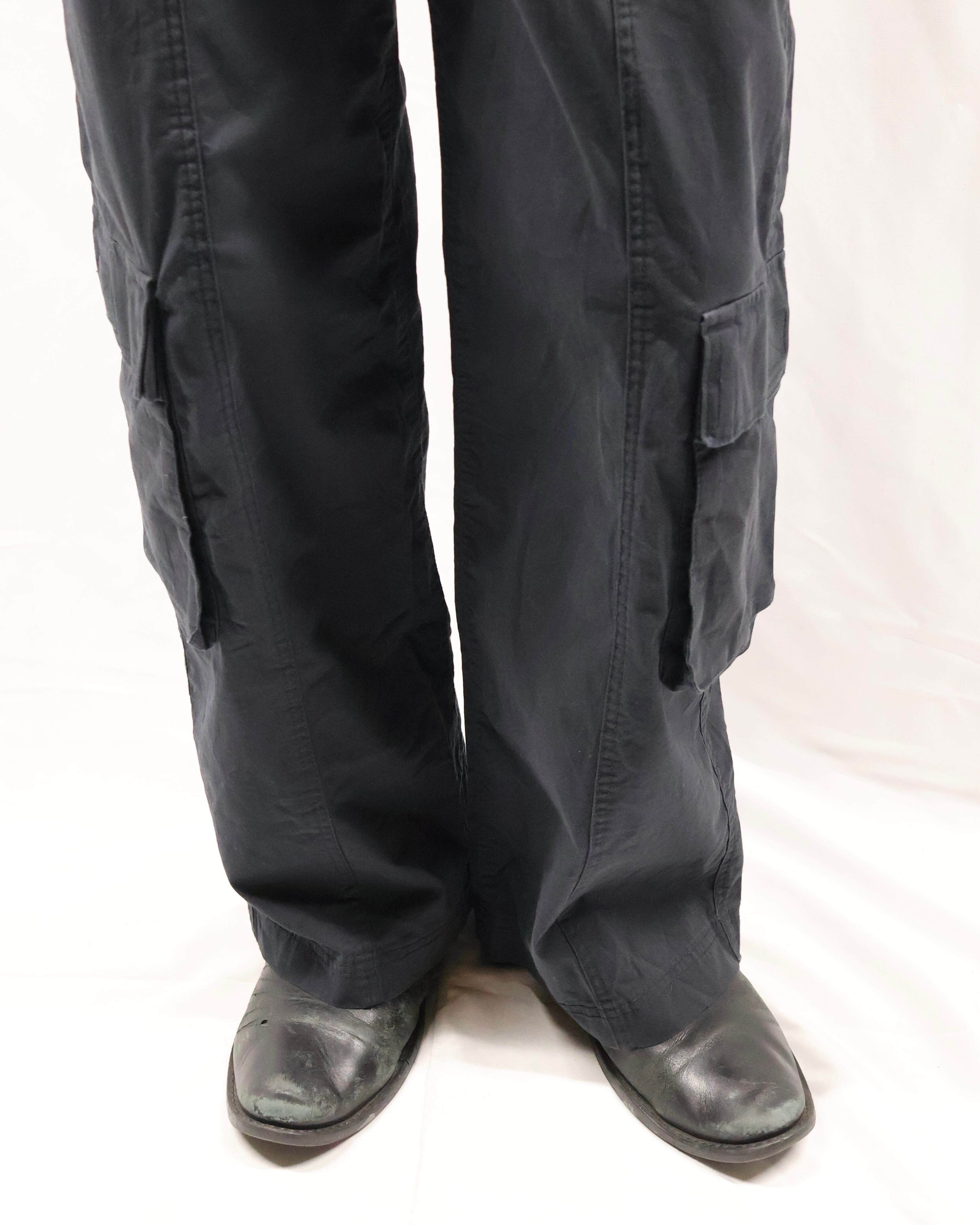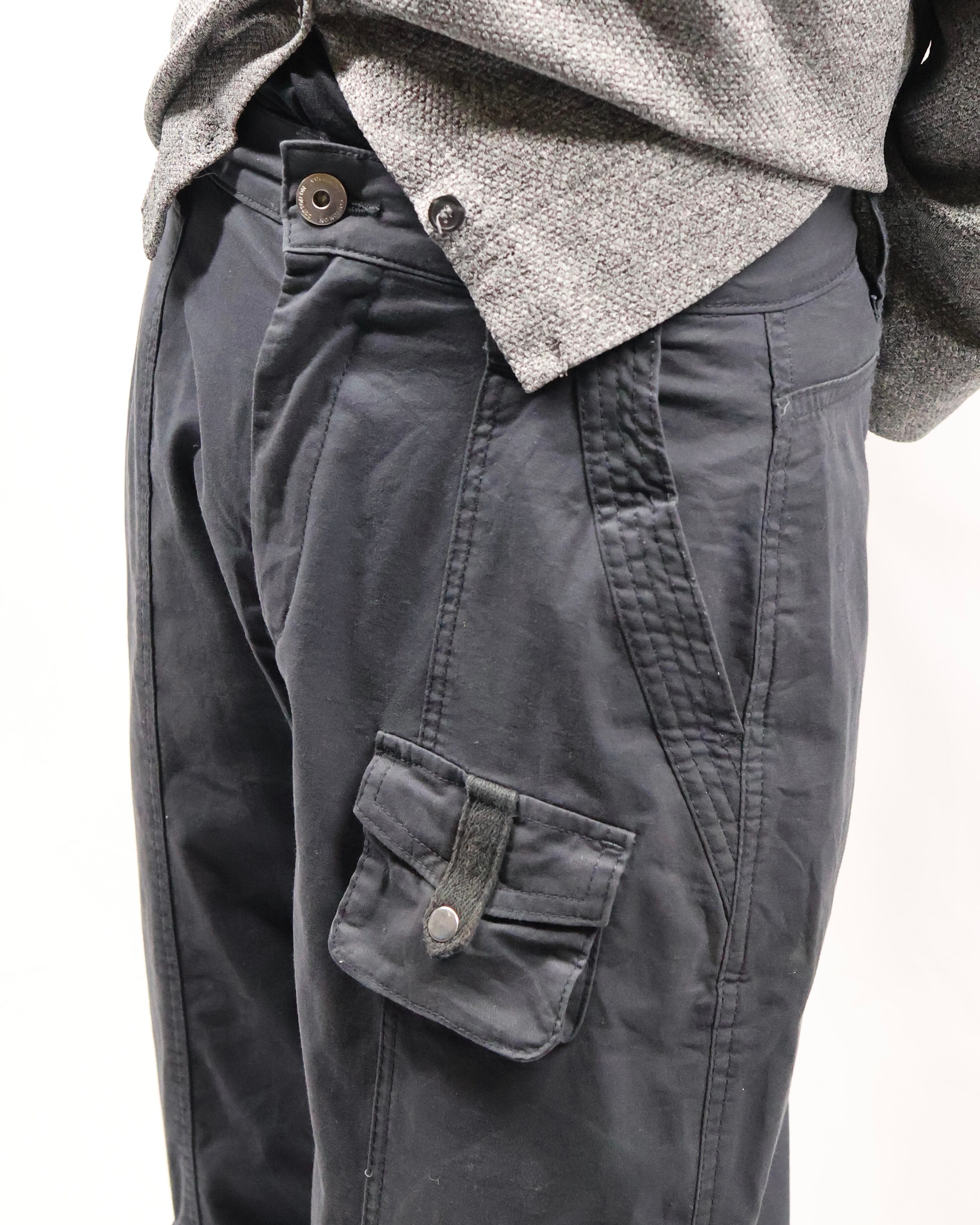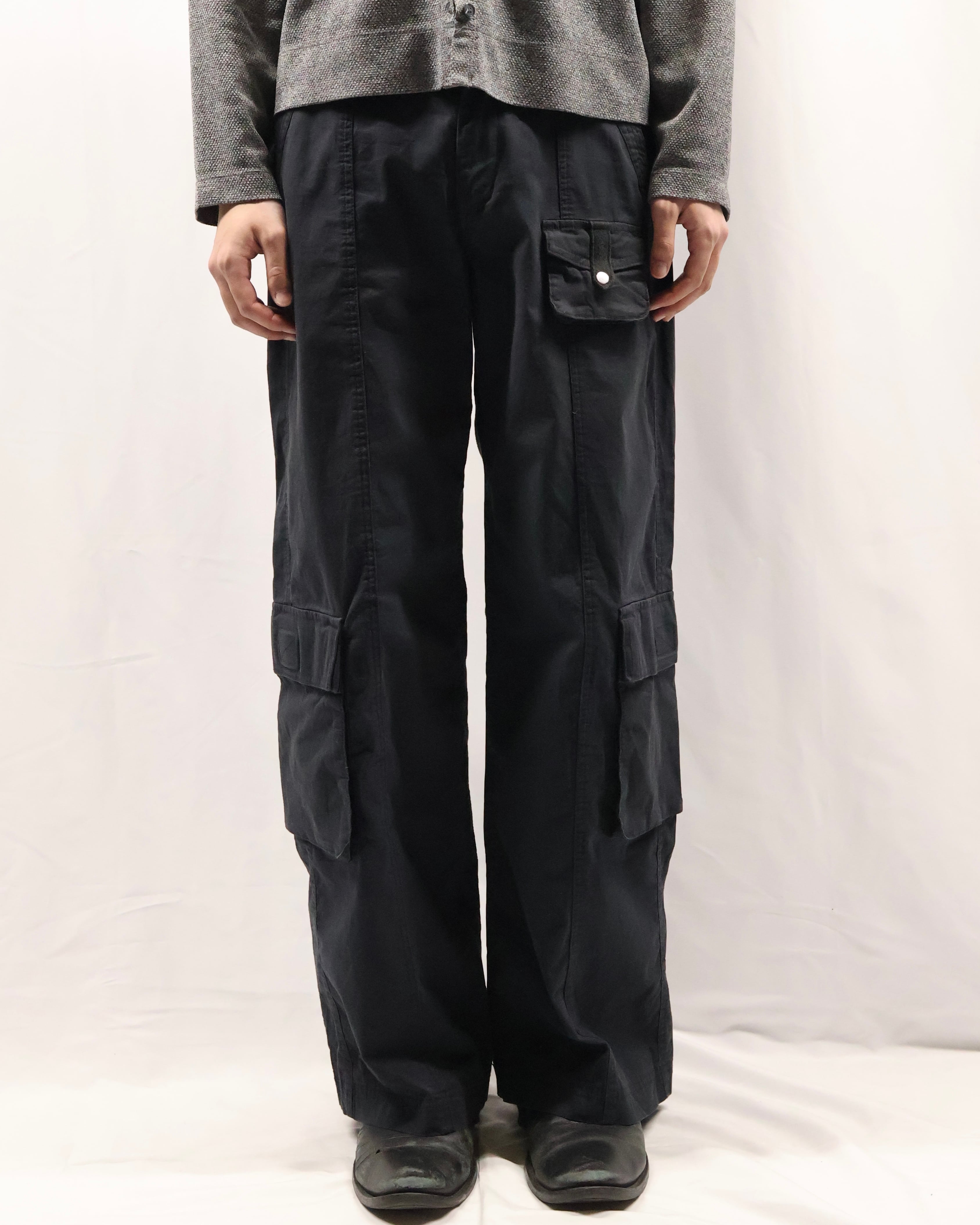 綺麗なシルエットのカーゴパンツ。カーゴでこのシルエットは探してもなかなか見つからず、野暮ったさとクリーンさを併せ持つ履けば履くほど愛着の湧く一枚。カーゴポケットの付いている位置もよく、シルエットの良さを損なわないよう、サイドに配置されており、ヴィンテージではなく、ブランドの作るカーゴだからこそのディテールです。