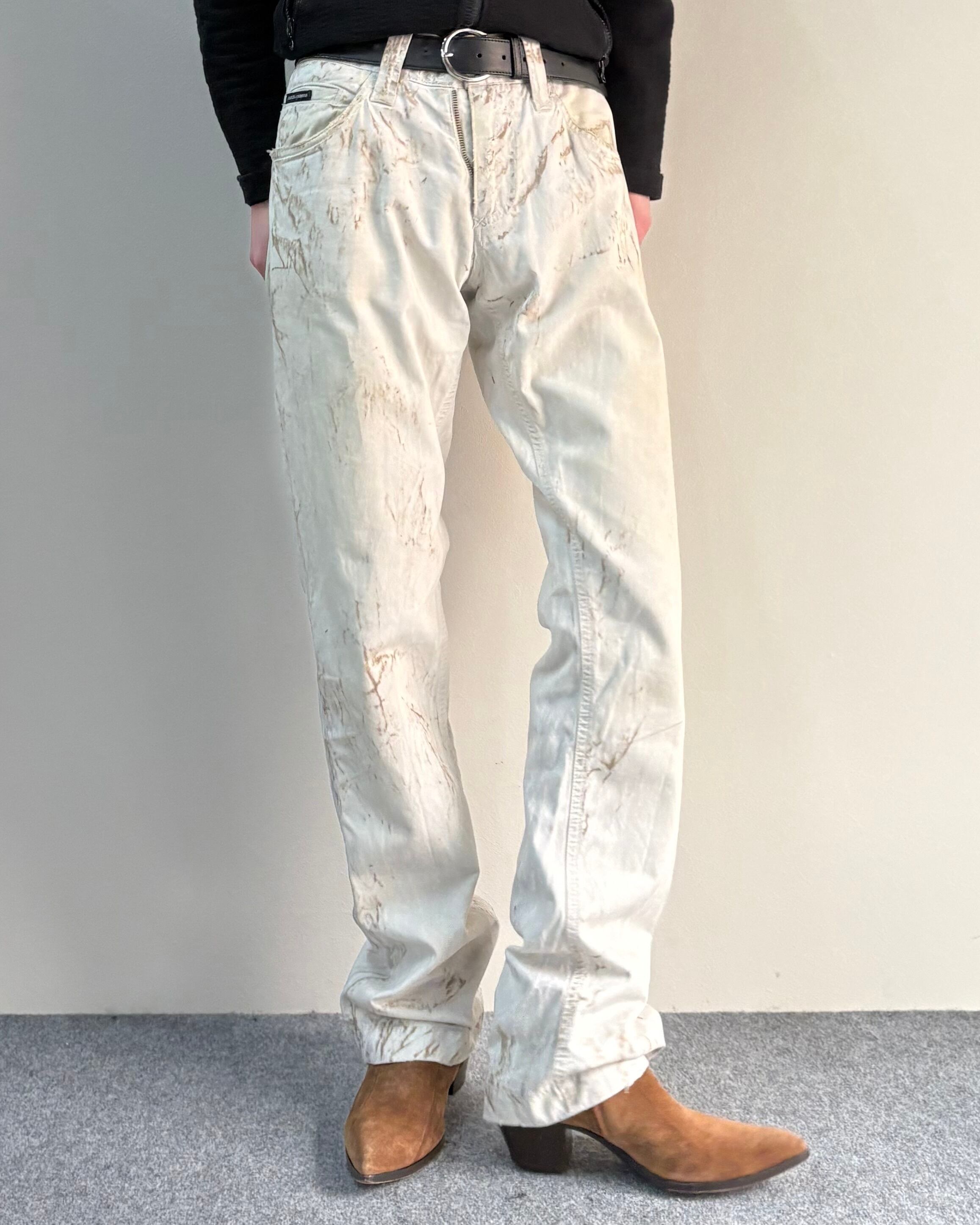 【DOLCE&GABBANA】painted cotton straight pants