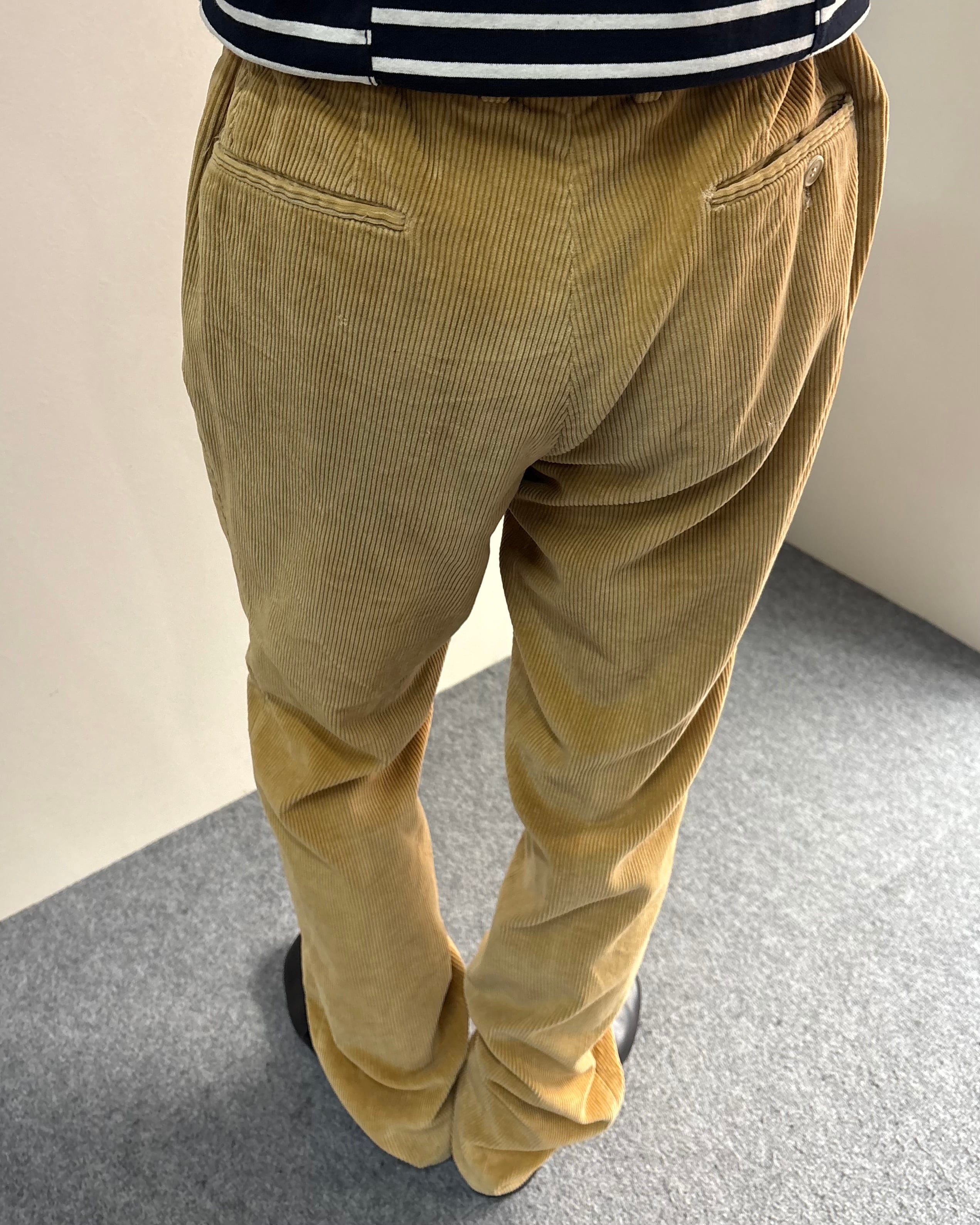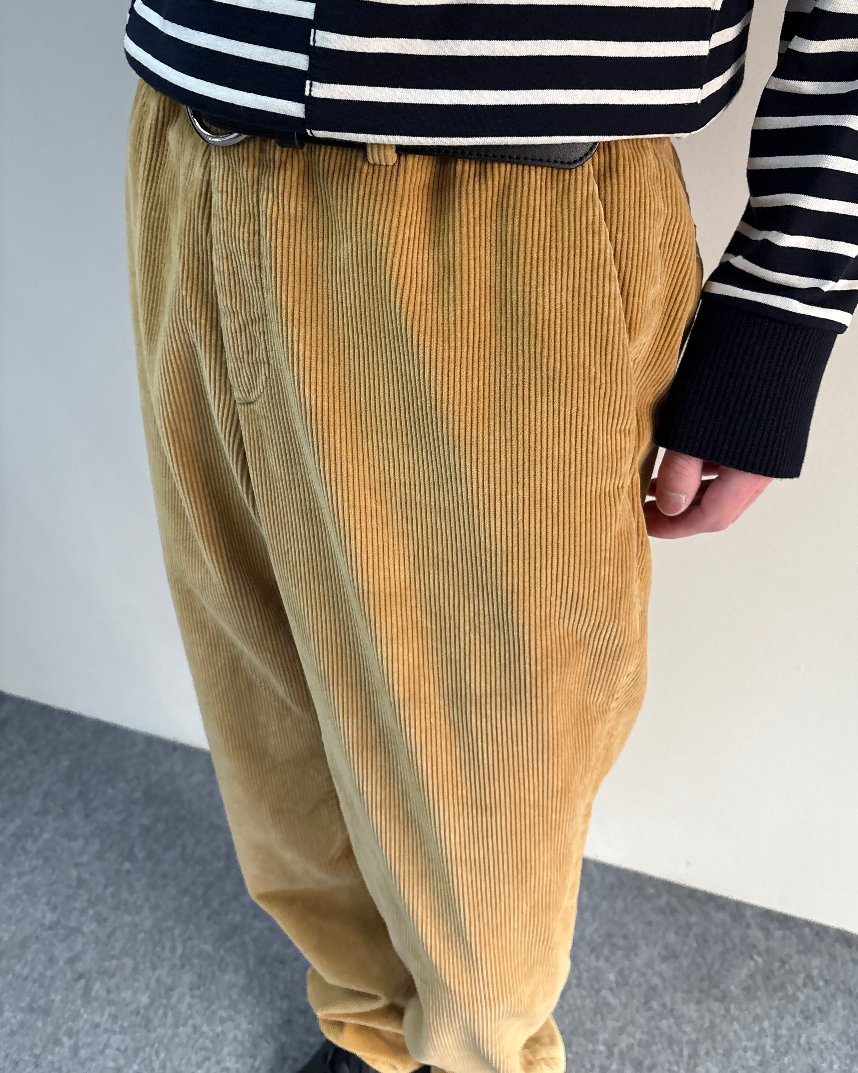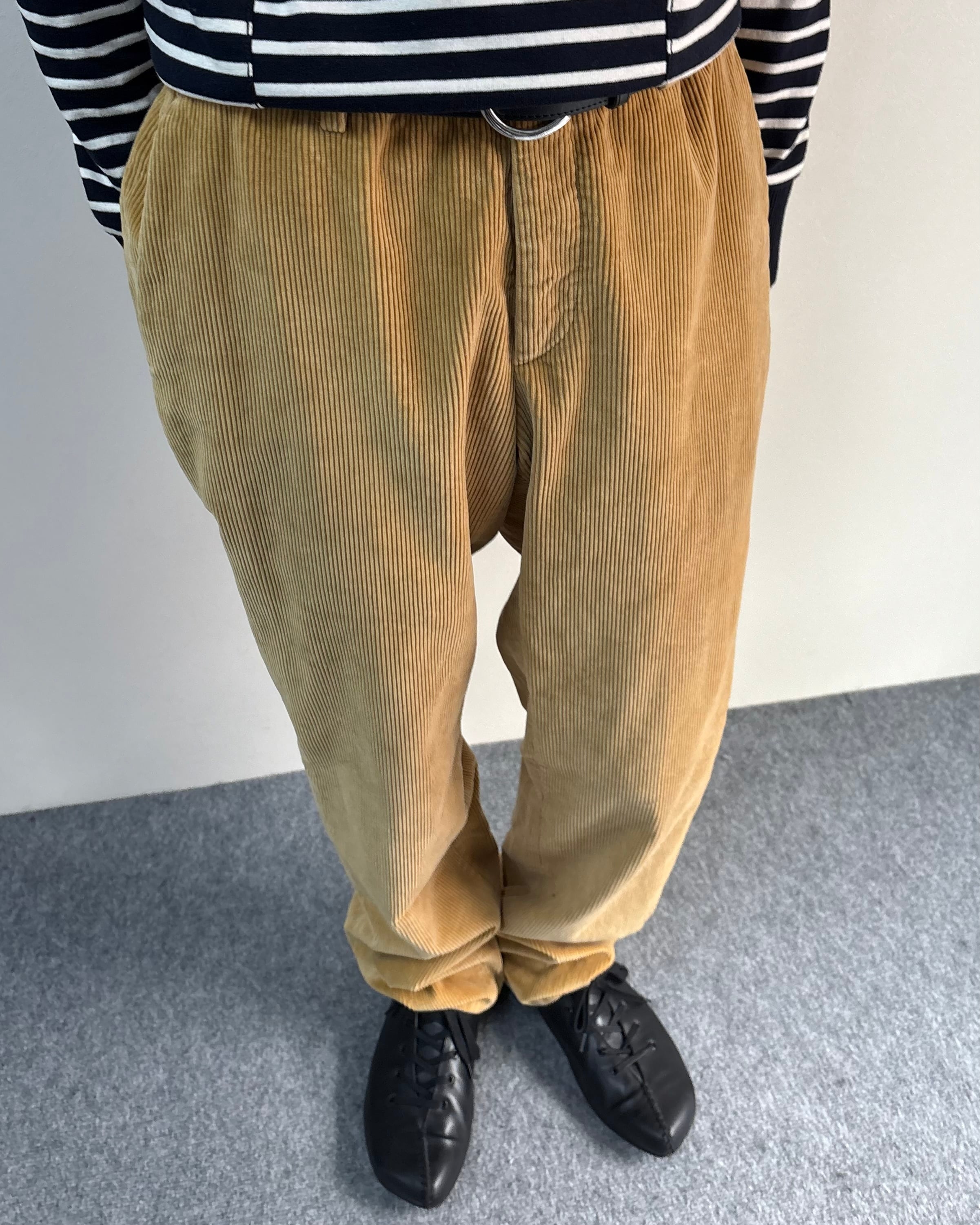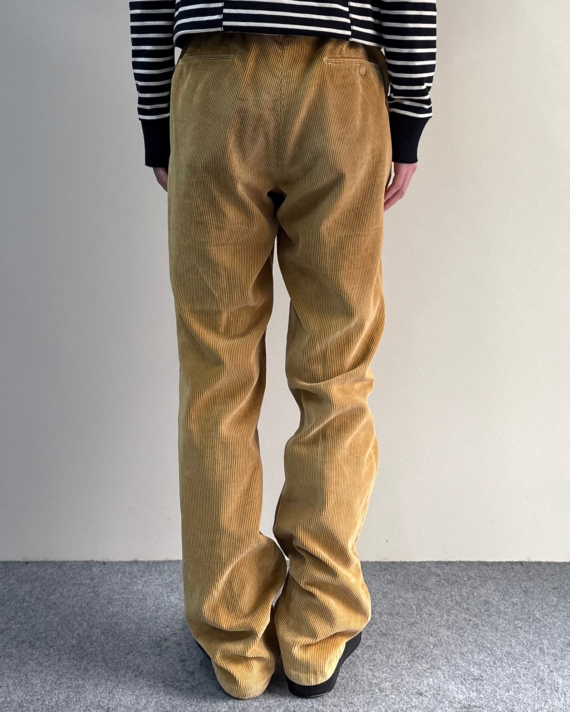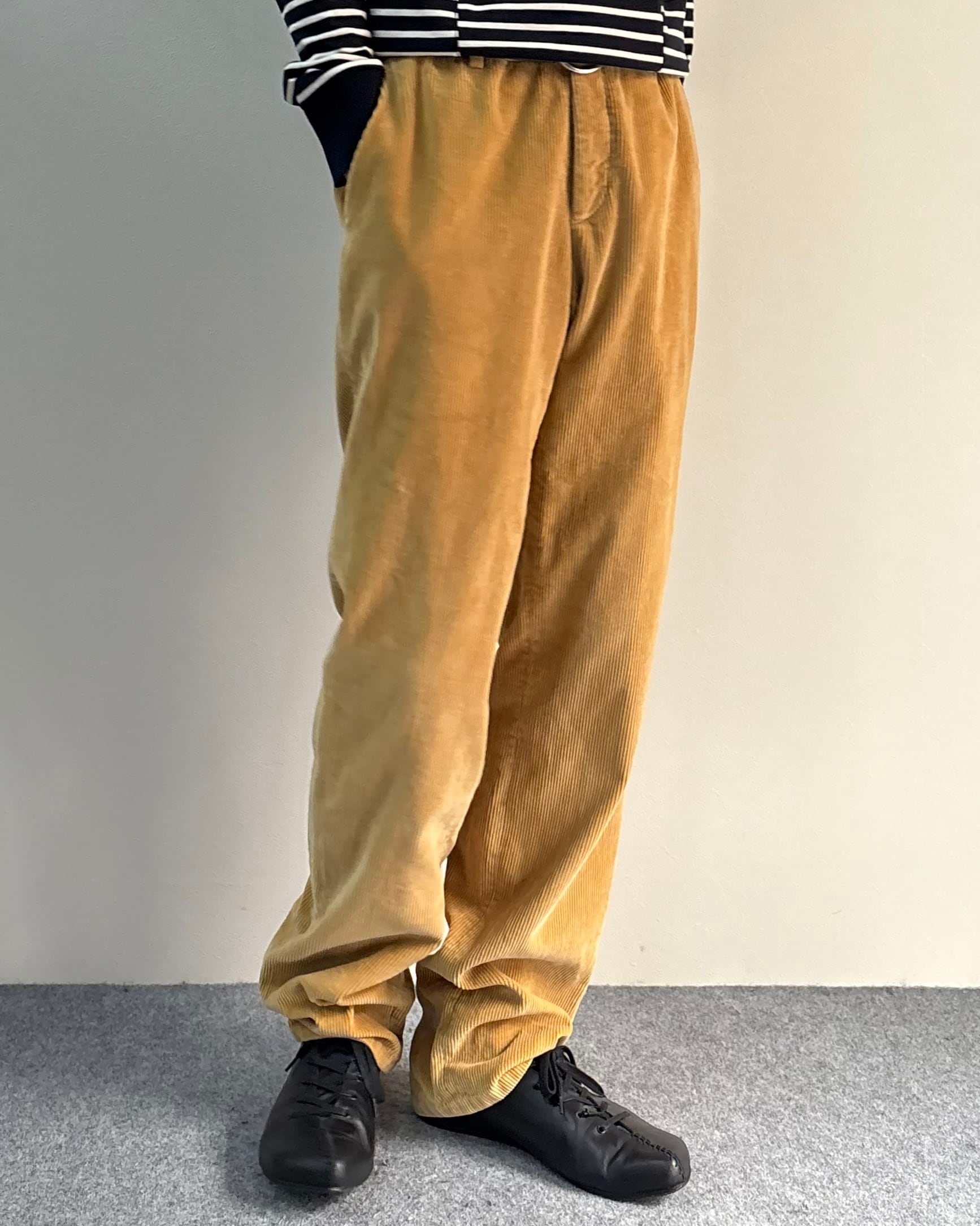 畝のはっきりとしたコーデュロイ生地で程よくゆとりのあるストレートシルエットにより、リラックス感と上品さを兼ね備えた一本。