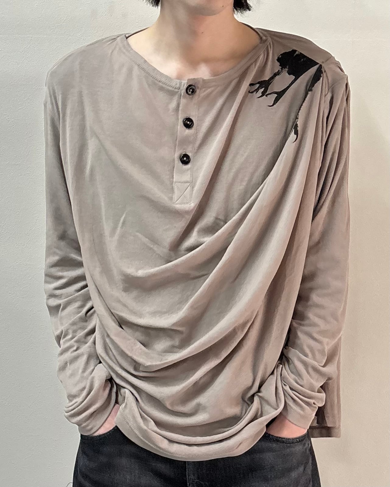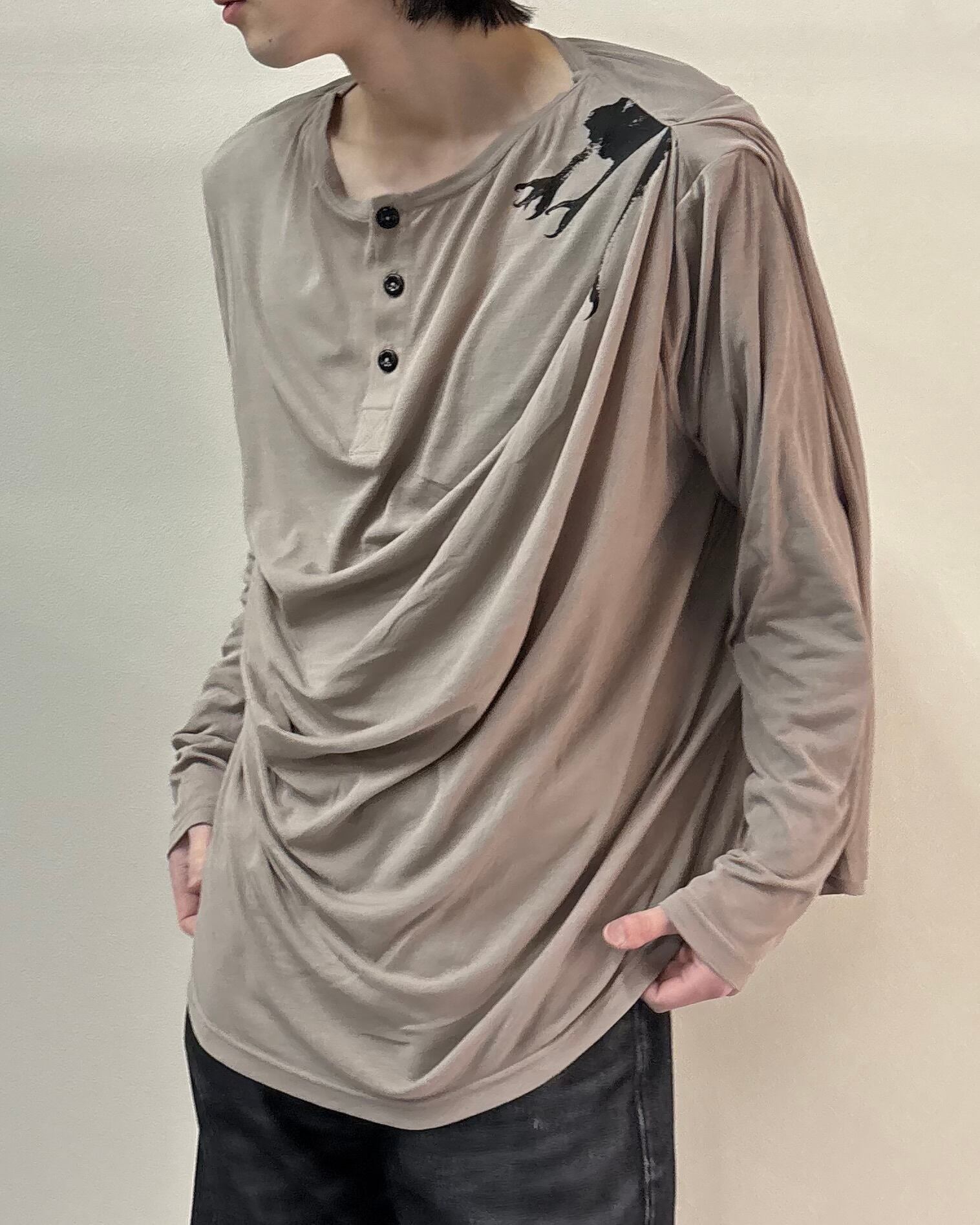 【26SS/Oscar Ouyang】CLAW DRAPE HENLEY LONG SLEEVE TEE