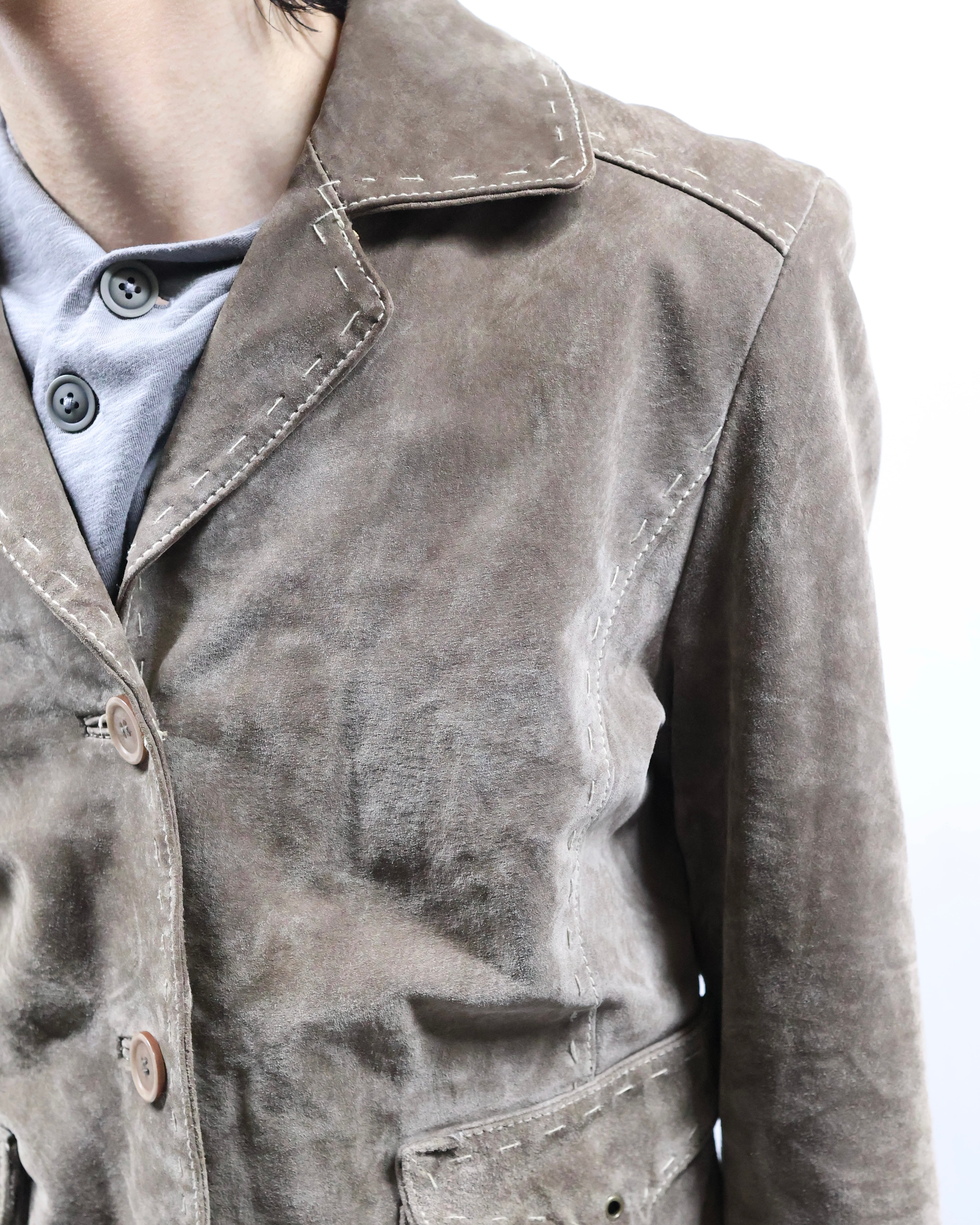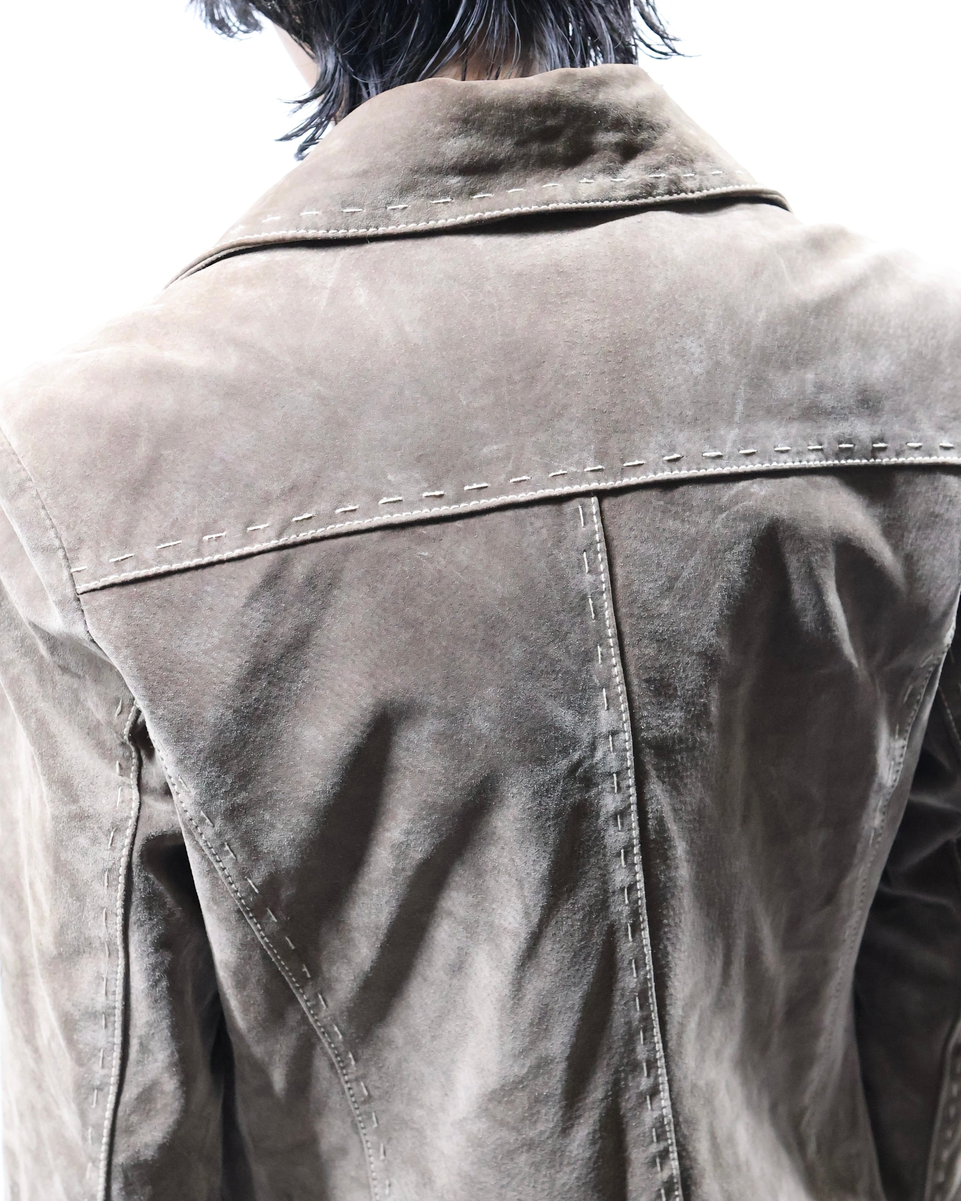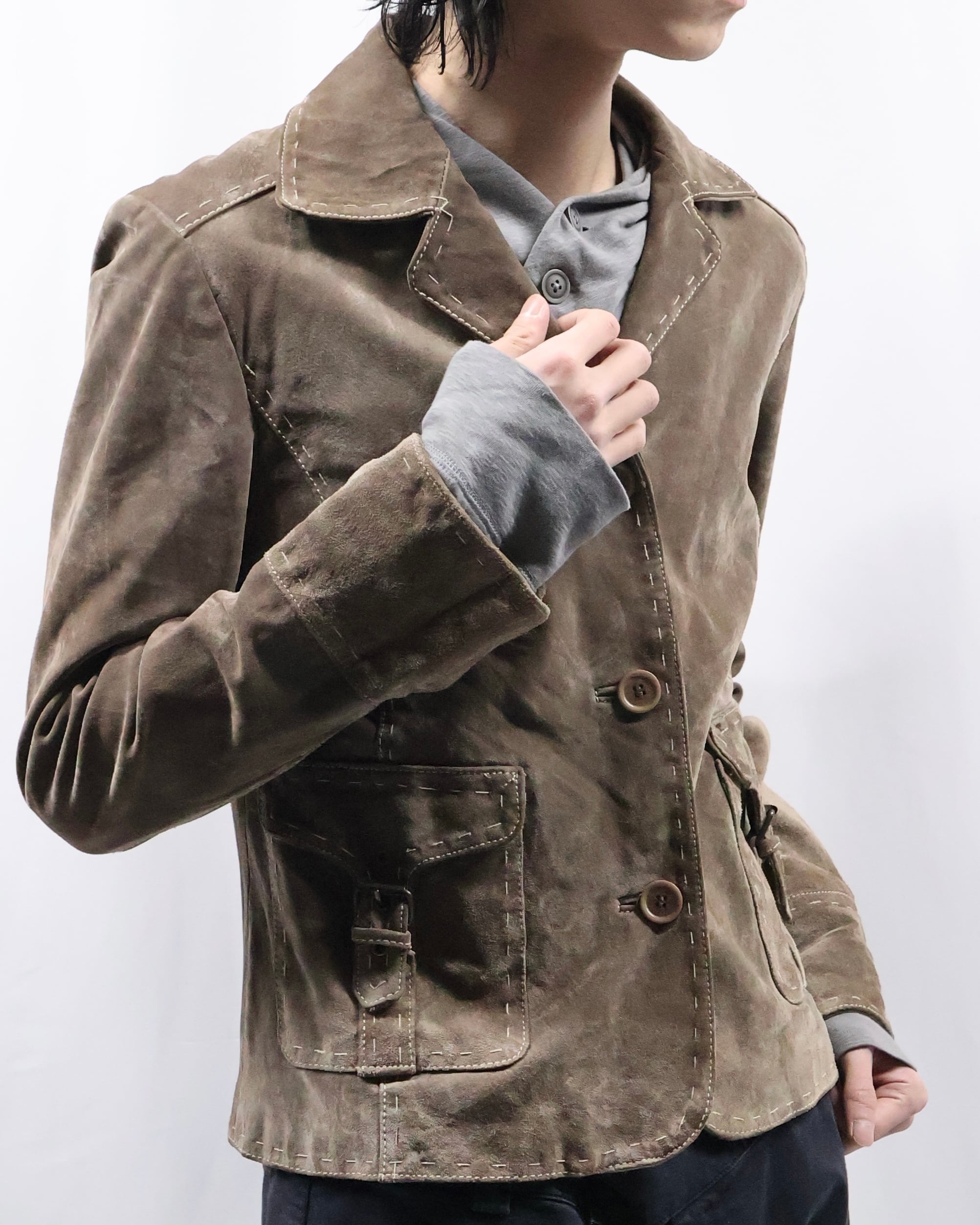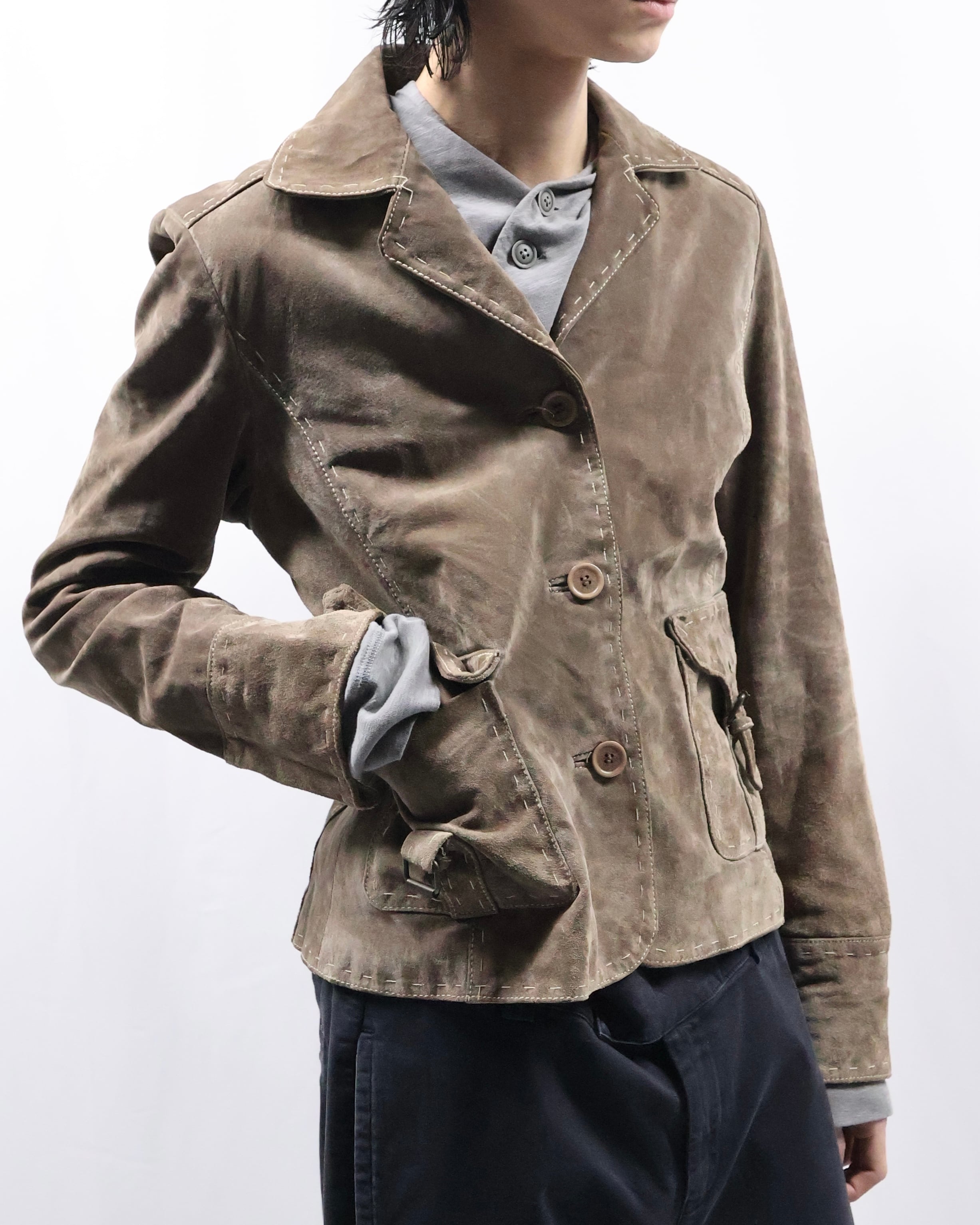 スエードレザーにステッチが配されており無骨になり過ぎず着用出来るアイテム。コンパクトなサイズ感でパンツを選ばず着用出来る一着。