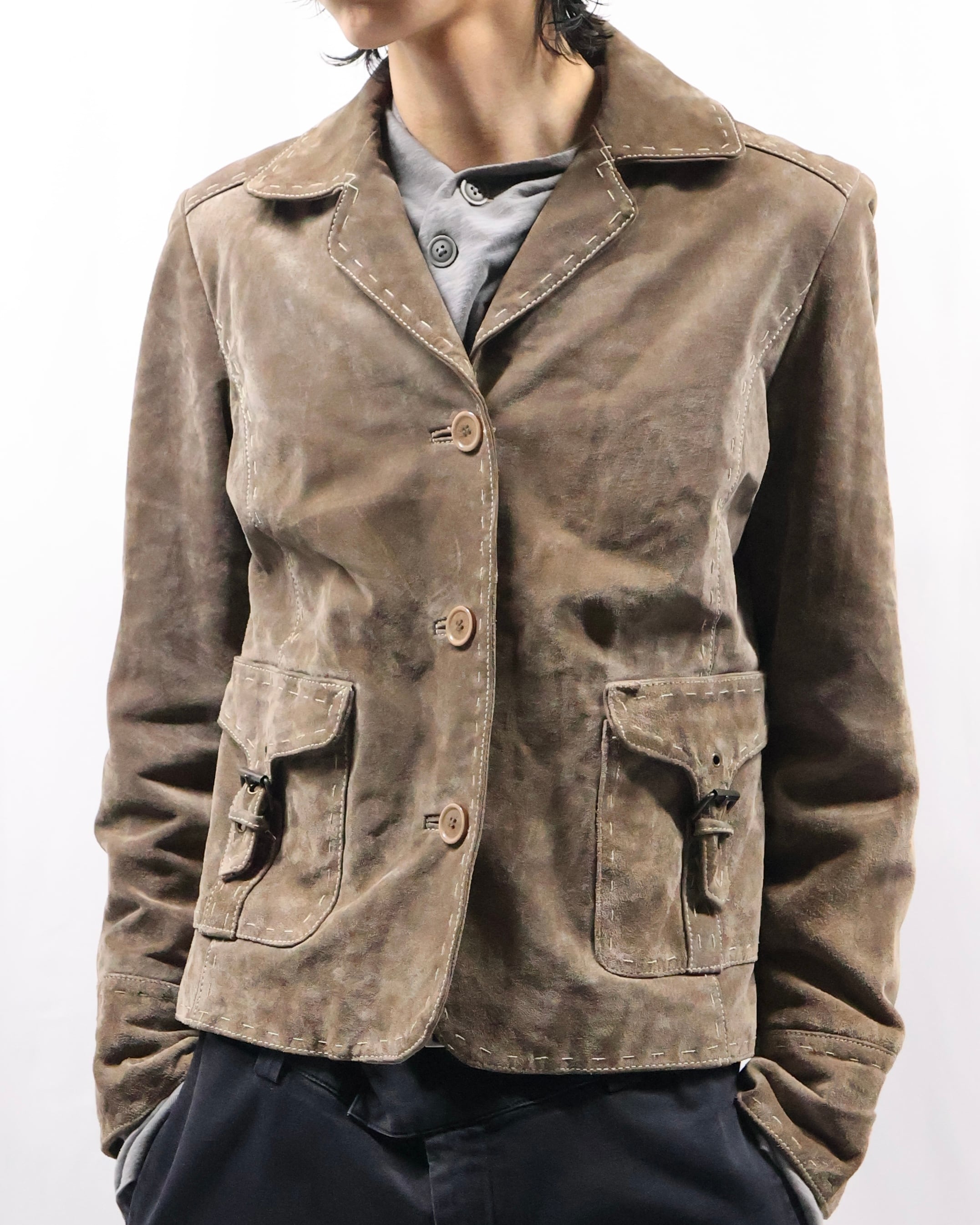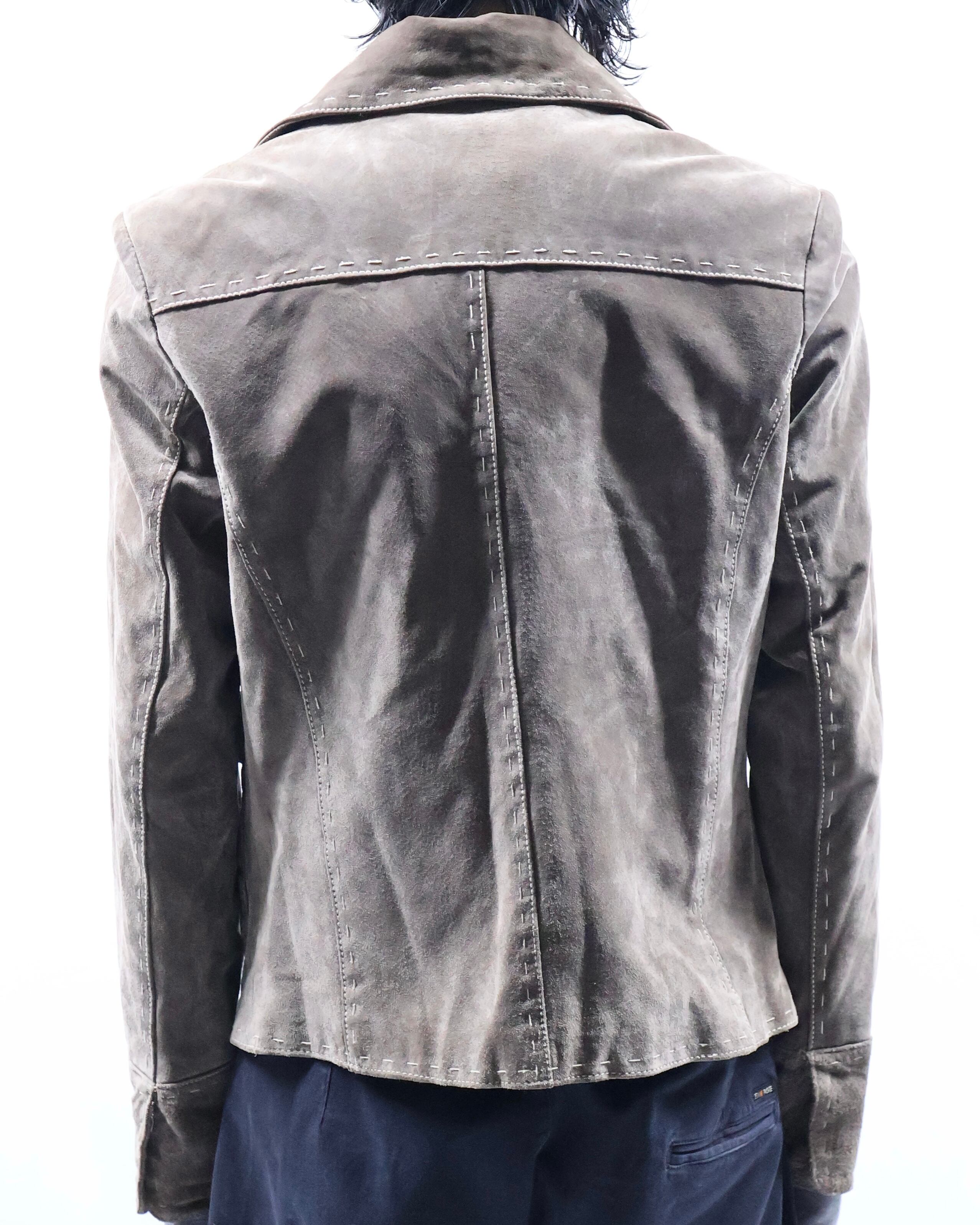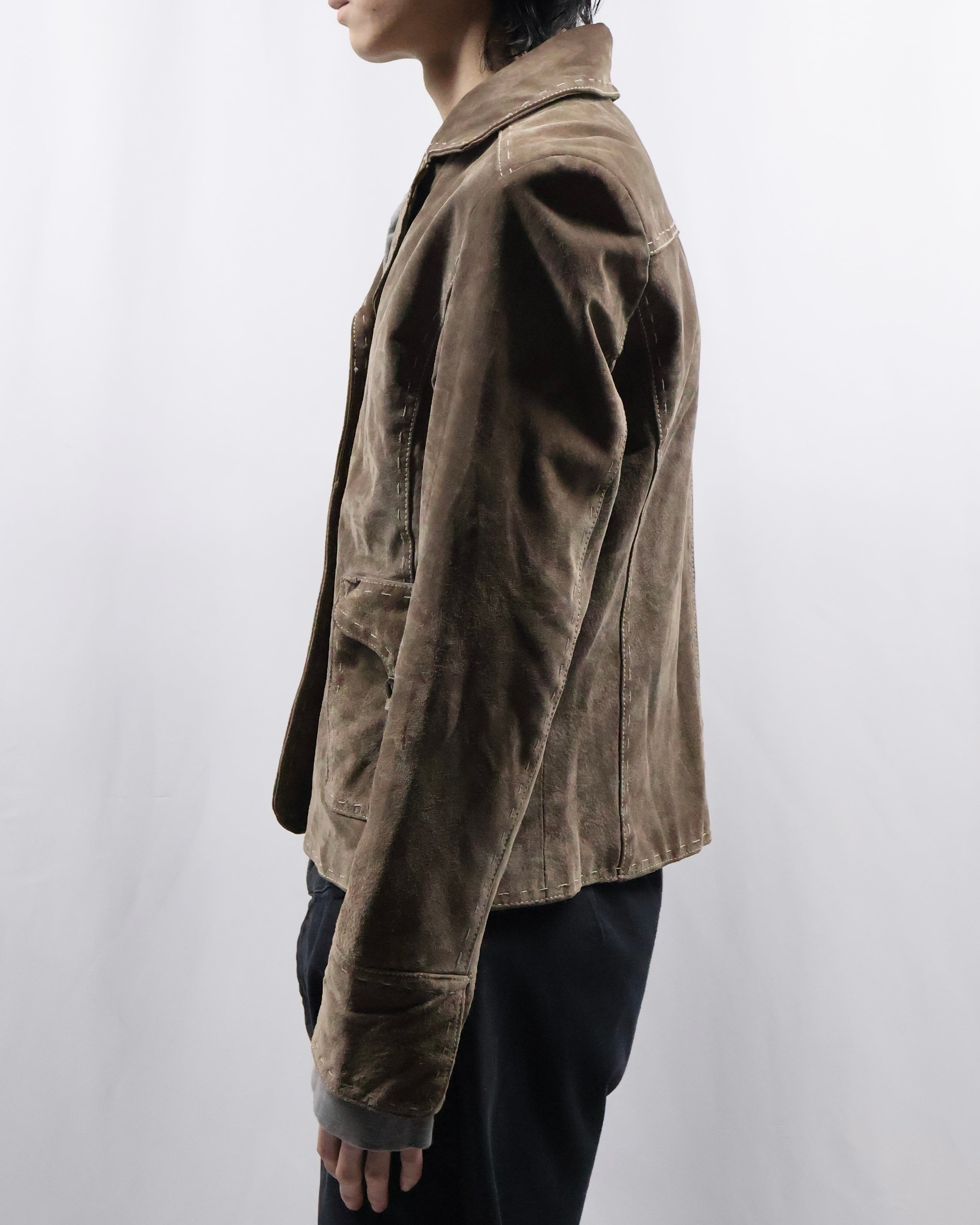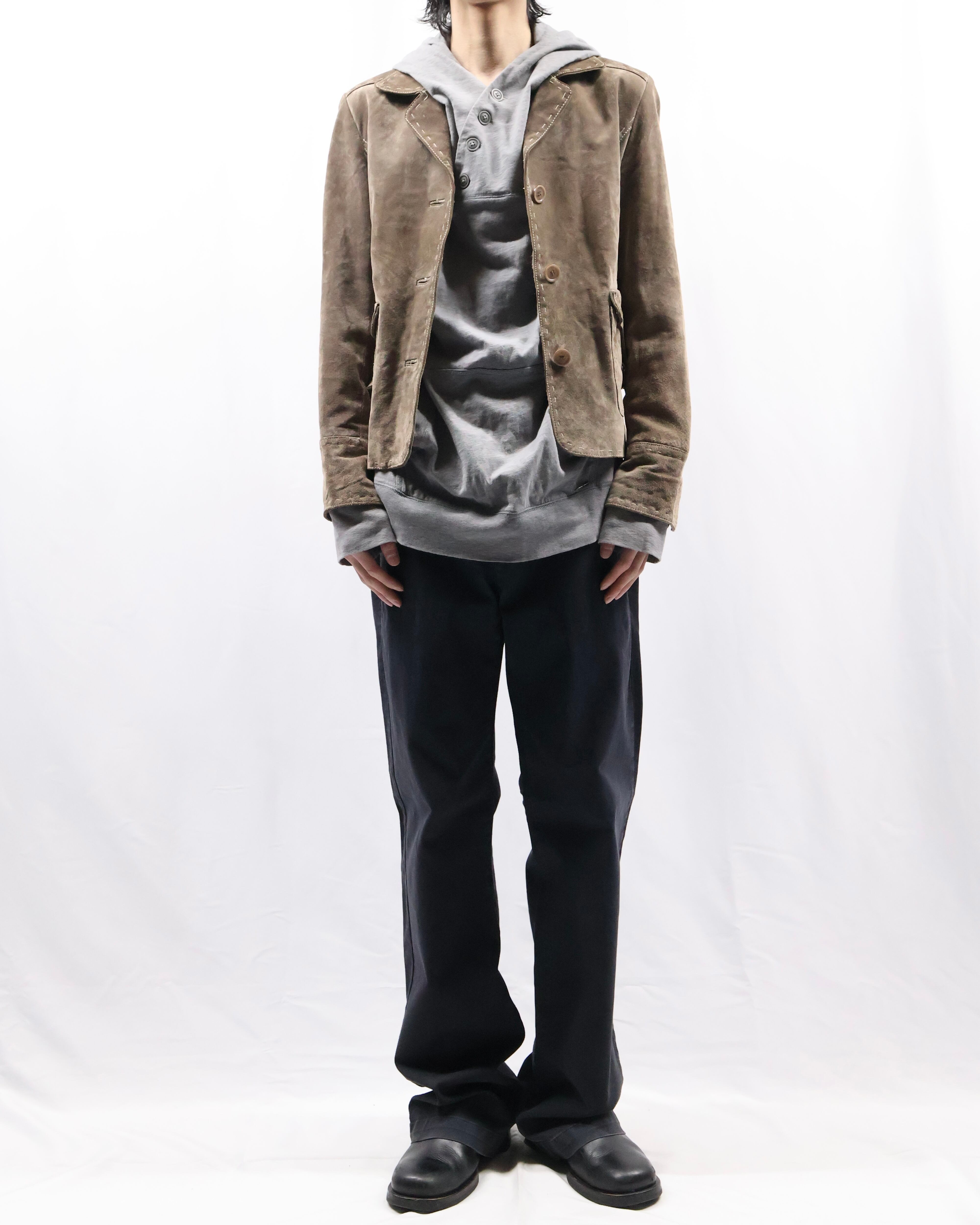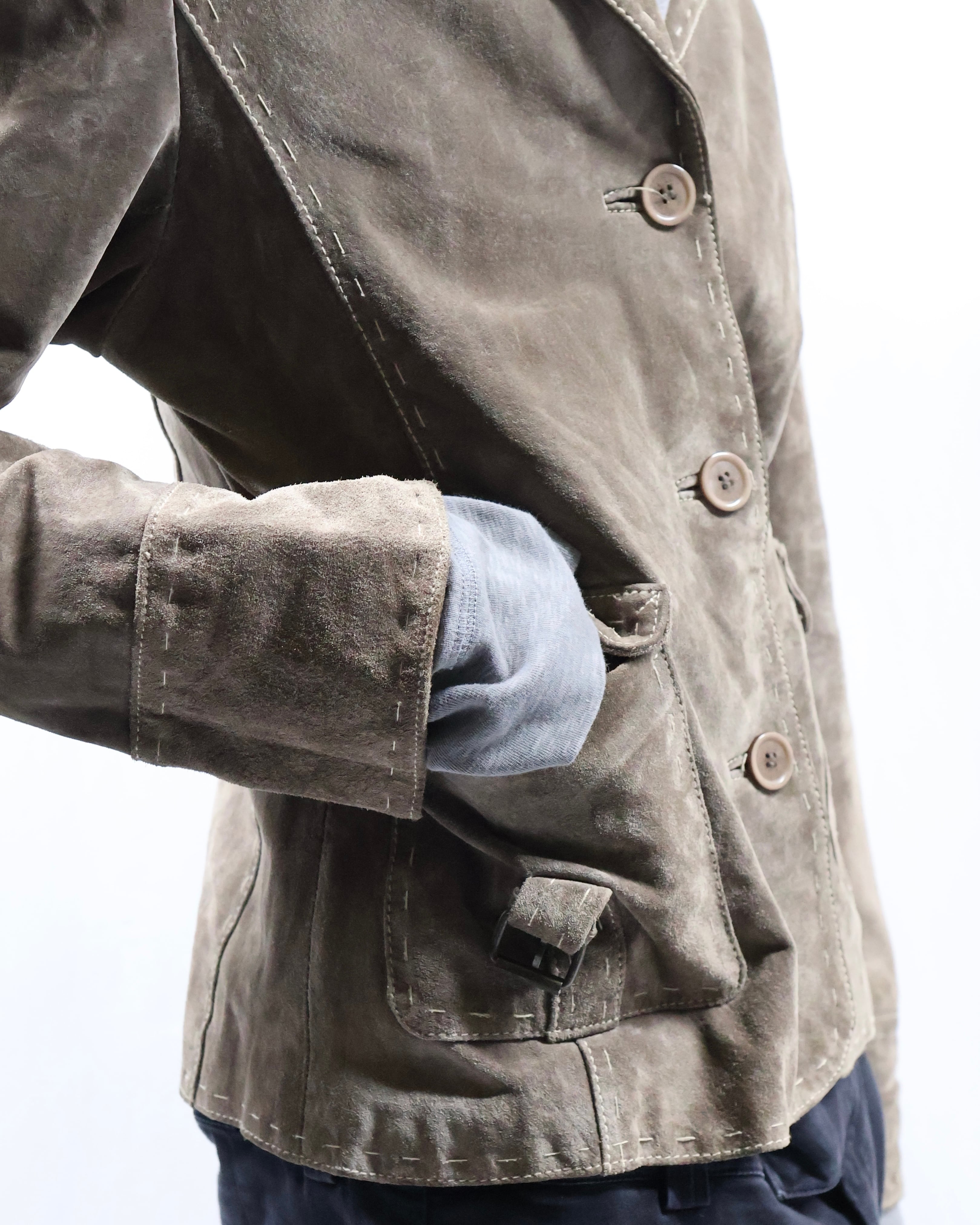 スエードレザーにステッチが配されており無骨になり過ぎず着用出来るアイテム。コンパクトなサイズ感でパンツを選ばず着用出来る一着。