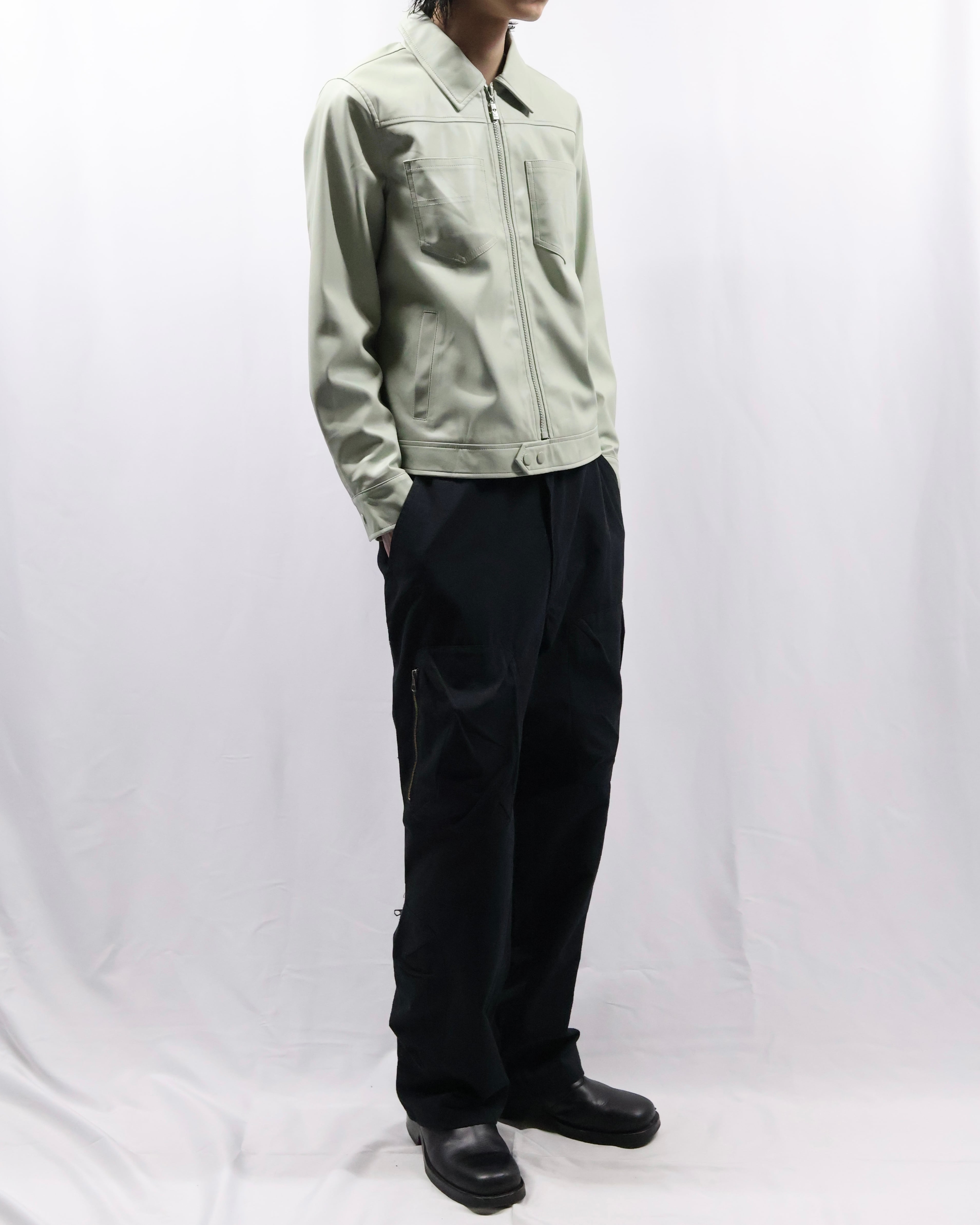 faux leather multi pocket zip up blouson