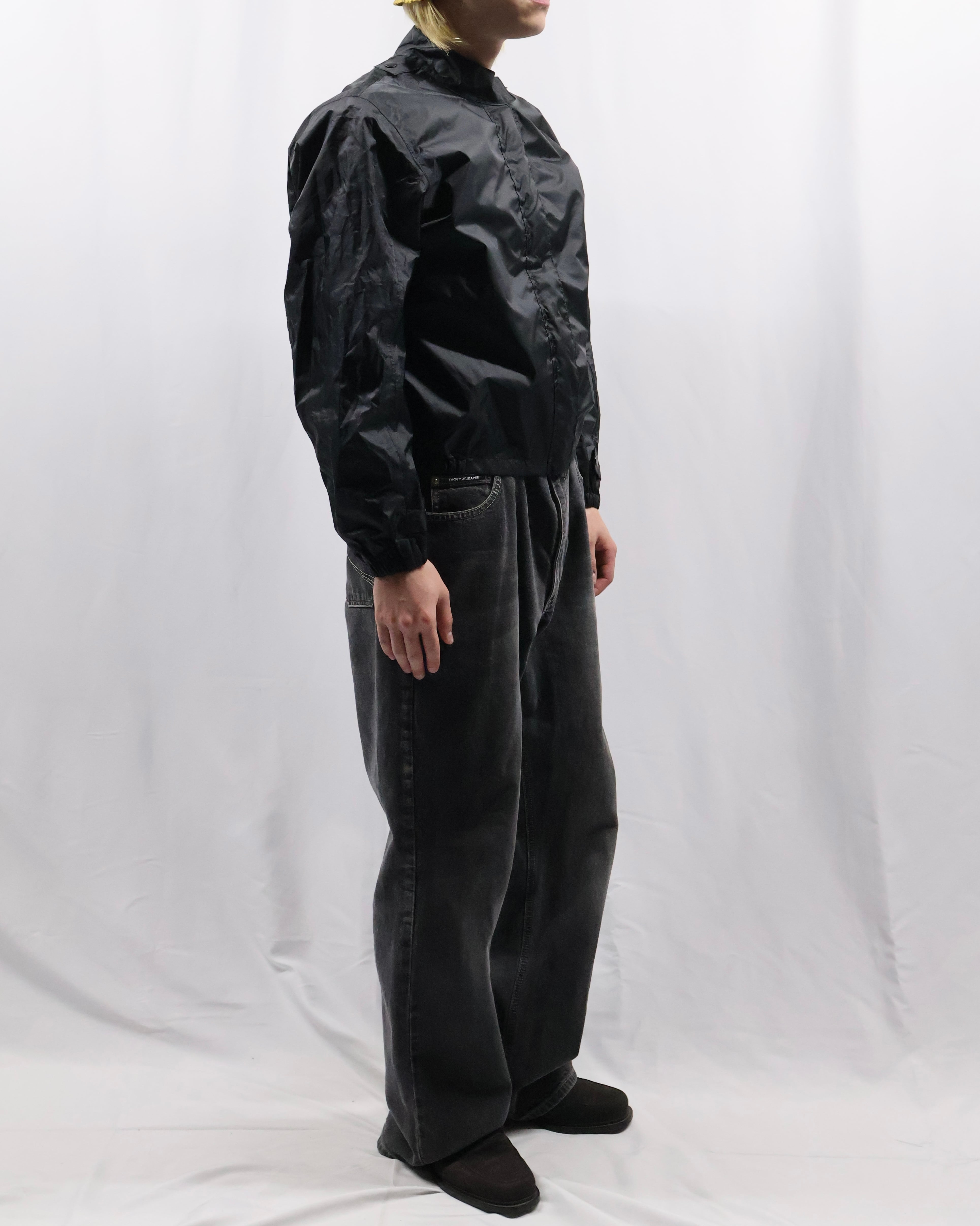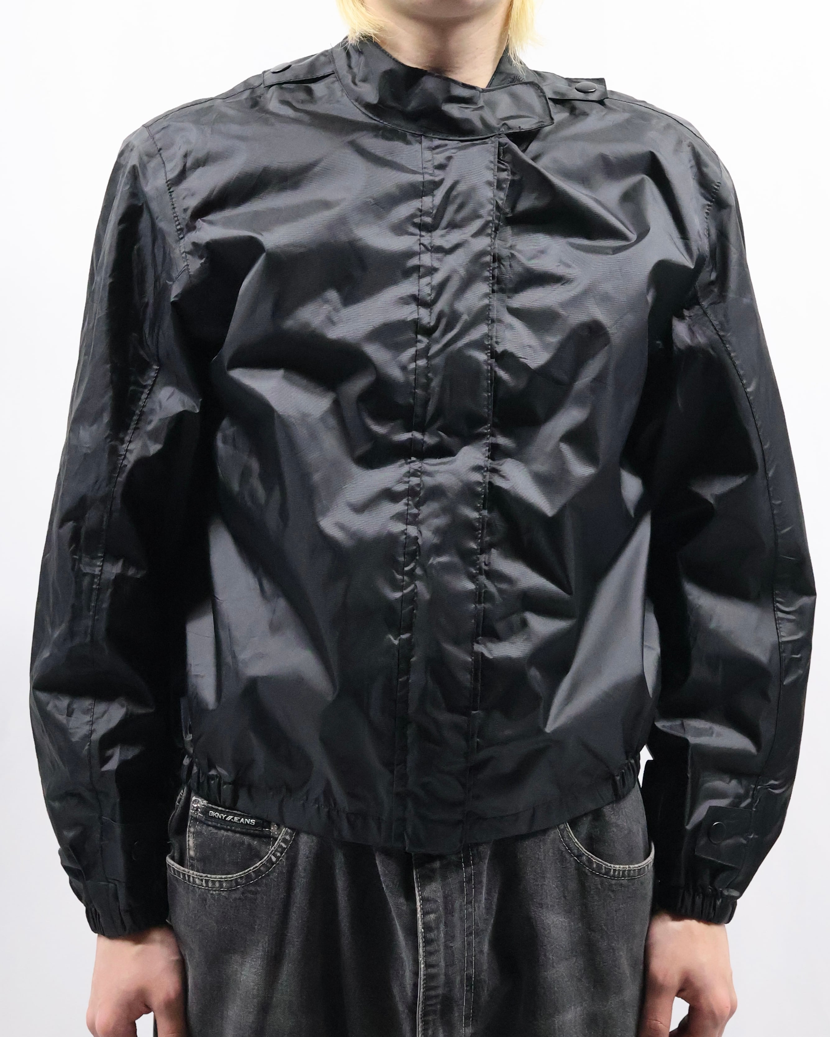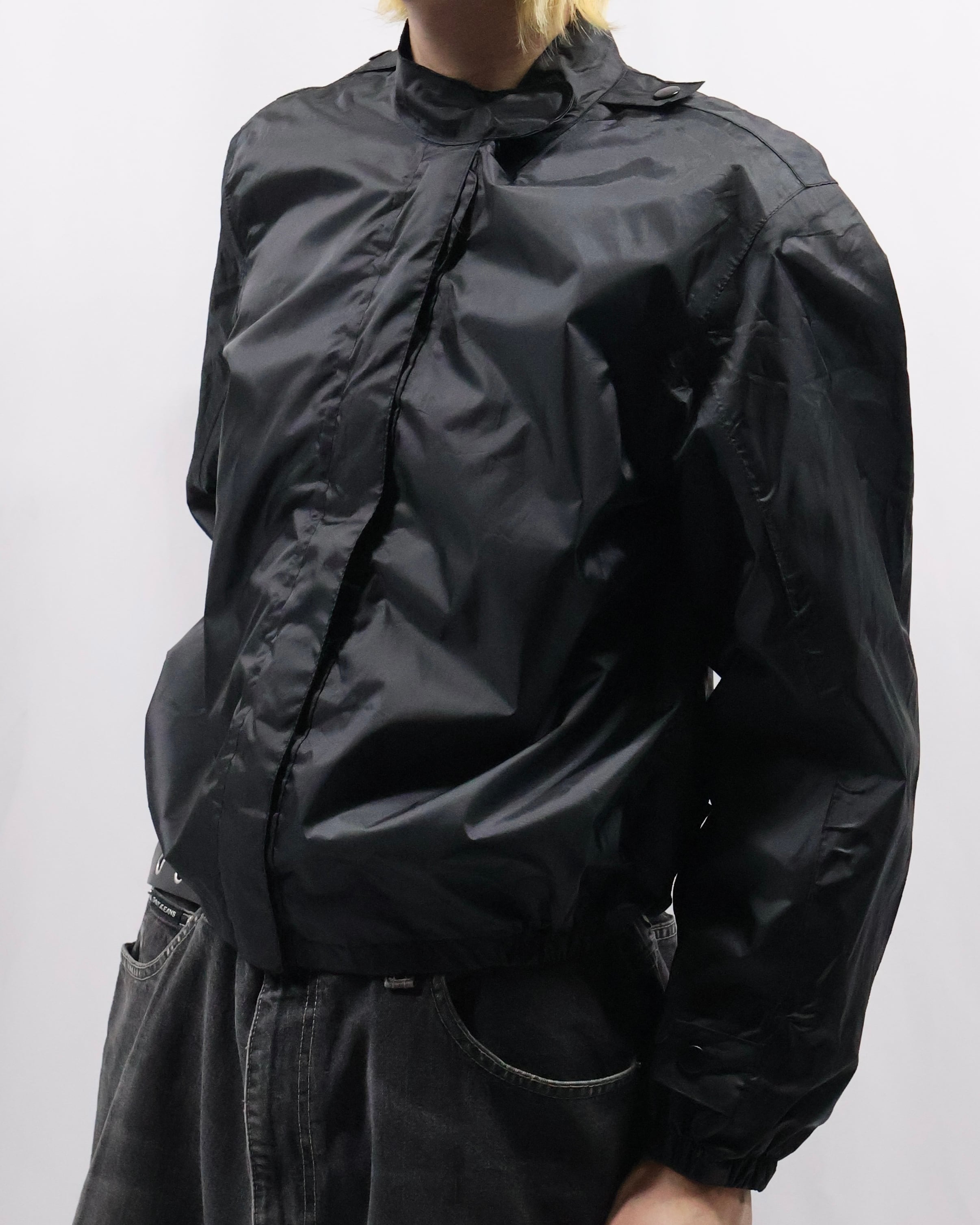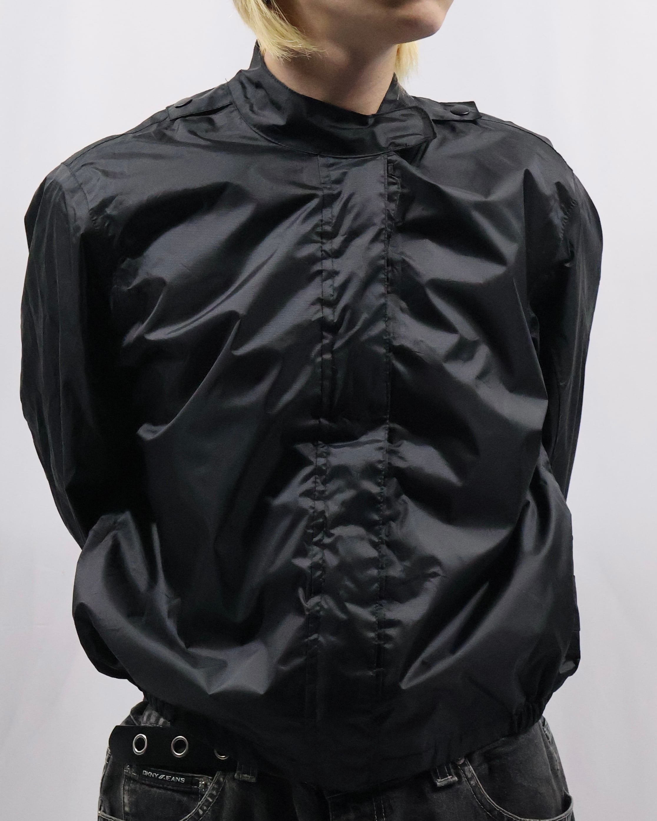 fly front nylon zip up blouson