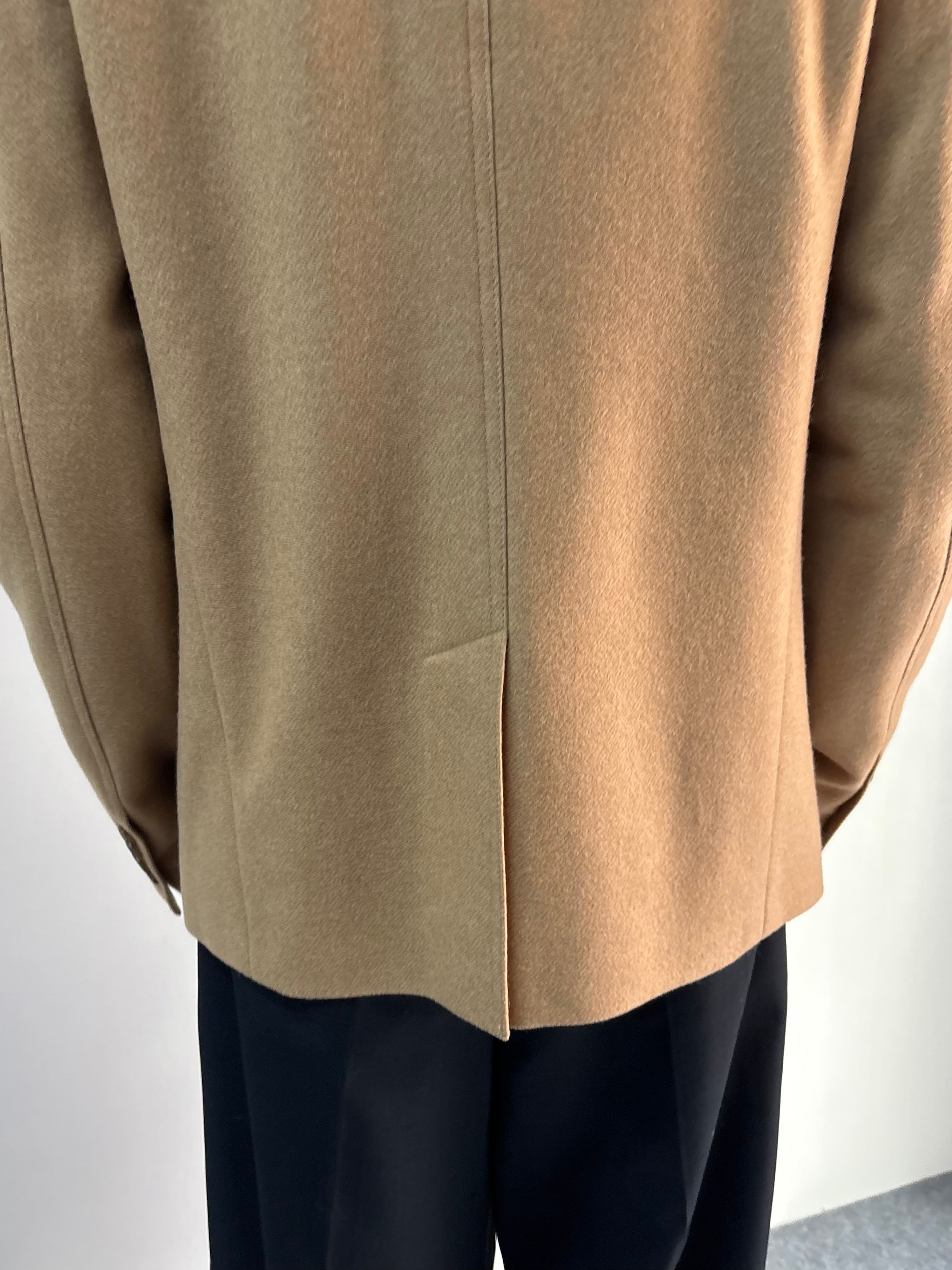 構築的なカッティングとフロントのボタンを閉じた際の包み込むようなアシンメトリーデザインが特徴のアイテム。ウエストを程よくシェイプした細身のラインは、当時のディオールオムらしいシャープなテーラリングを感じる一着。