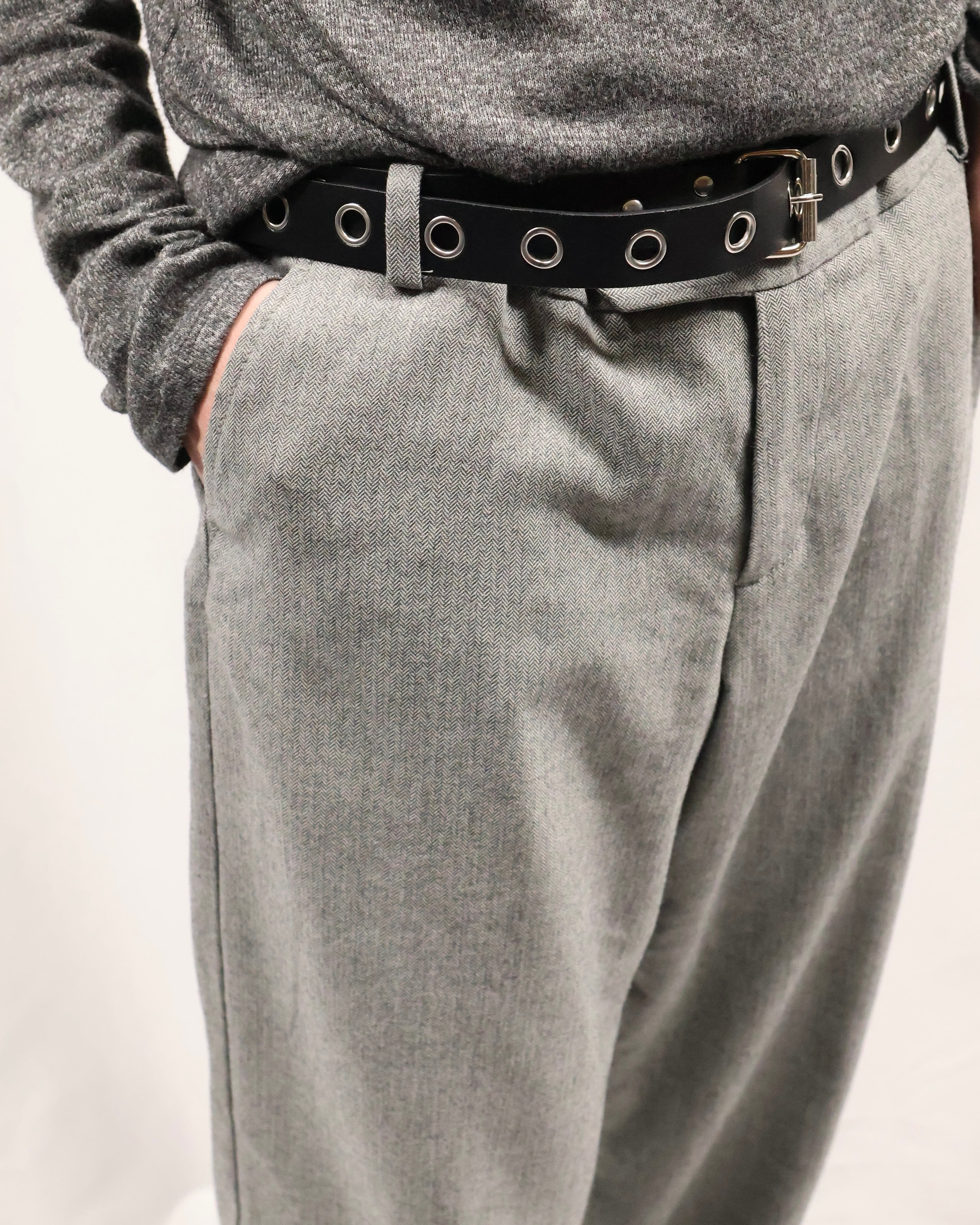 ヘリンボーンの風合いが上品なストレートのスラックス。クラシックな装いにはもちろん、カジュアルなコーディネートの下半身として持ってきてもgood。色合いも良く、シンプルに一枚履いておきたくなるスラックス。