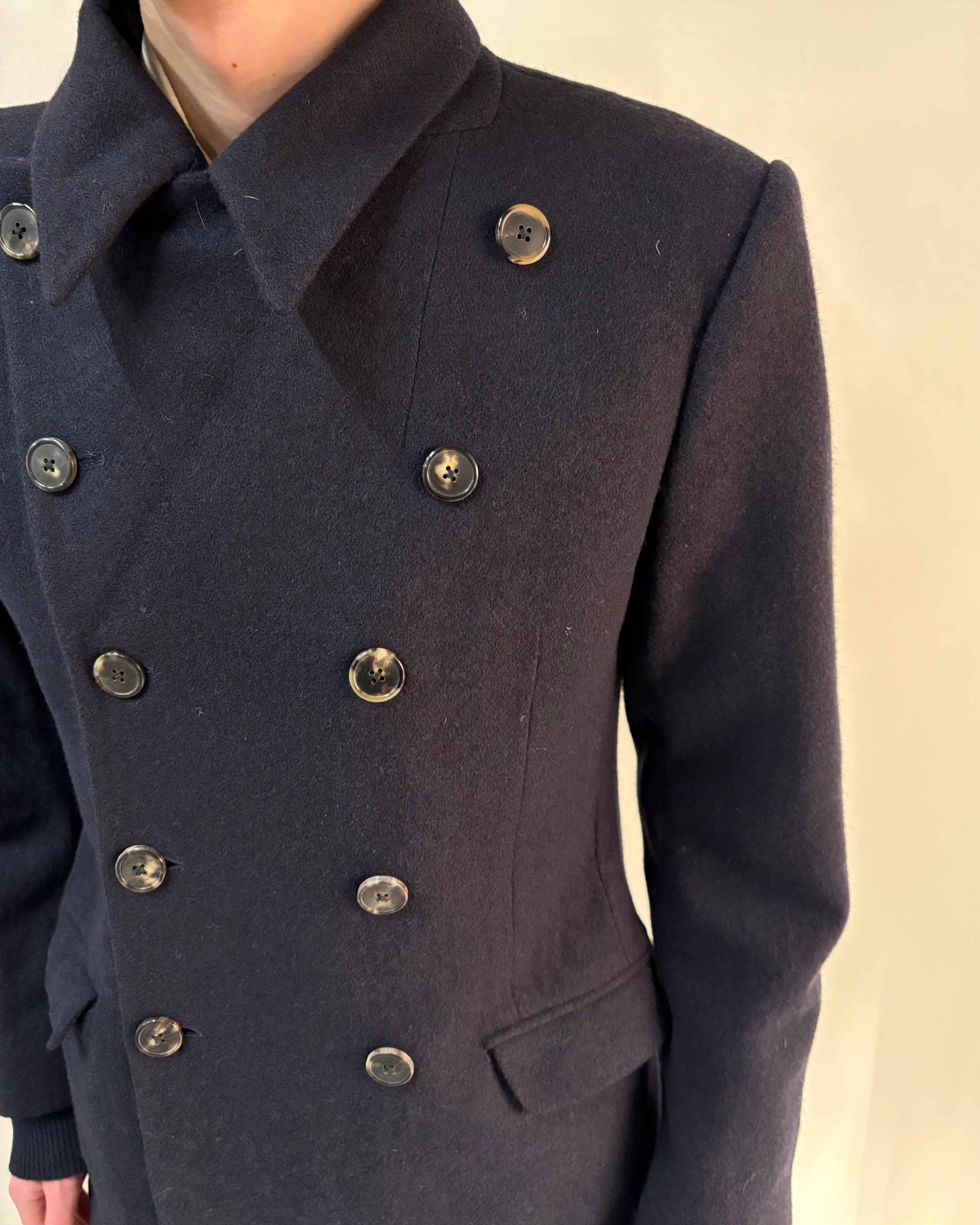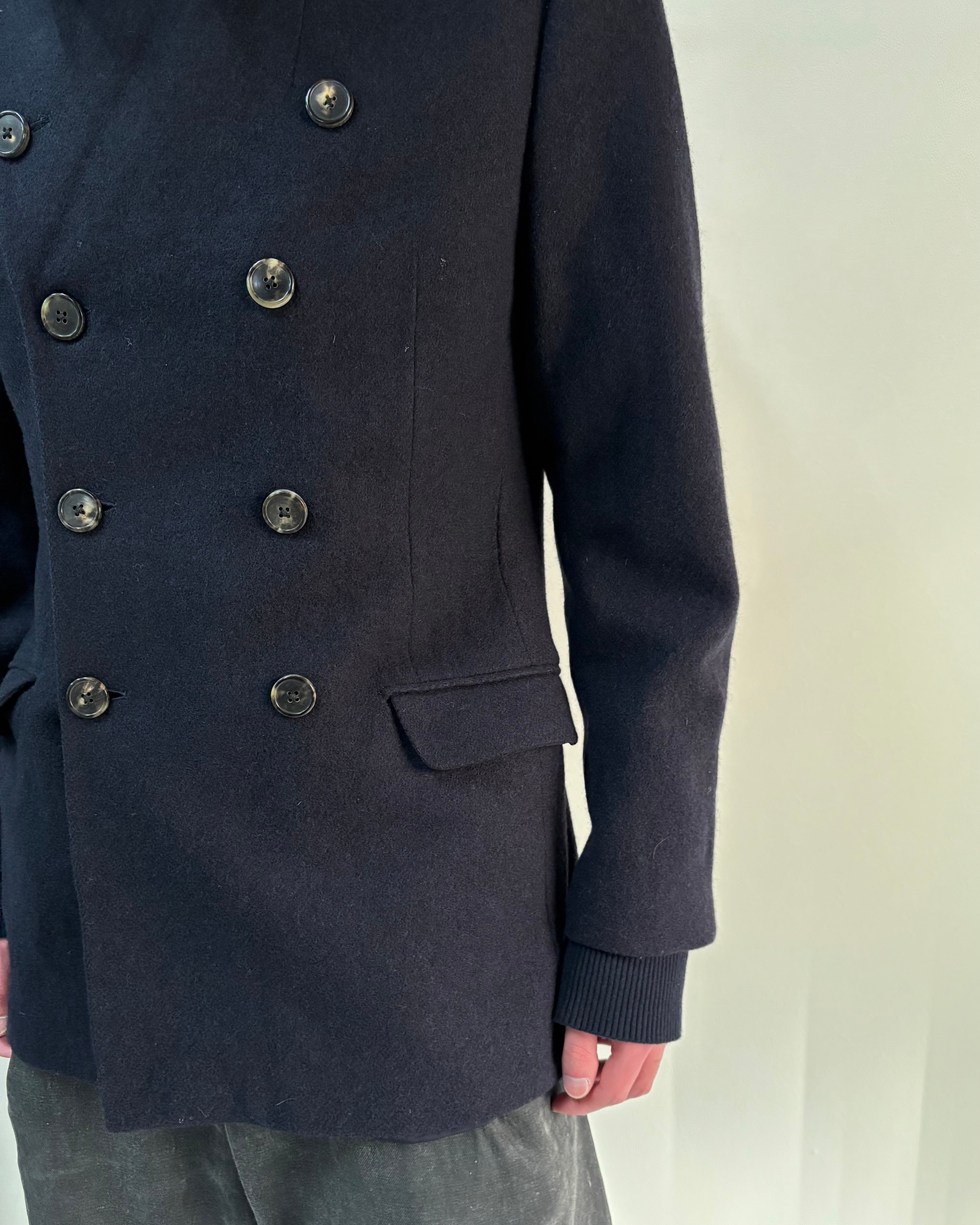 上部までボタンを閉めていただいても、ナポレオンジャケットのようなエレガントかつシックな雰囲気も出せます