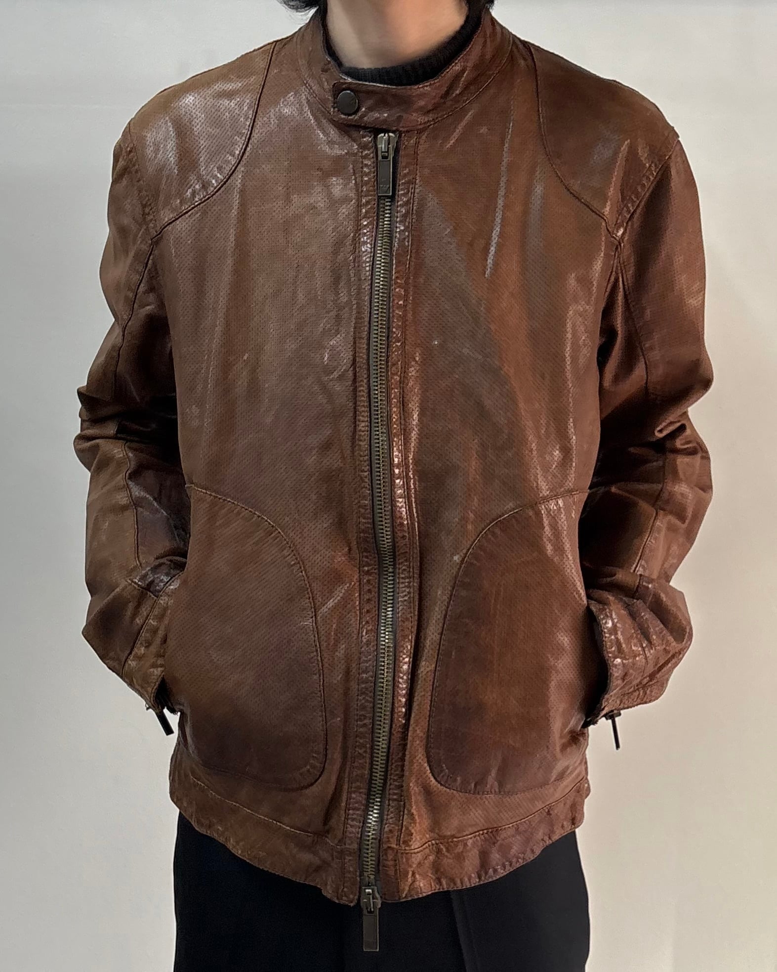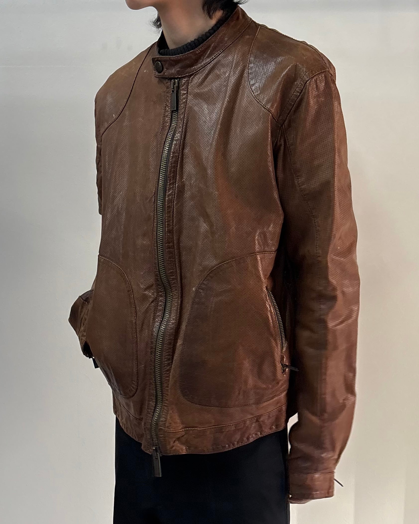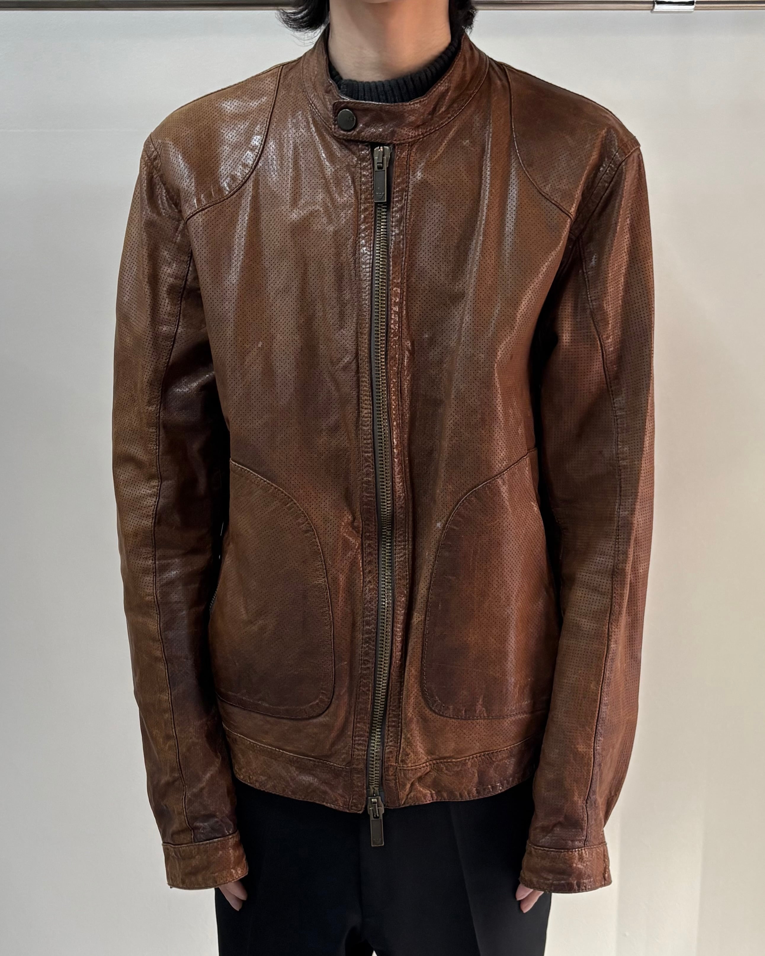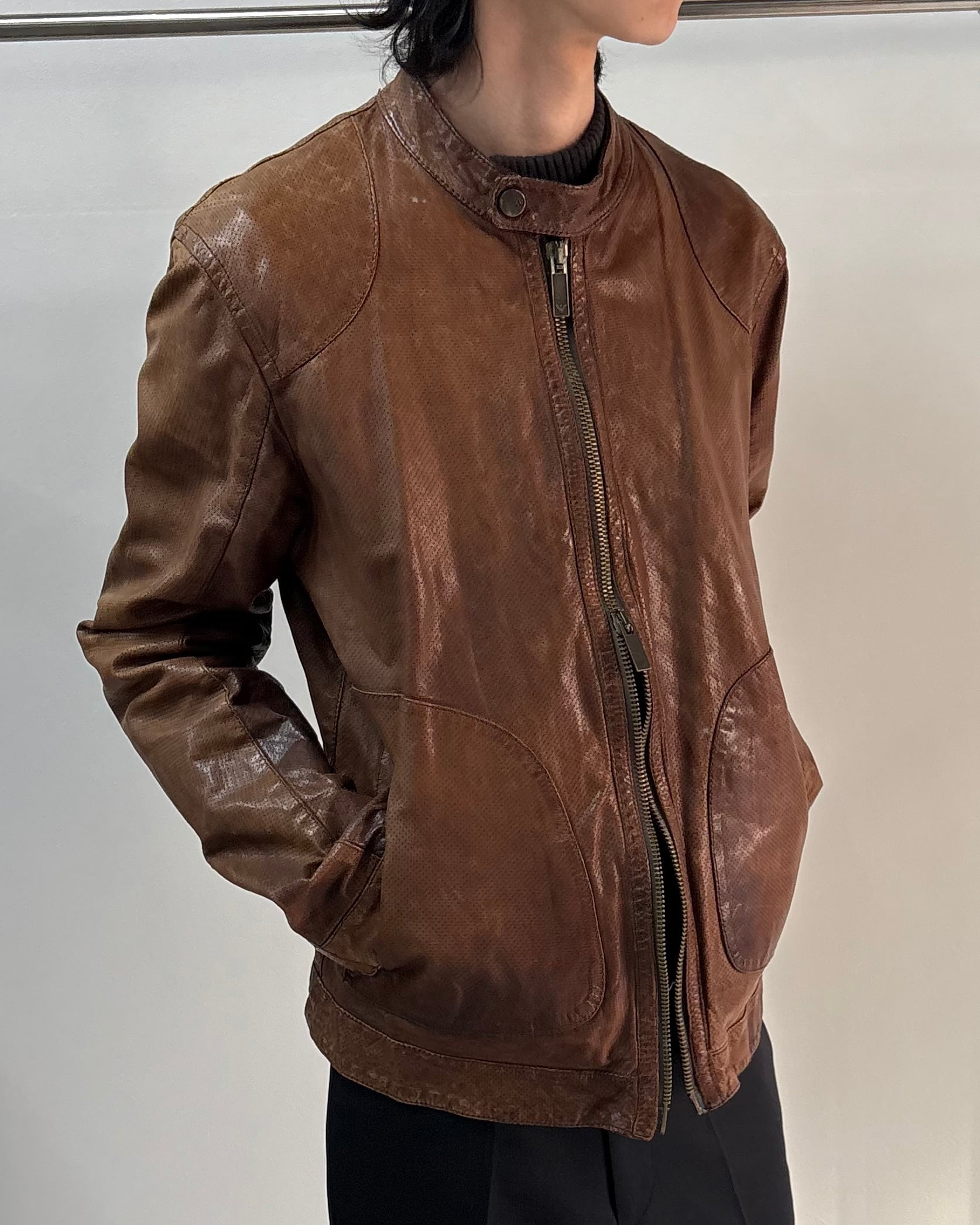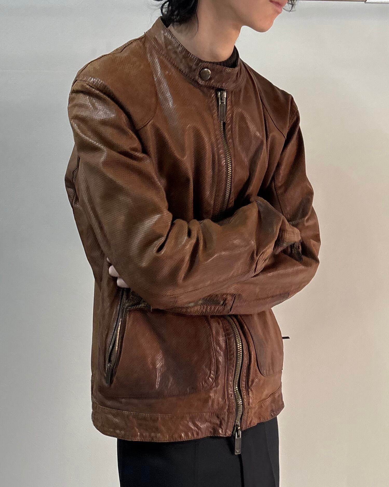 ARMANI JEANSのシングルライダースブルゾン。