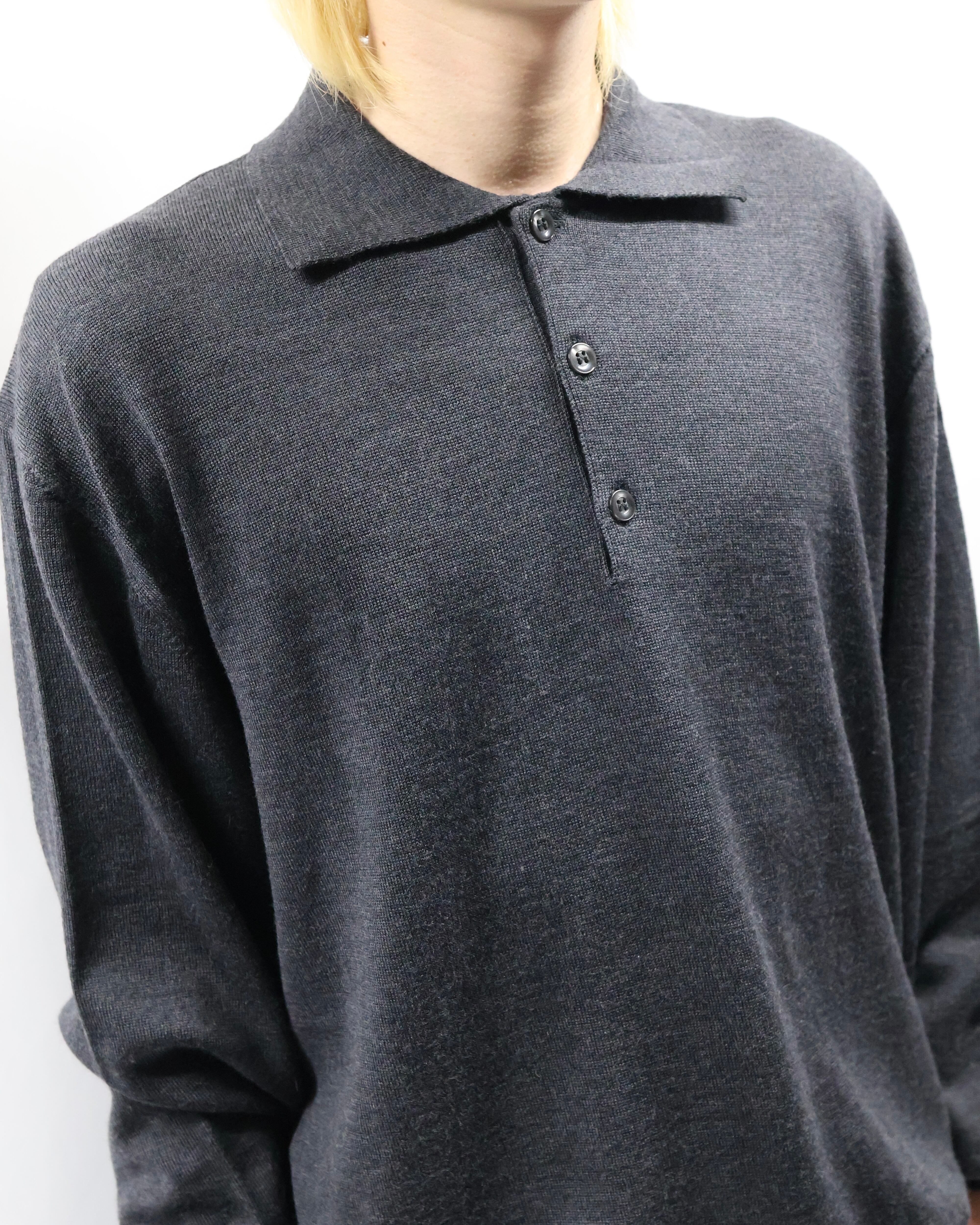 gray knit polo shirt