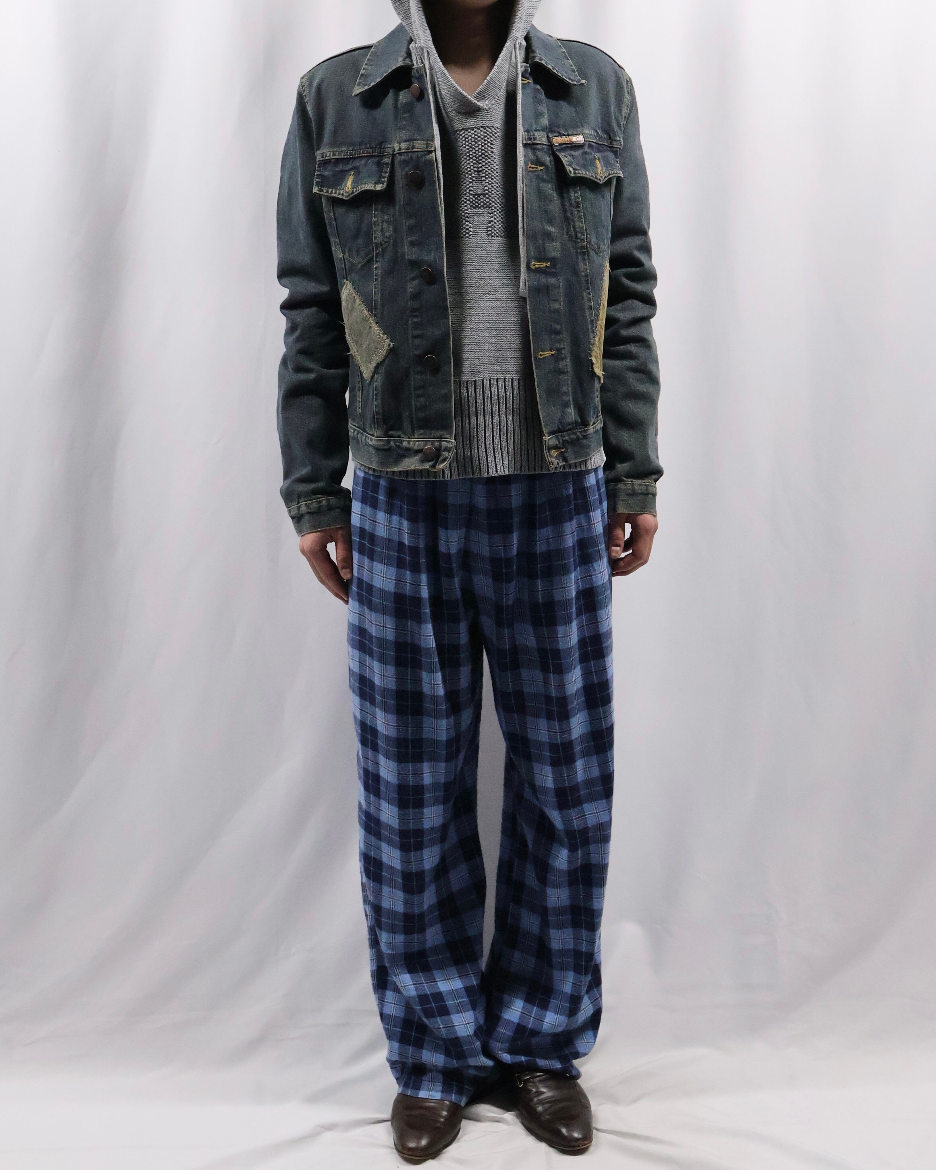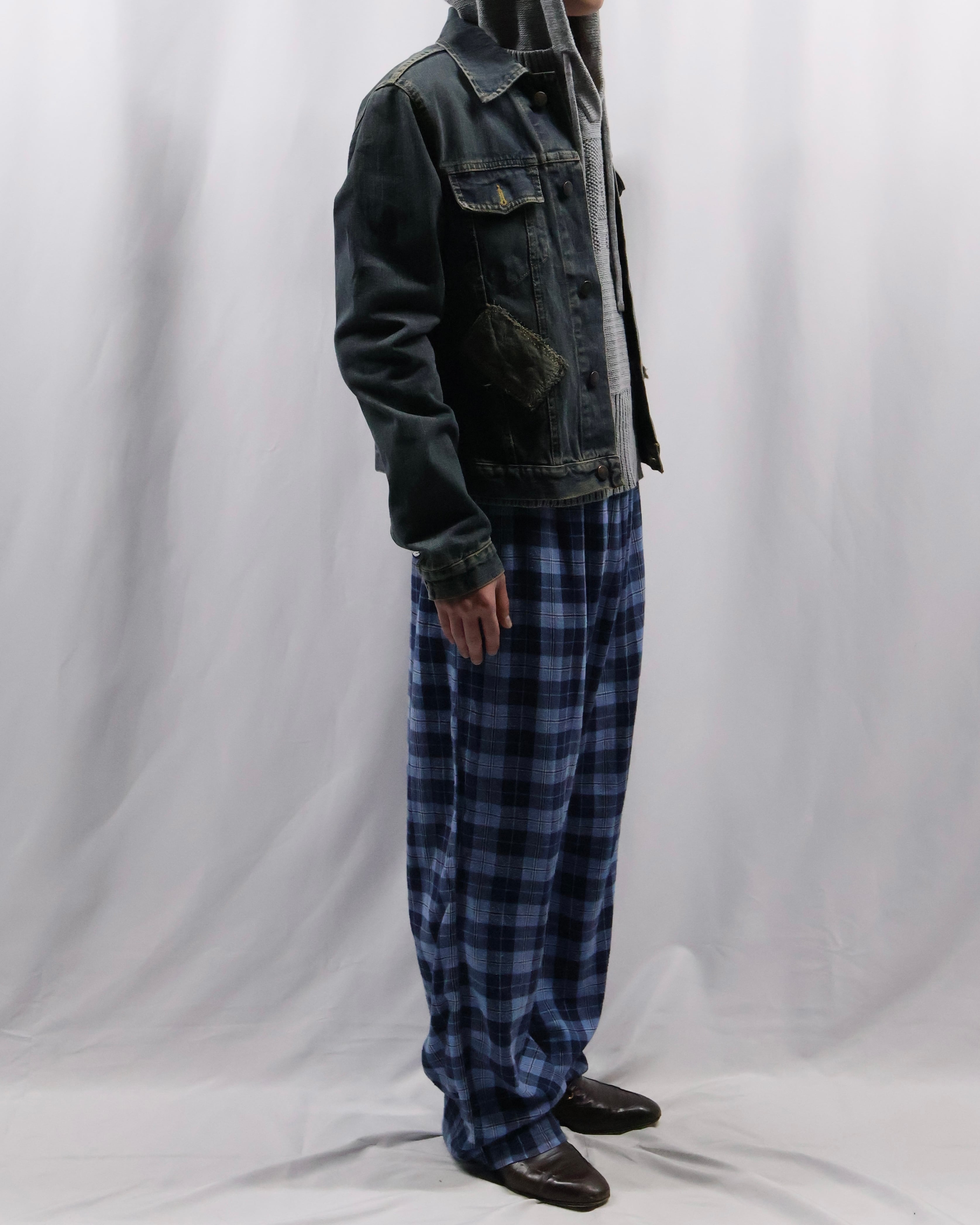 綺麗なシルエットのカラーリングチェックパンツ。緩い雰囲気で小洒落た雰囲気を出したい方にお勧め。太すぎないシルエットでこなれ感も演出する一枚。カジュアルなアウターはもちろんクラシックな装いの外しにもgood