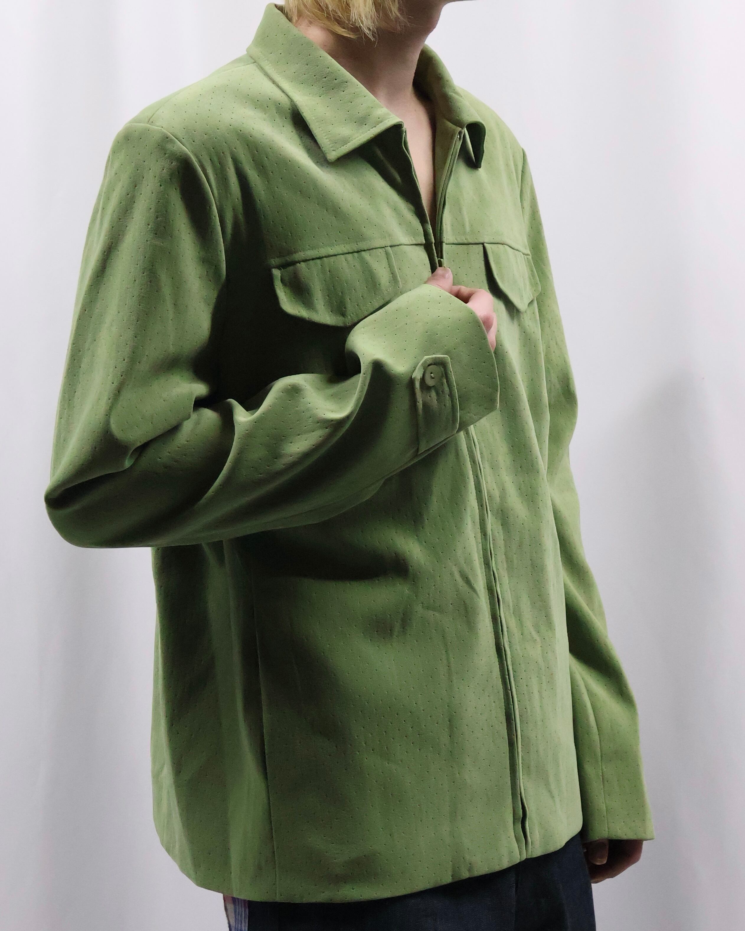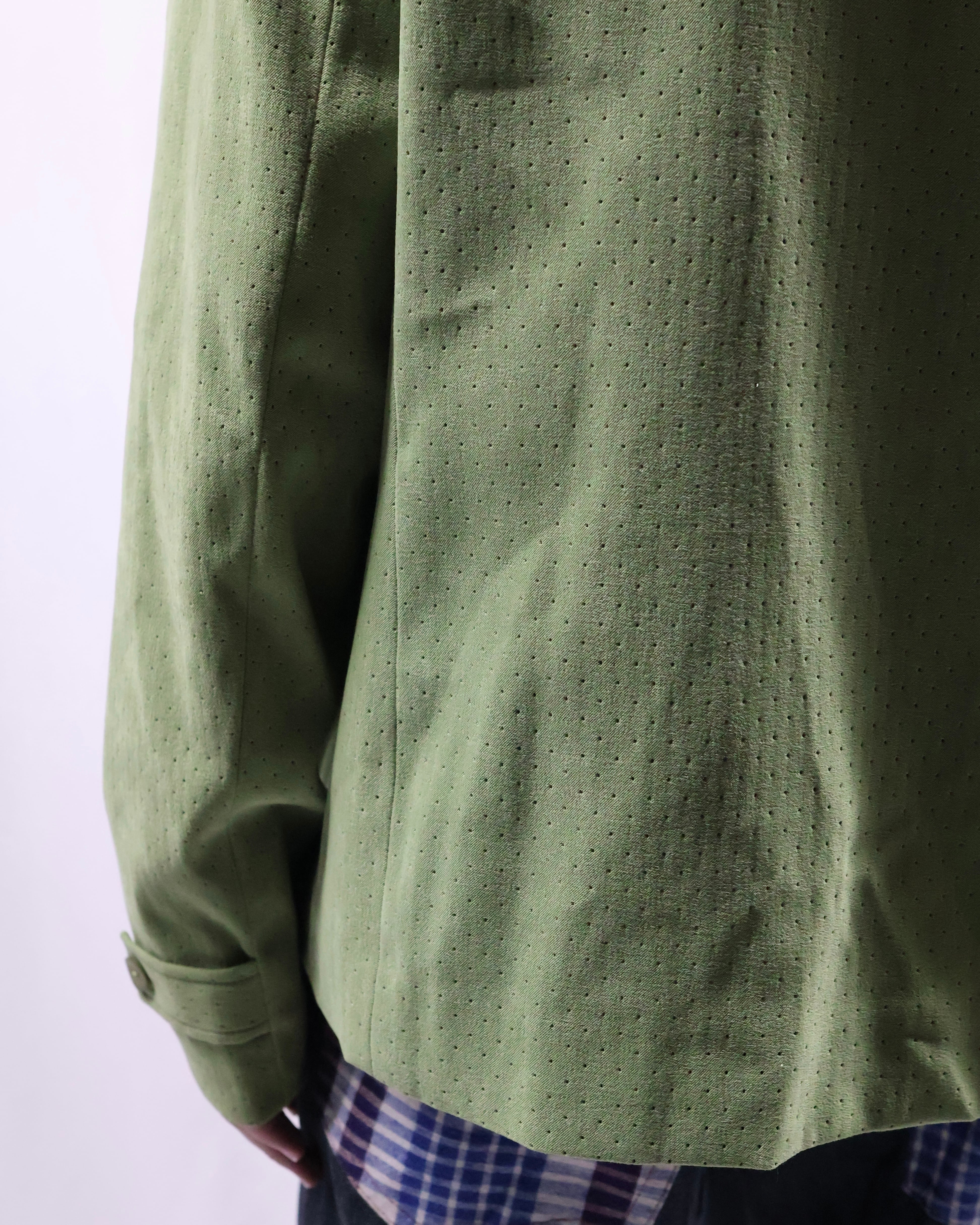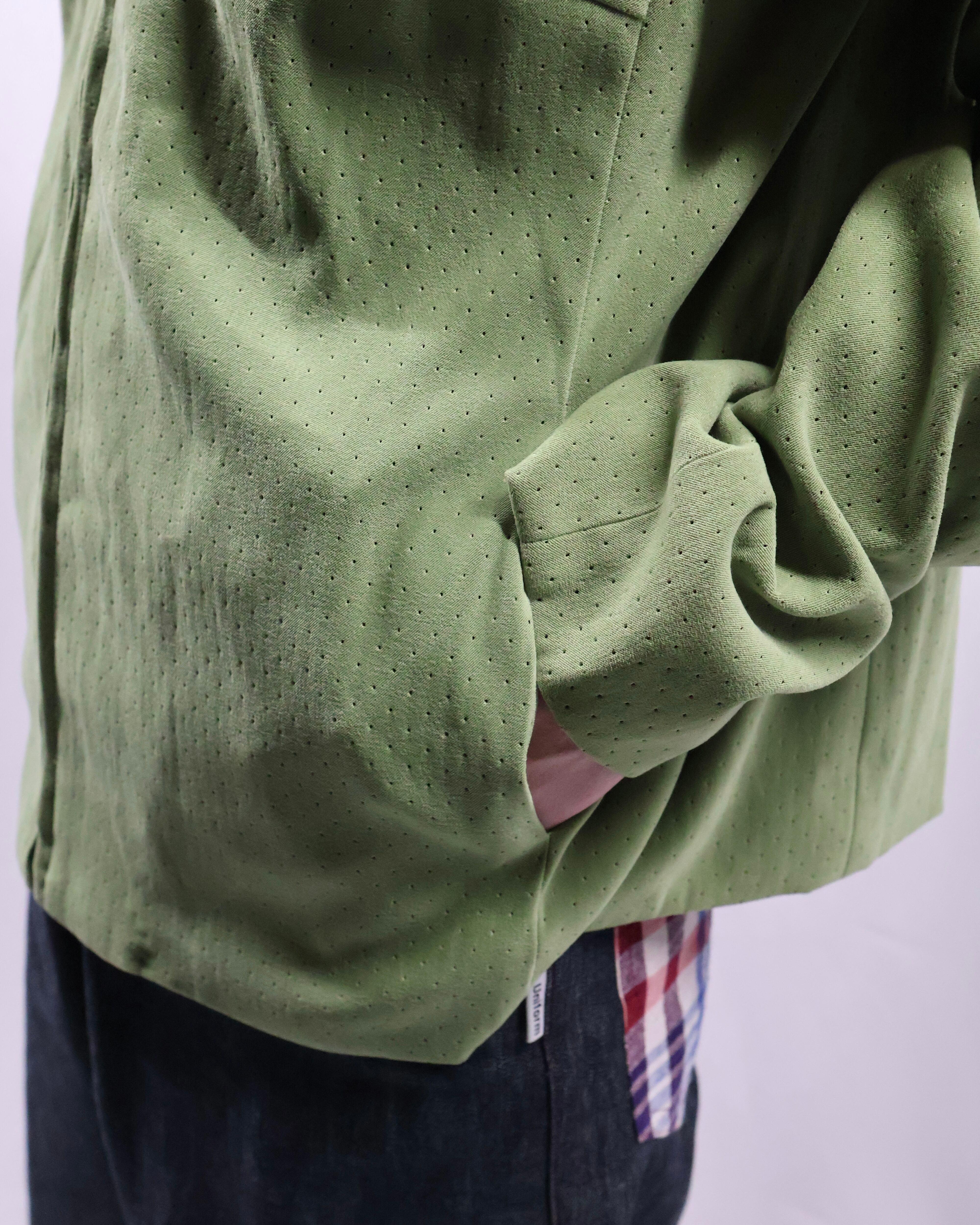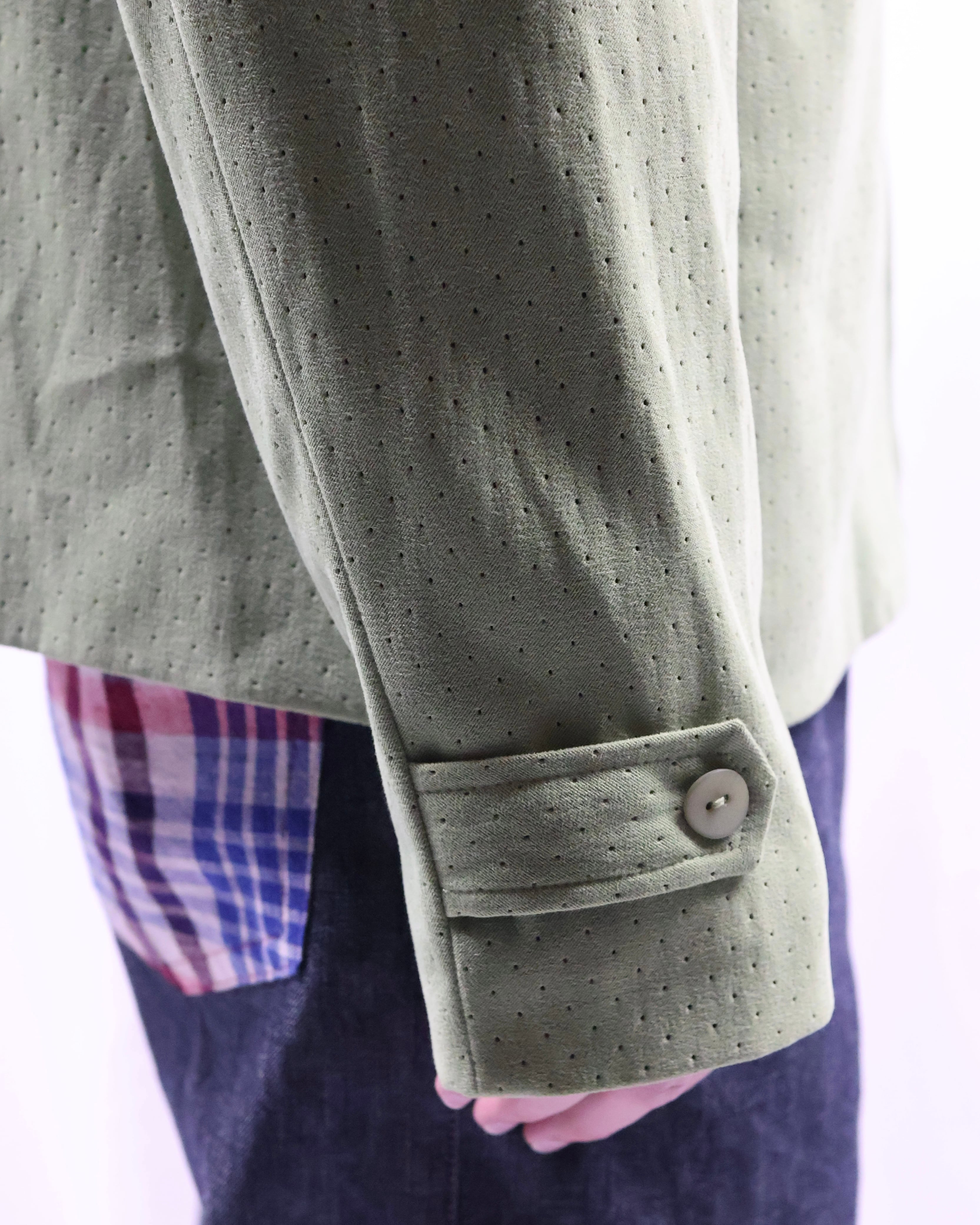 爽やかな色味と全体に施されたパンチホールが特徴のシャツジャケット