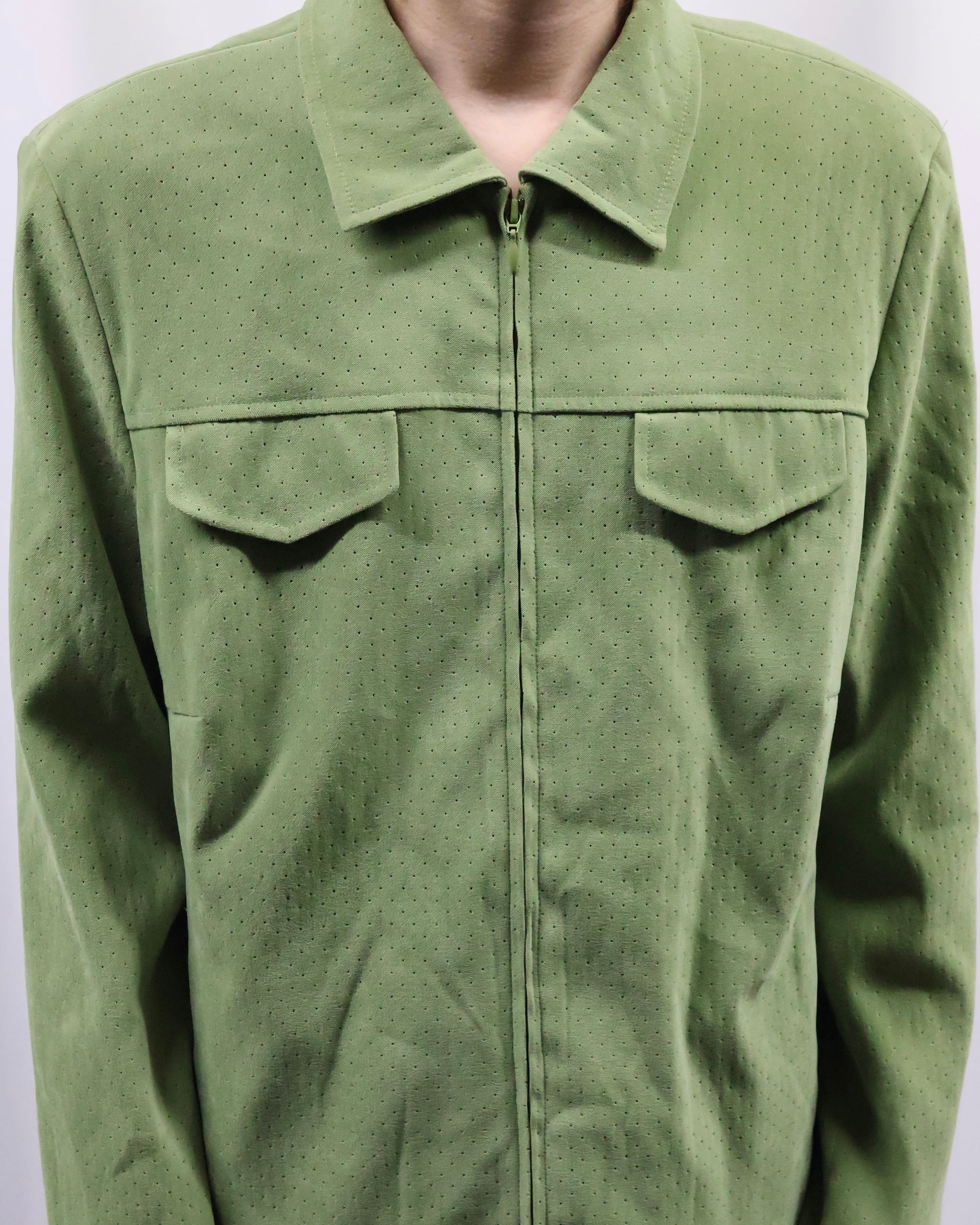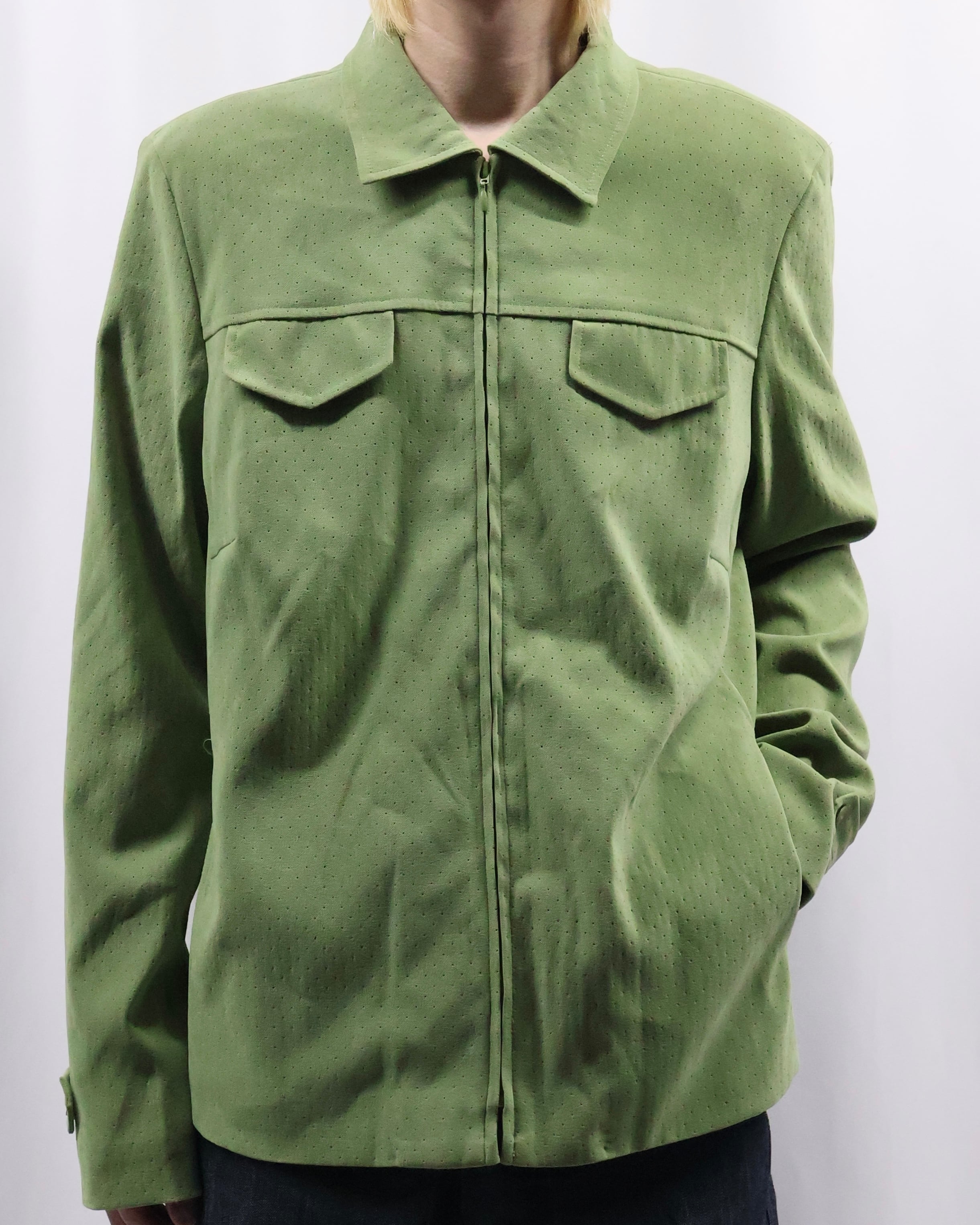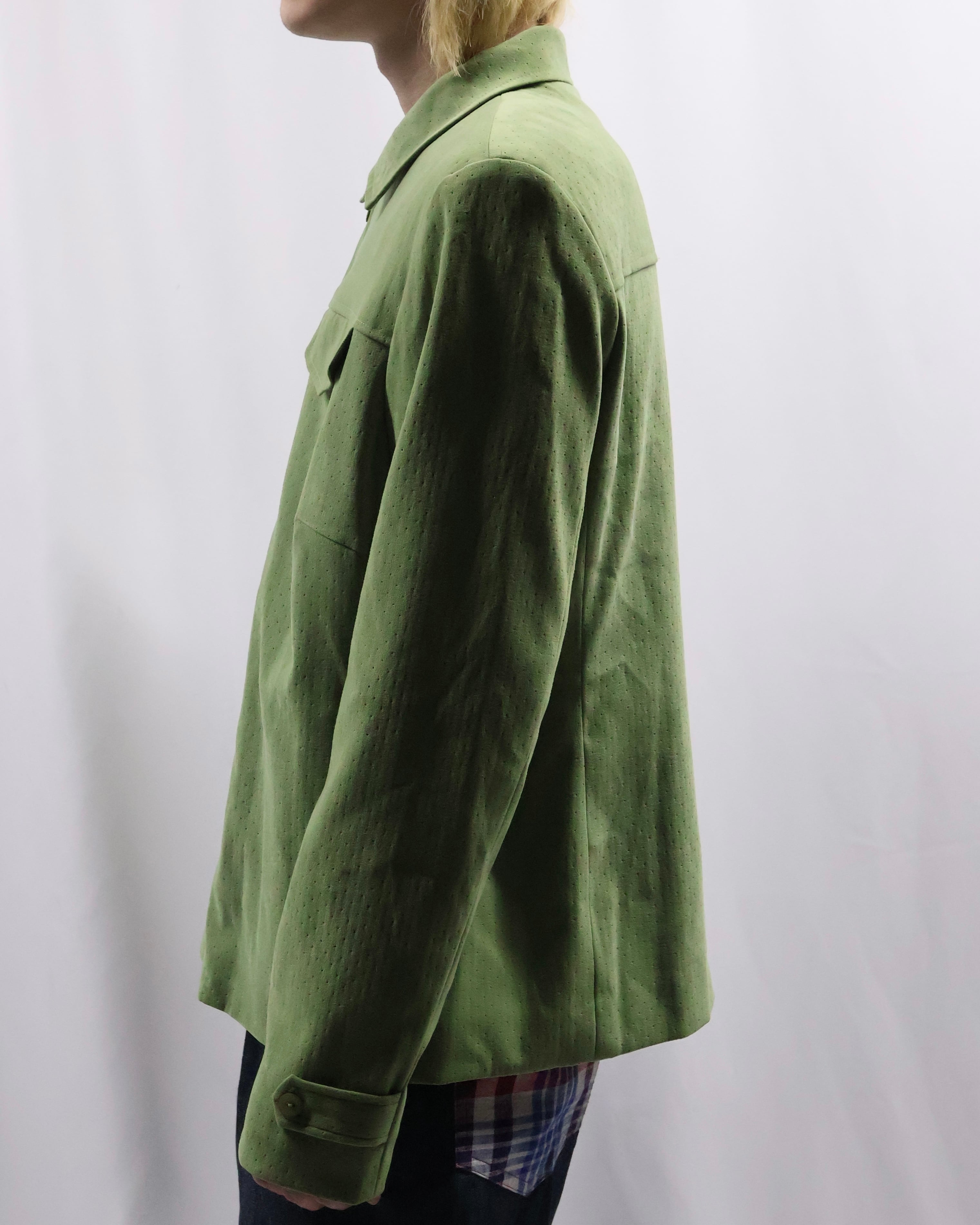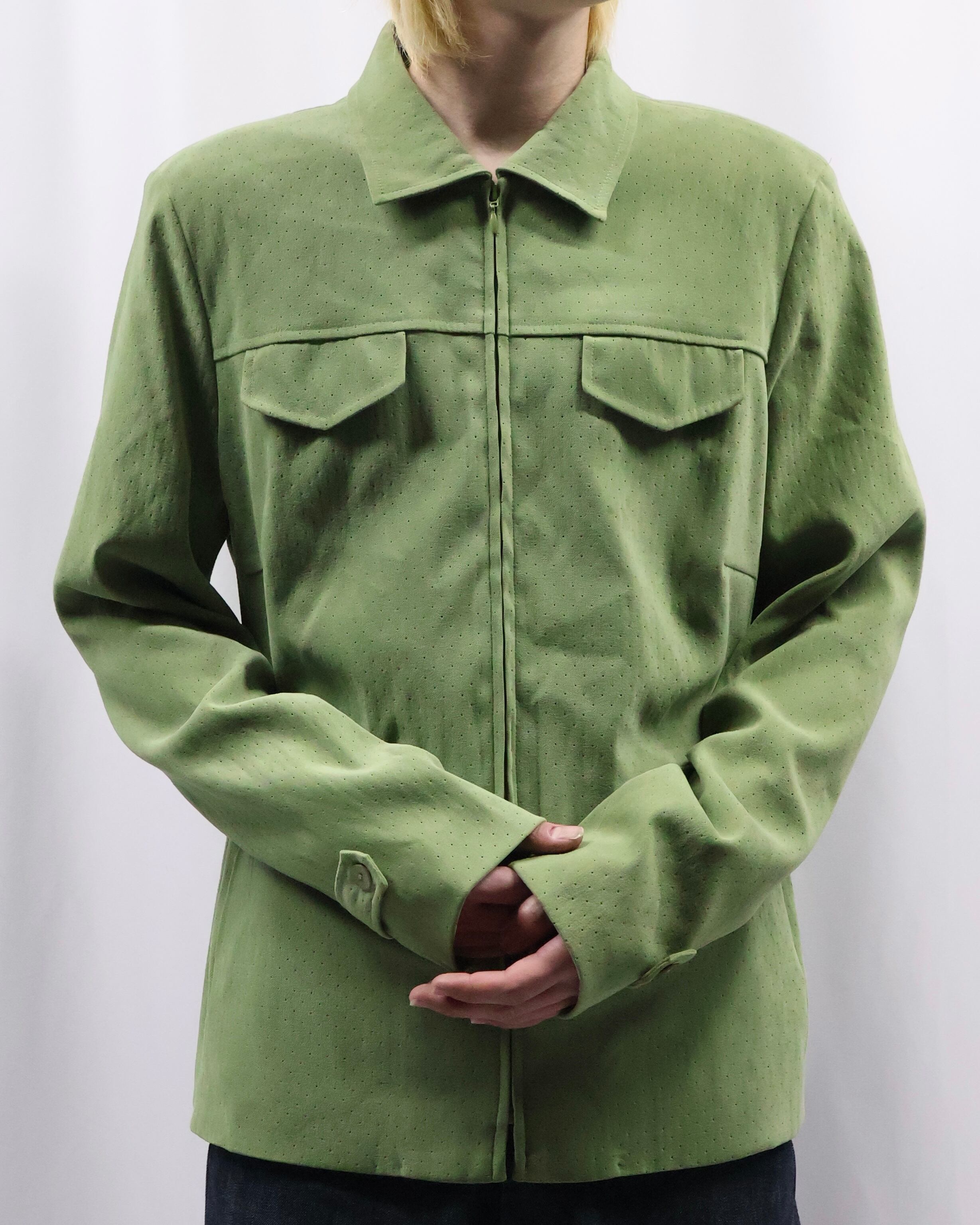 爽やかな色味と全体に施されたパンチホールが特徴のシャツジャケット