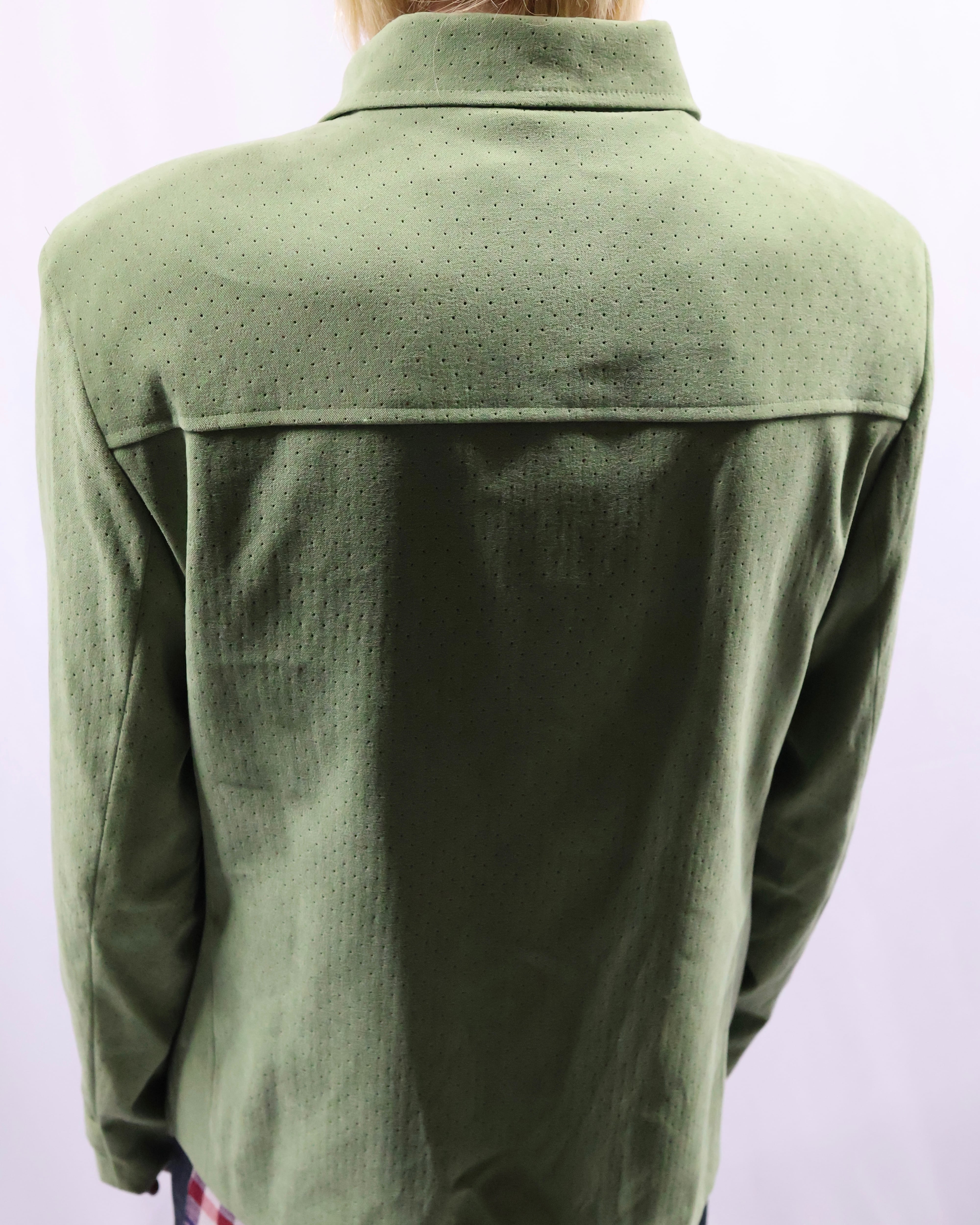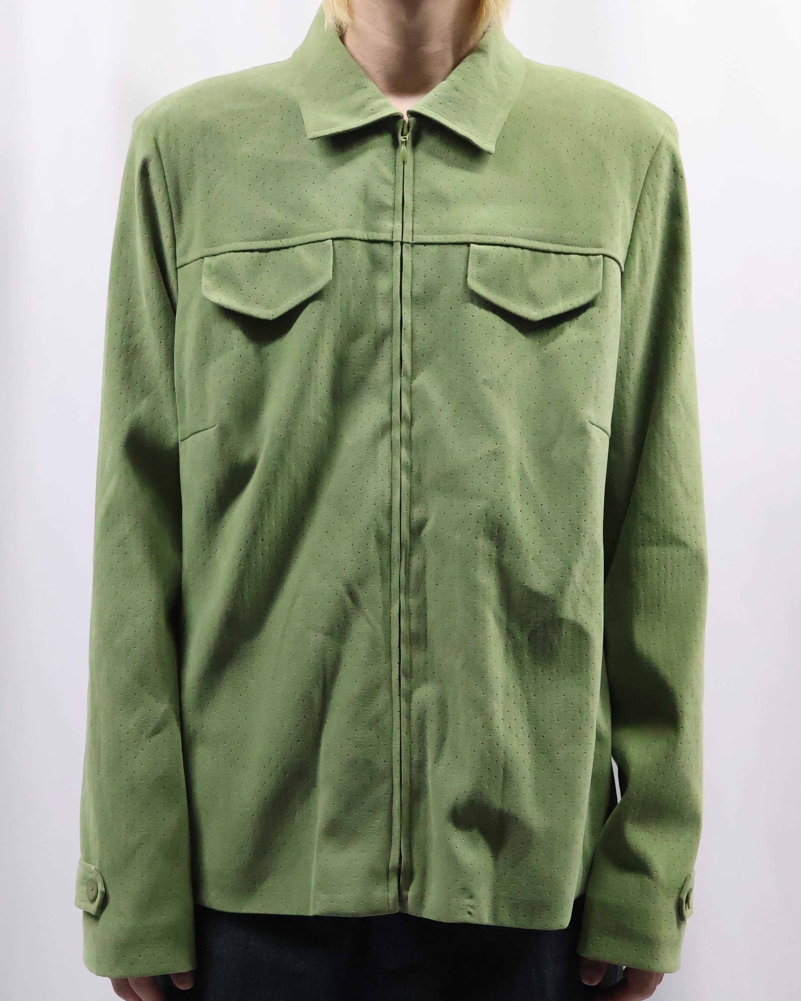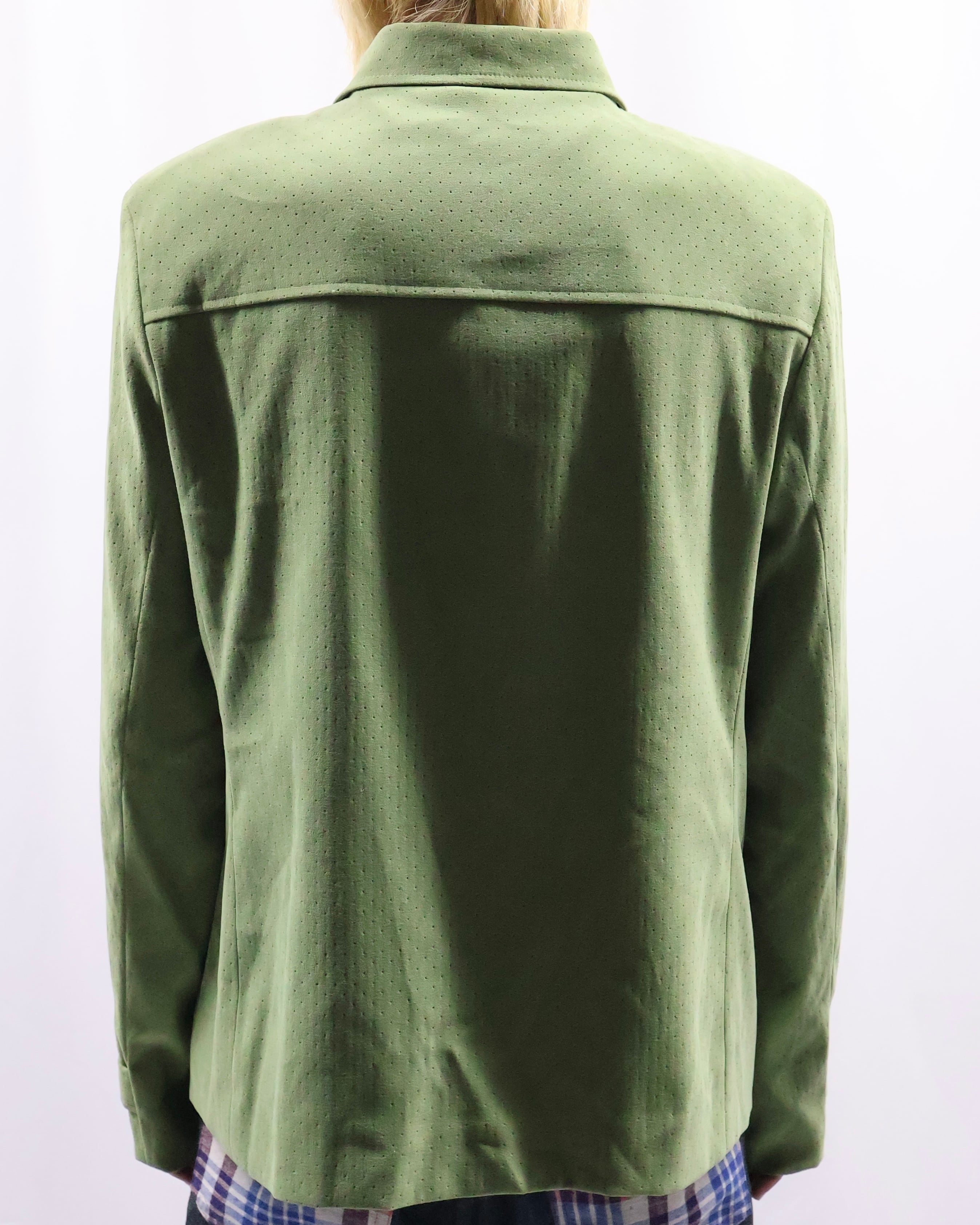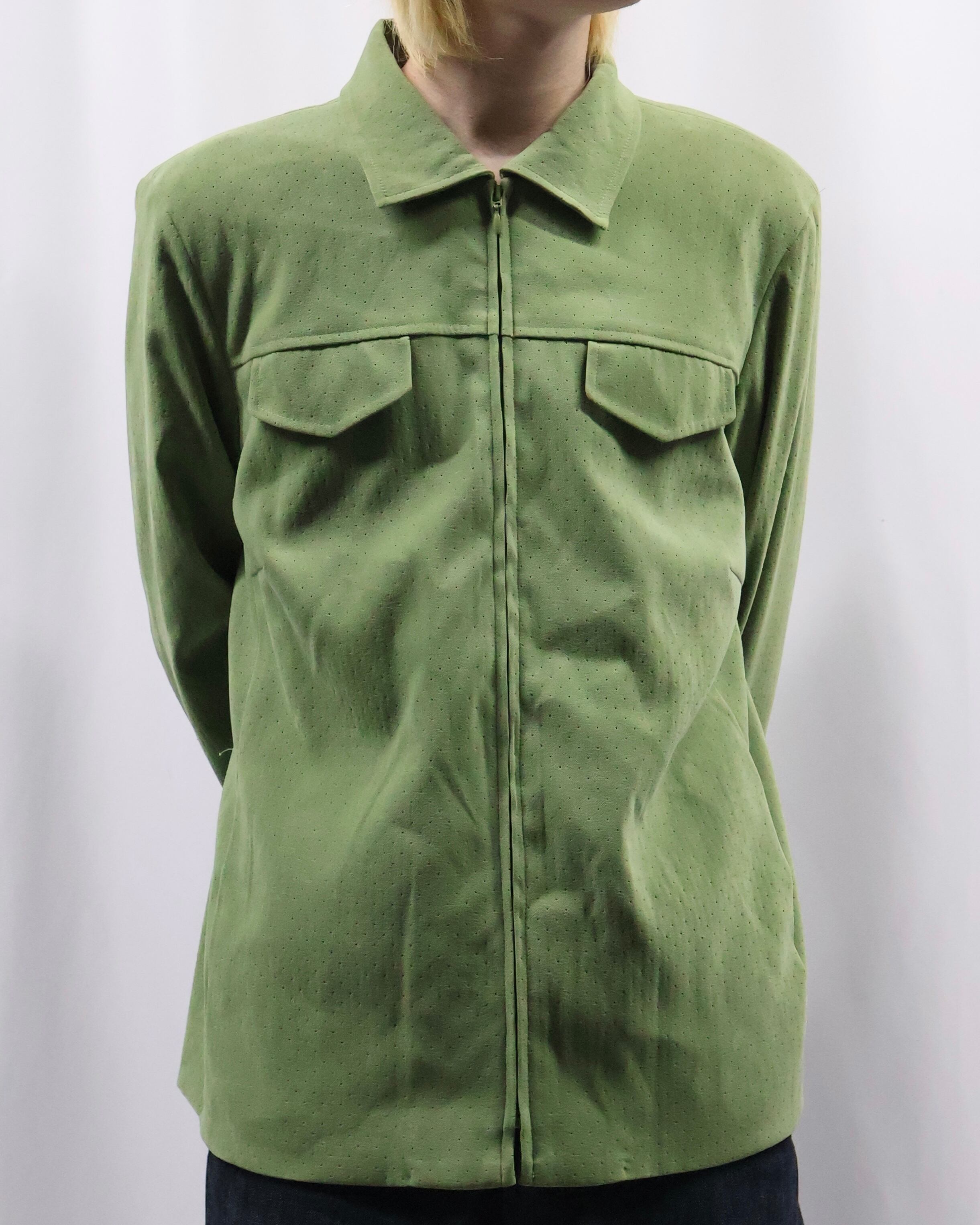 爽やかな色味と全体に施されたパンチホールが特徴のシャツジャケット
