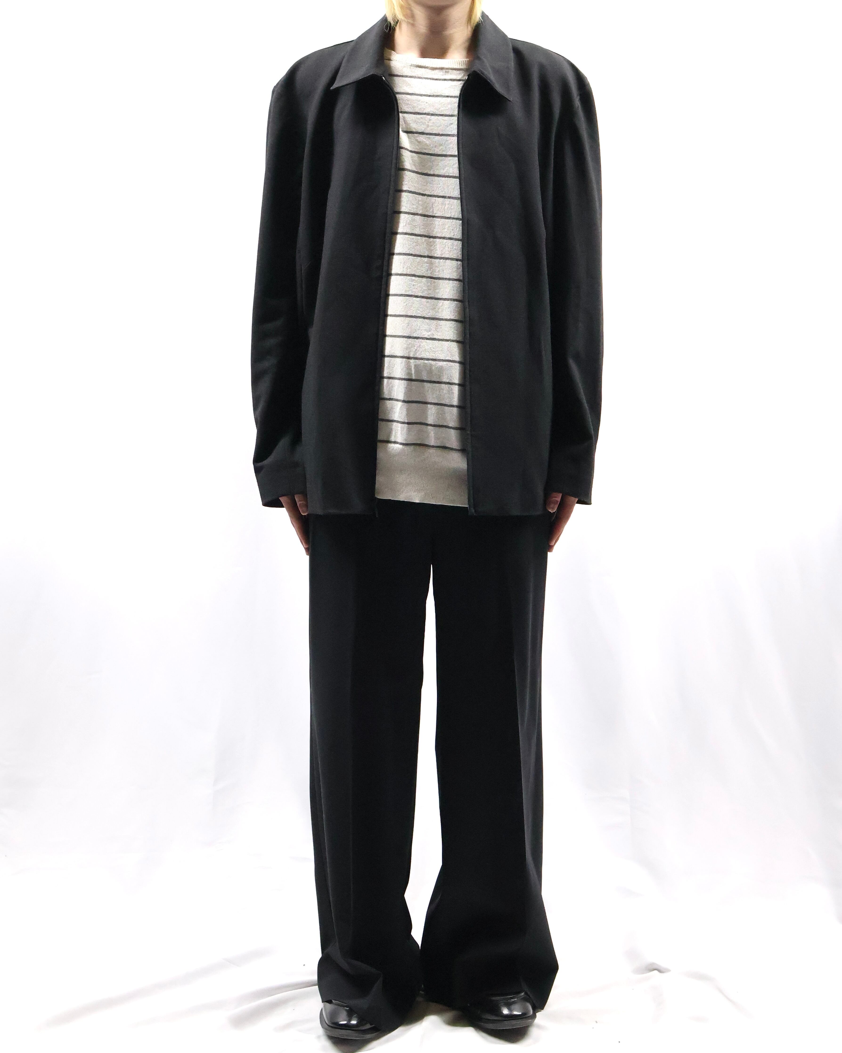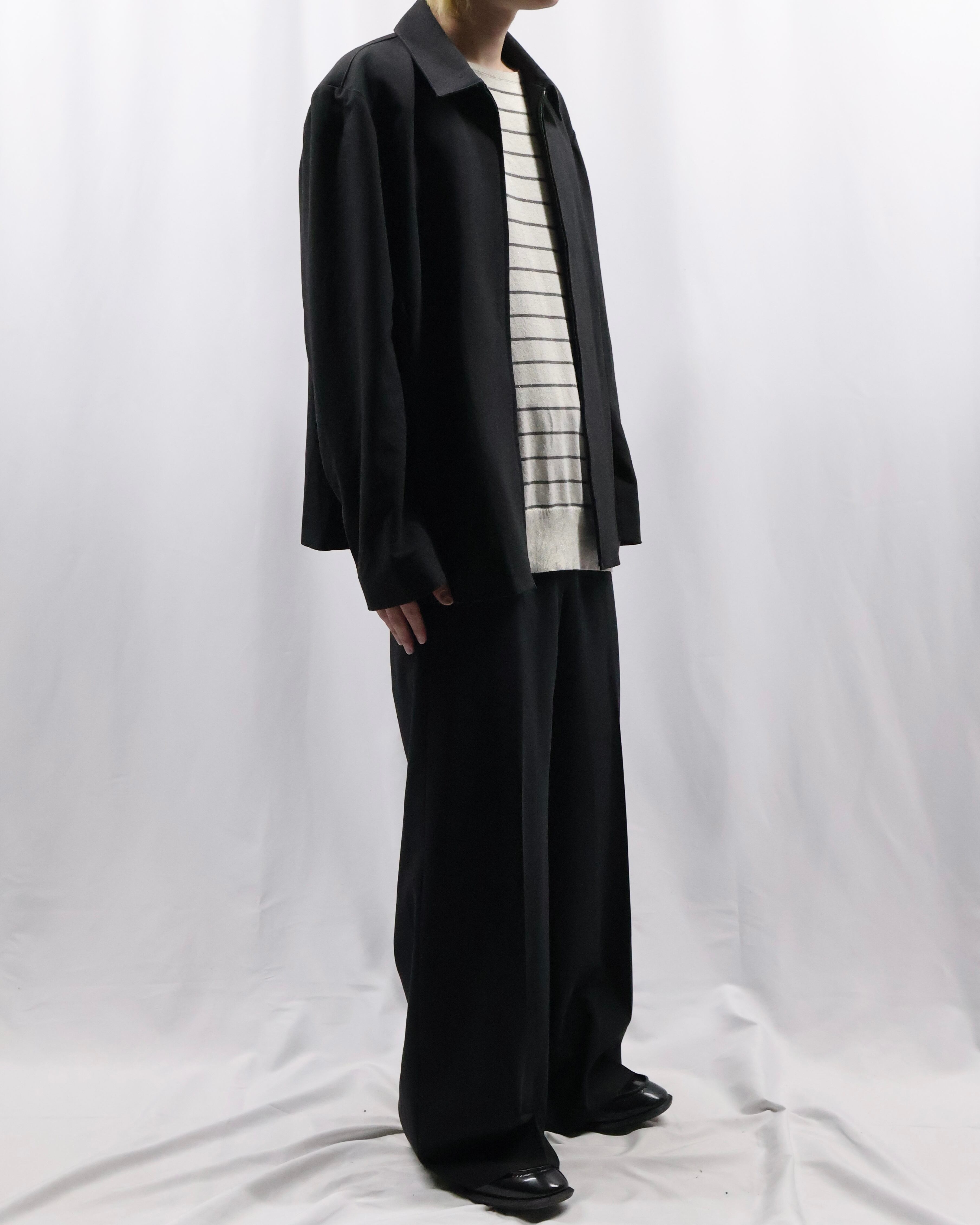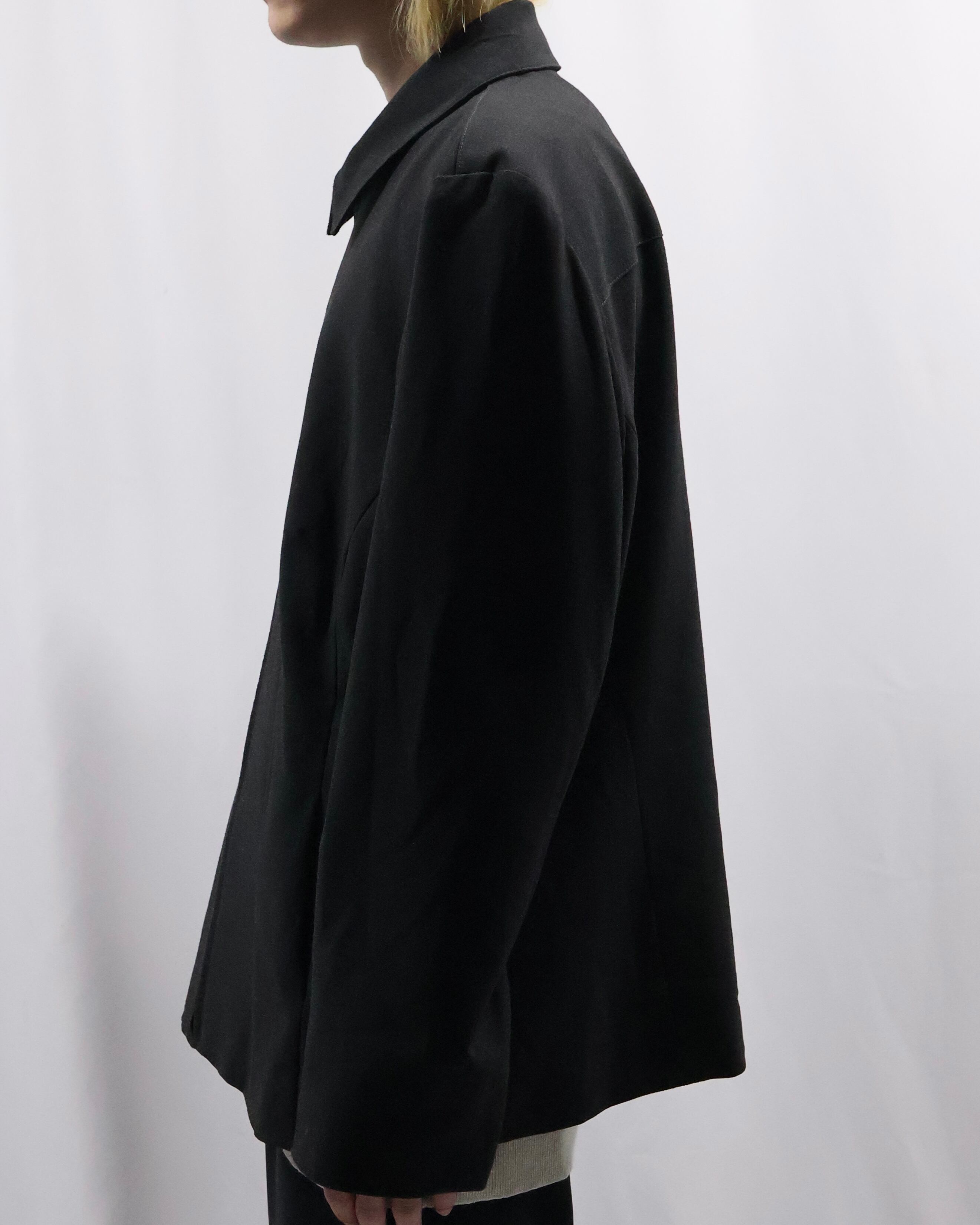 無駄のないミニマルなデザインが特徴でモードに落とし込める一着。程よくゆとりのあるサイズ感の為インナーを選ばず着用可能。