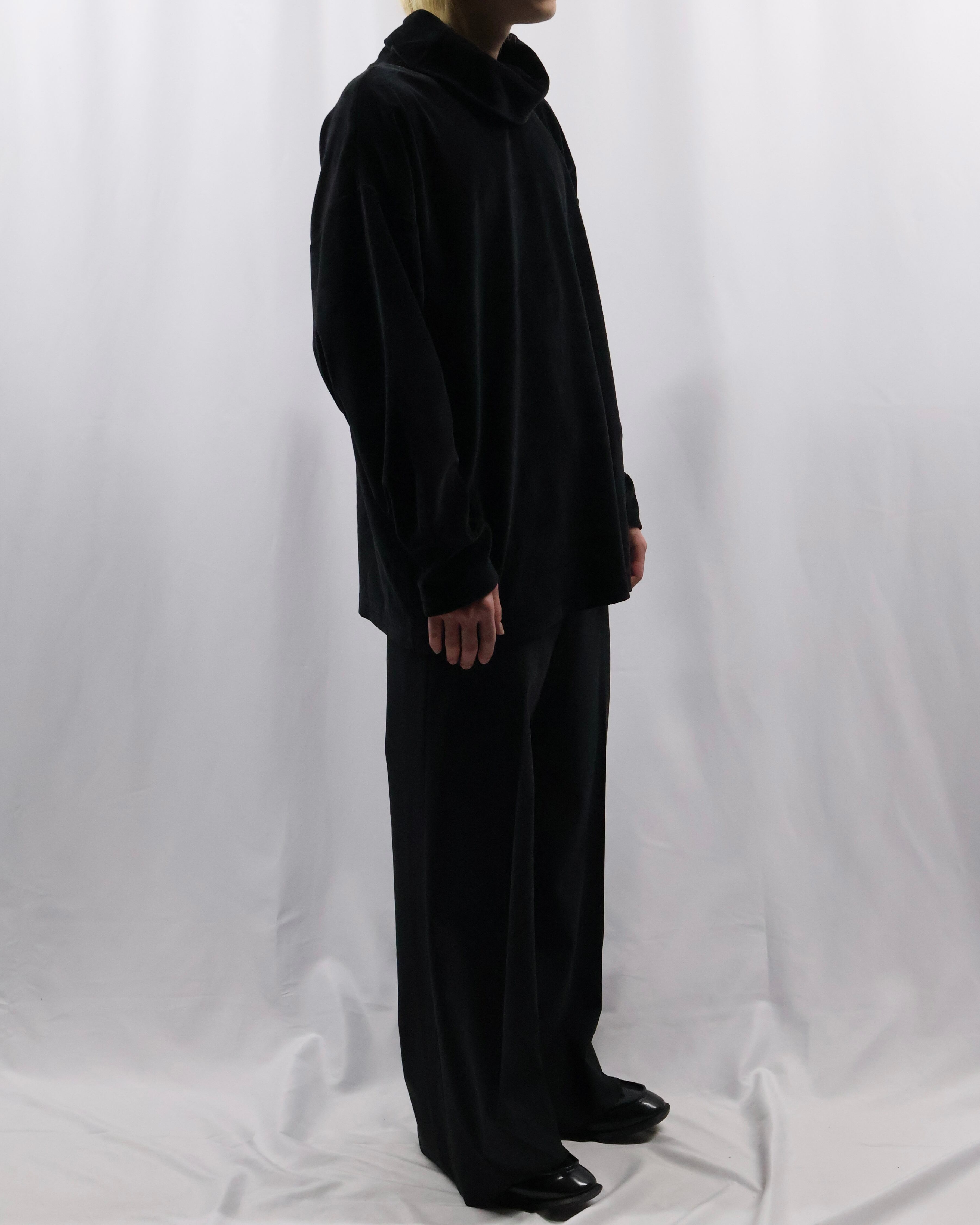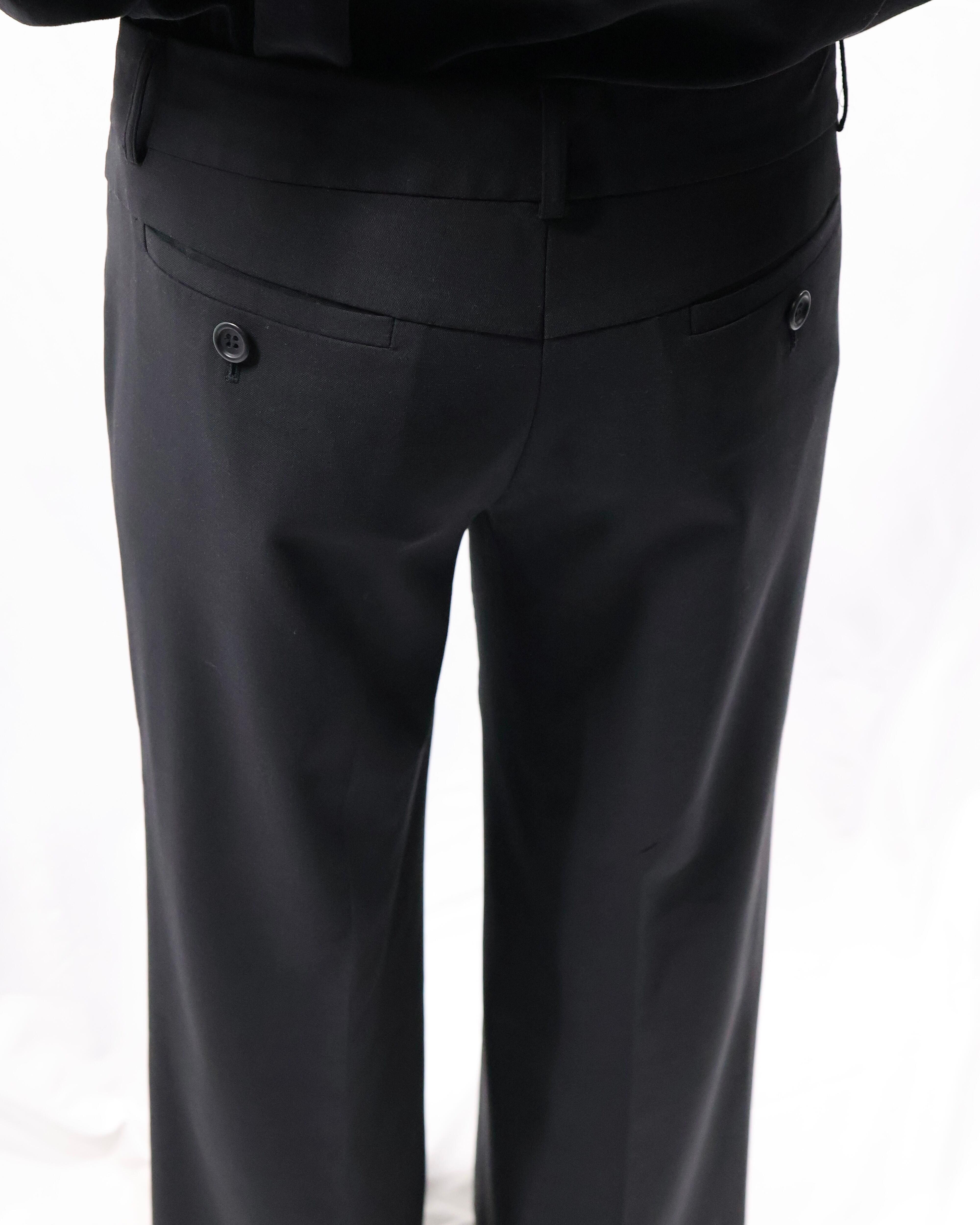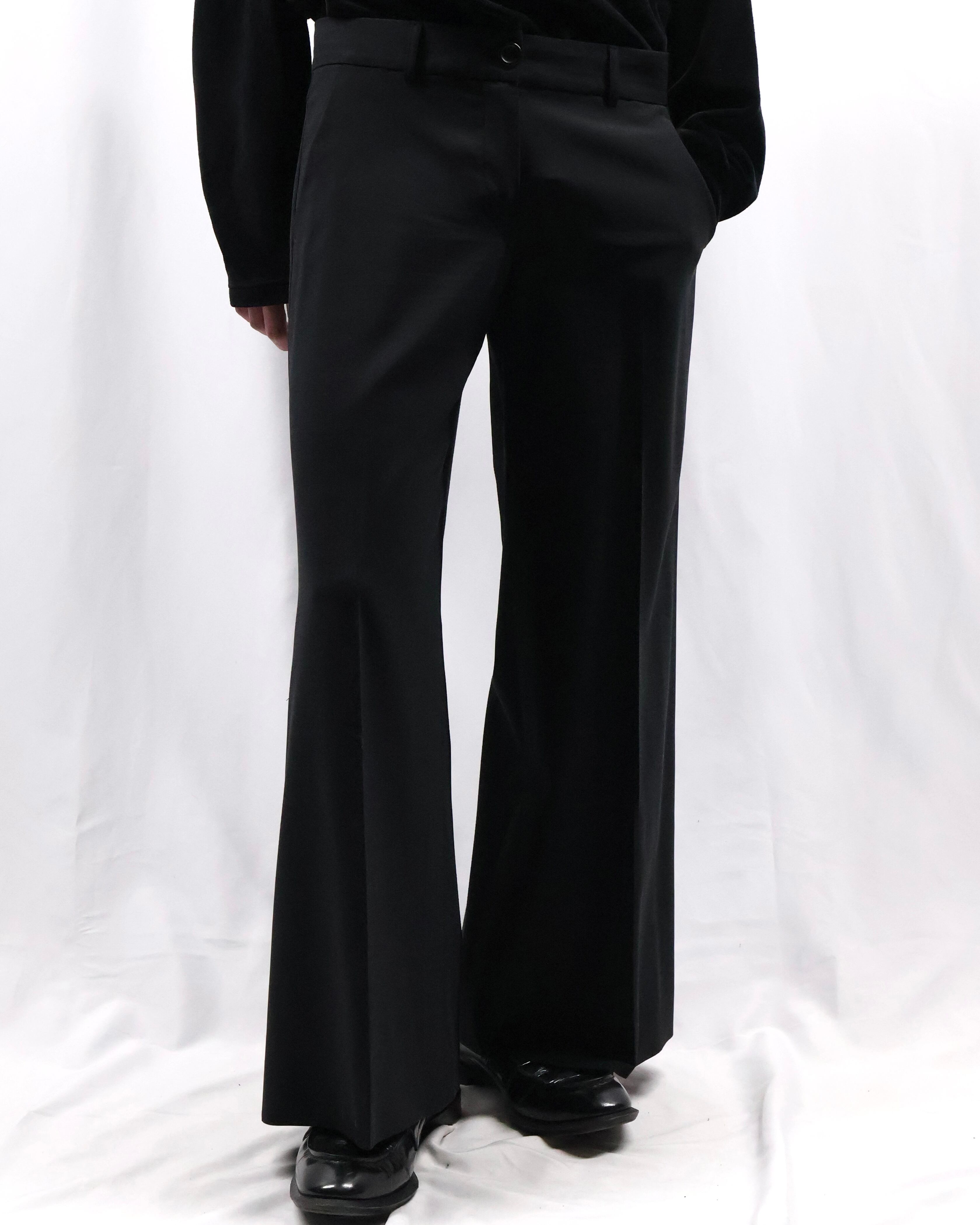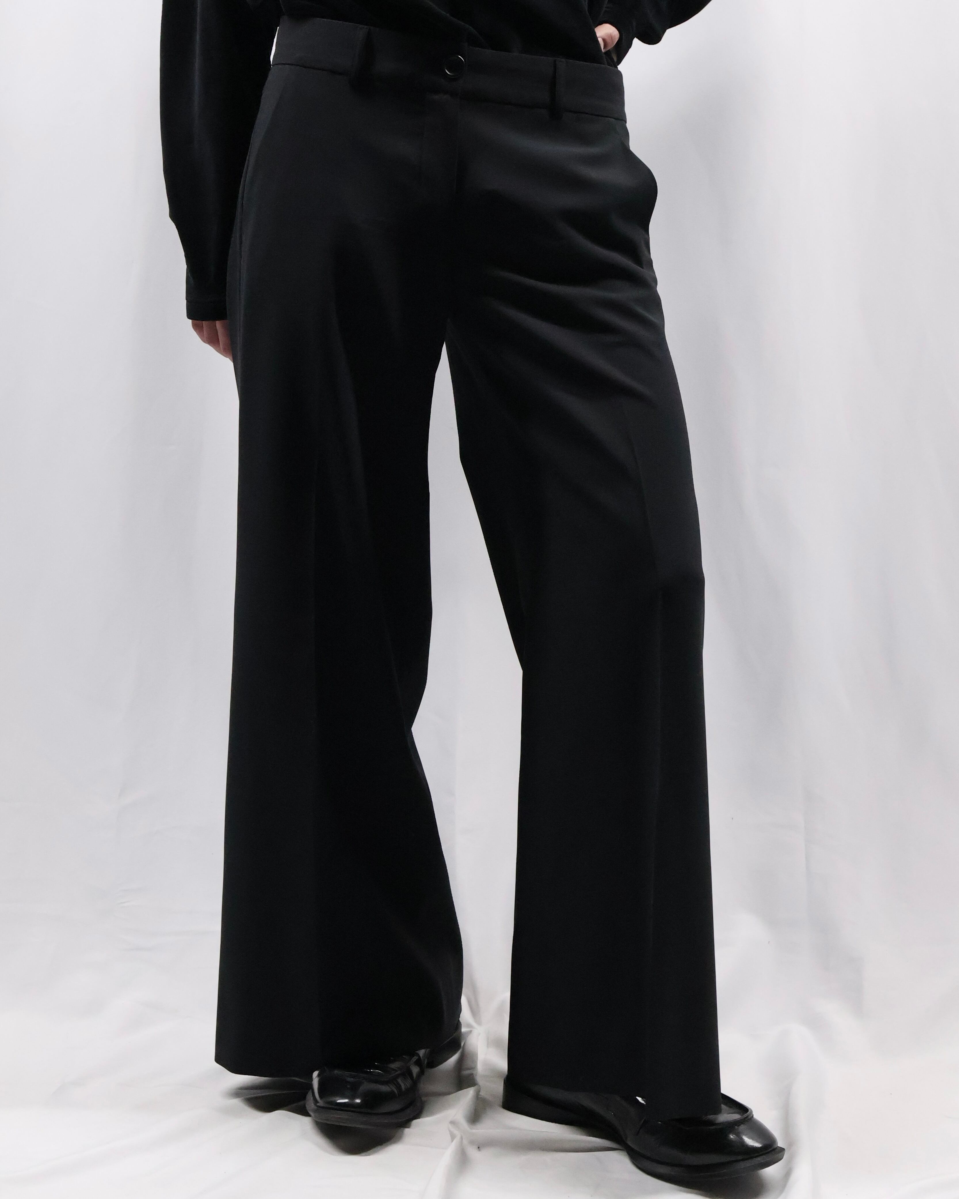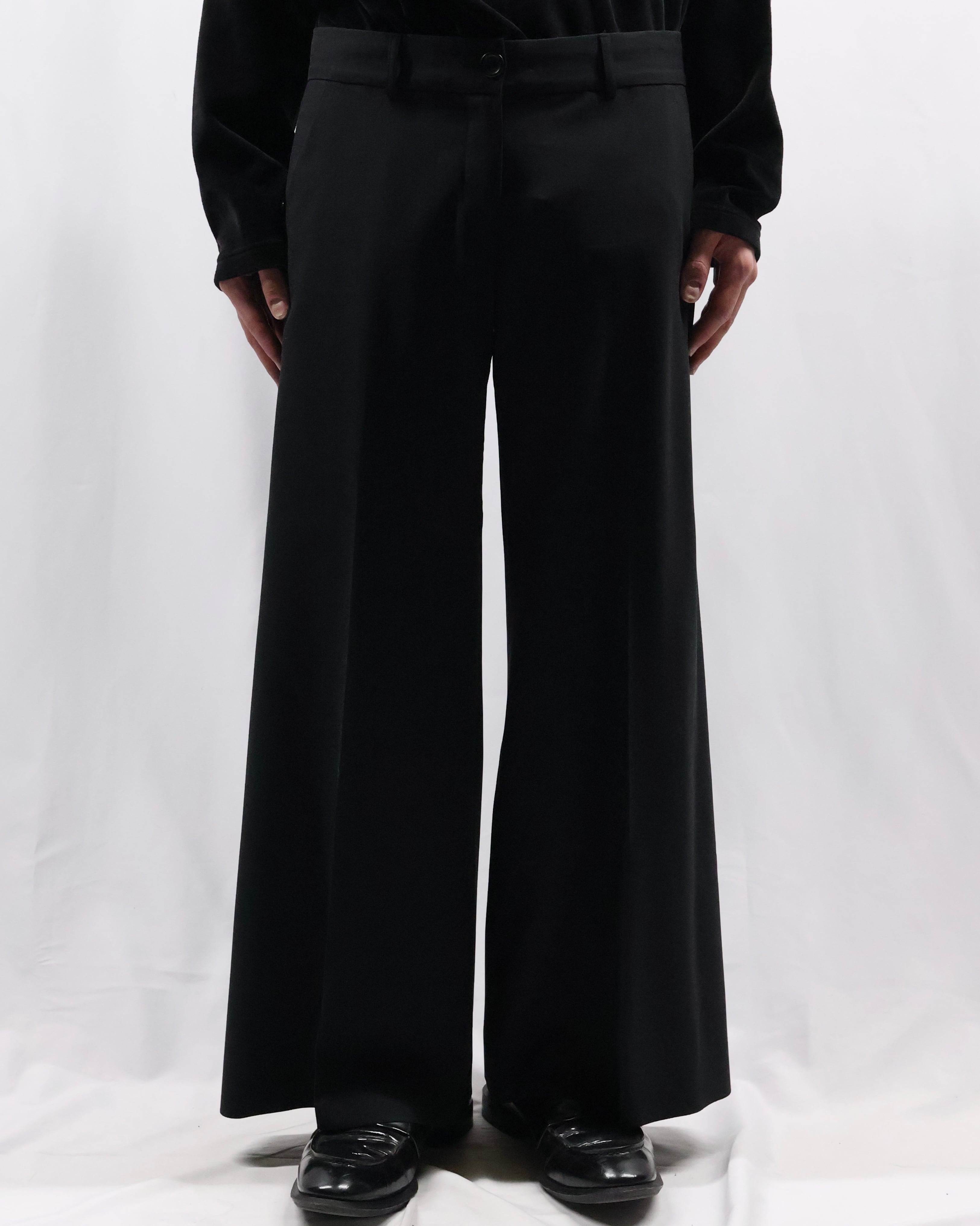 センタープレスの入った落ち感のある生地でドレスな印象もありながら、クロップド丈の為ブーツ合わせやソックスを見せるスタイルなど幅広くスタイリングが楽しめるアイテム。