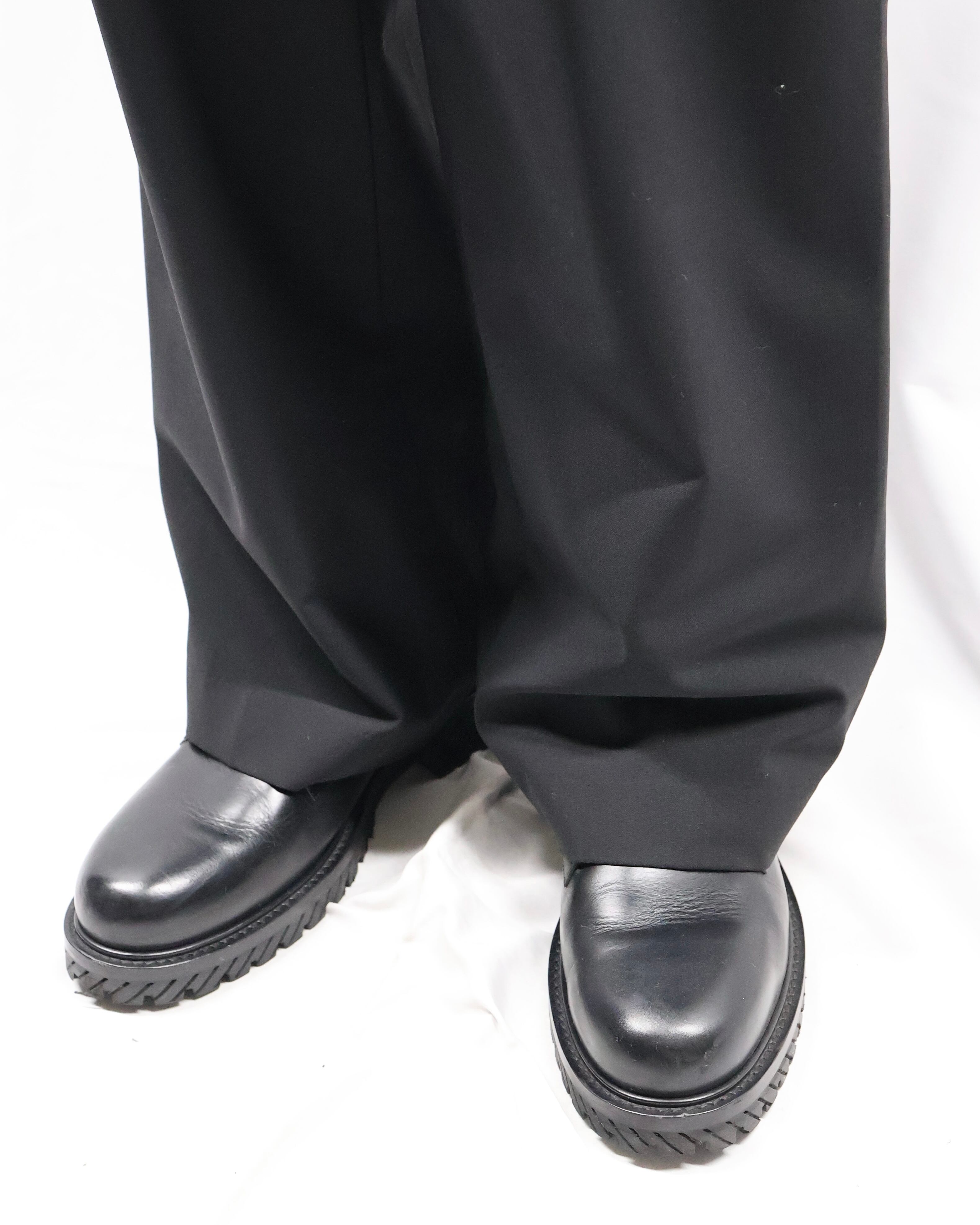 落ち感のある生地感とストレートシルエットの為、どんなトップスとも合わせられる一本。