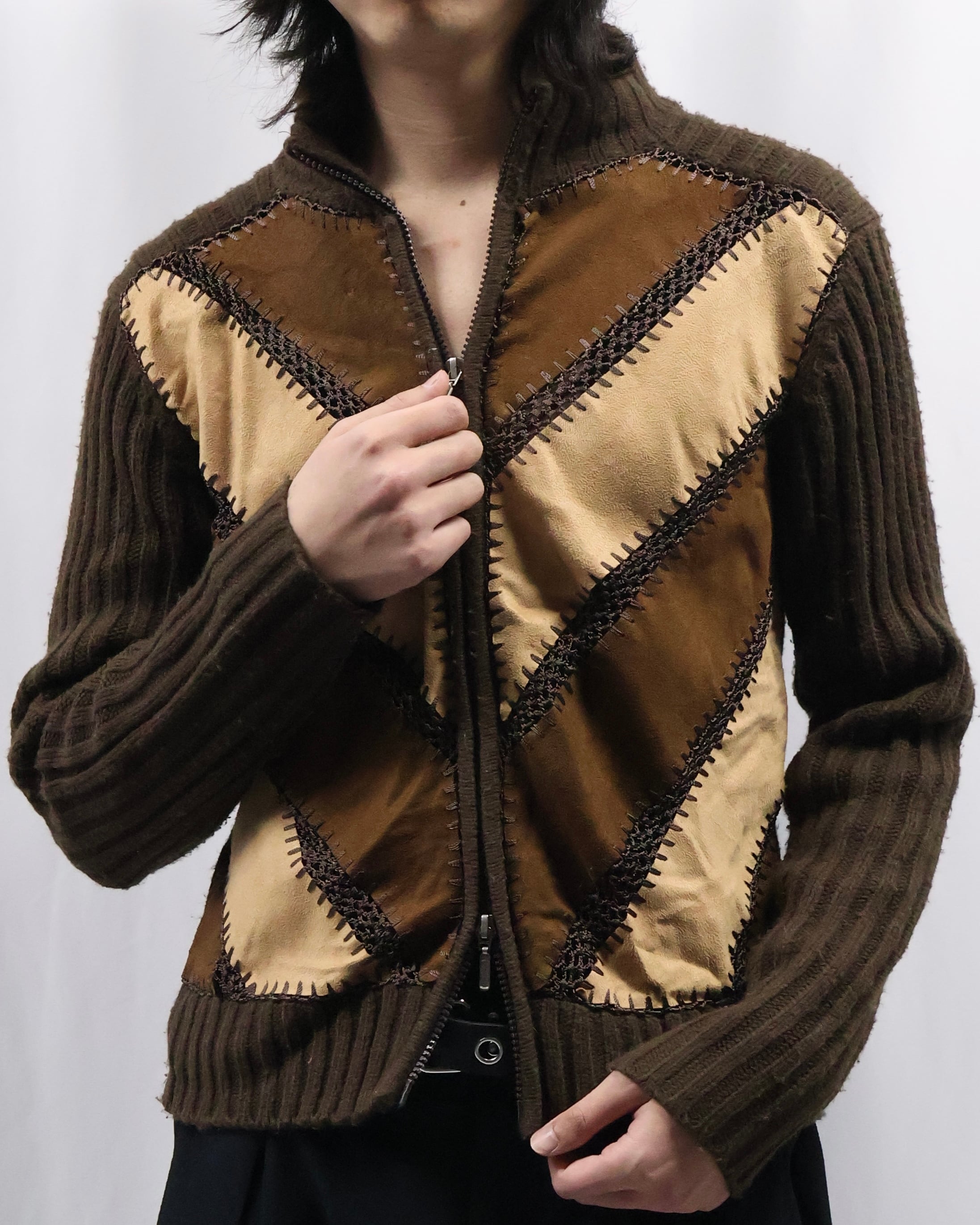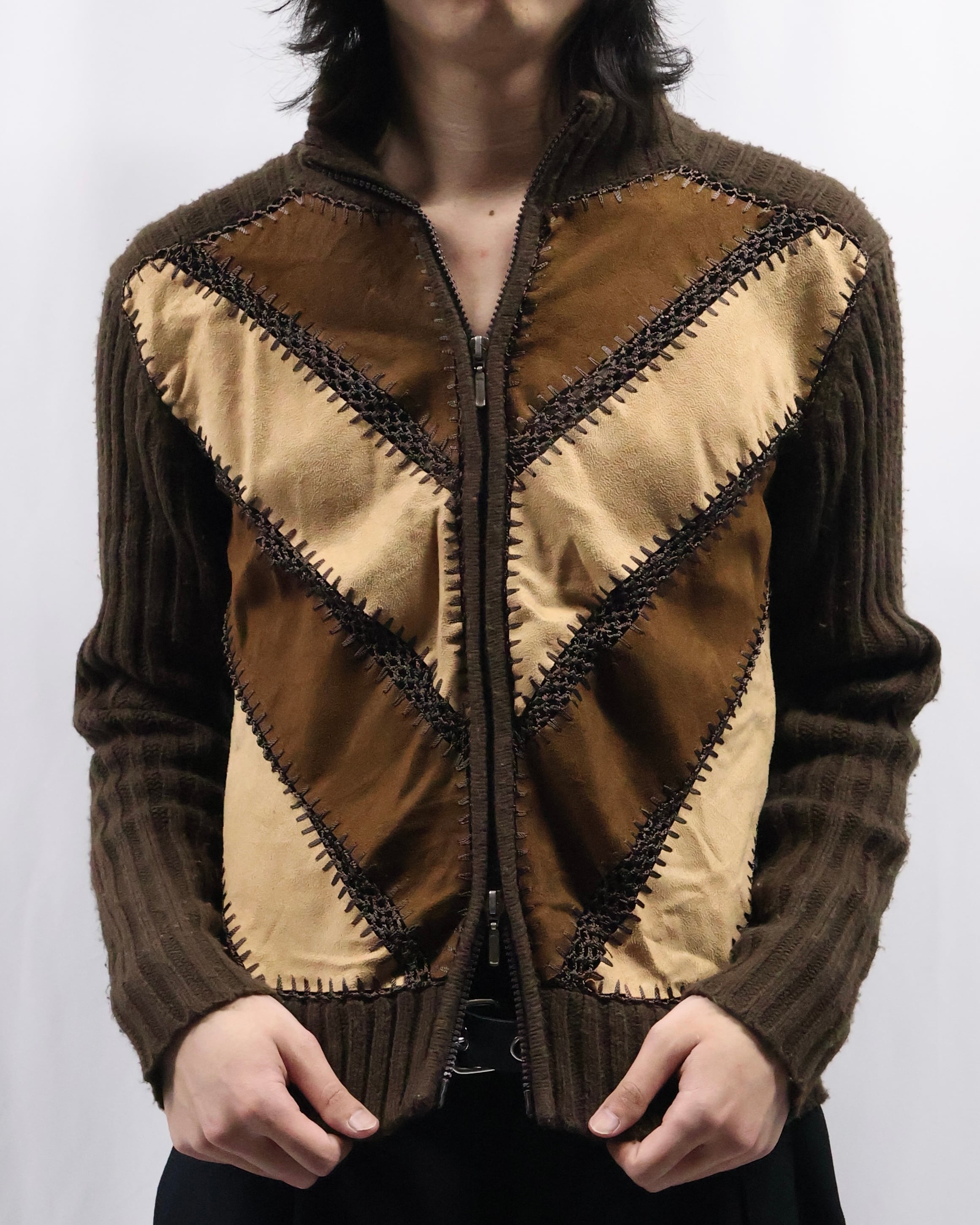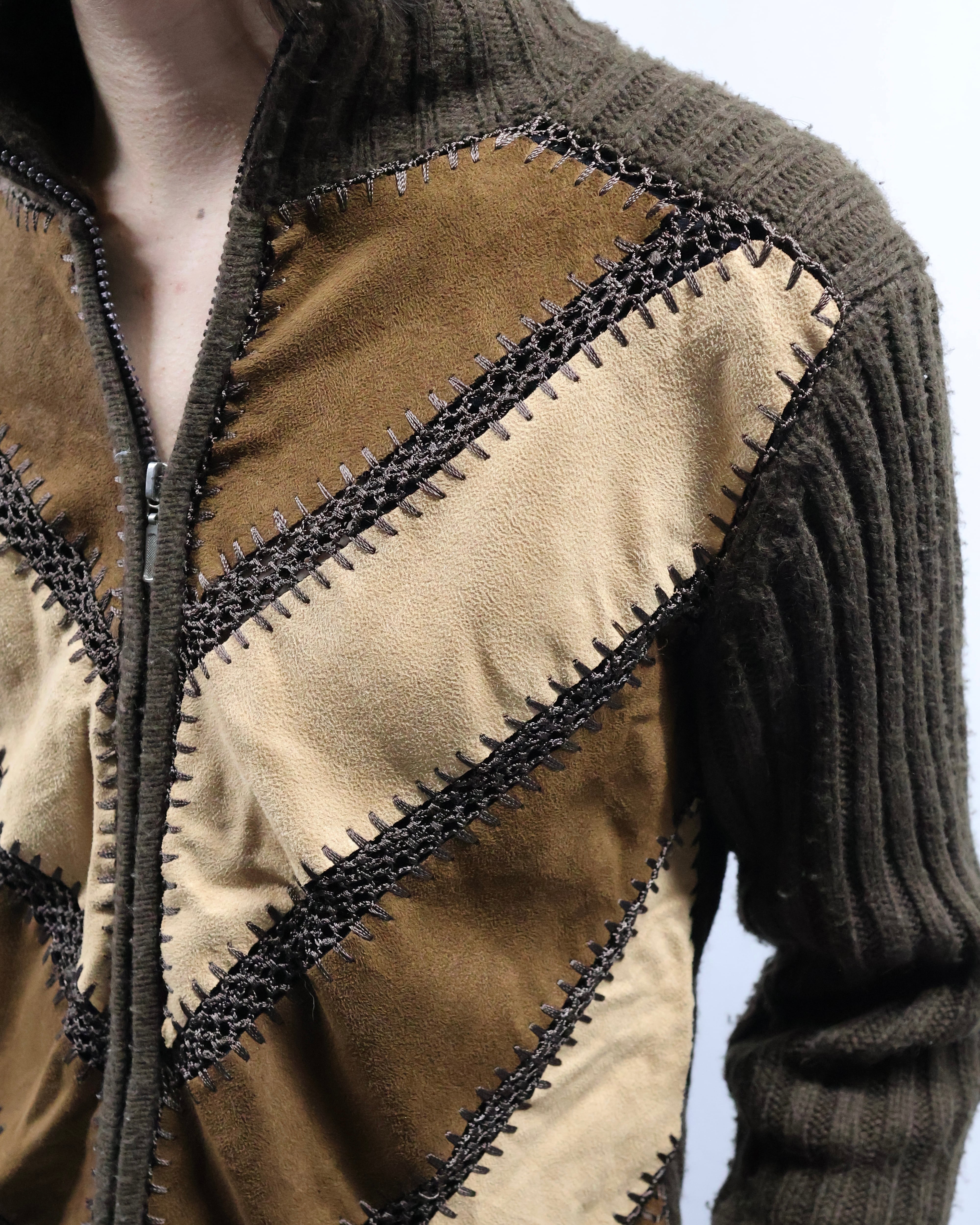 patchwork design double zip jacket