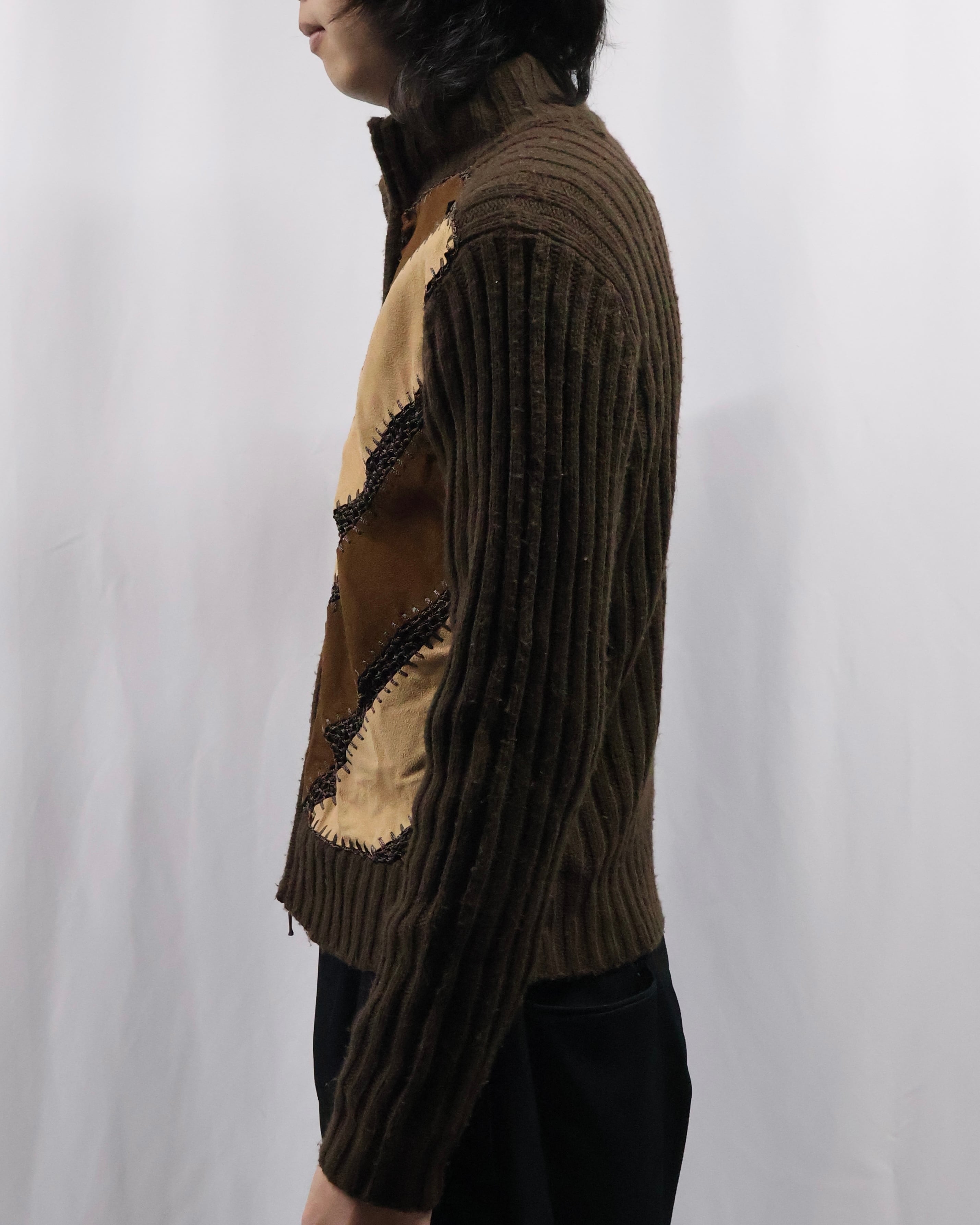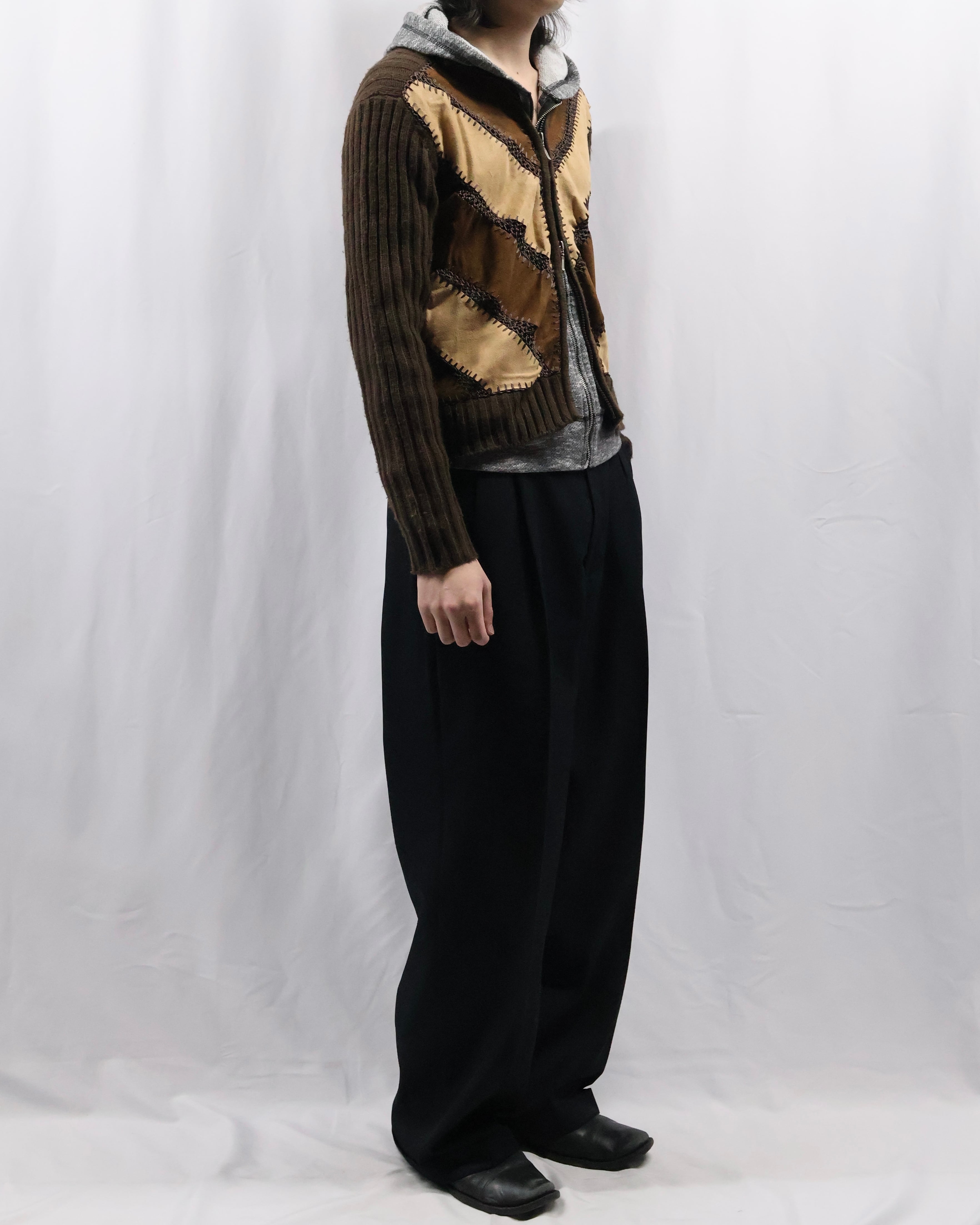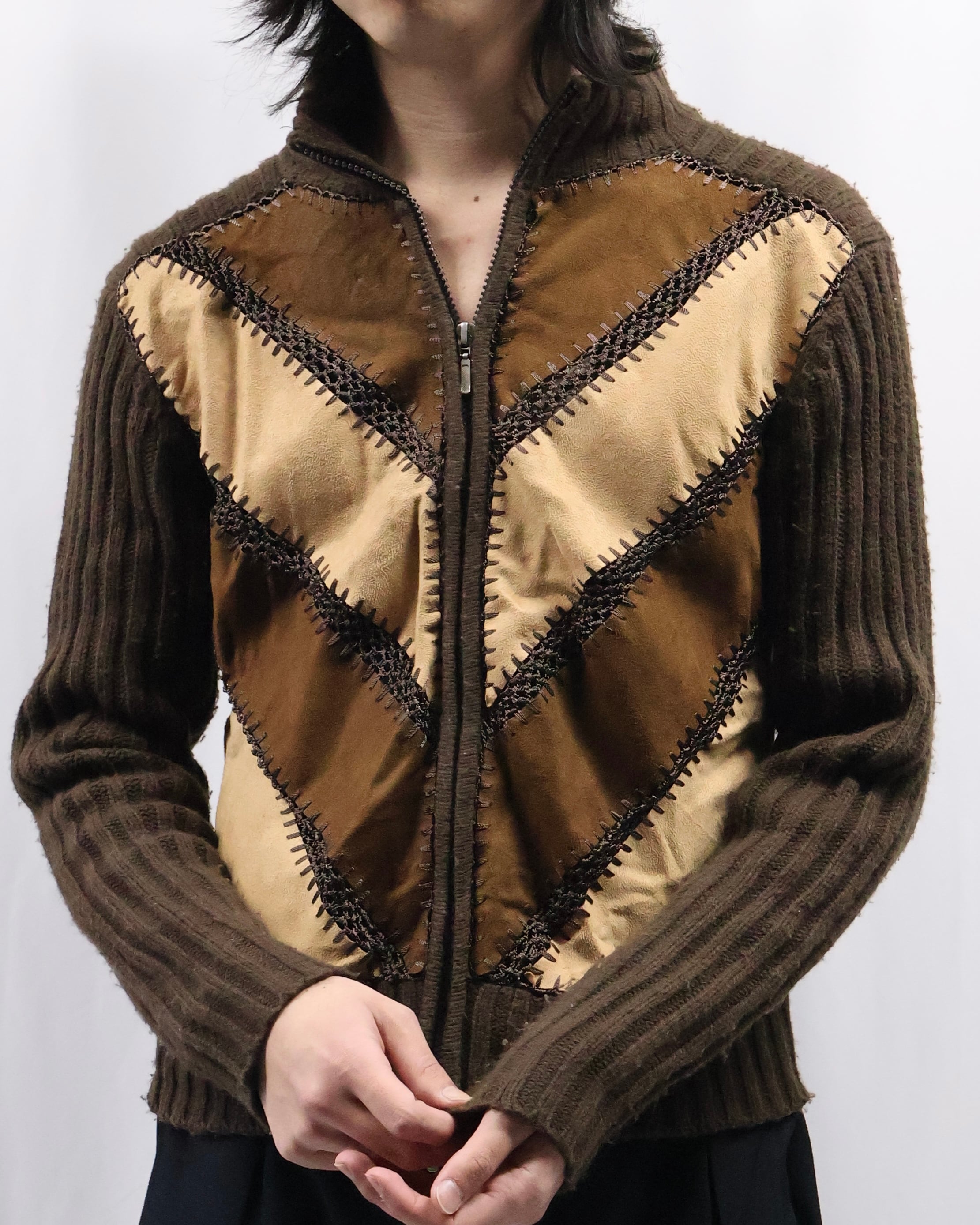 patchwork design double zip jacket