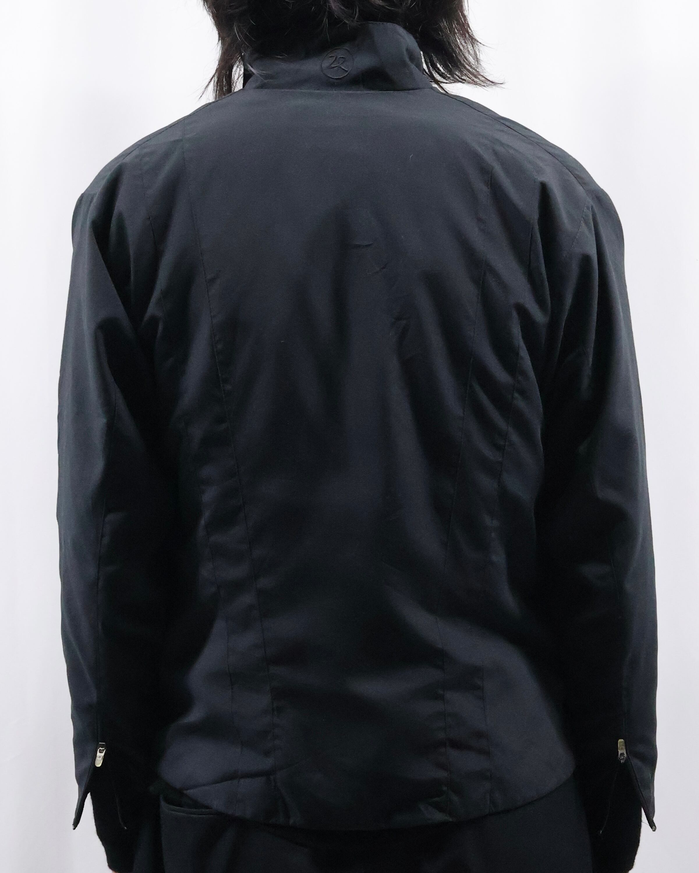 テクニカルな雰囲気の短丈のジップアップジャケット。短丈で野暮ったくなりすぎずスリムな仕上がりに。スッキリしたコーディネートにエッジを加えてくれるようなライトアウター。