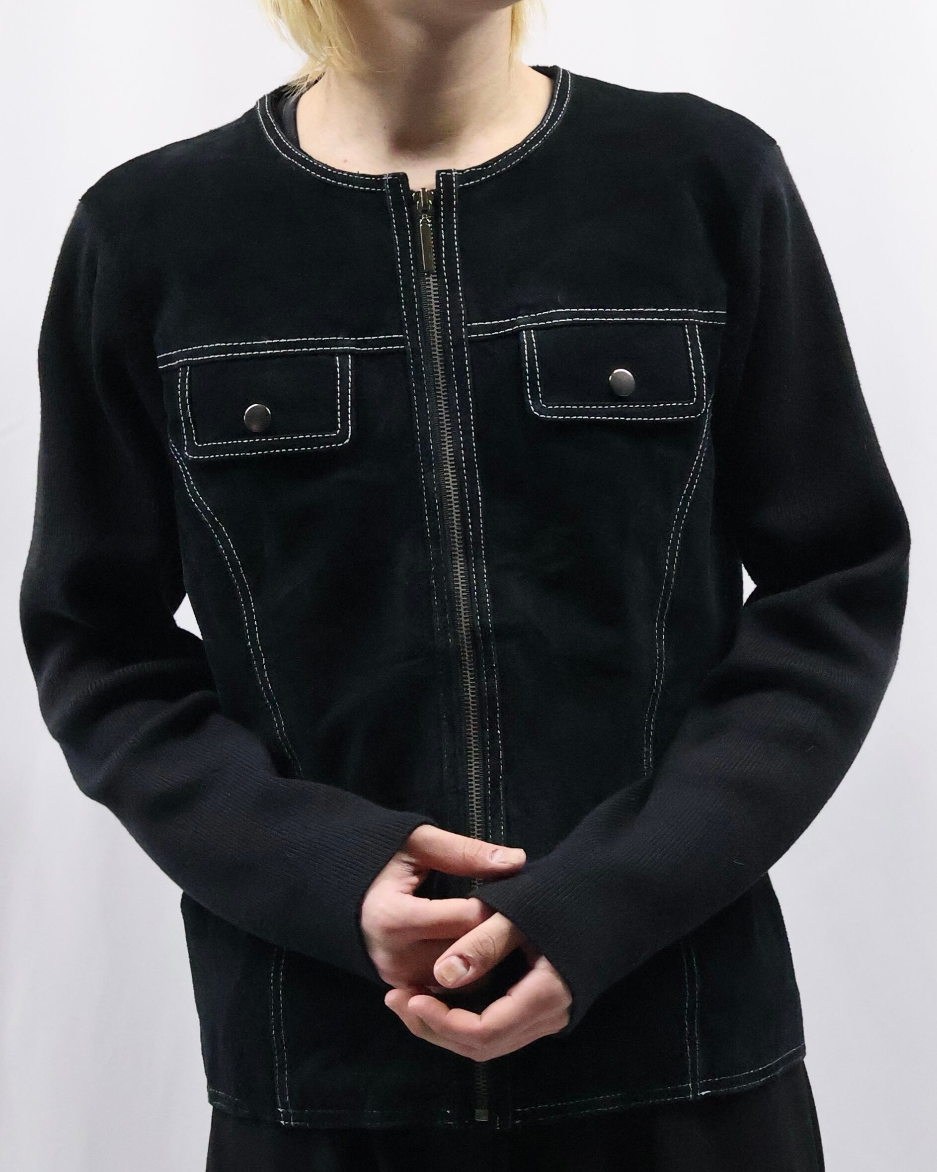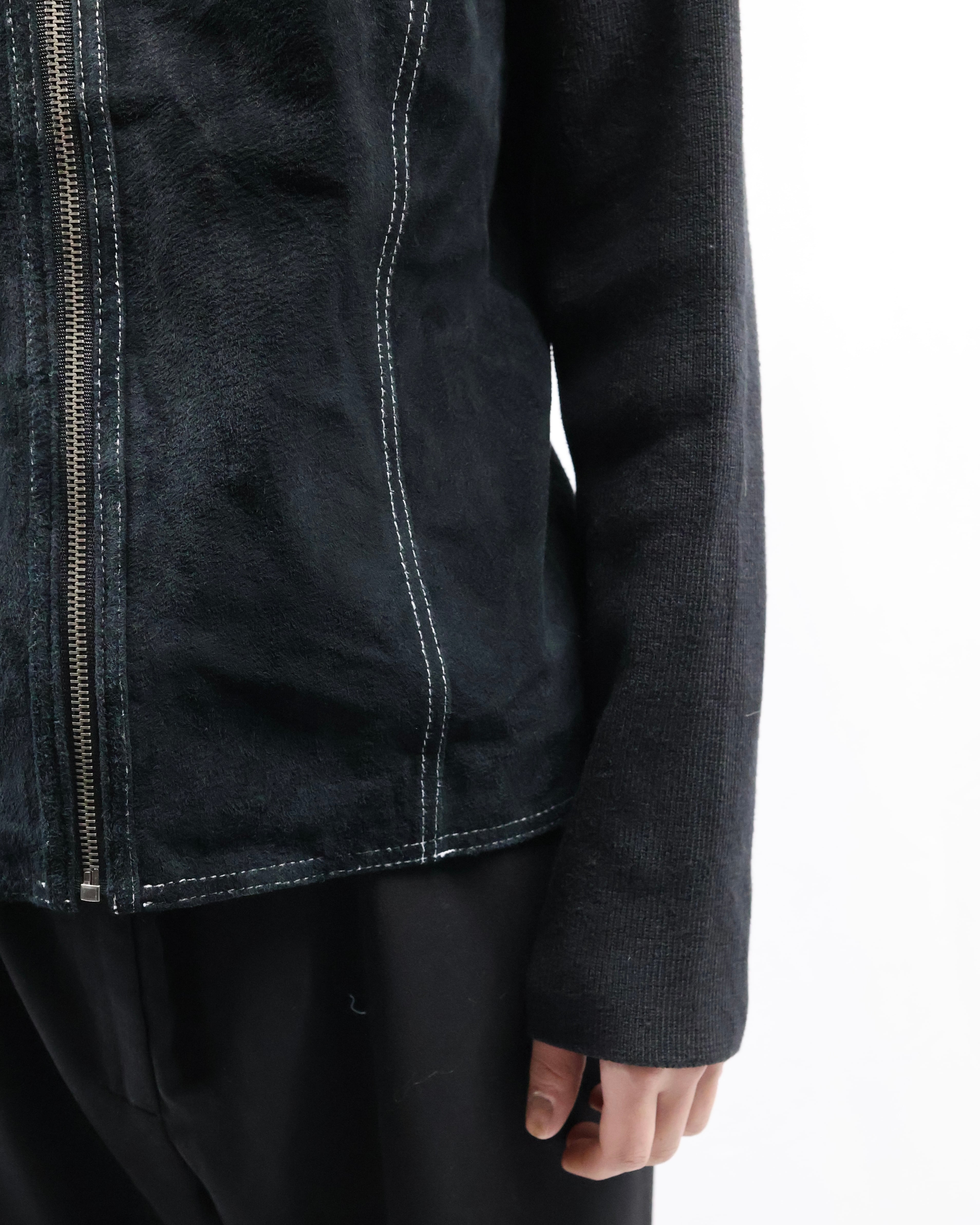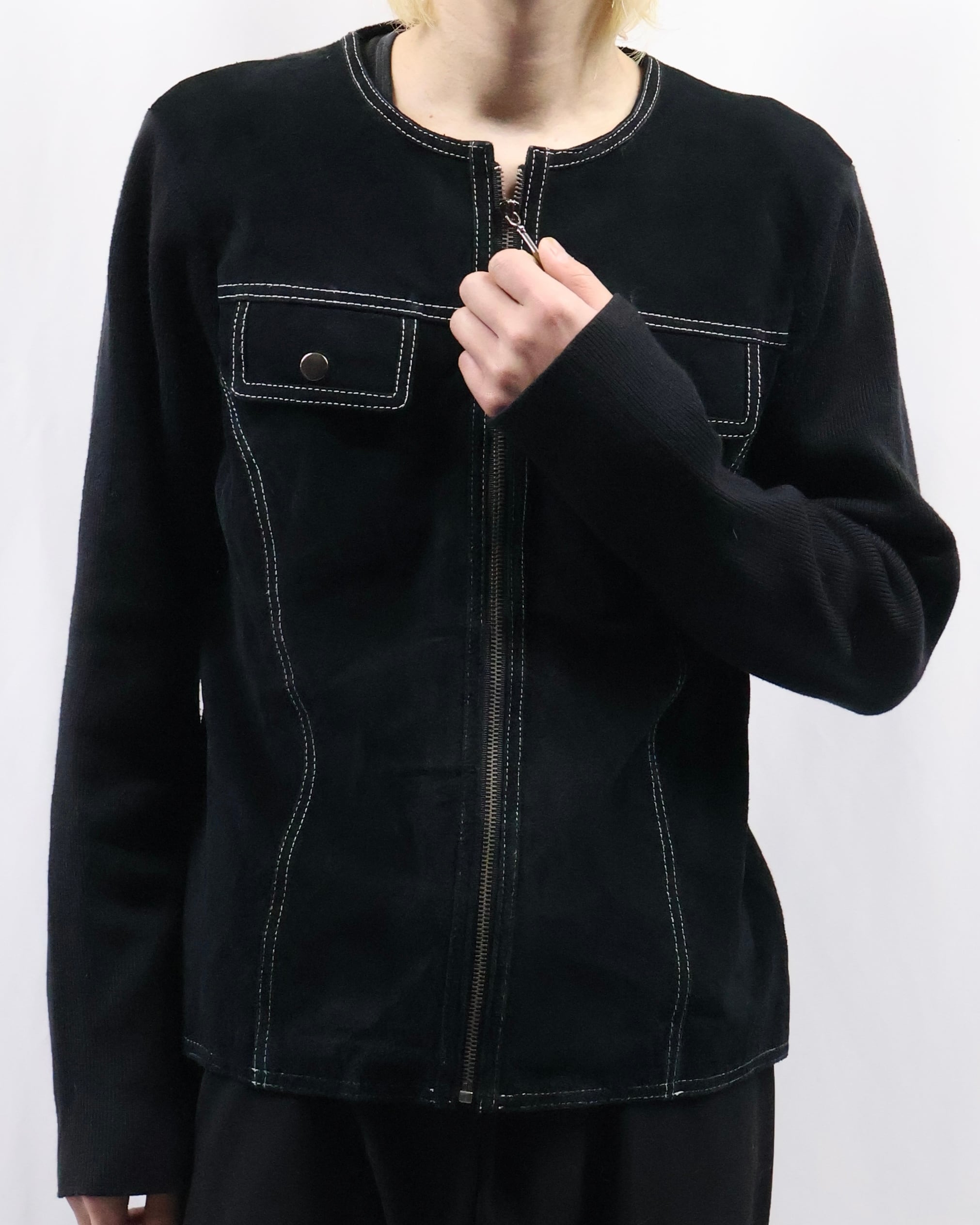 arm knit crew neck zip up blouson