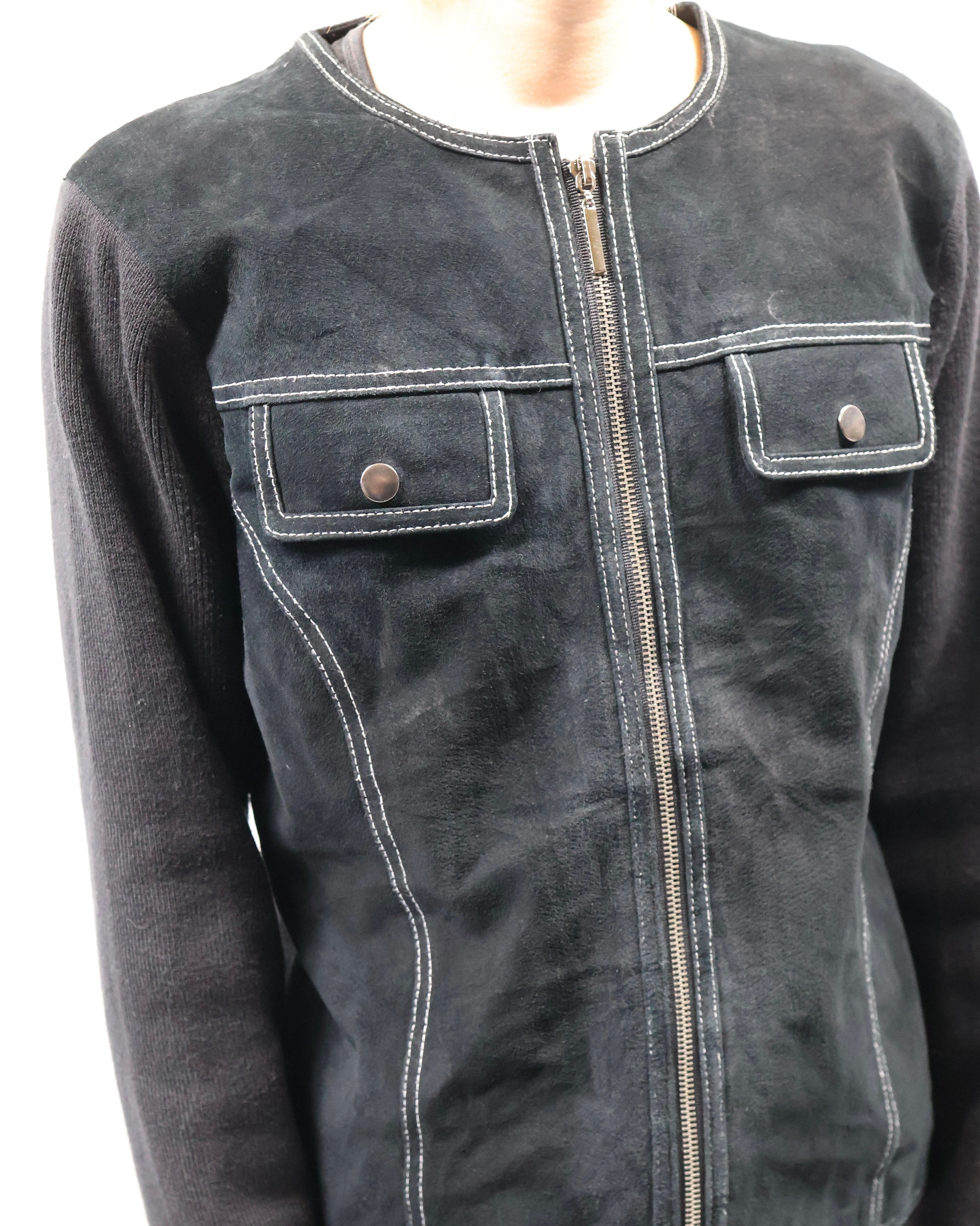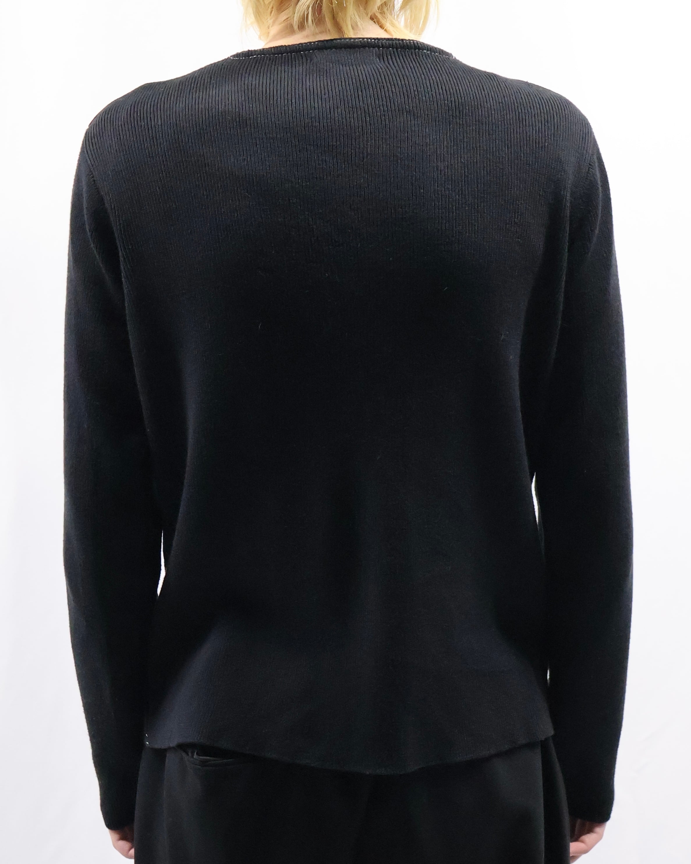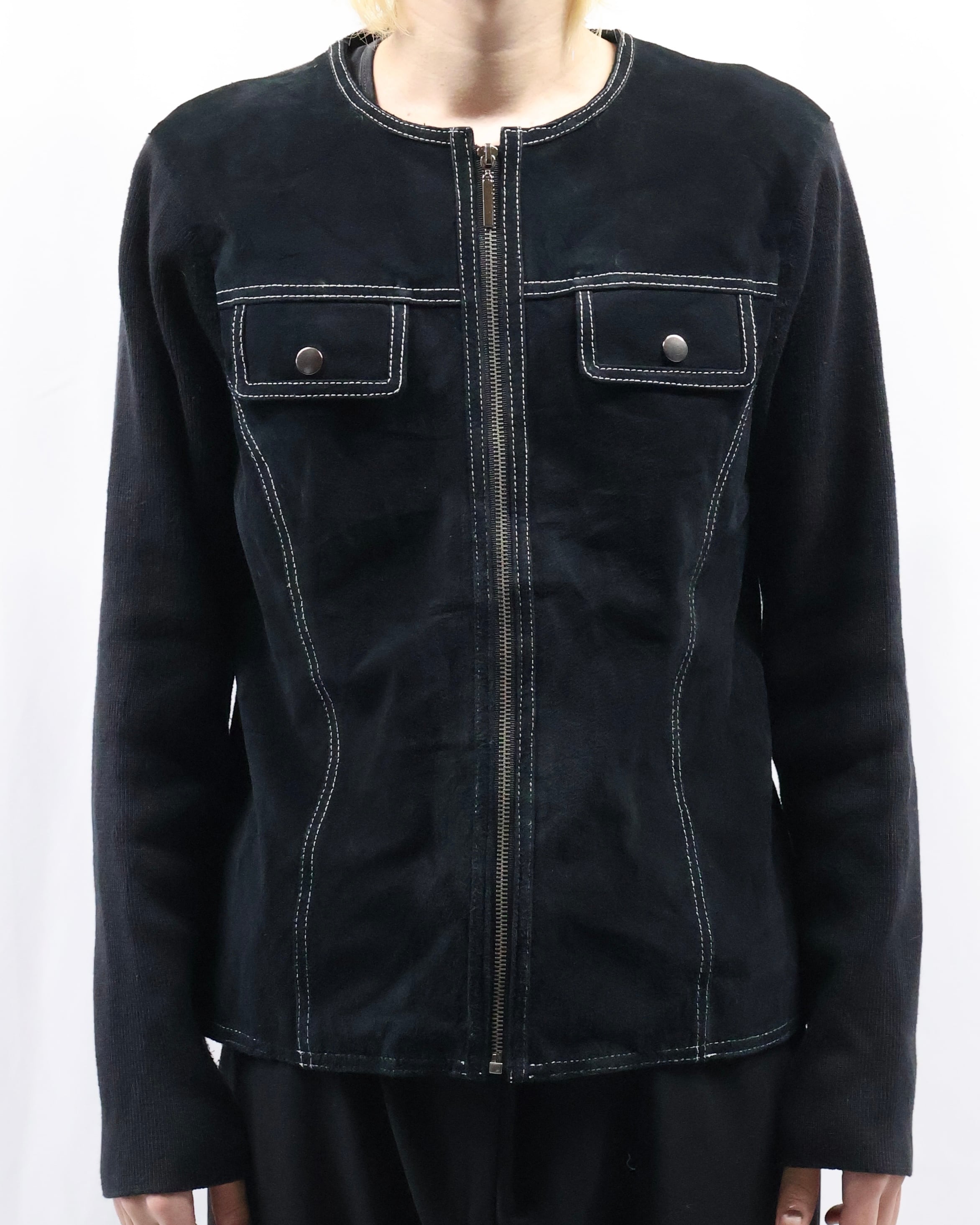 arm knit crew neck zip up blouson