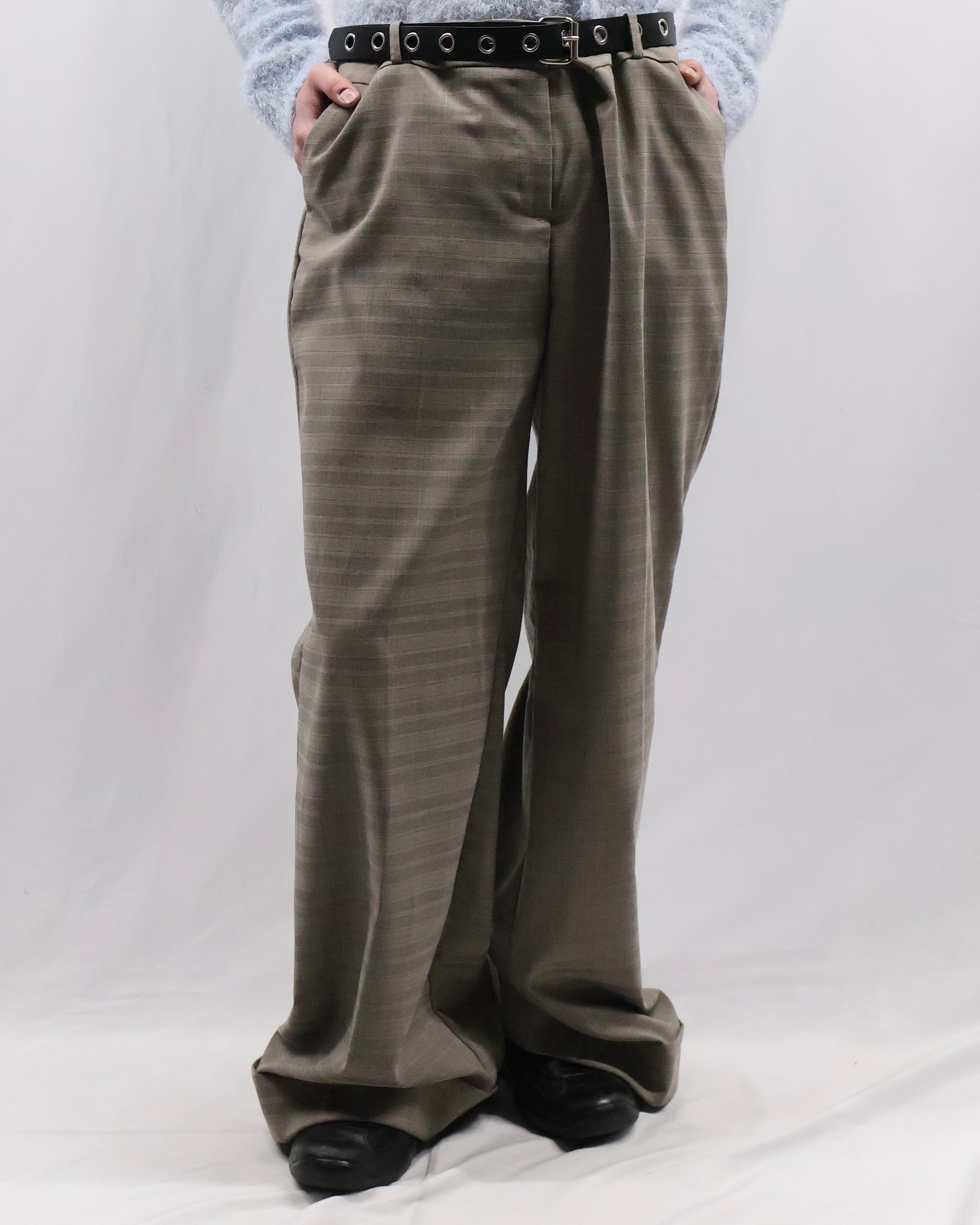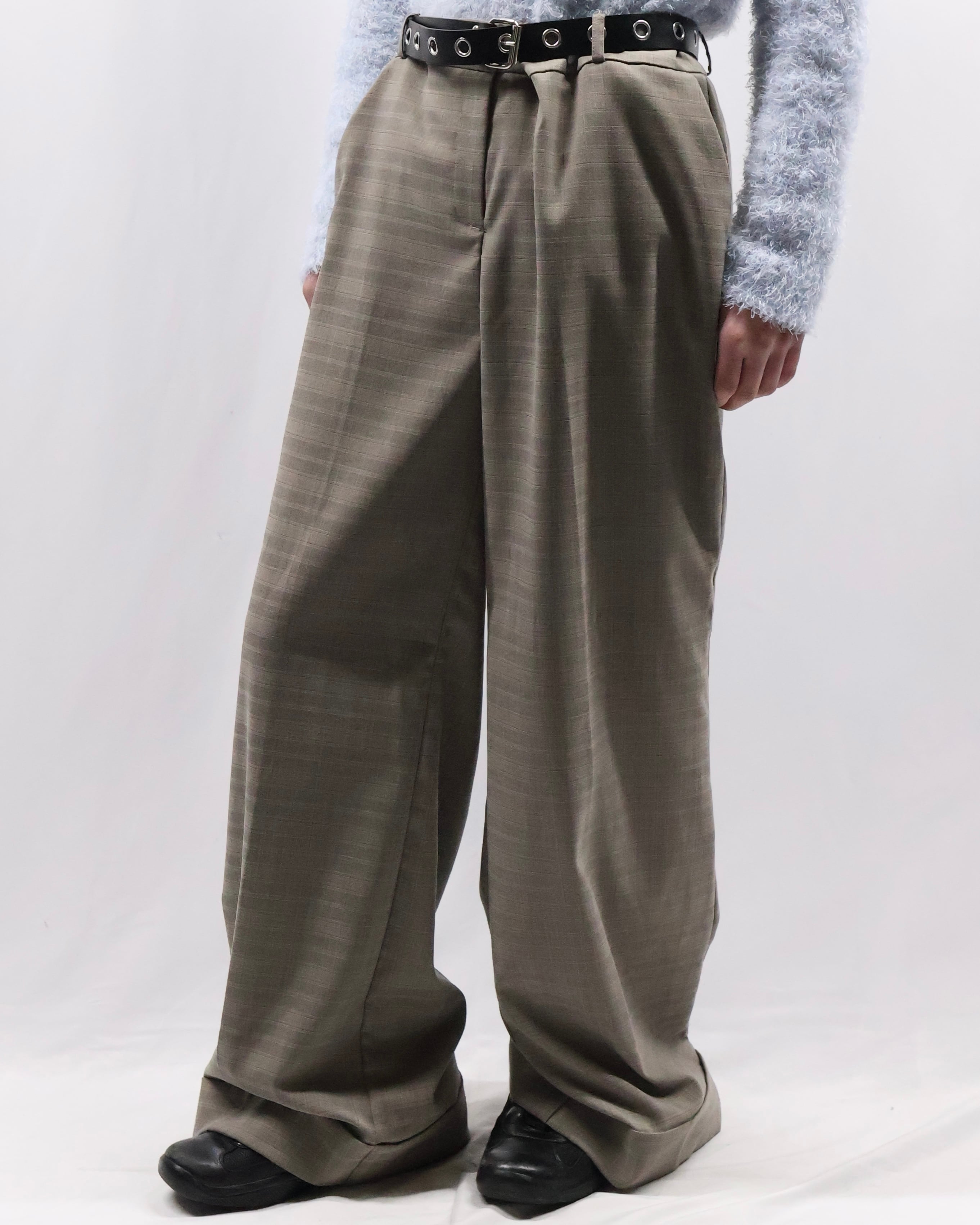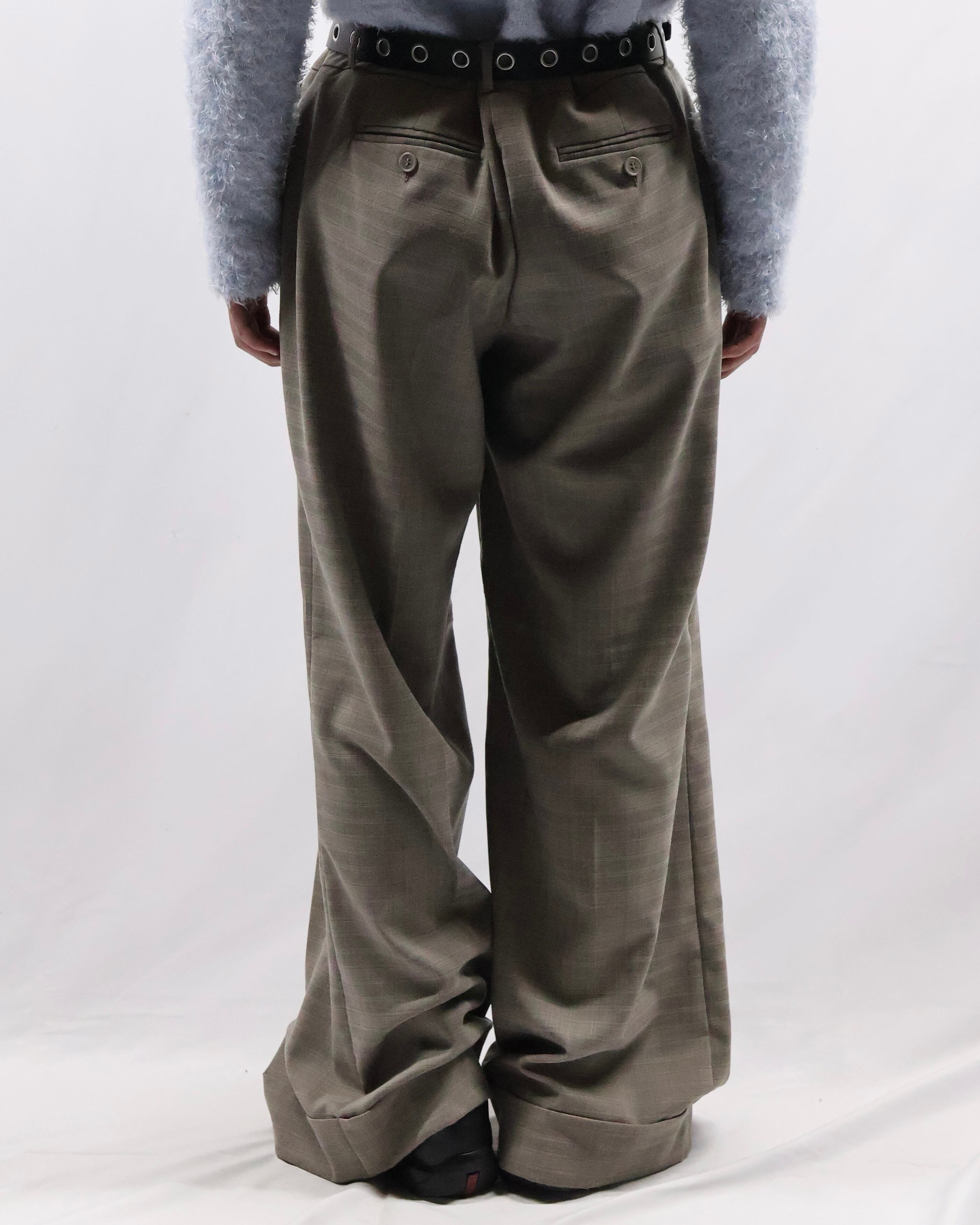 チェックパターンと裾はダブルの仕様でクラシカルながらワイドストレートシルエットの為様々なスタイリングに落とし込める一本。