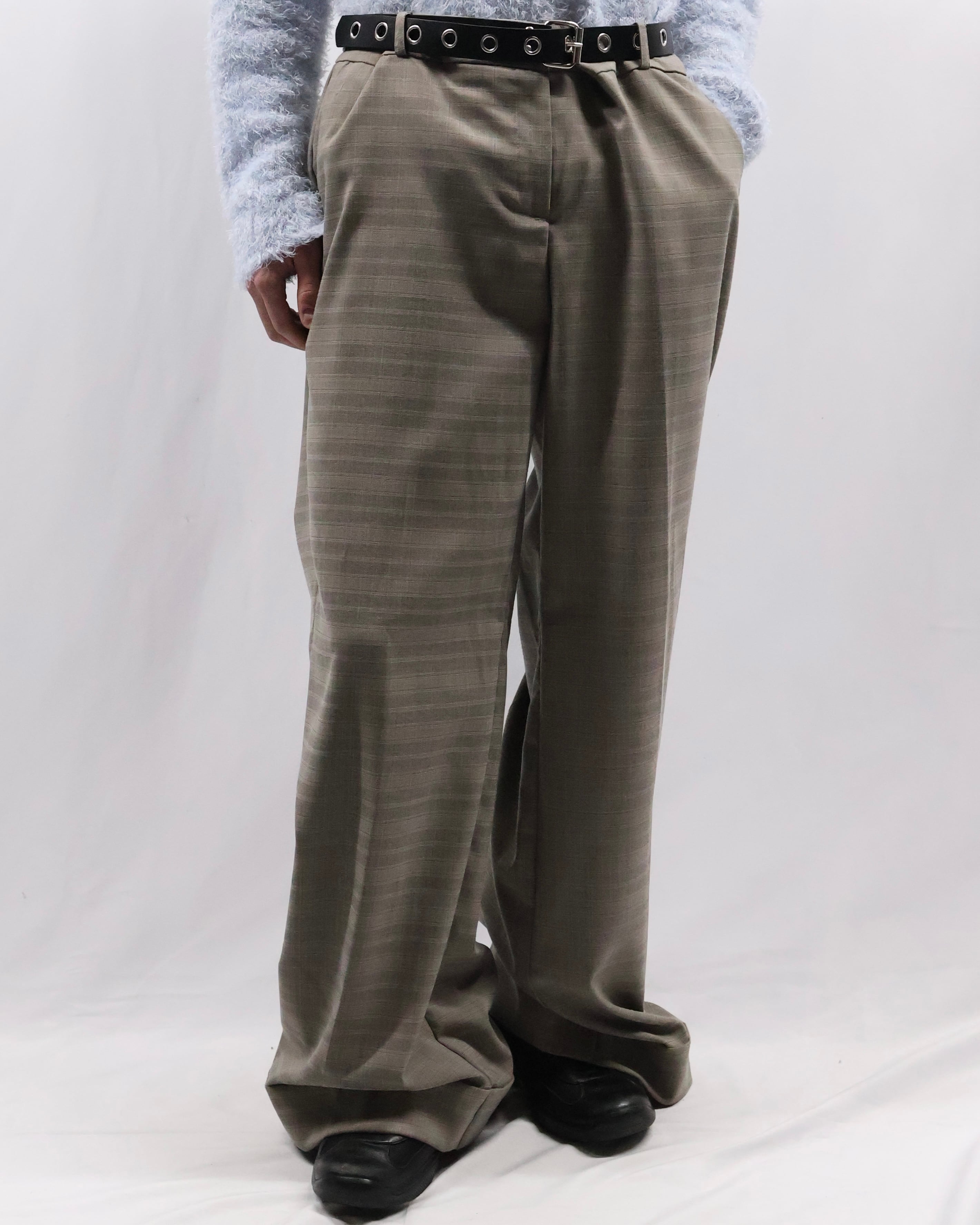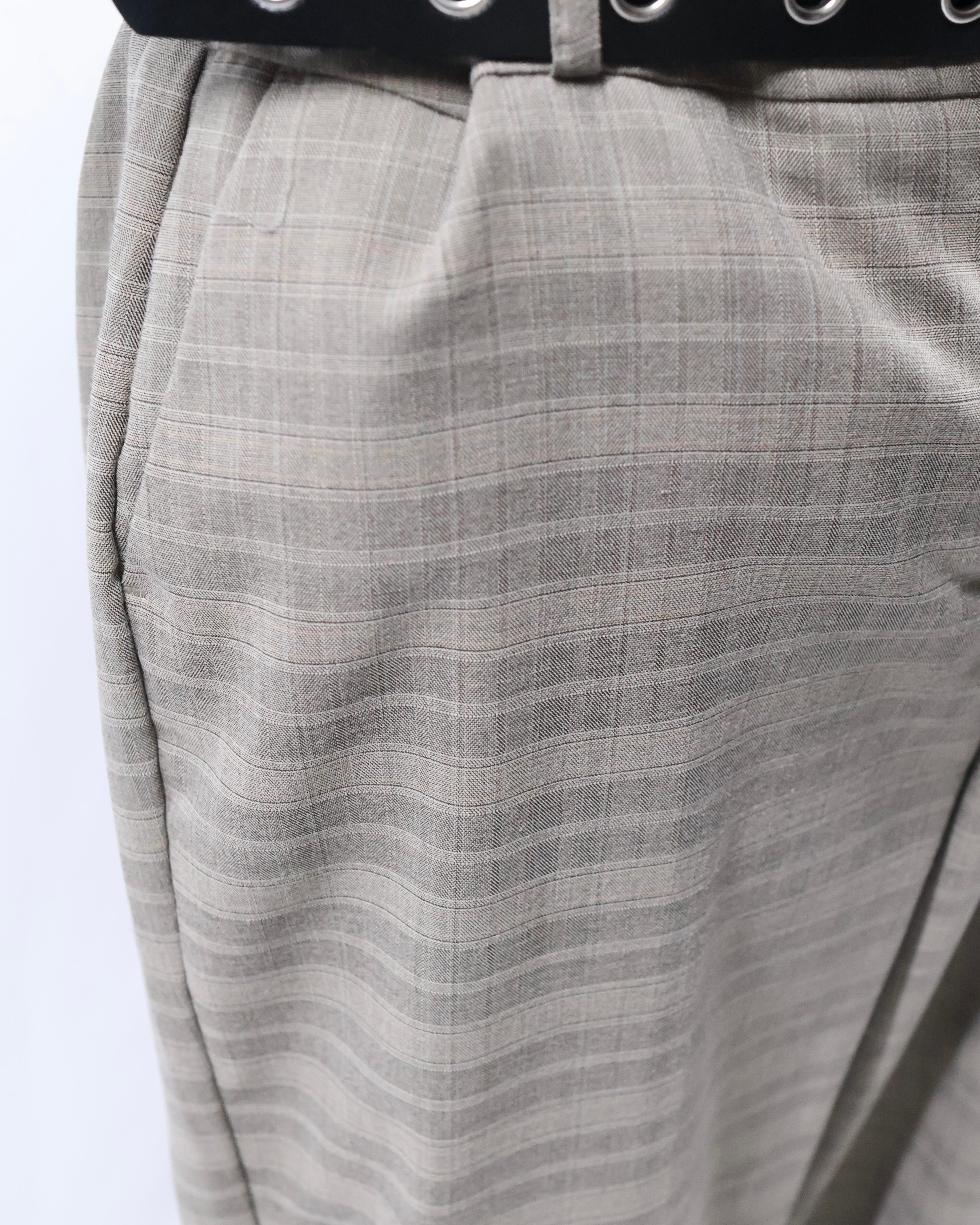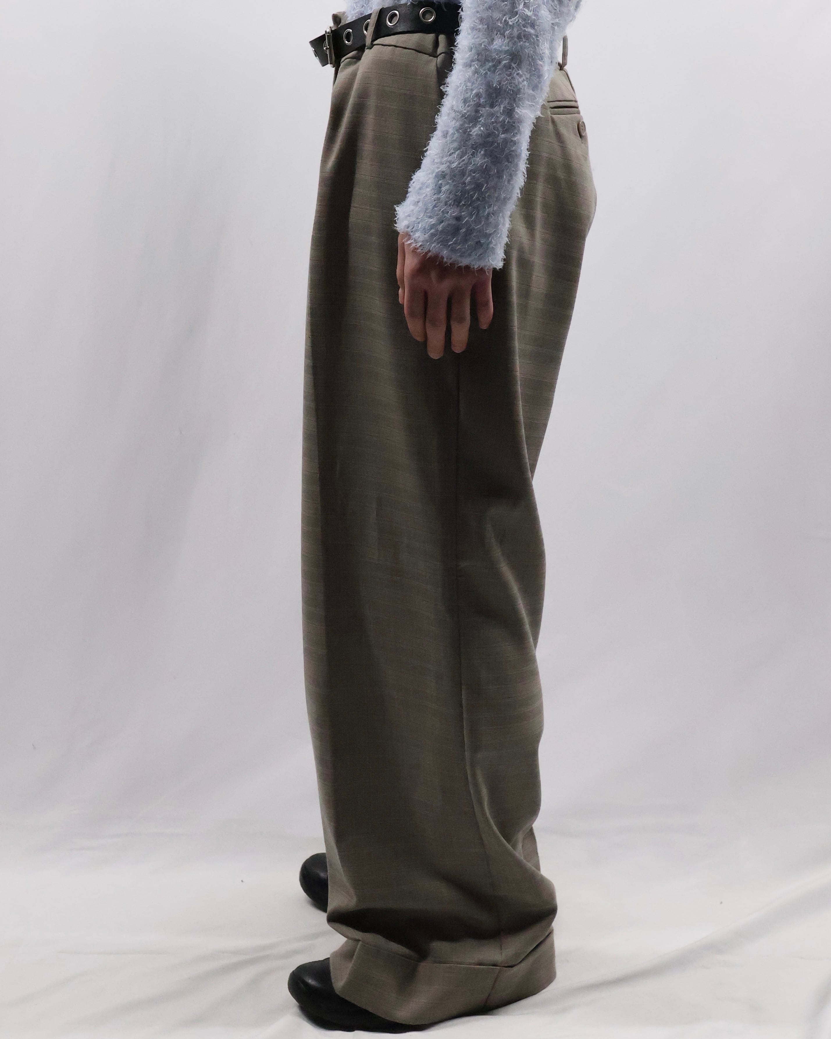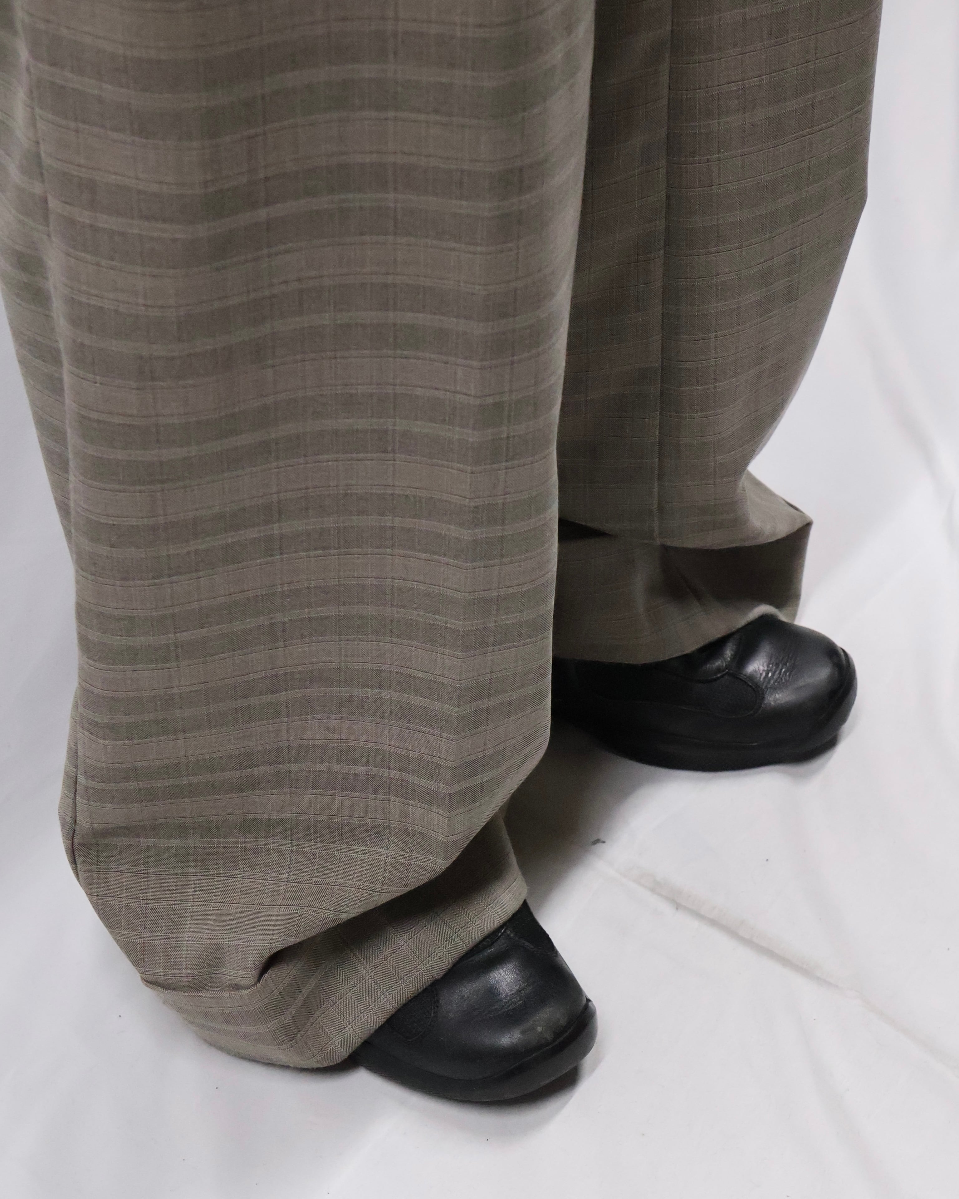 チェックパターンと裾はダブルの仕様でクラシカルながらワイドストレートシルエットの為様々なスタイリングに落とし込める一本。