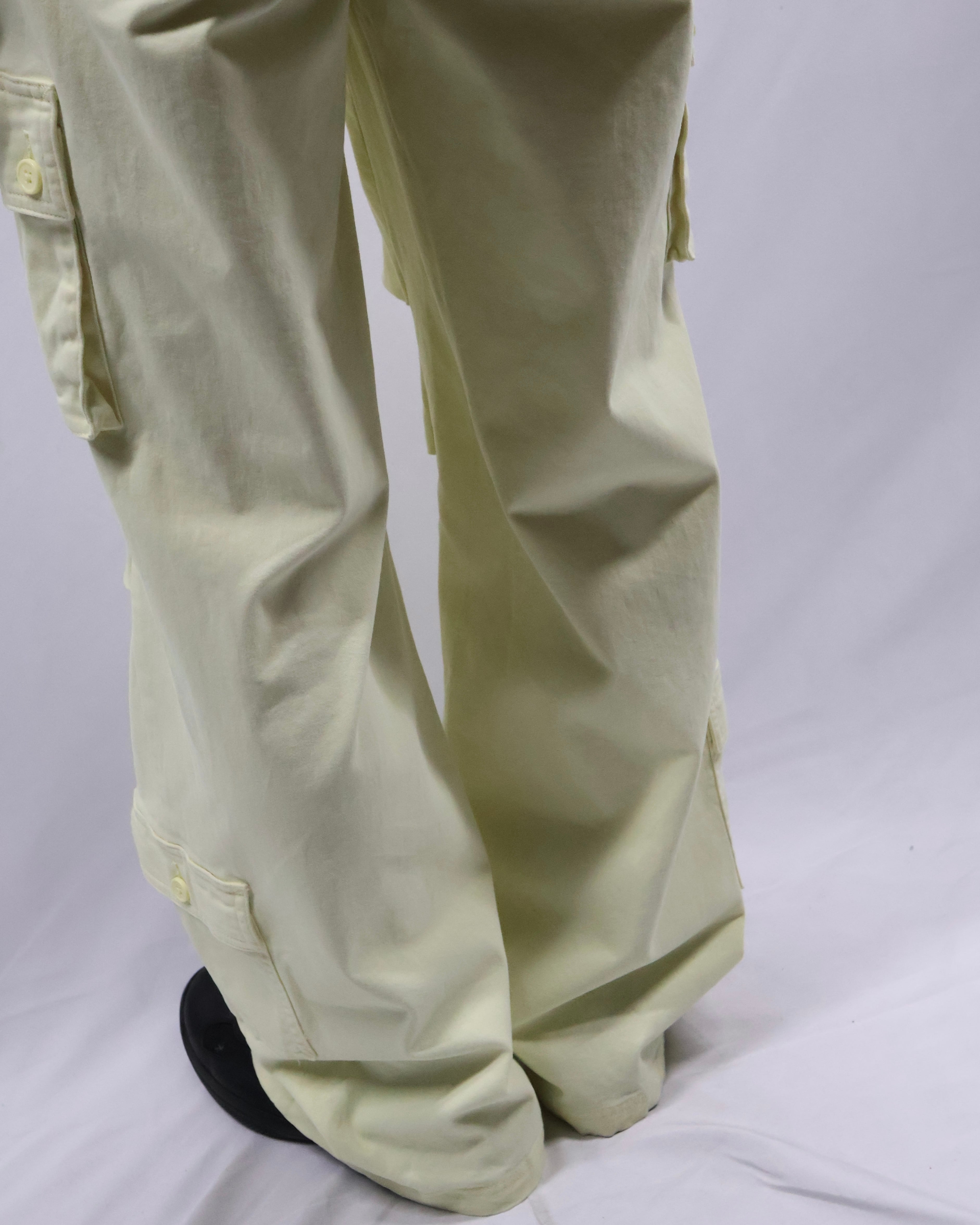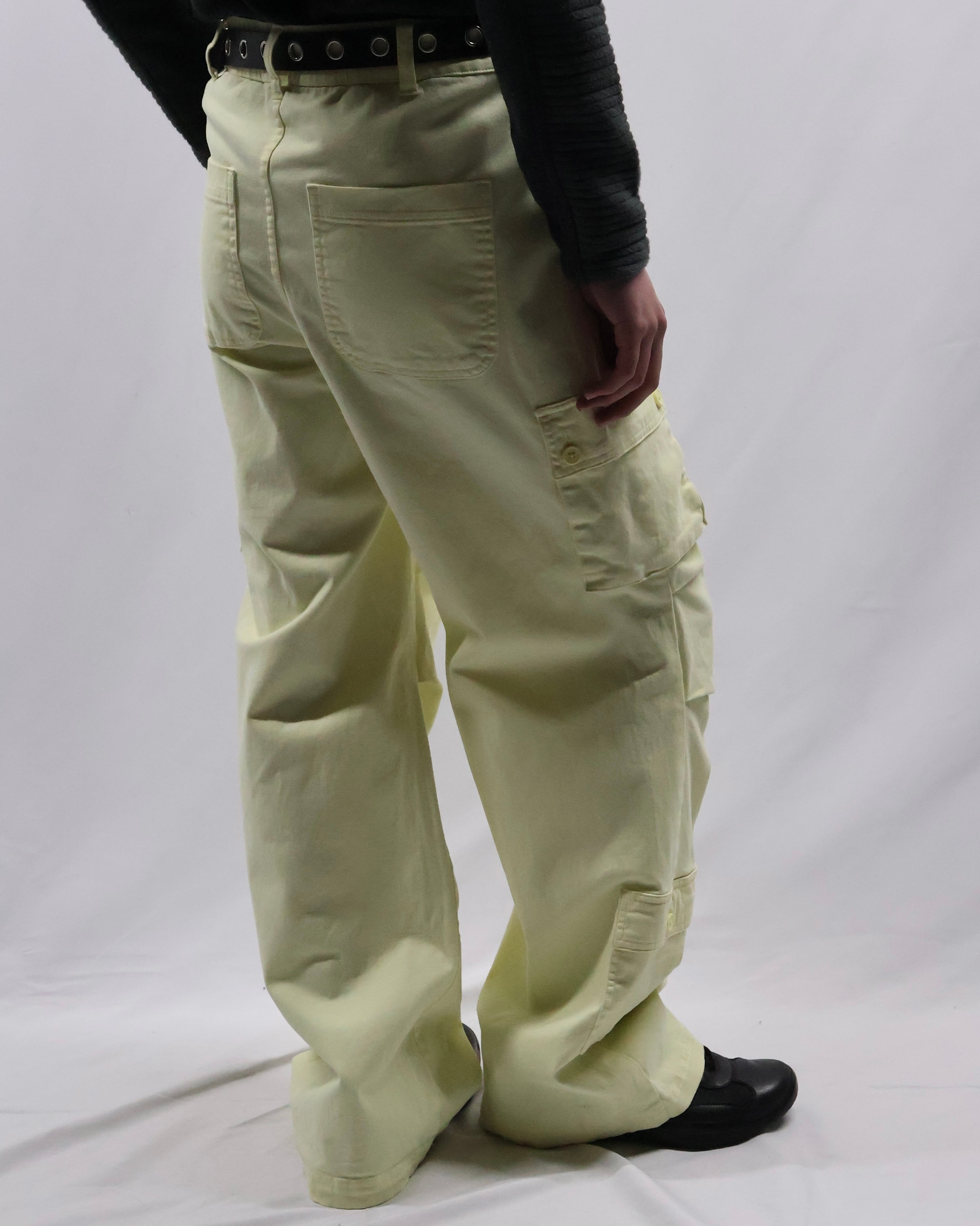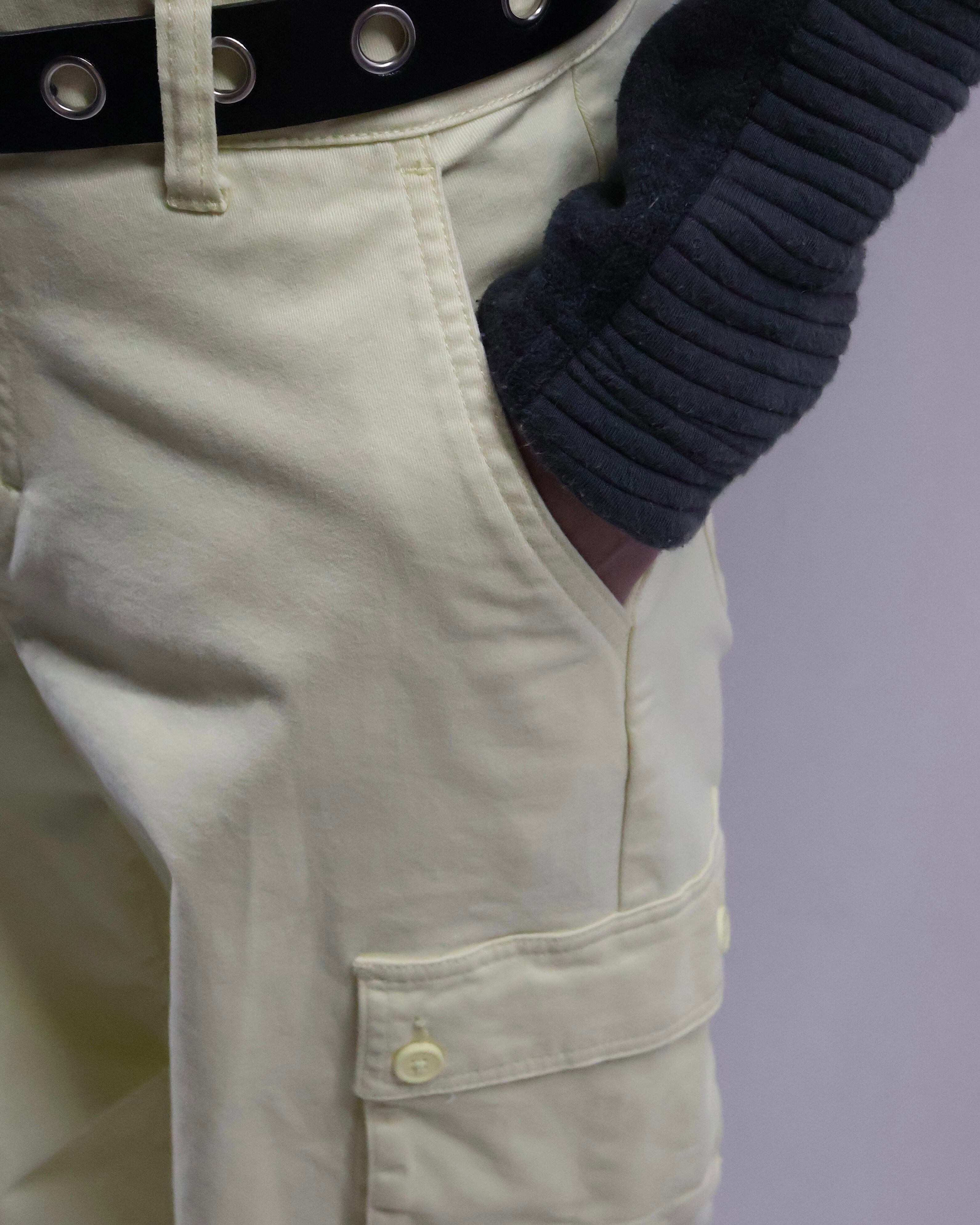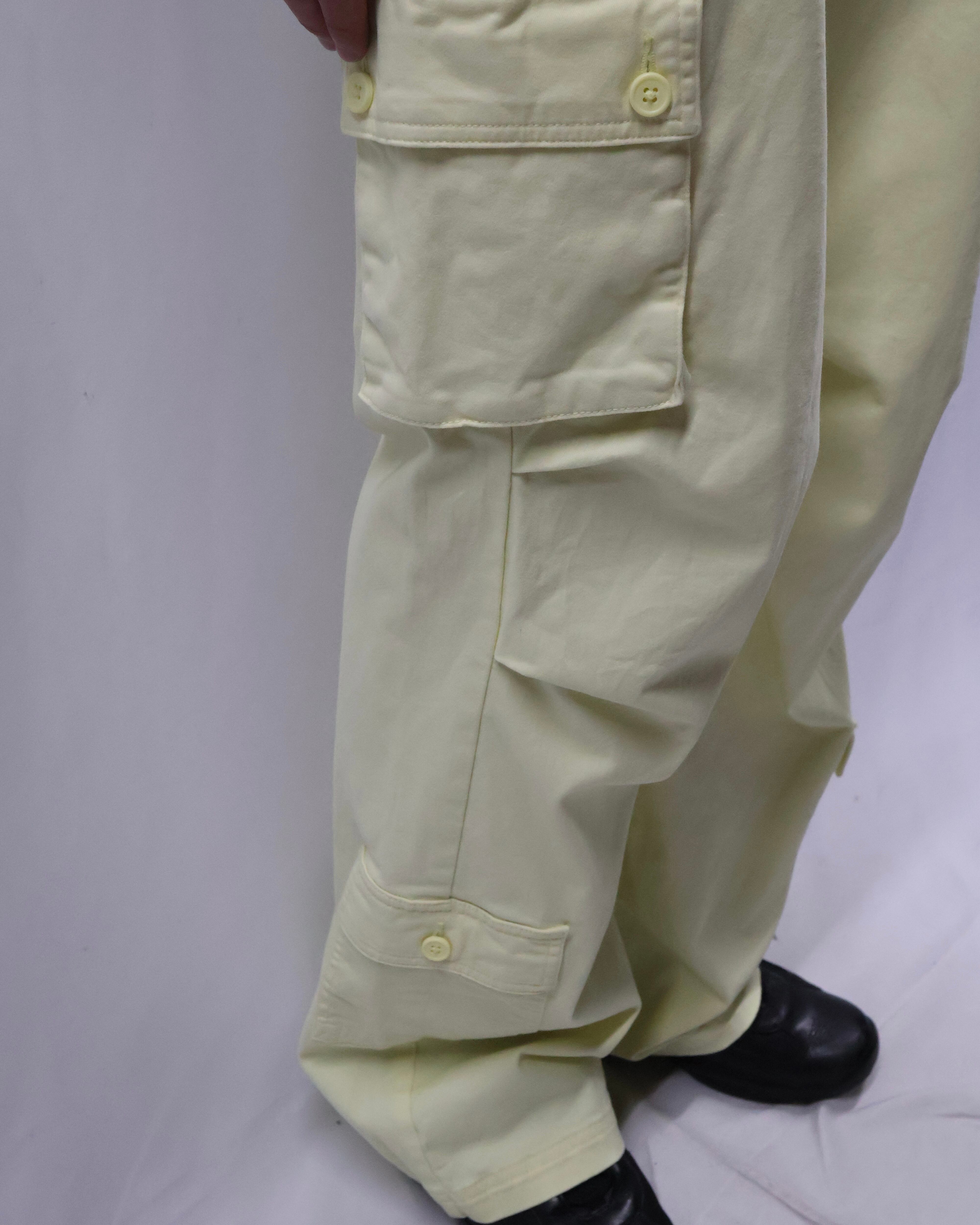 パステルイエローの色味が特徴のカーゴパンツ