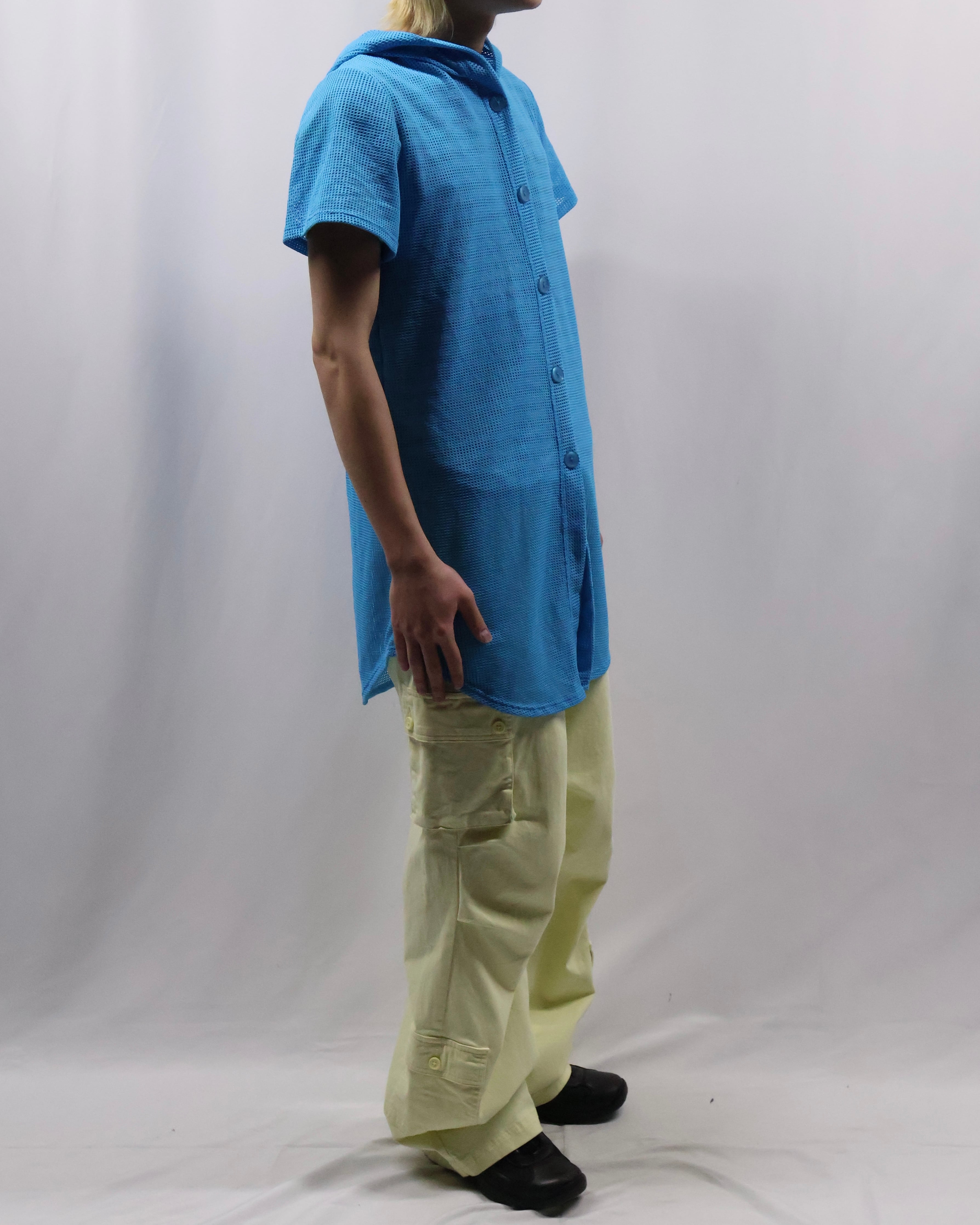 メッシュ素材かつショートスリーブの為レイヤードで楽しめる一着。ストリートからモードなスタイルの外しとしても使えるアイテム。