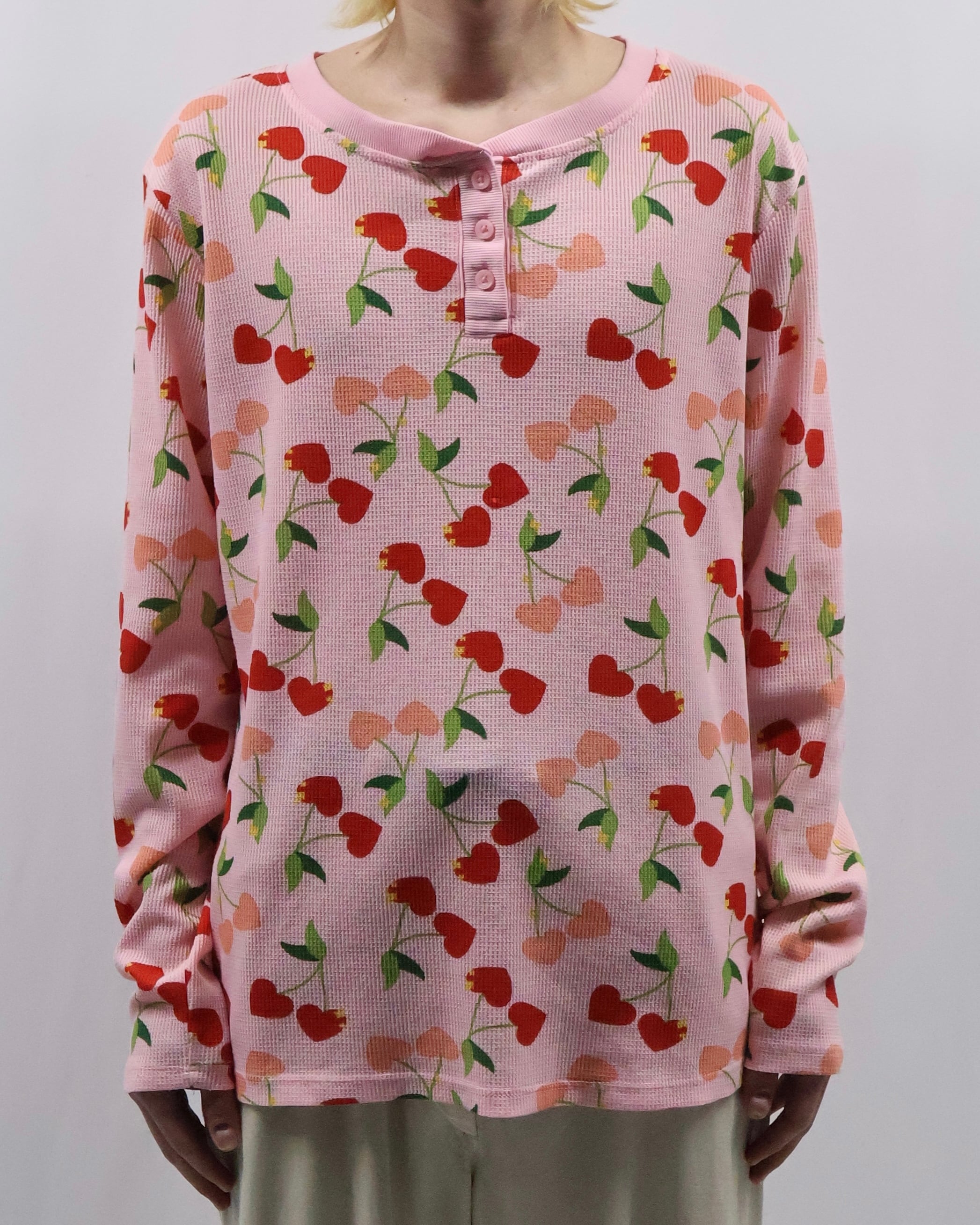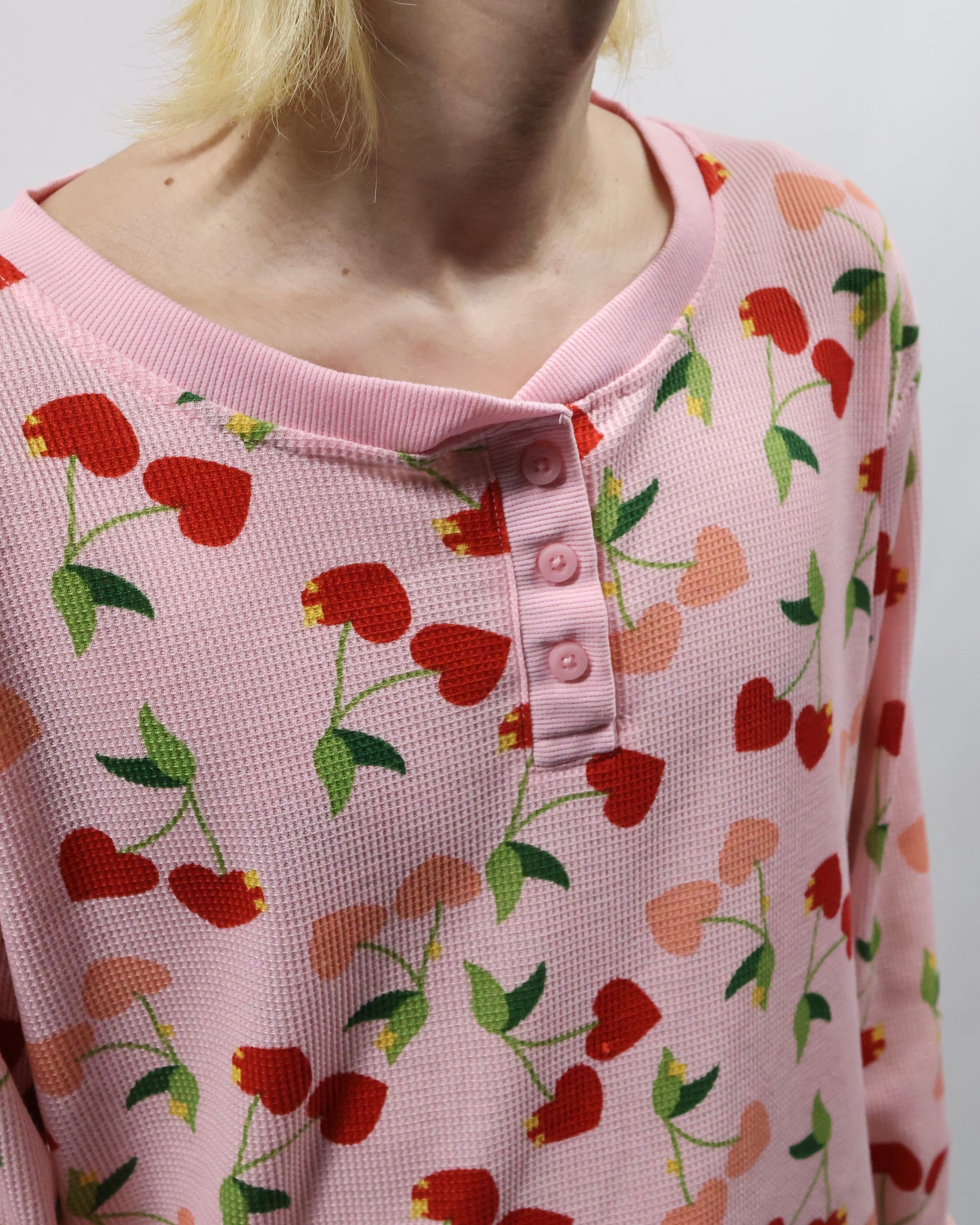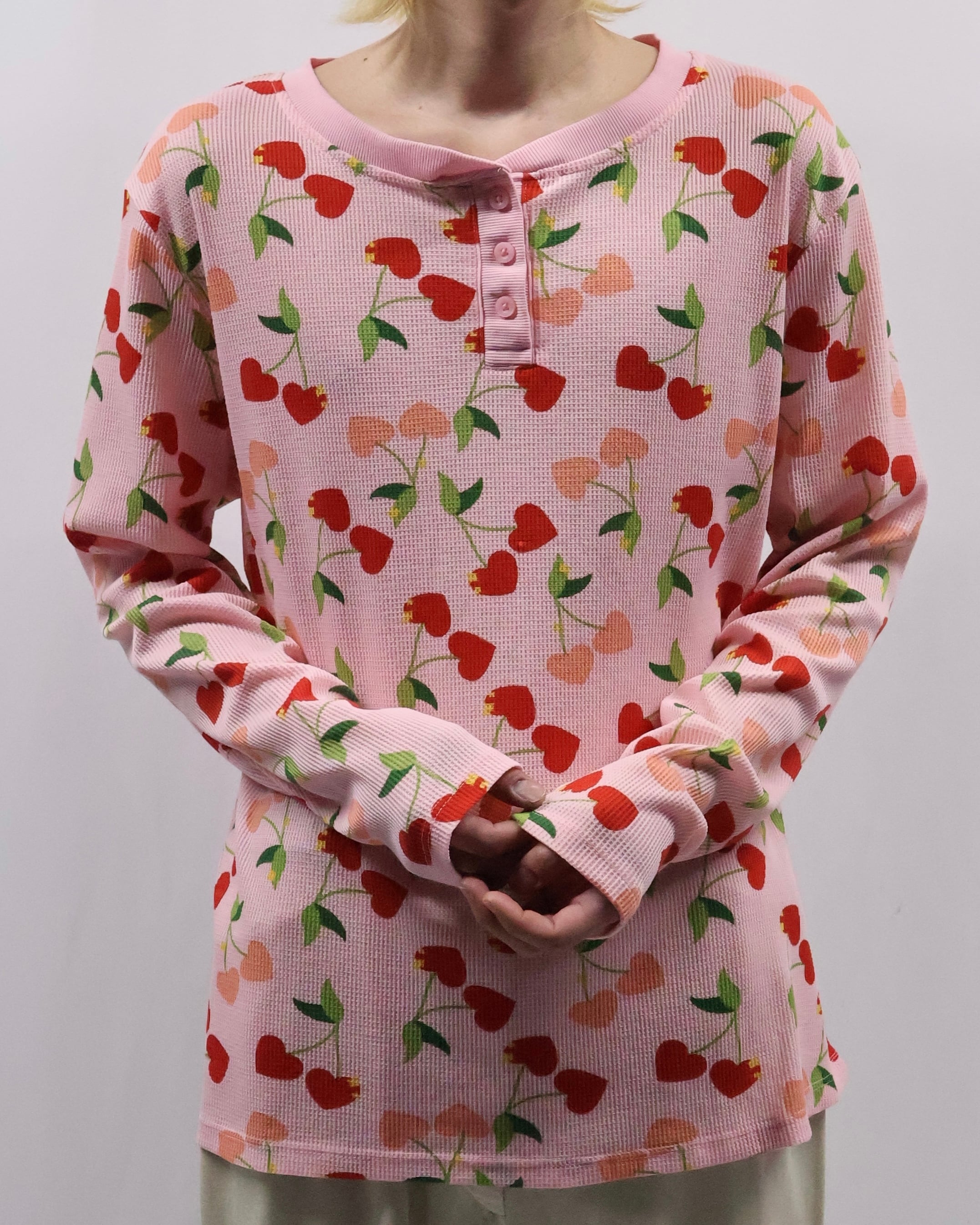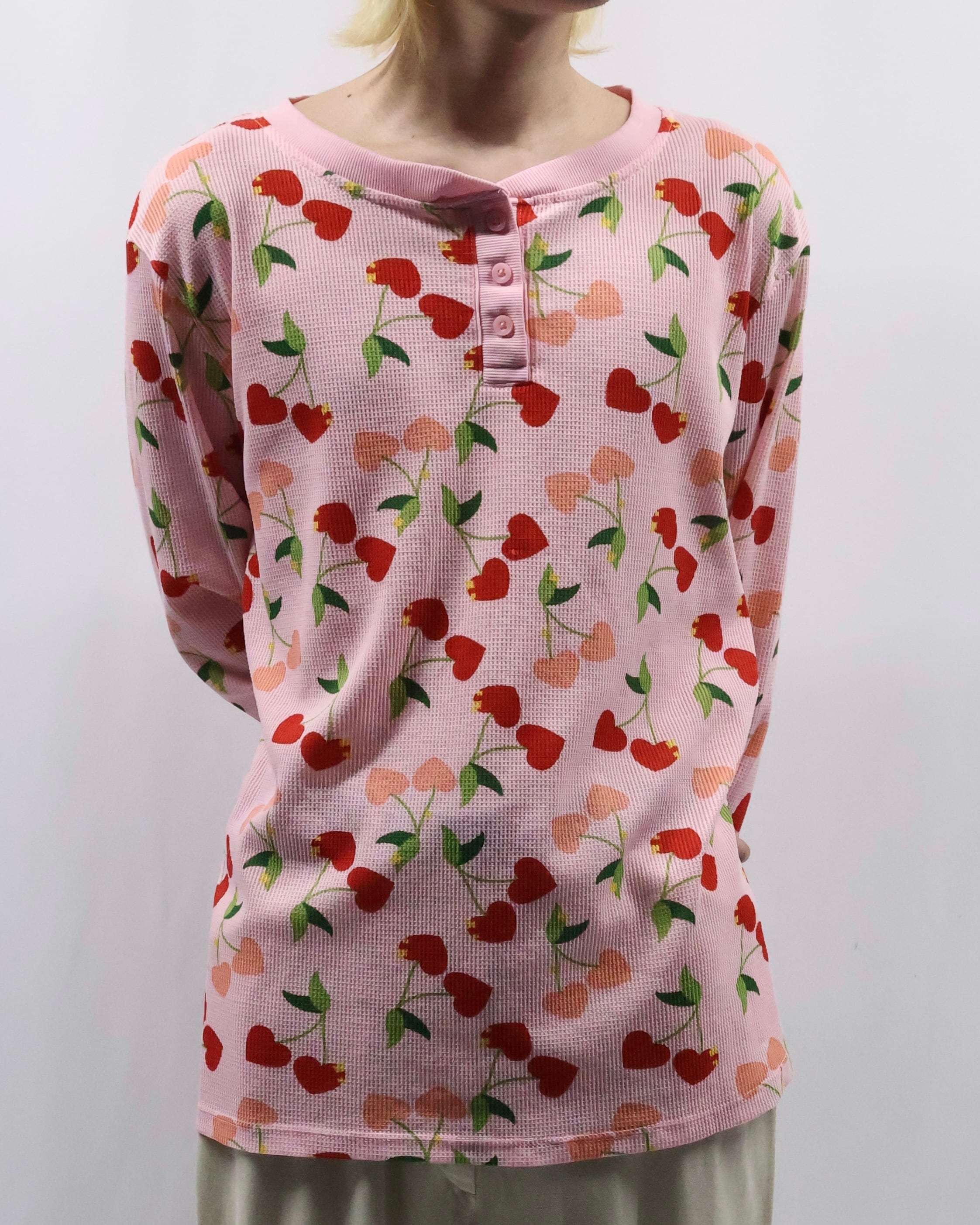 cherry design henley neck thermal top