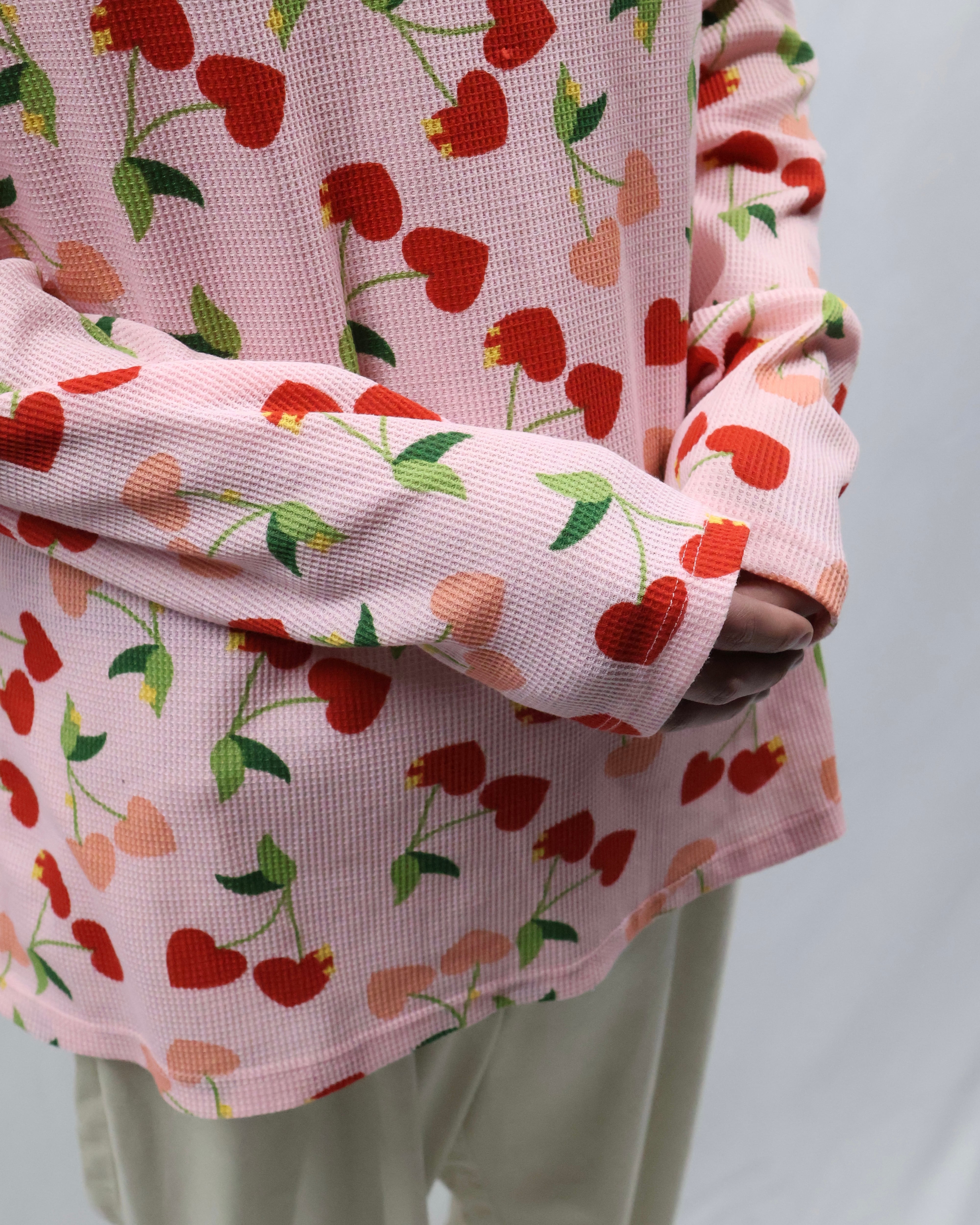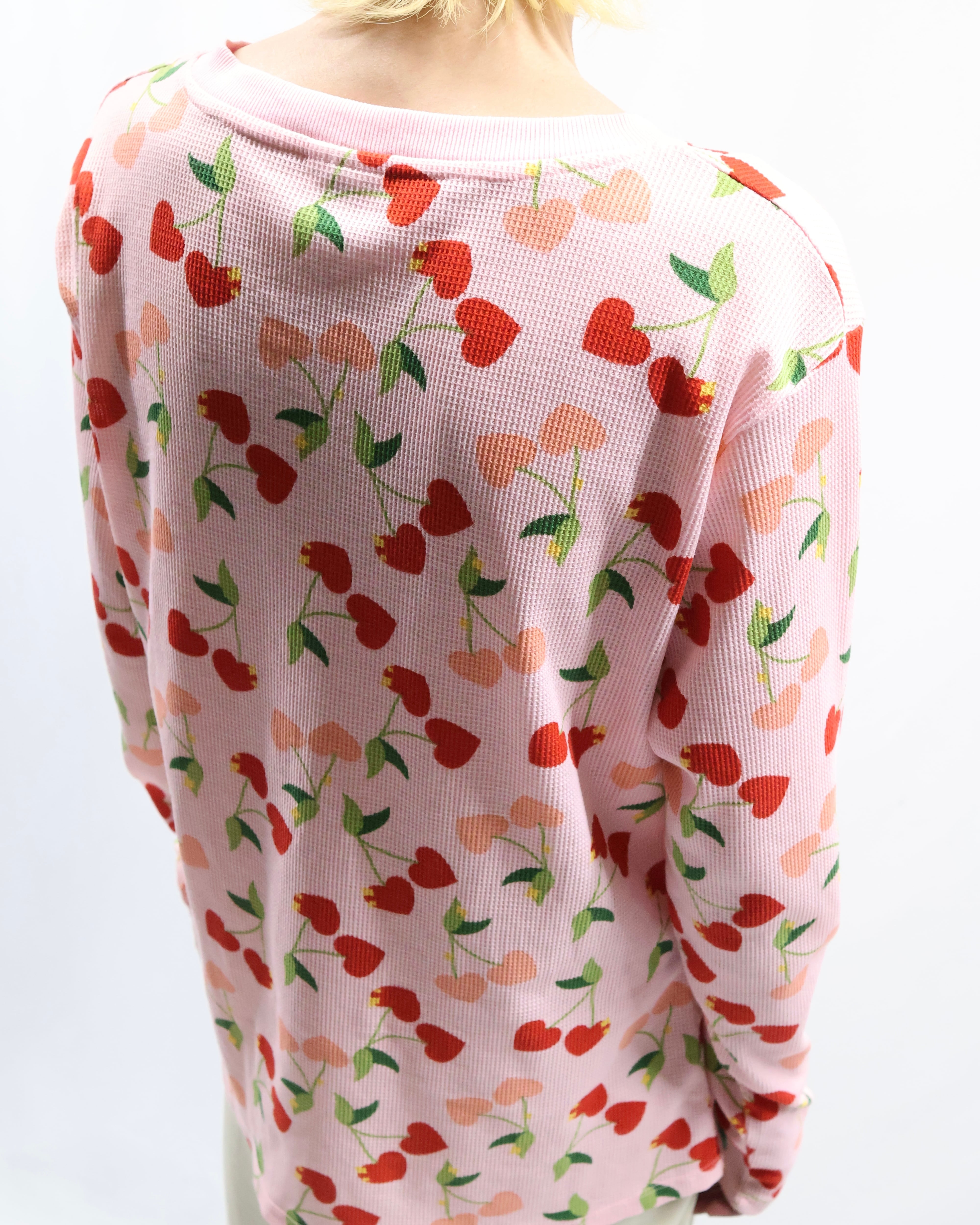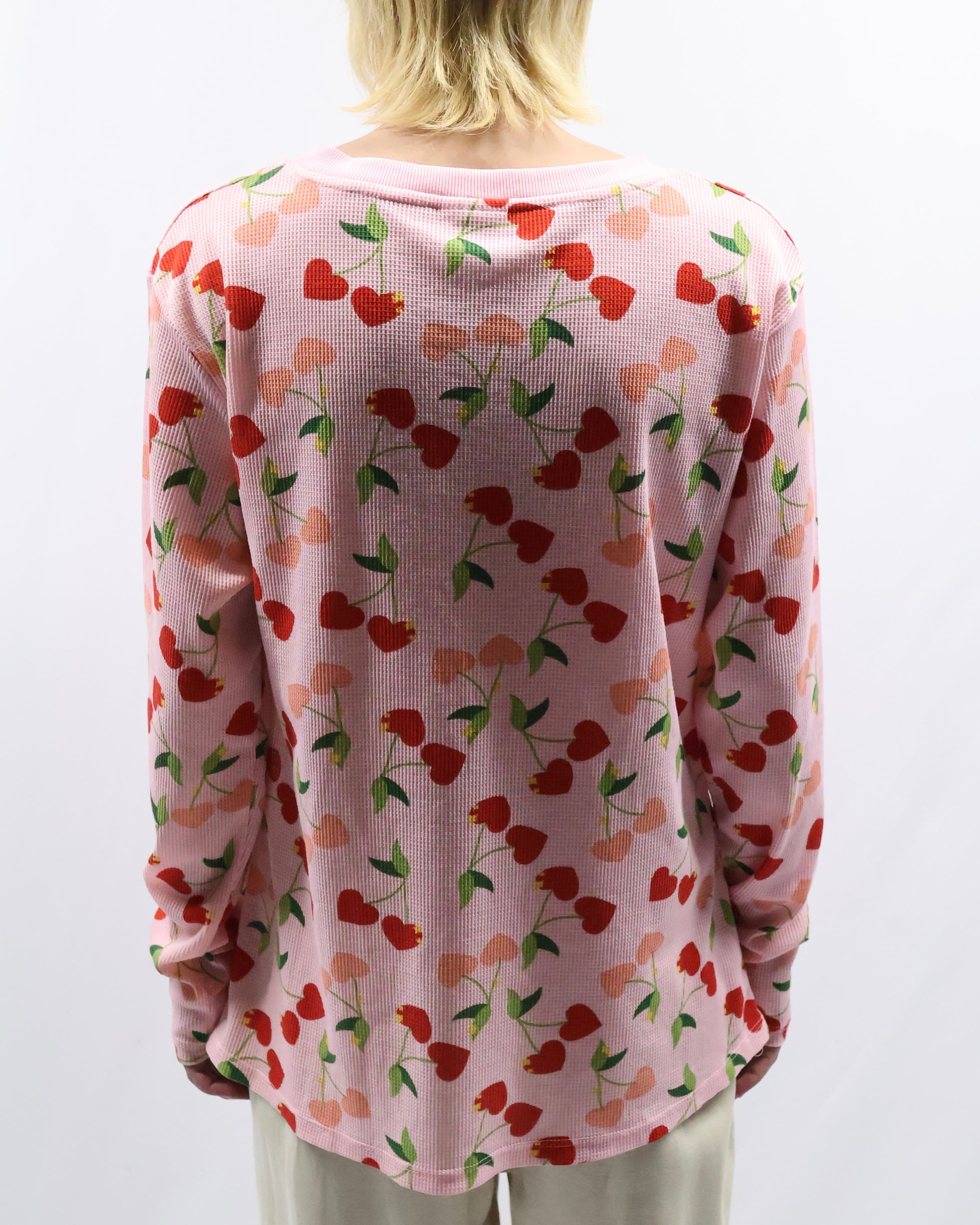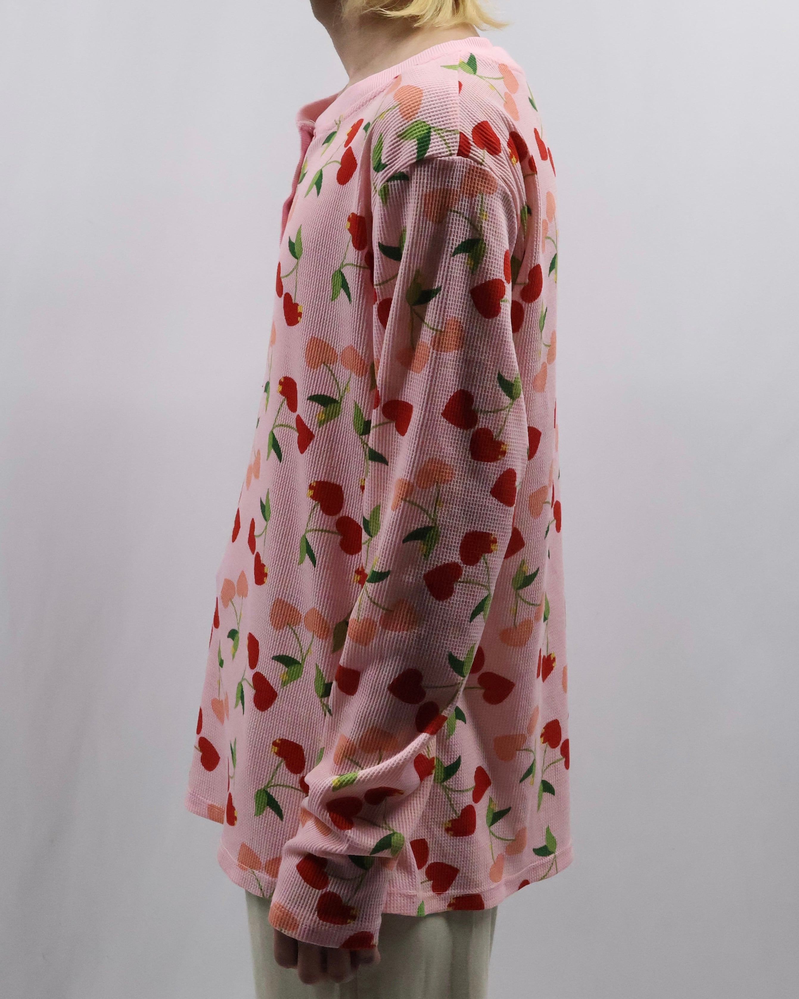 cherry design henley neck thermal top