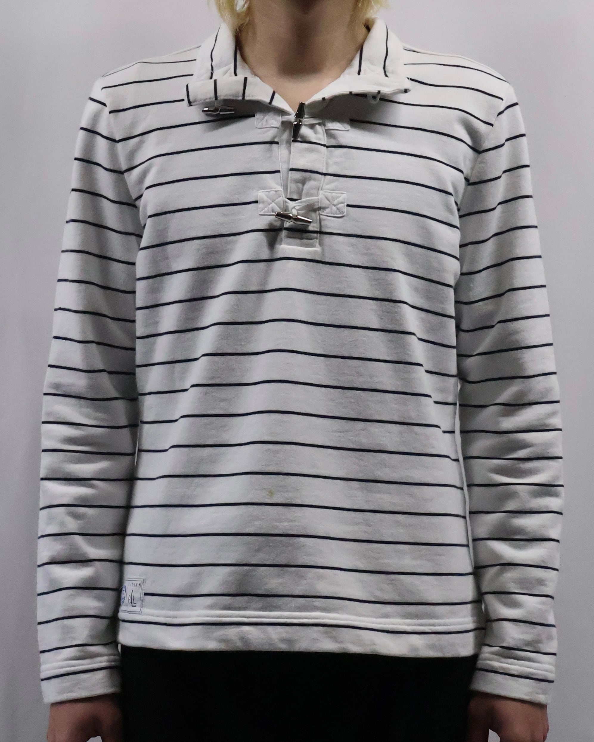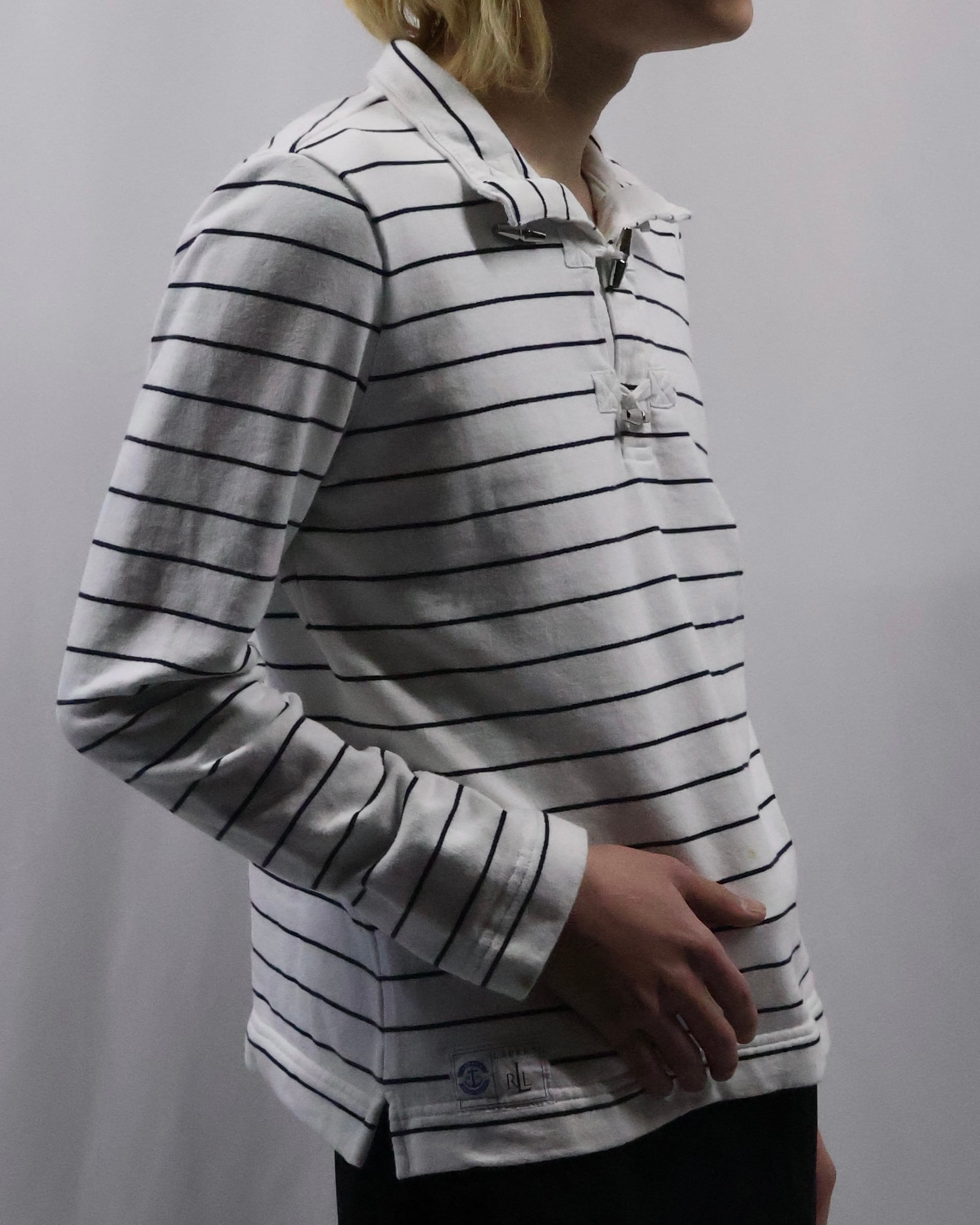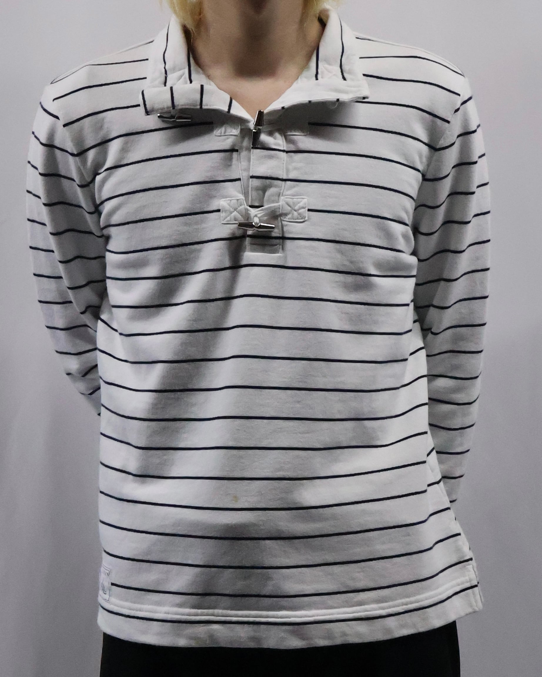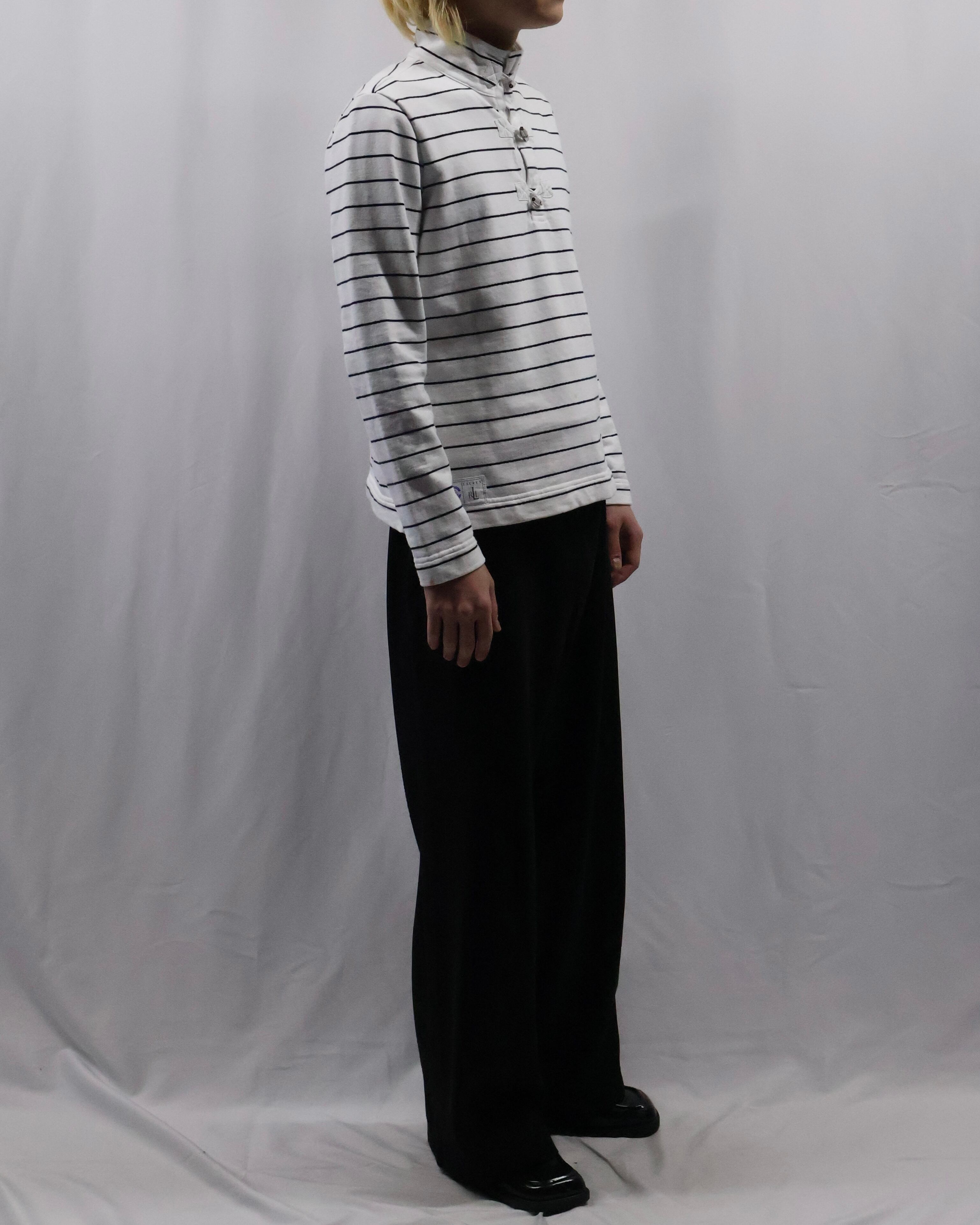 ボタンが特徴的なポロシャツ。シンプルに一枚で様になる程よいファッション性を持つ一枚。サイズ感も良く野暮ったくならないのもgood