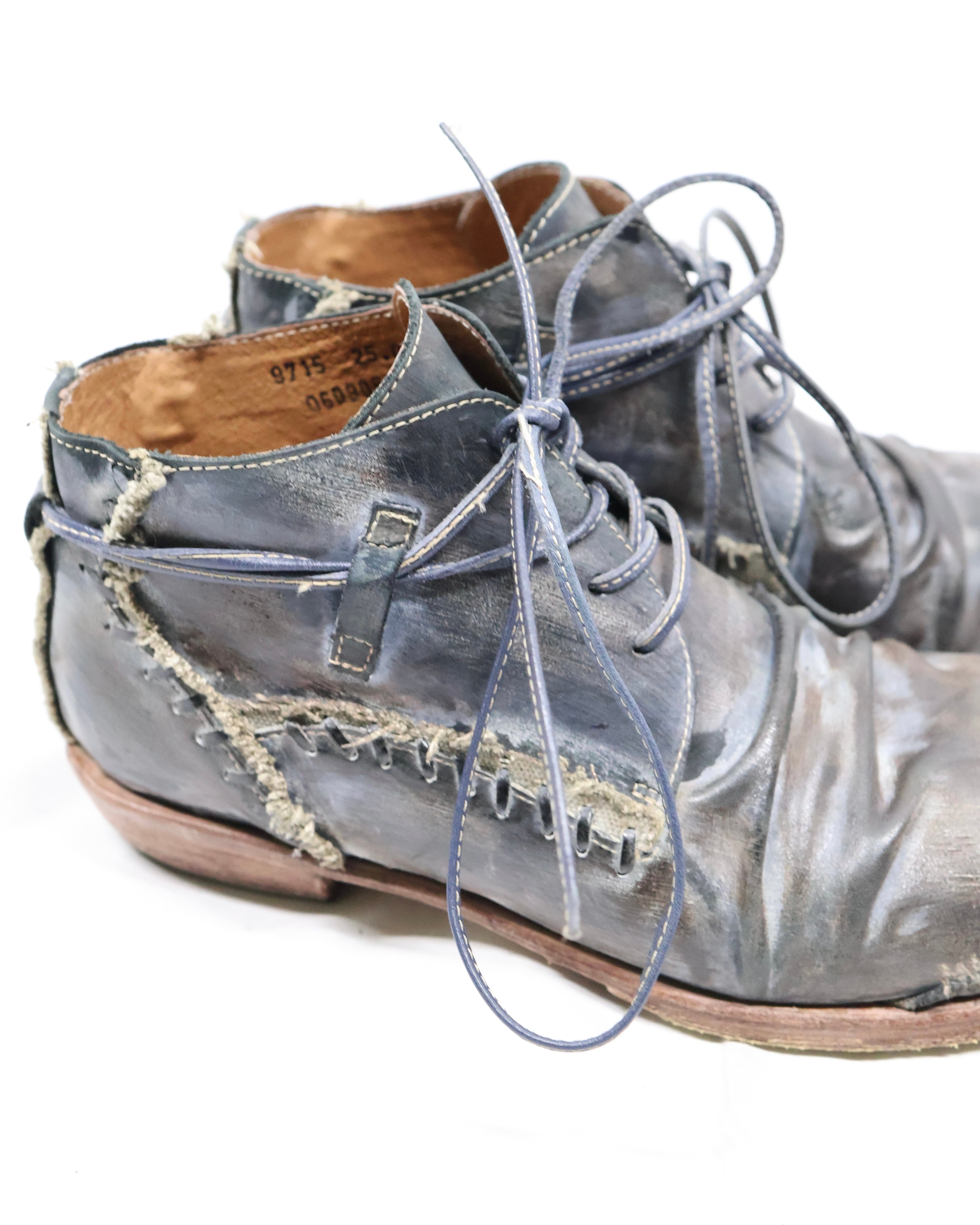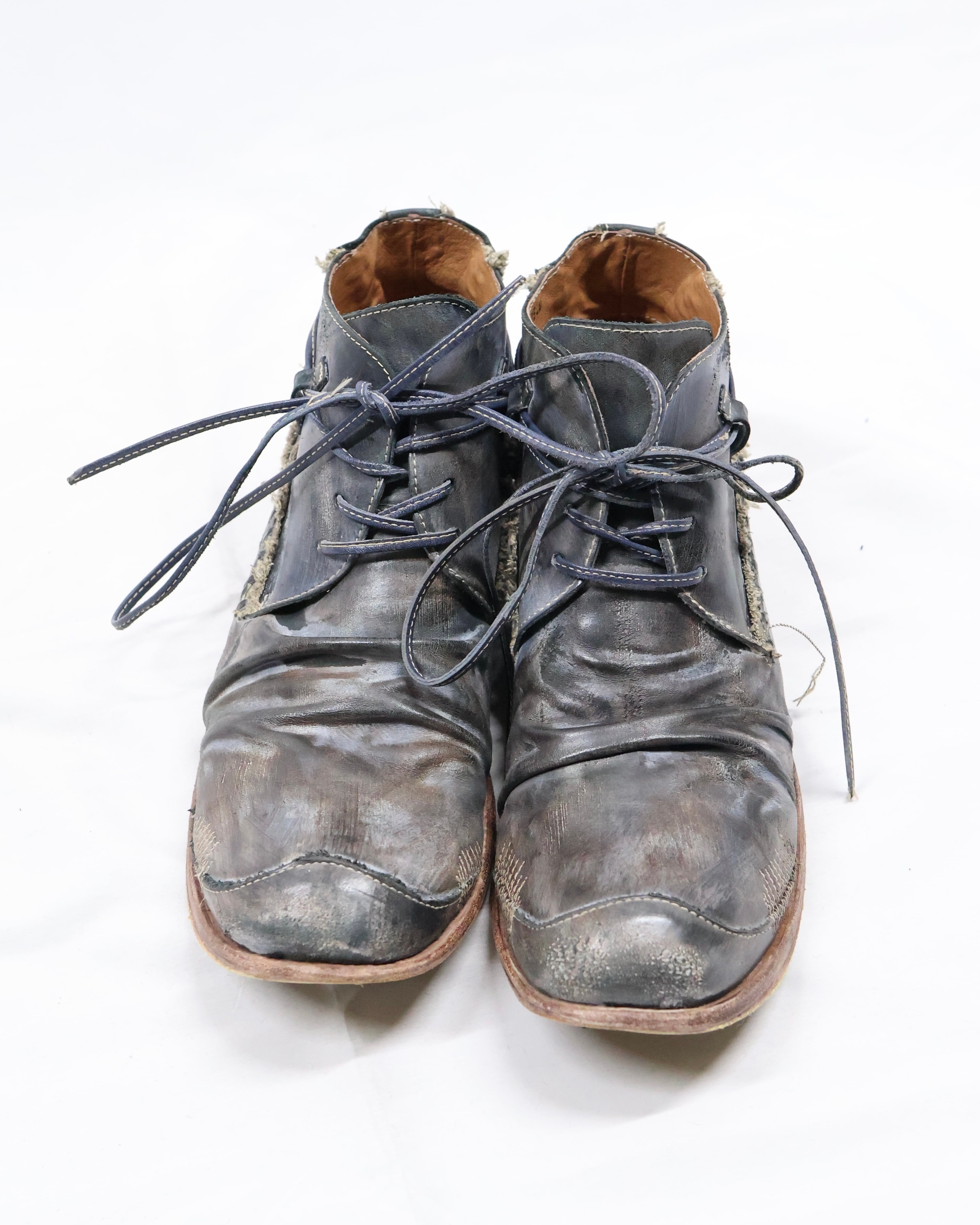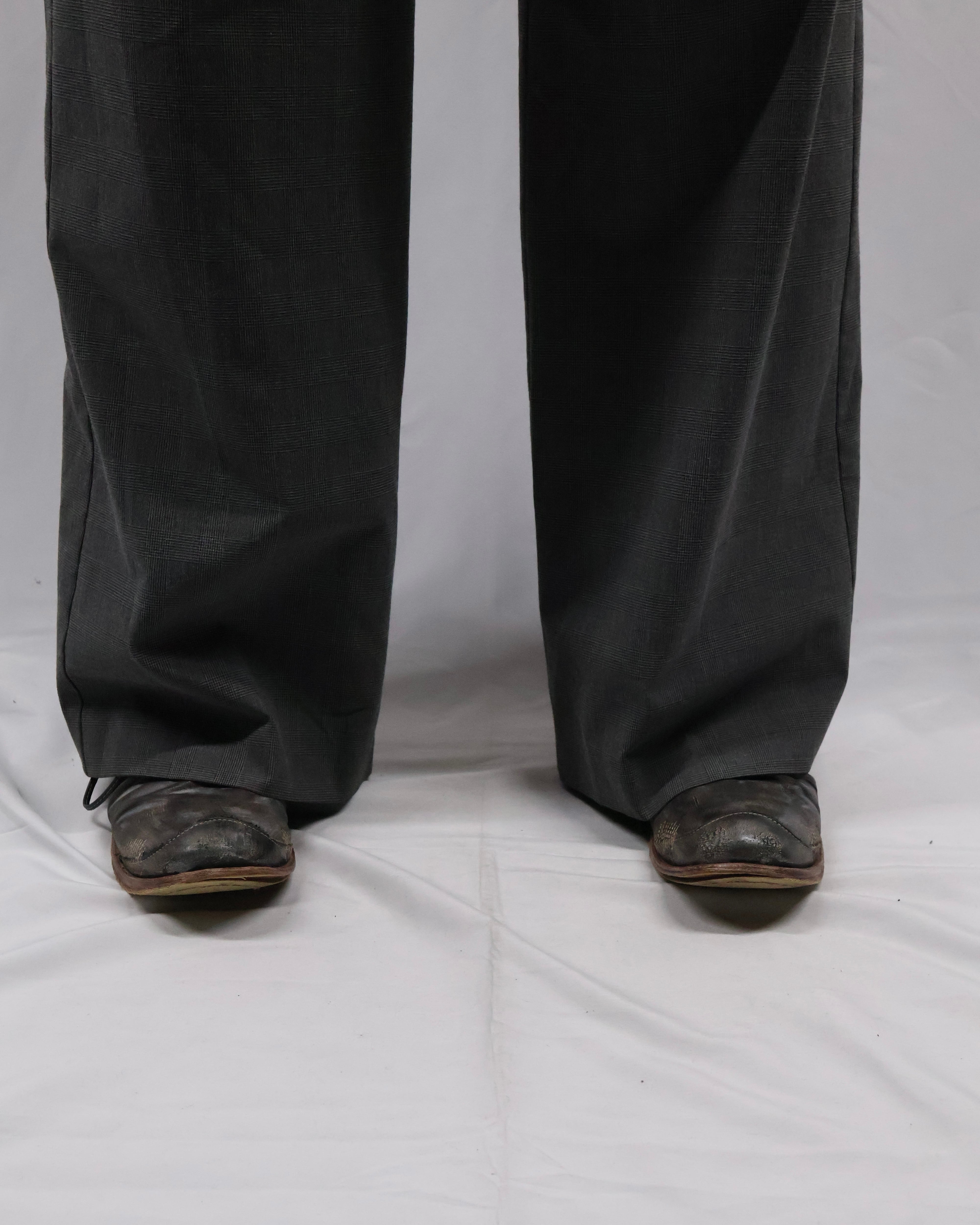 フォルムが特徴的なレザーシューズ。シンプルに単体のインパクトが強く、ショーツなどと合わせてもgood。トゥのデザインを活かしてフルレングスと合わせていただくと、コーディネートのアクセントとして活躍するような一足。