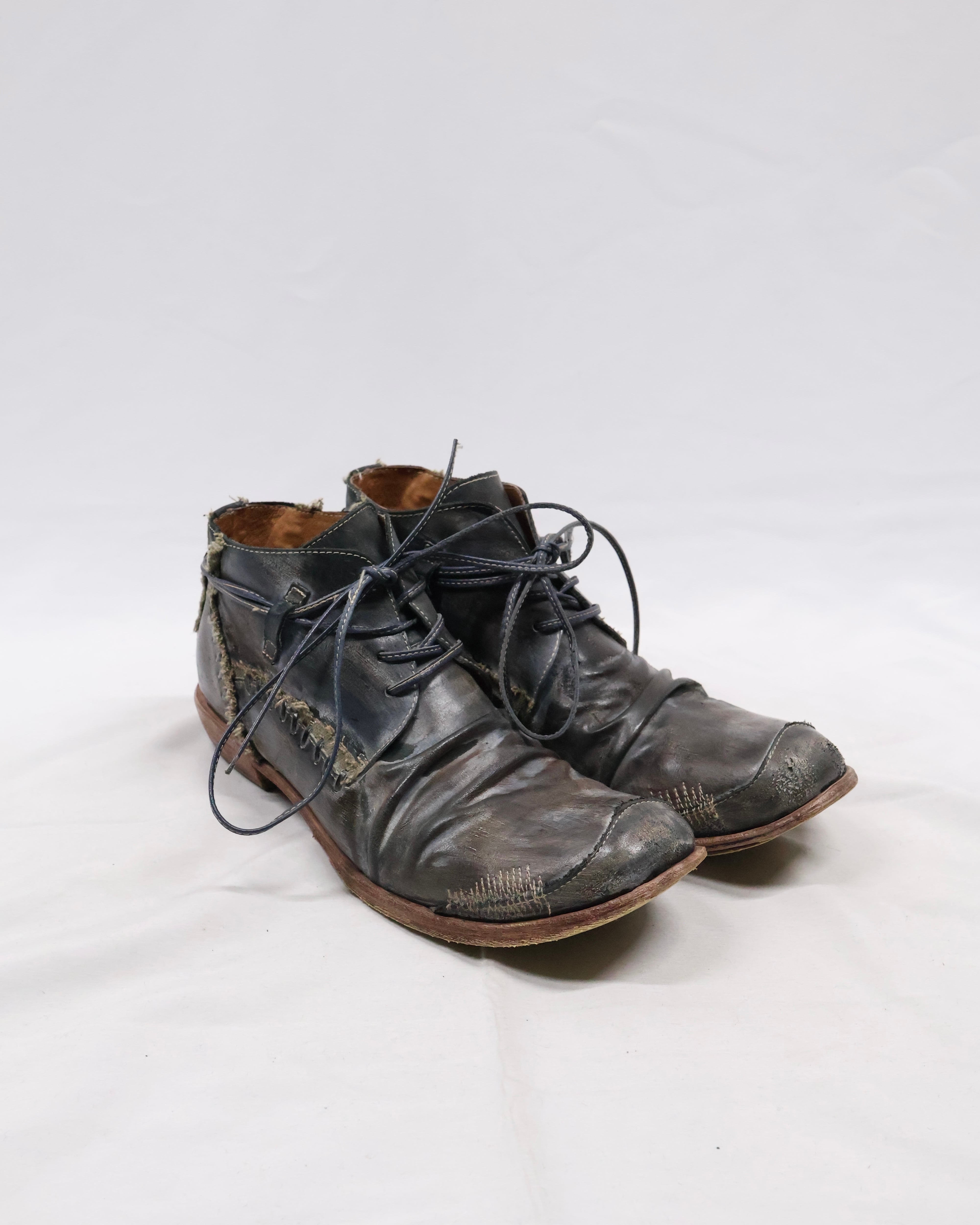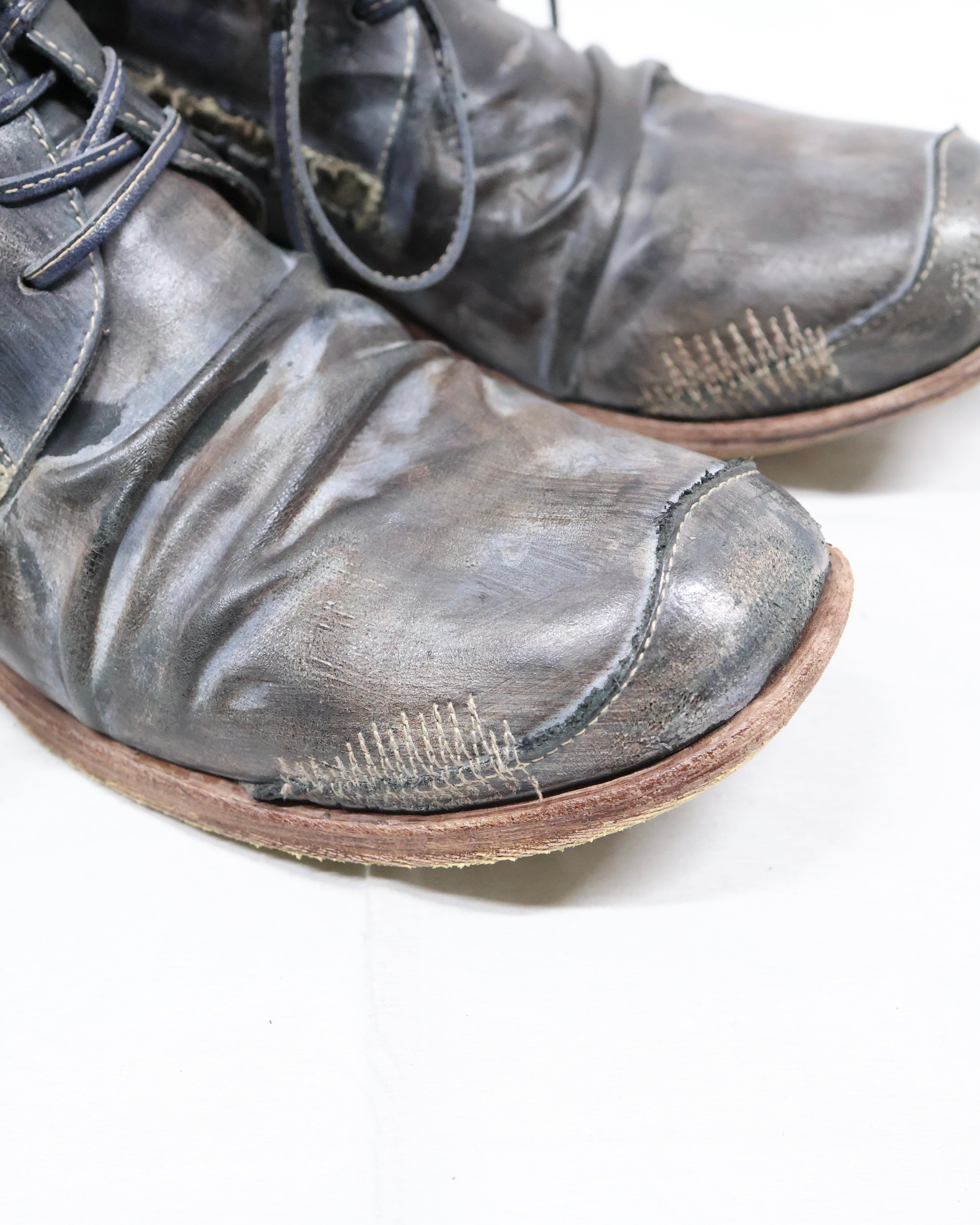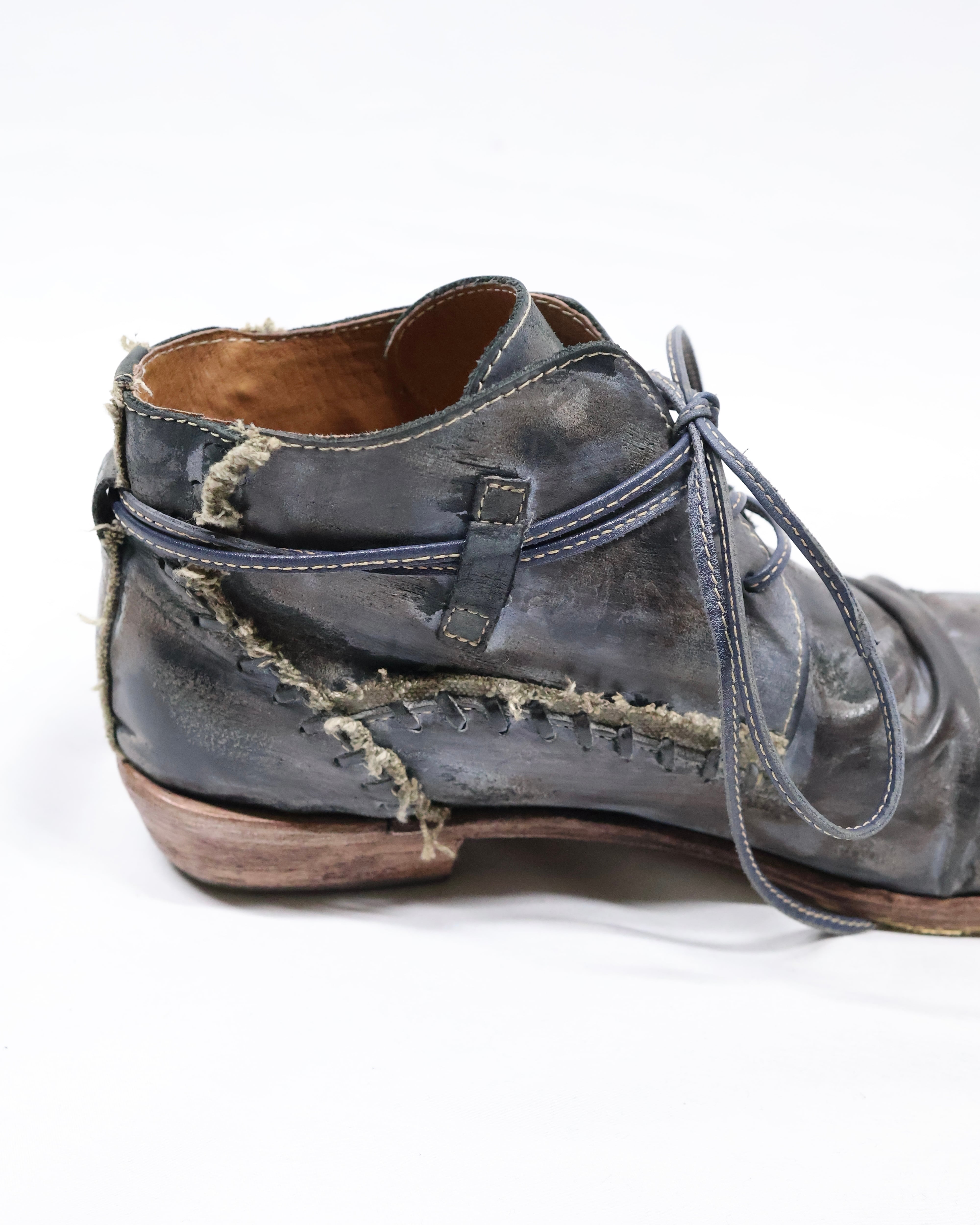 フォルムが特徴的なレザーシューズ。シンプルに単体のインパクトが強く、ショーツなどと合わせてもgood。トゥのデザインを活かしてフルレングスと合わせていただくと、コーディネートのアクセントとして活躍するような一足。