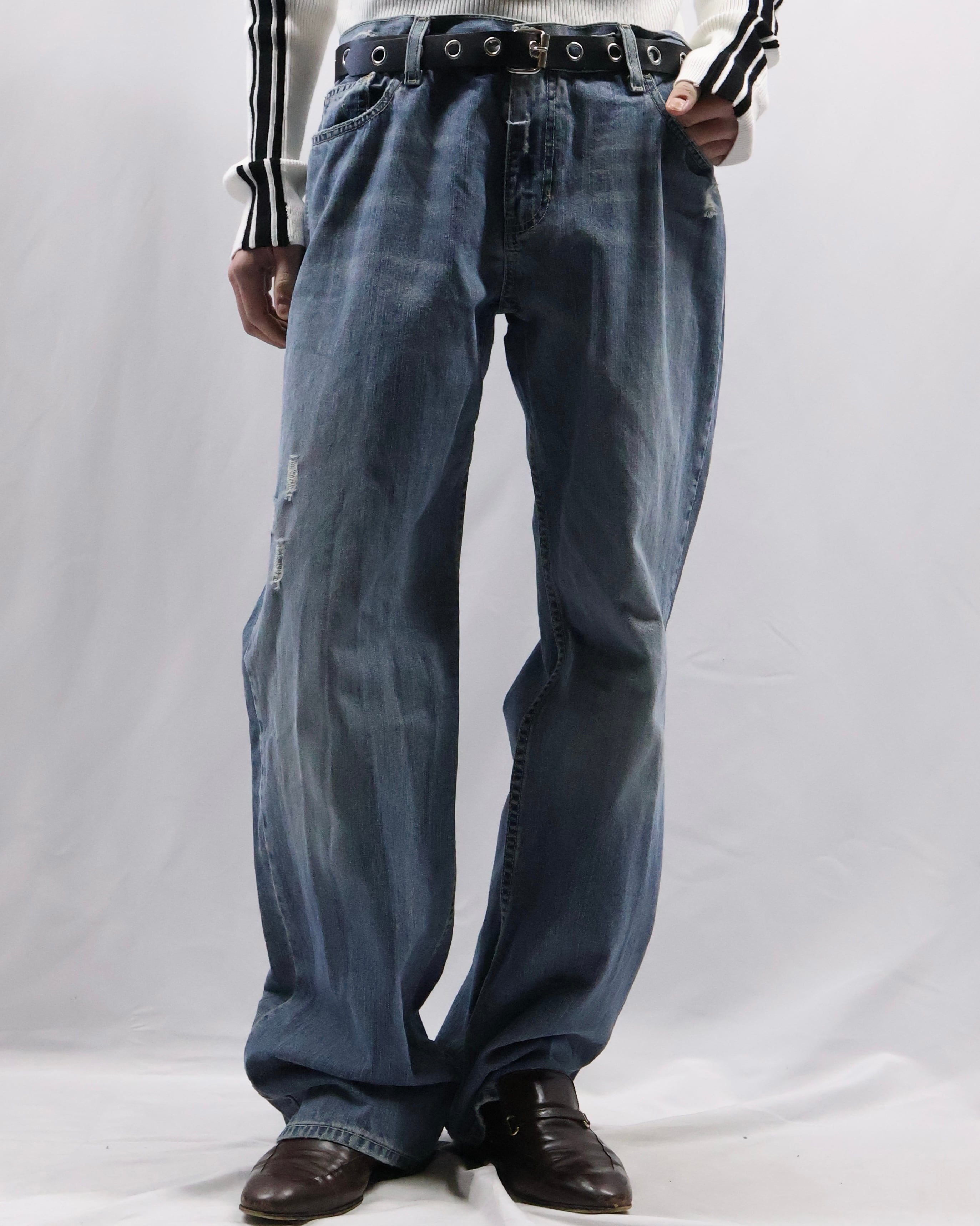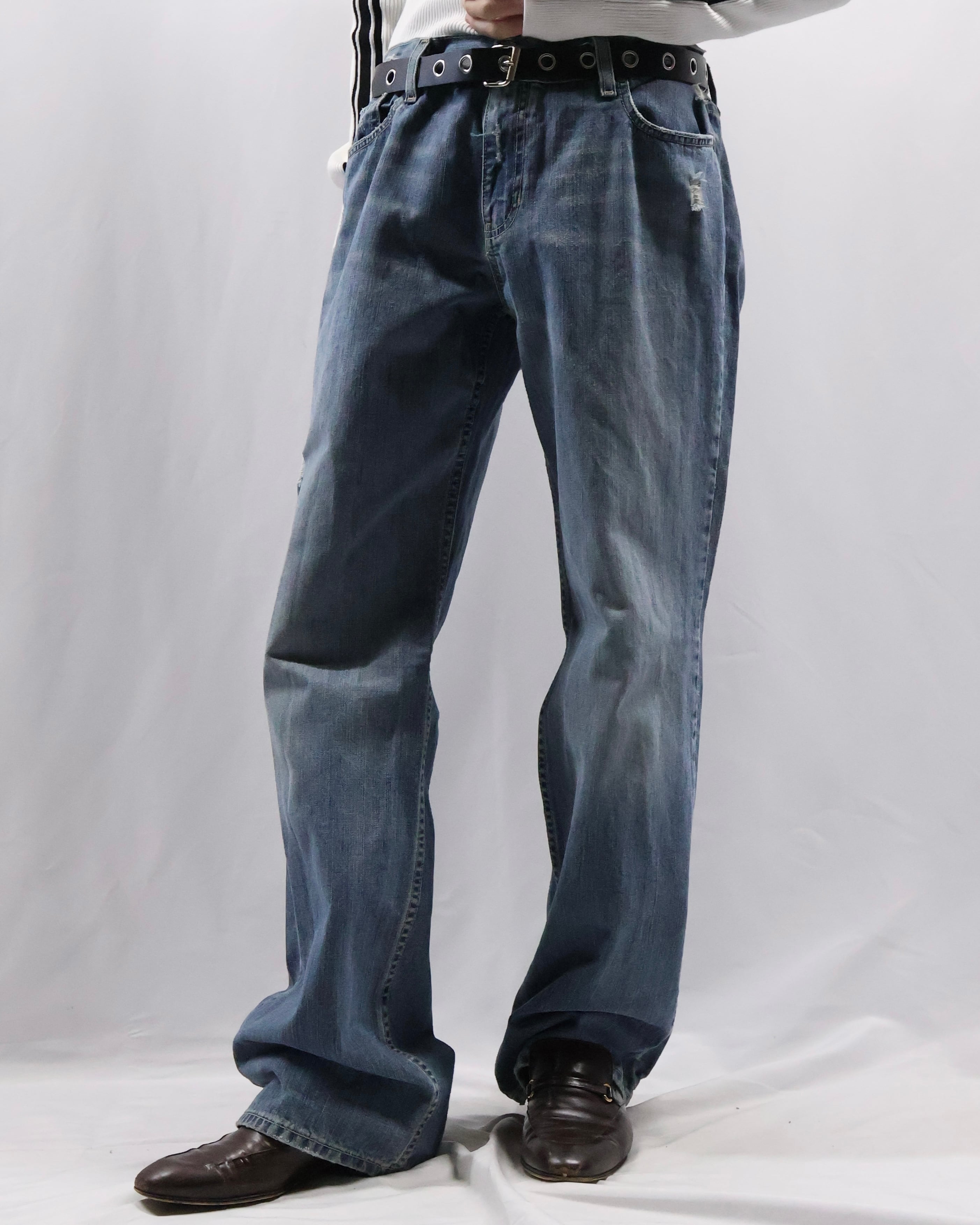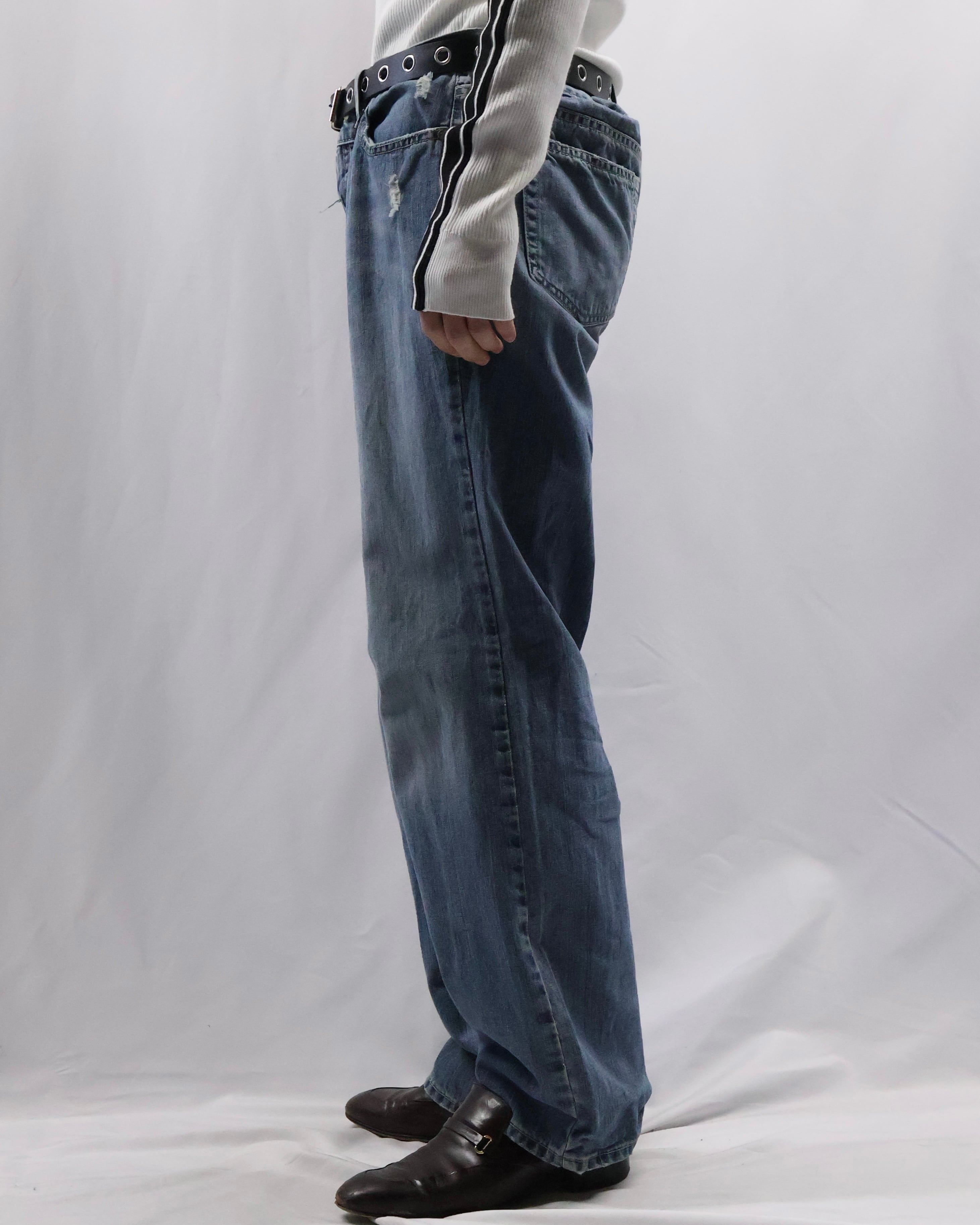 綺麗なシルエットでフェード感goodなデニムパンツ。クラシックな格好からカジュアルな格好まで幅広く使える汎用性の高いアイテム。存在感もありながらもコーディネートにサラッと馴染む優秀で愛着の湧く一本。