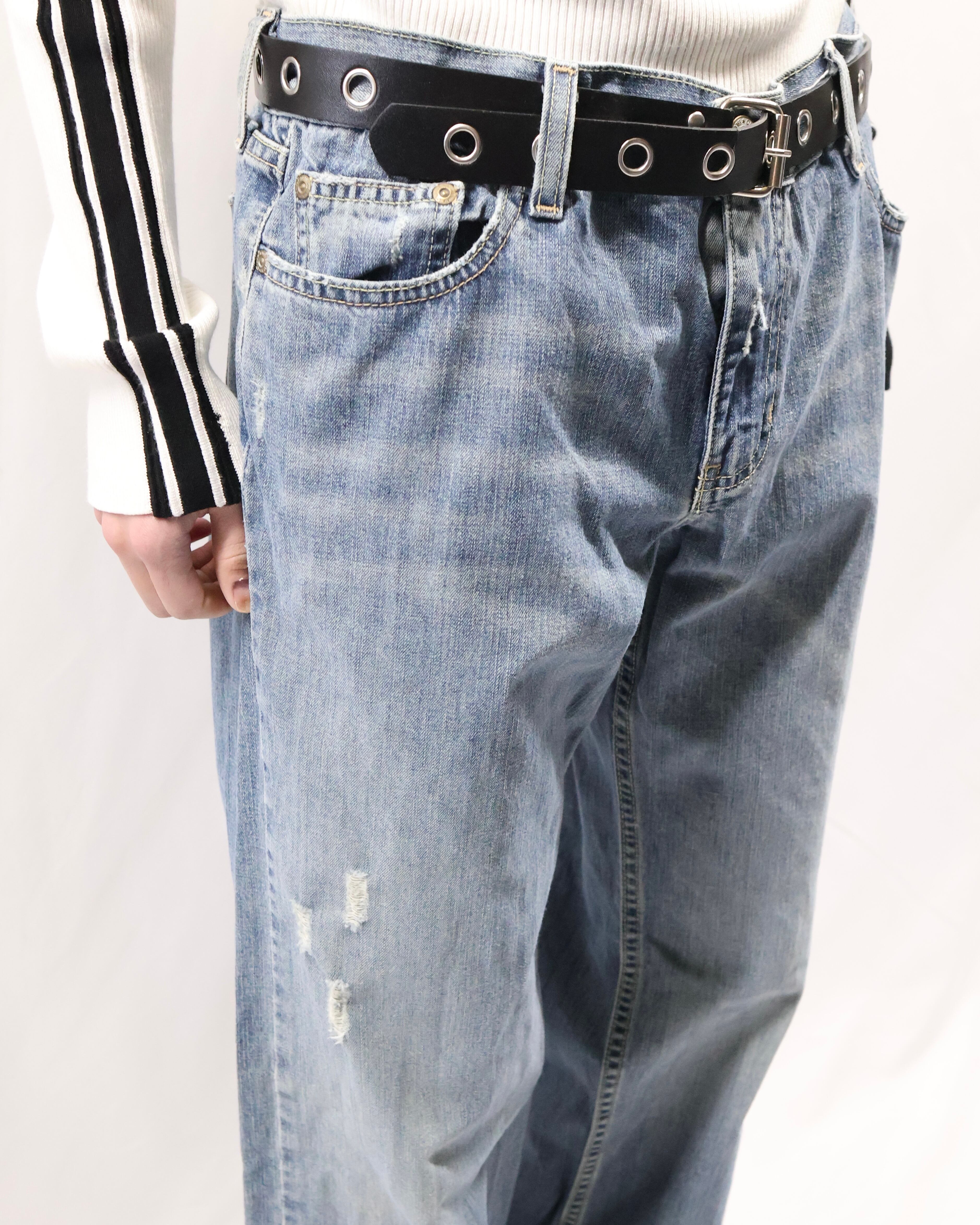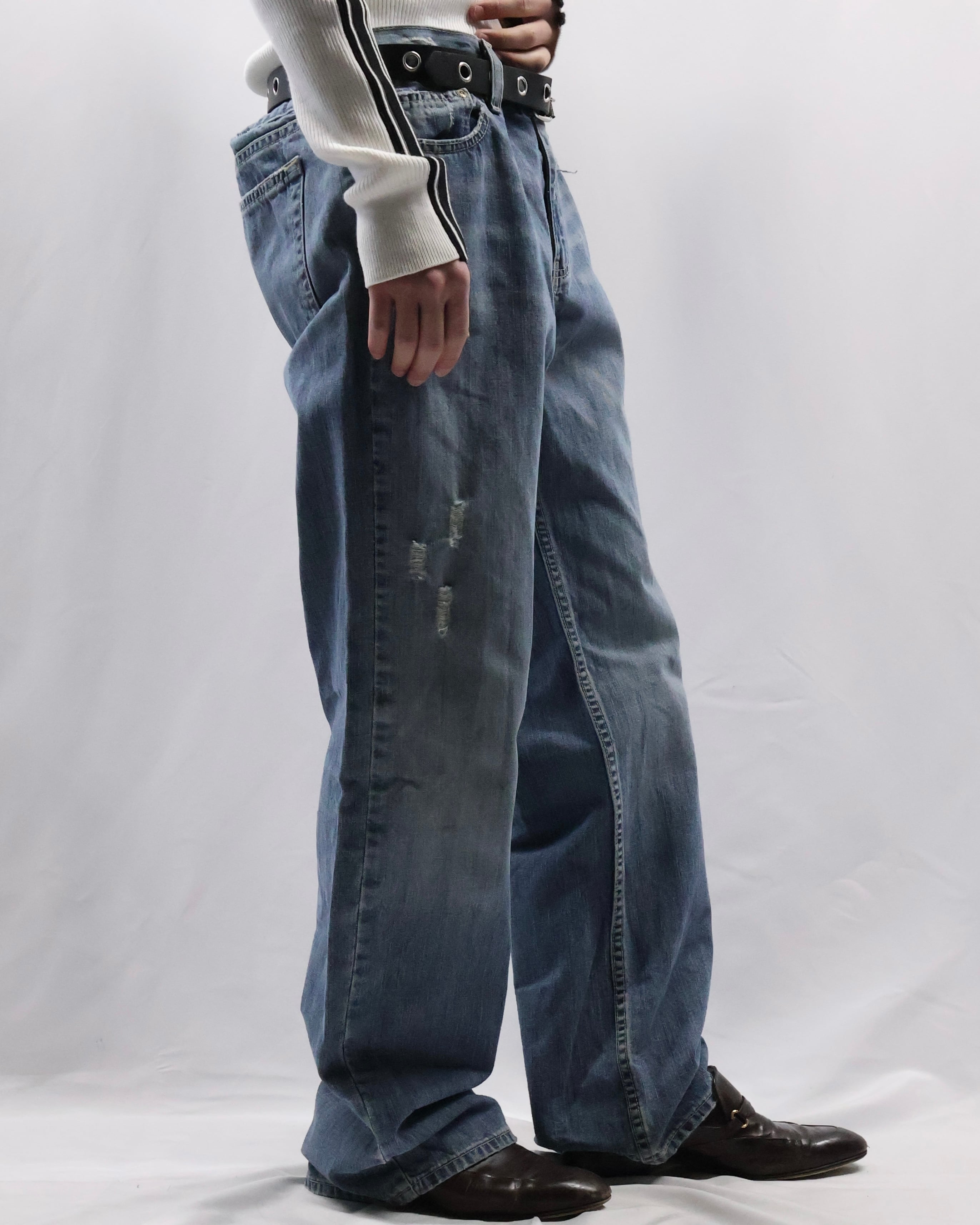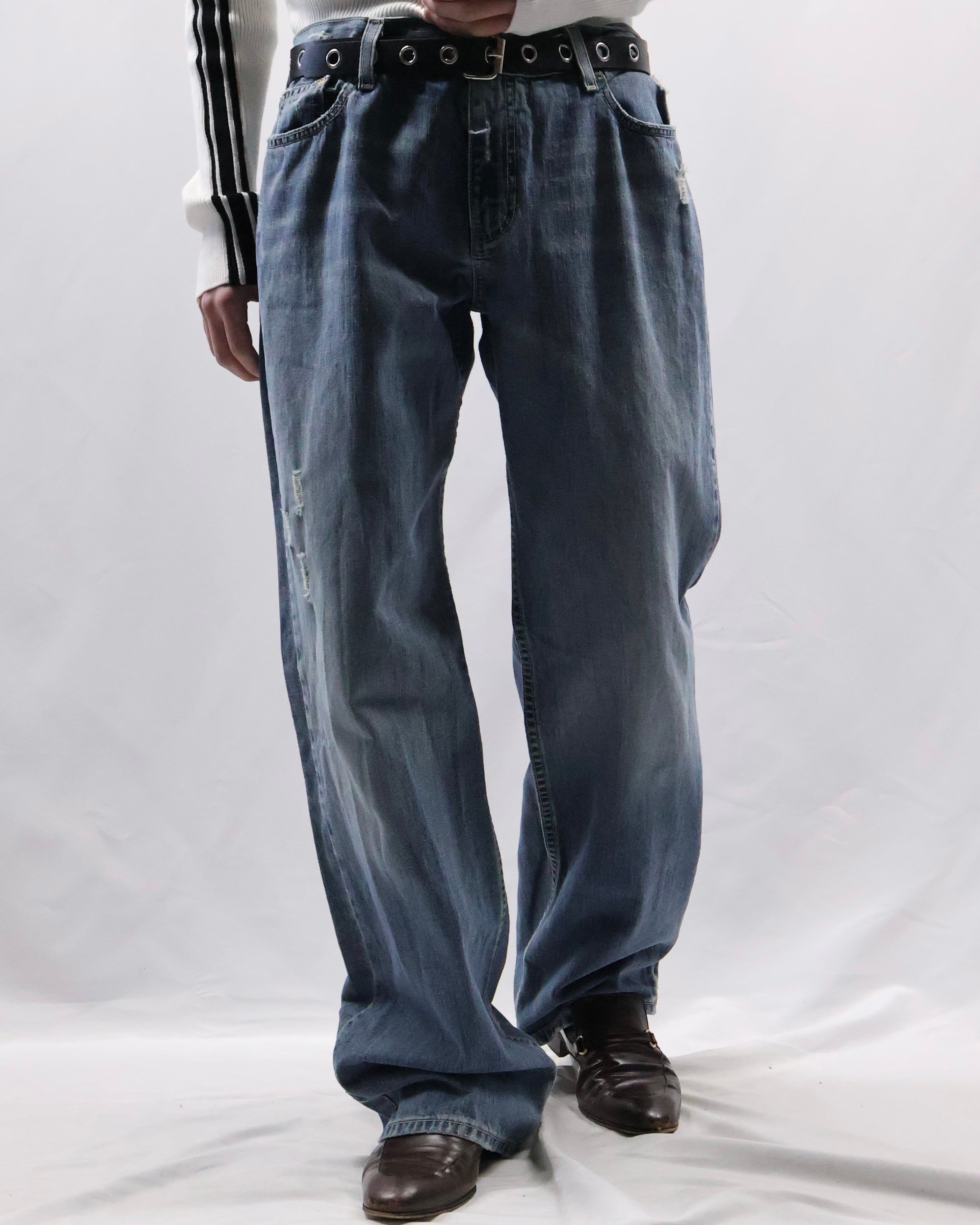 綺麗なシルエットでフェード感goodなデニムパンツ。クラシックな格好からカジュアルな格好まで幅広く使える汎用性の高いアイテム。存在感もありながらもコーディネートにサラッと馴染む優秀で愛着の湧く一本。