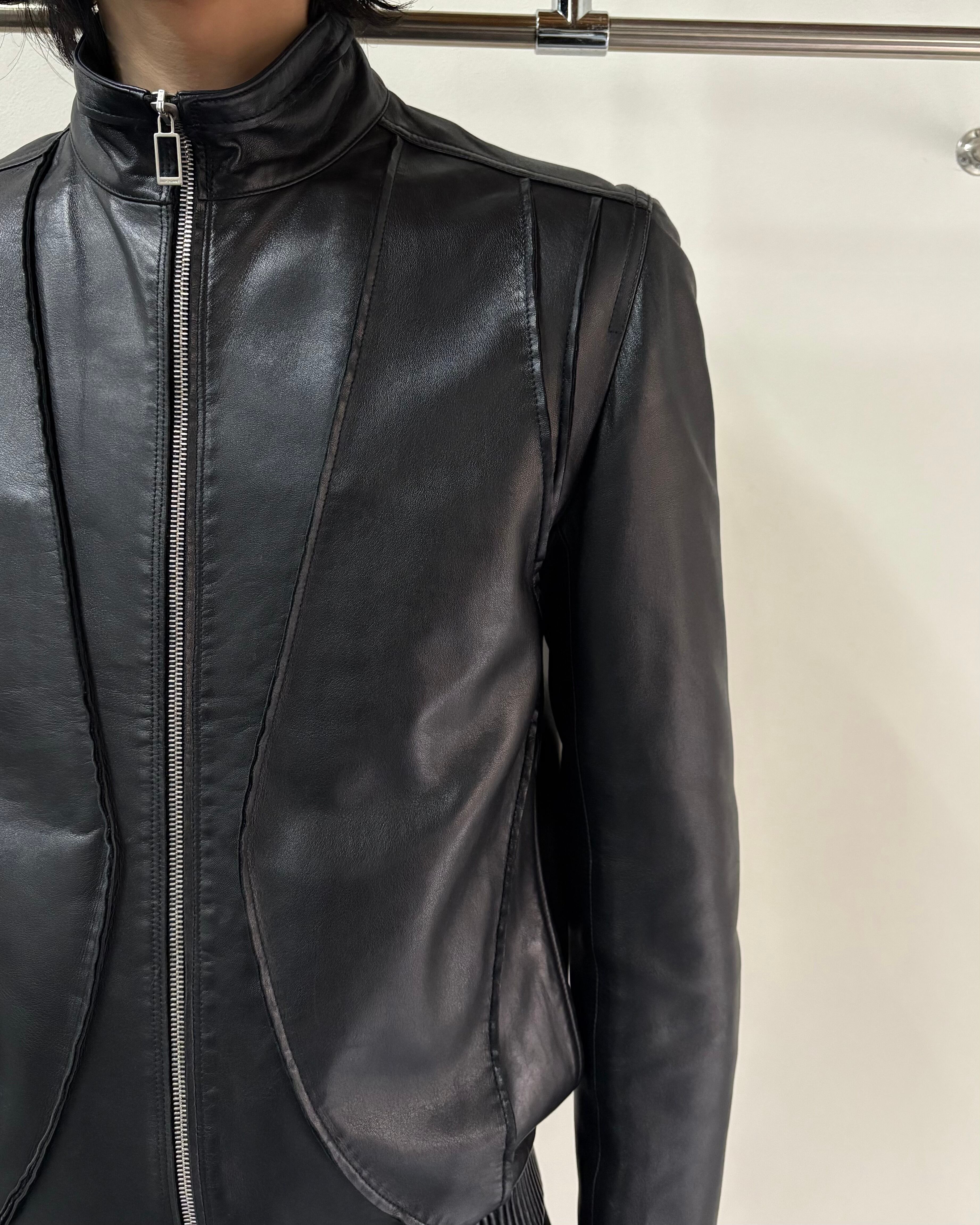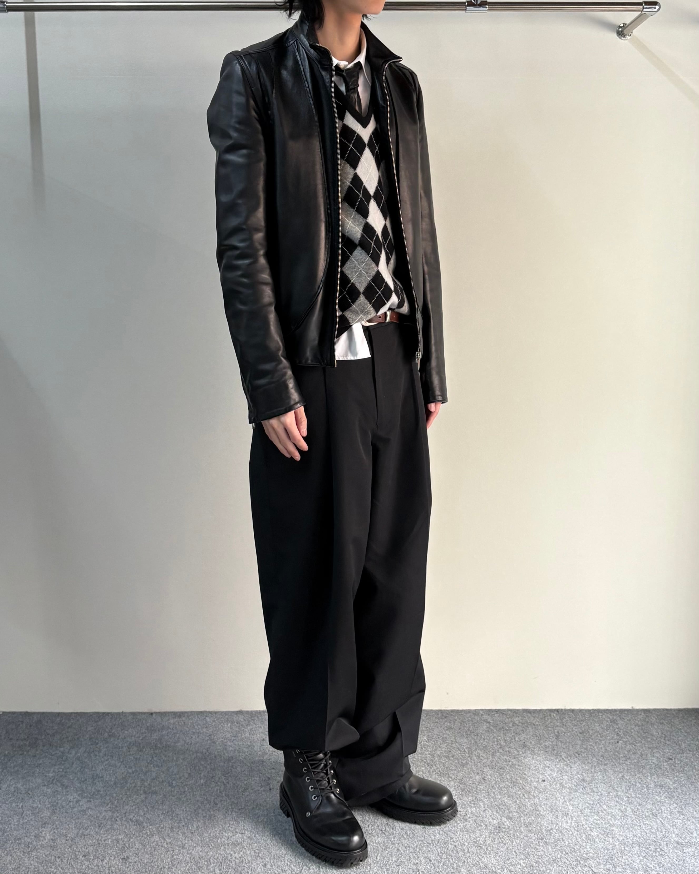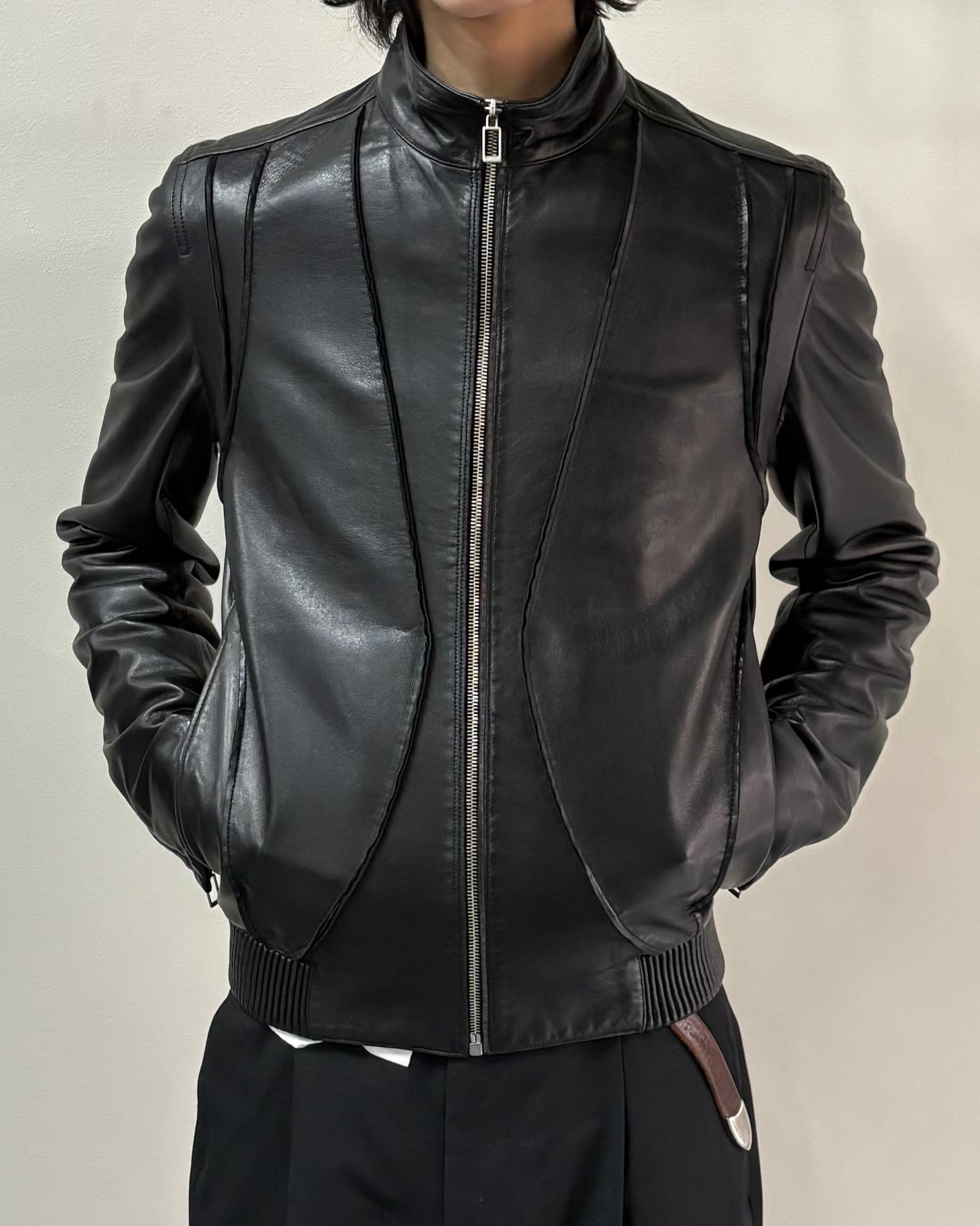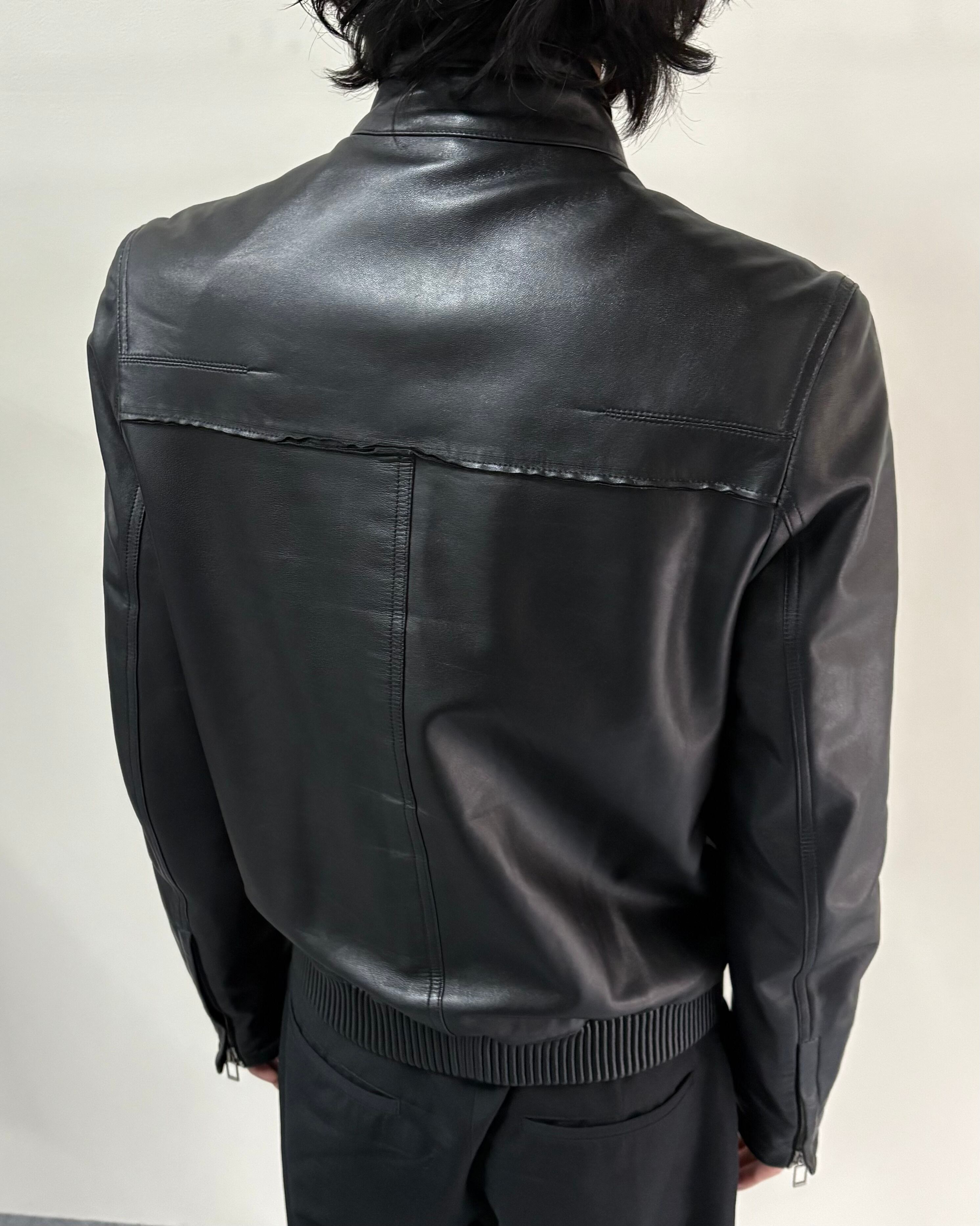 一見シンプルなレザージャケットだが、レザー切りっぱなしの曲線ラインや肩の仕立て、リブの部分までレザーで作られていたりとクリスヴァンアッシュのDiorの鋭さを感じることができる1着。