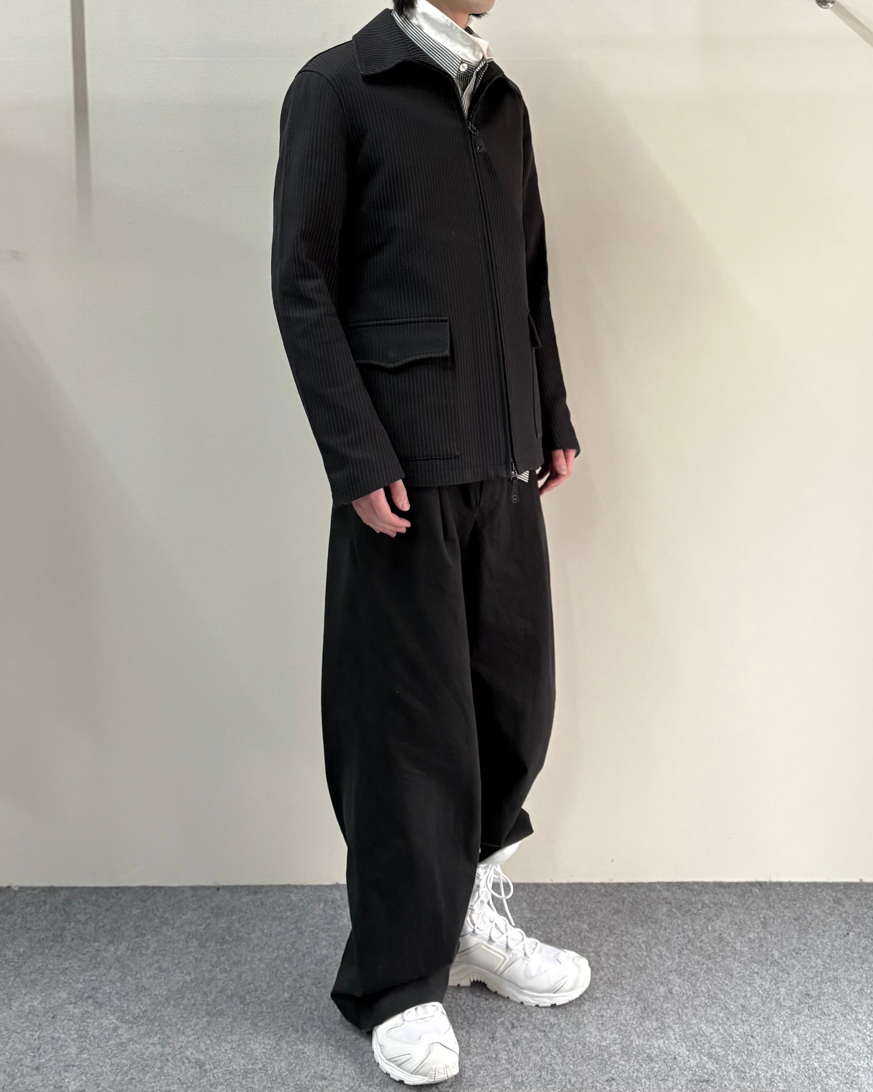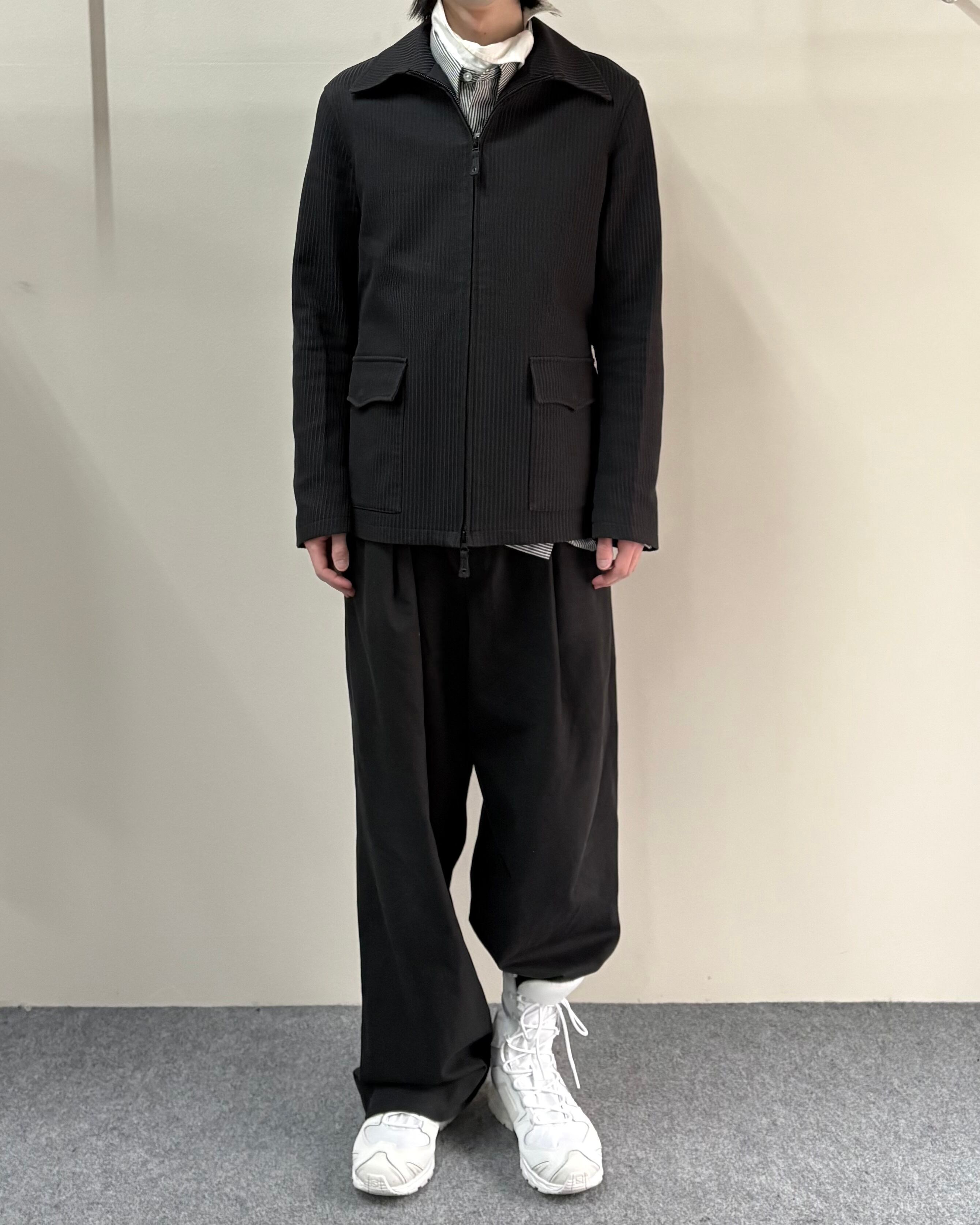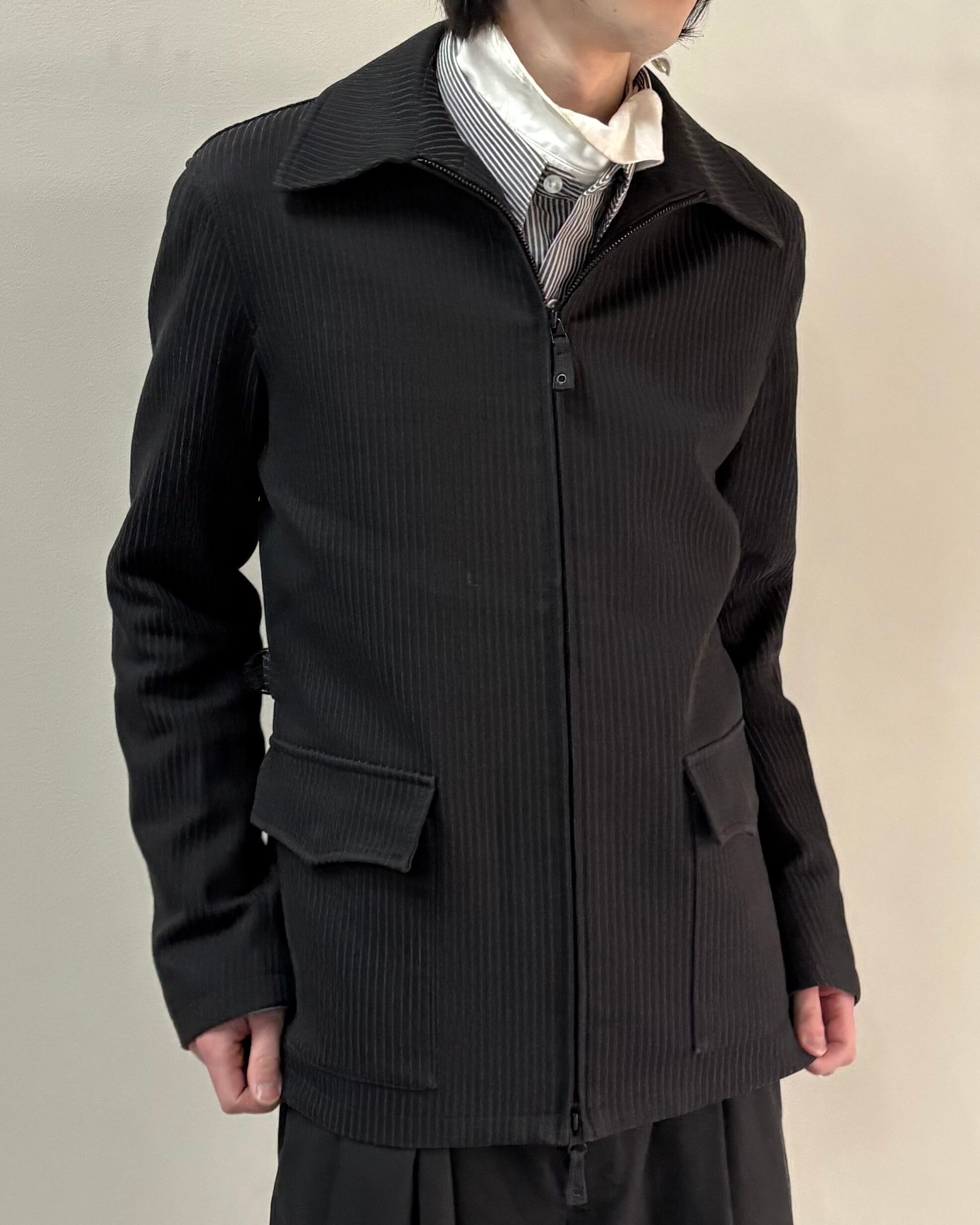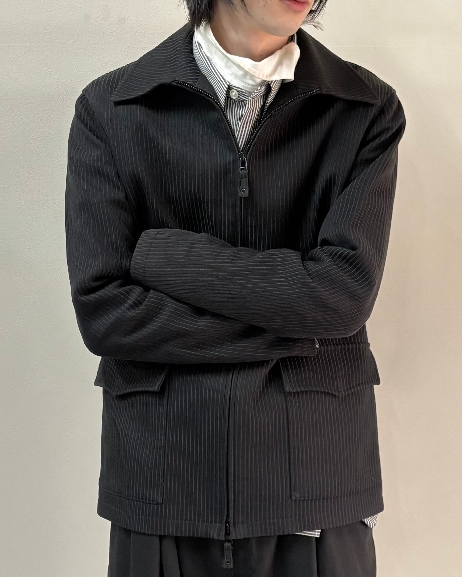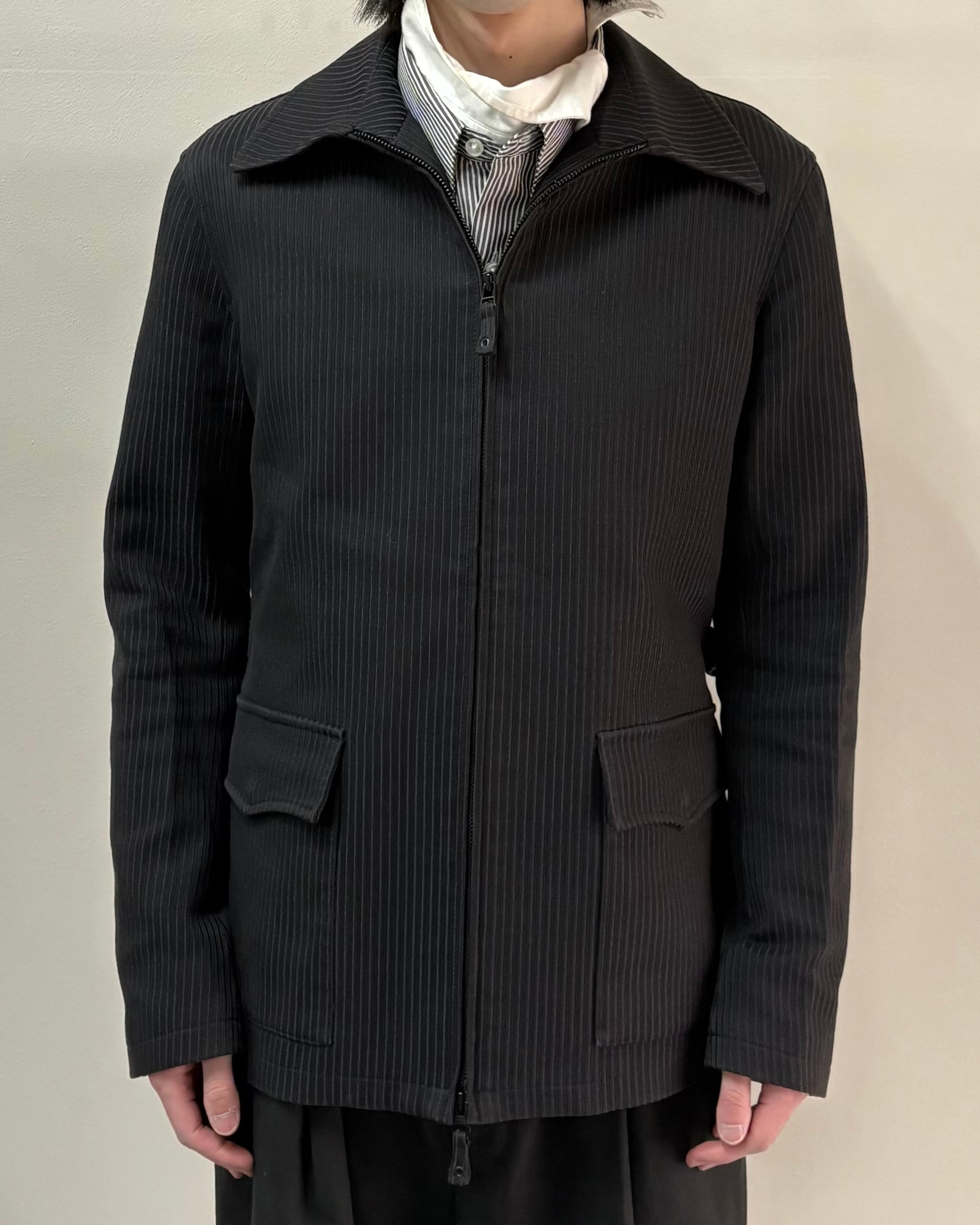 フロントはジップ仕様となっておりテーラードジャケットの要素とブルゾンの軽快さを併せ持つデザイン。程よく身体に沿うシルエットが全体のバランスを引き締めスタイリングをシャープにまとめてくれるアイテム。