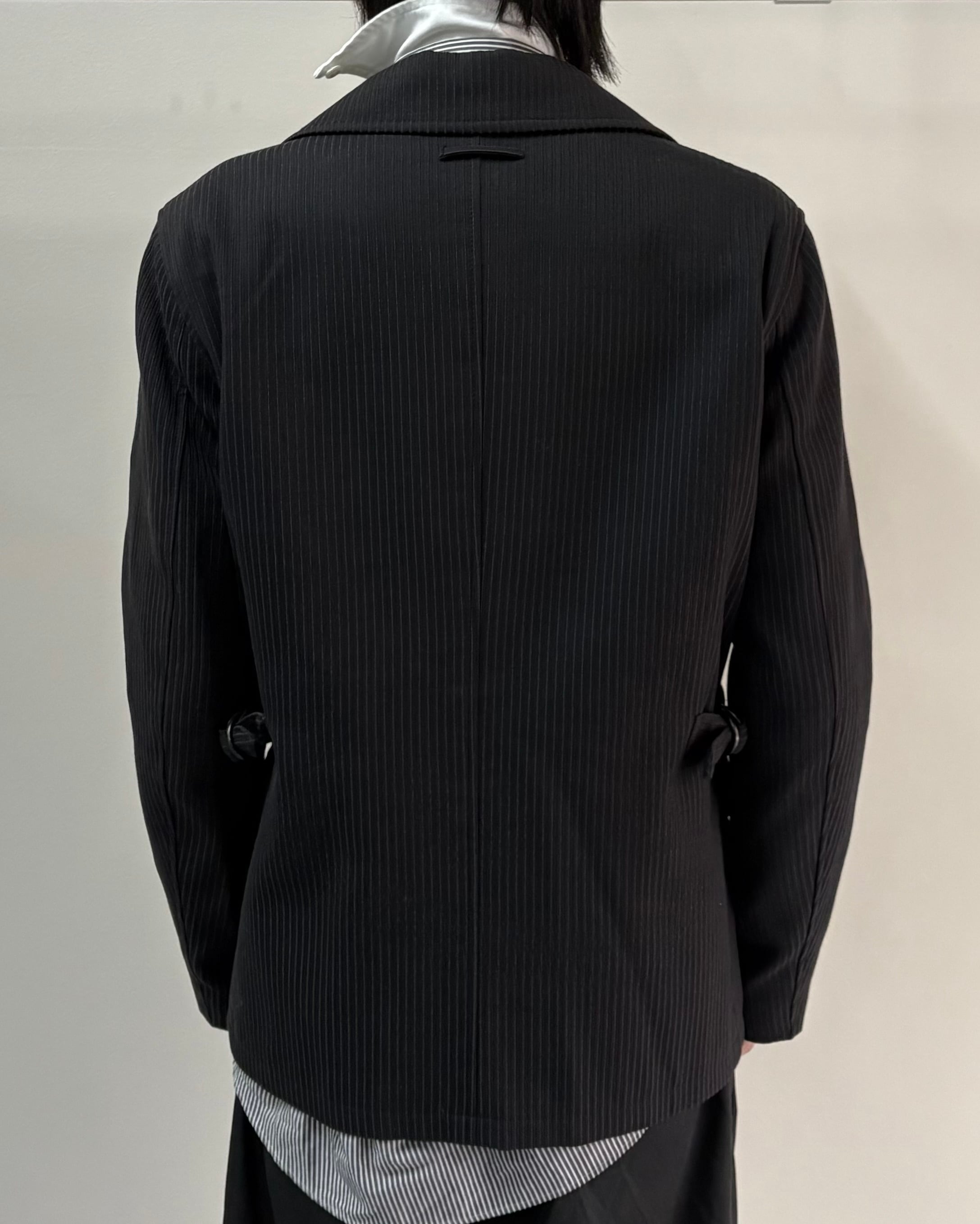 ピンストライプ柄が特徴的なクラシックとモードが融合した一着。