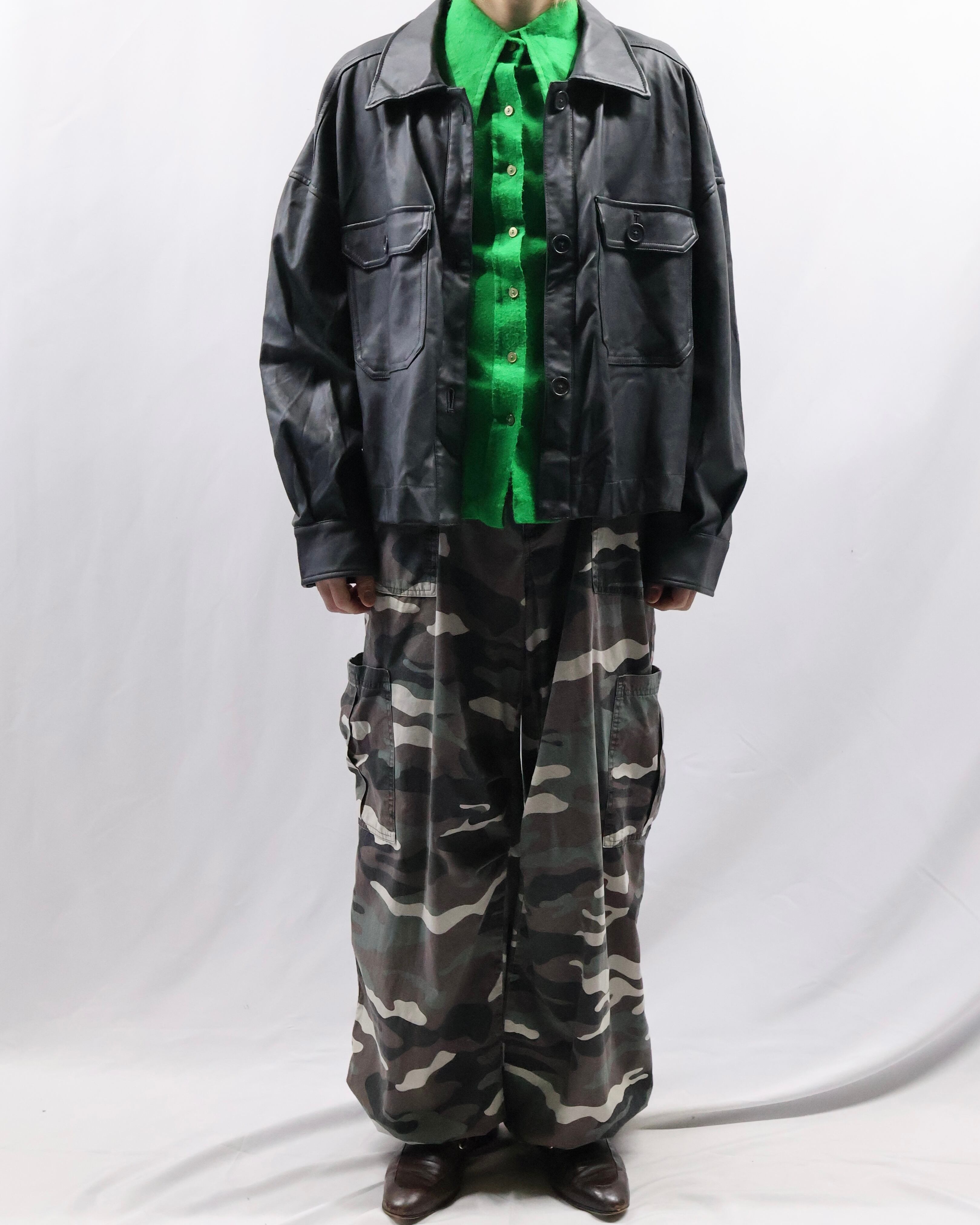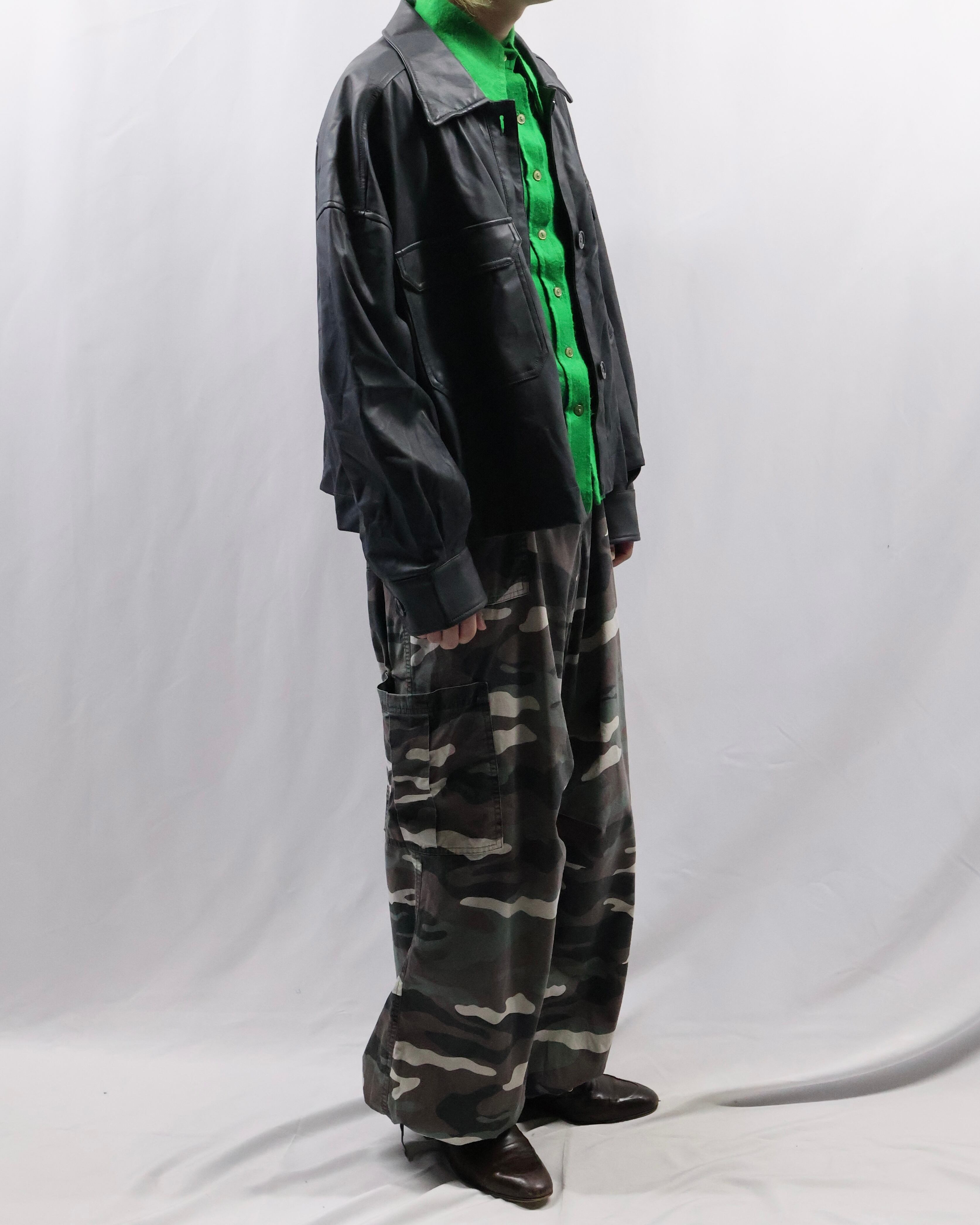 伸縮性のある素材を使用した、ドローコードカーゴパンツ。色合いが良く様々なコーディネートに合わせていただから一枚。シルエットの良さと柄の奇抜さの塩梅がよく、チープにならない柄パン。