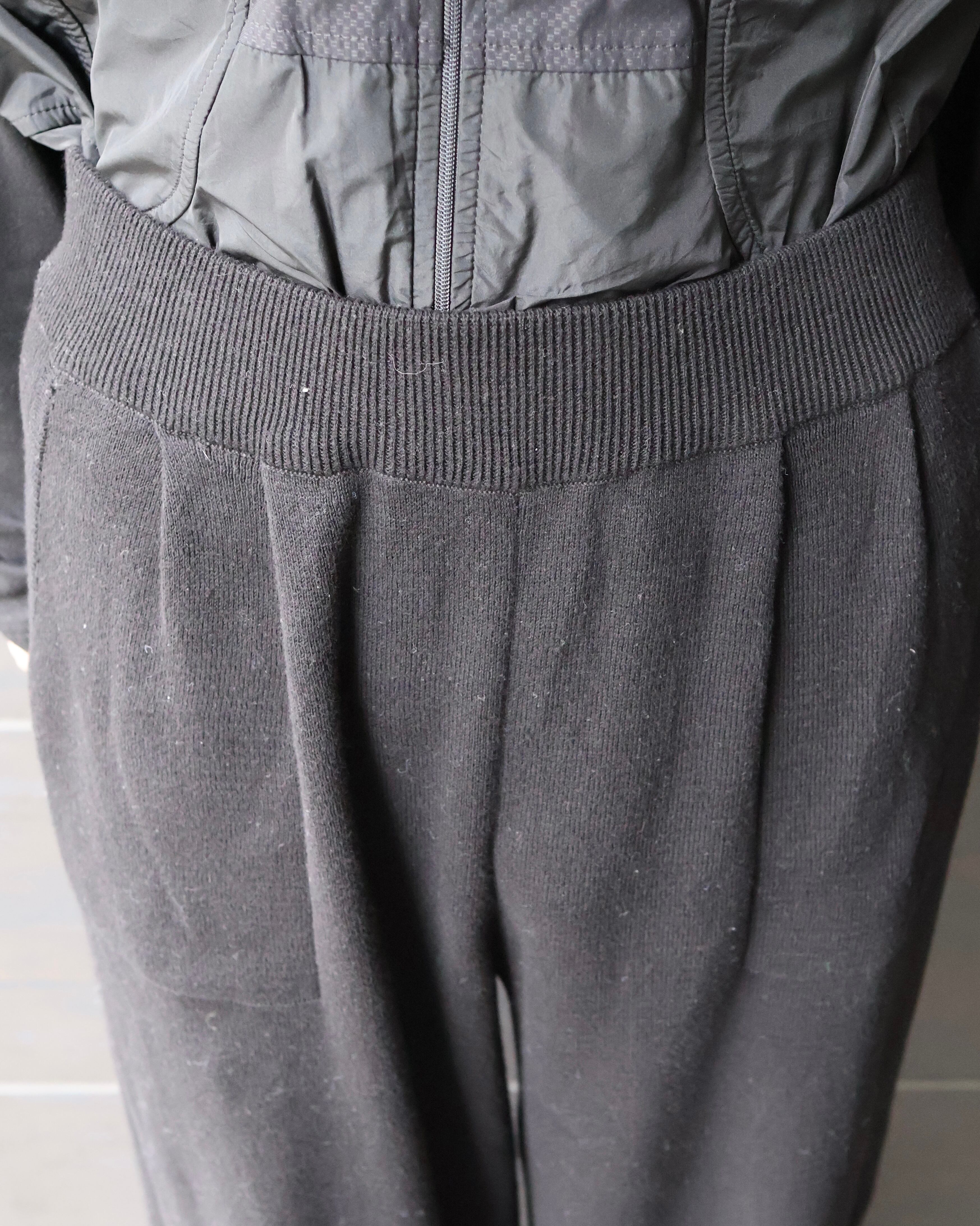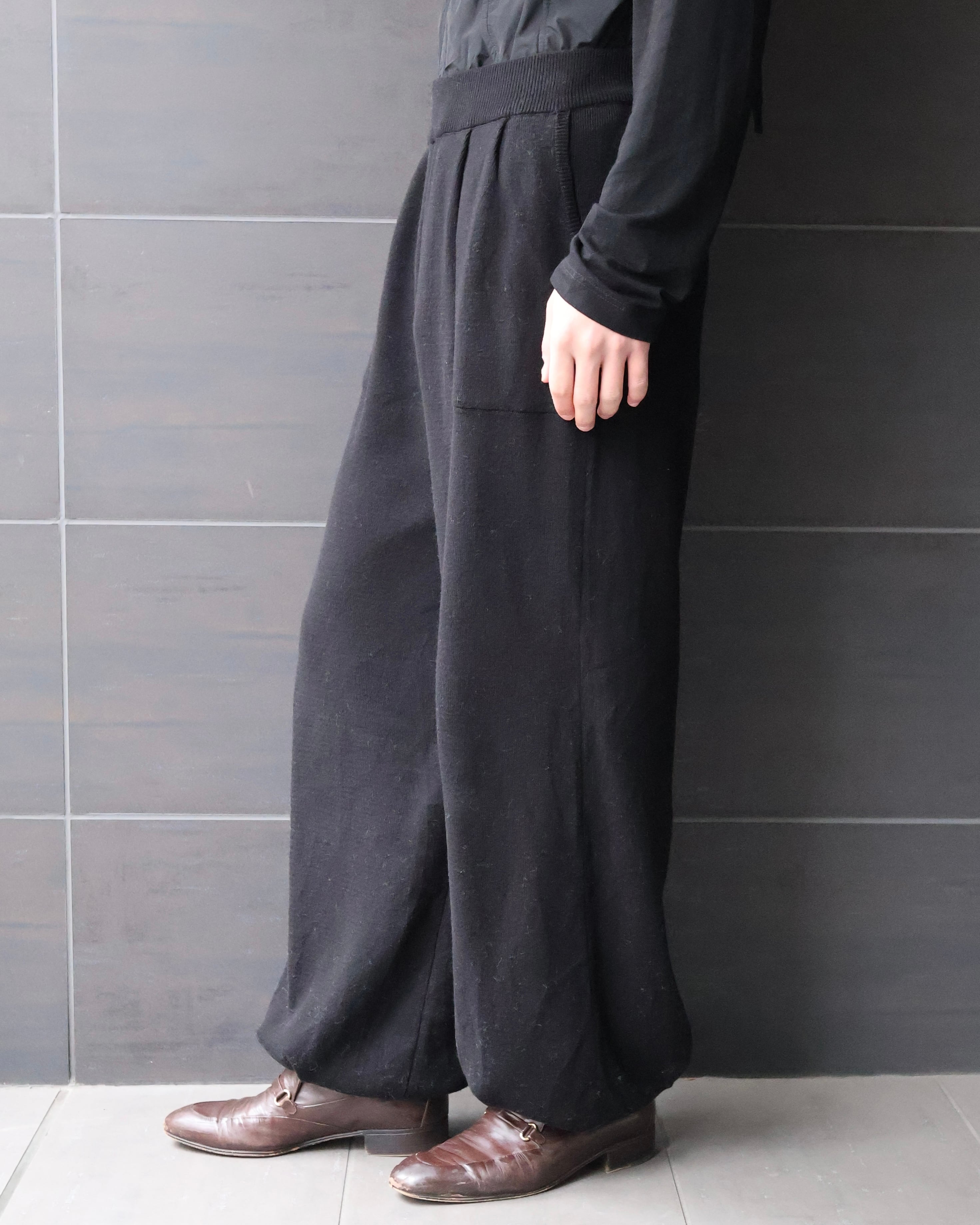 バルーンシルエットのニットパンツ。ニットだからこその生地の靡きと光沢感で、他のパンツとの差別化を図れ、ただ気を衒ったパンツではなく合わせやすいモノトーン。グッドなレギュラー。着用感は写真の通りで、着心地と合わせやすさは想像以上。