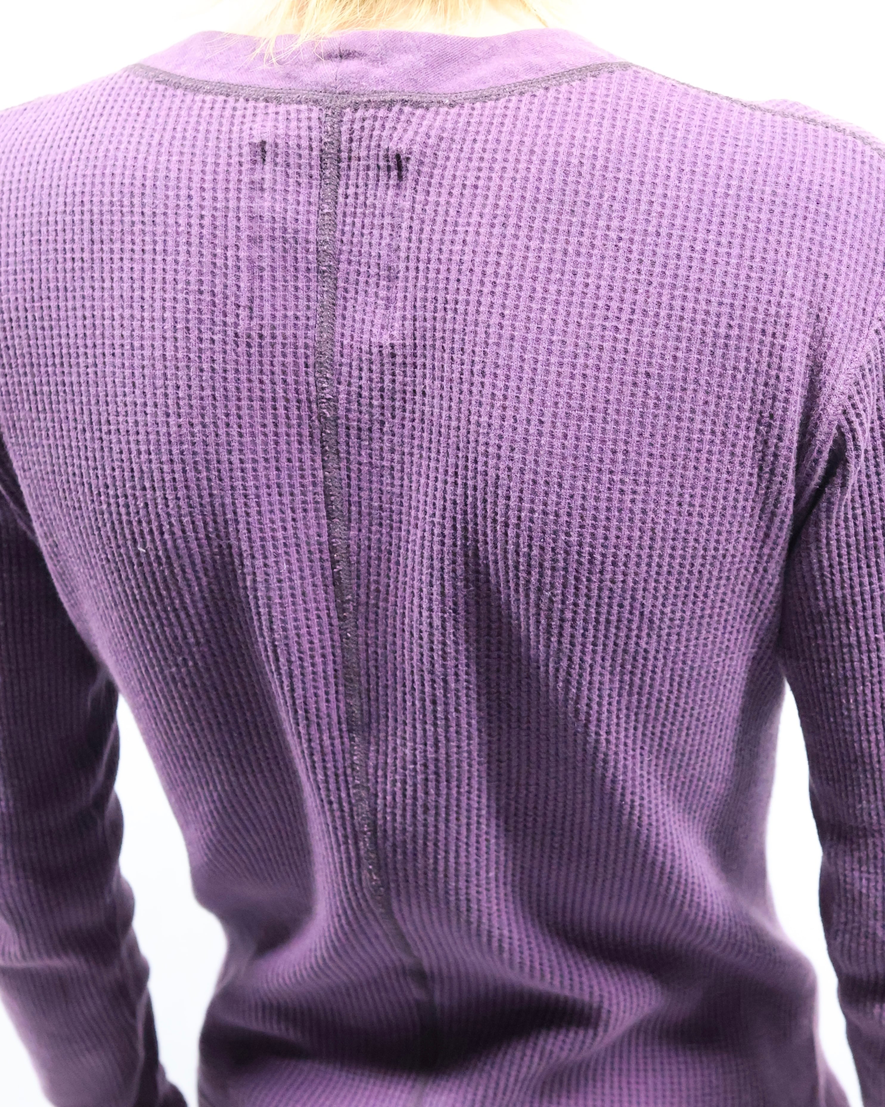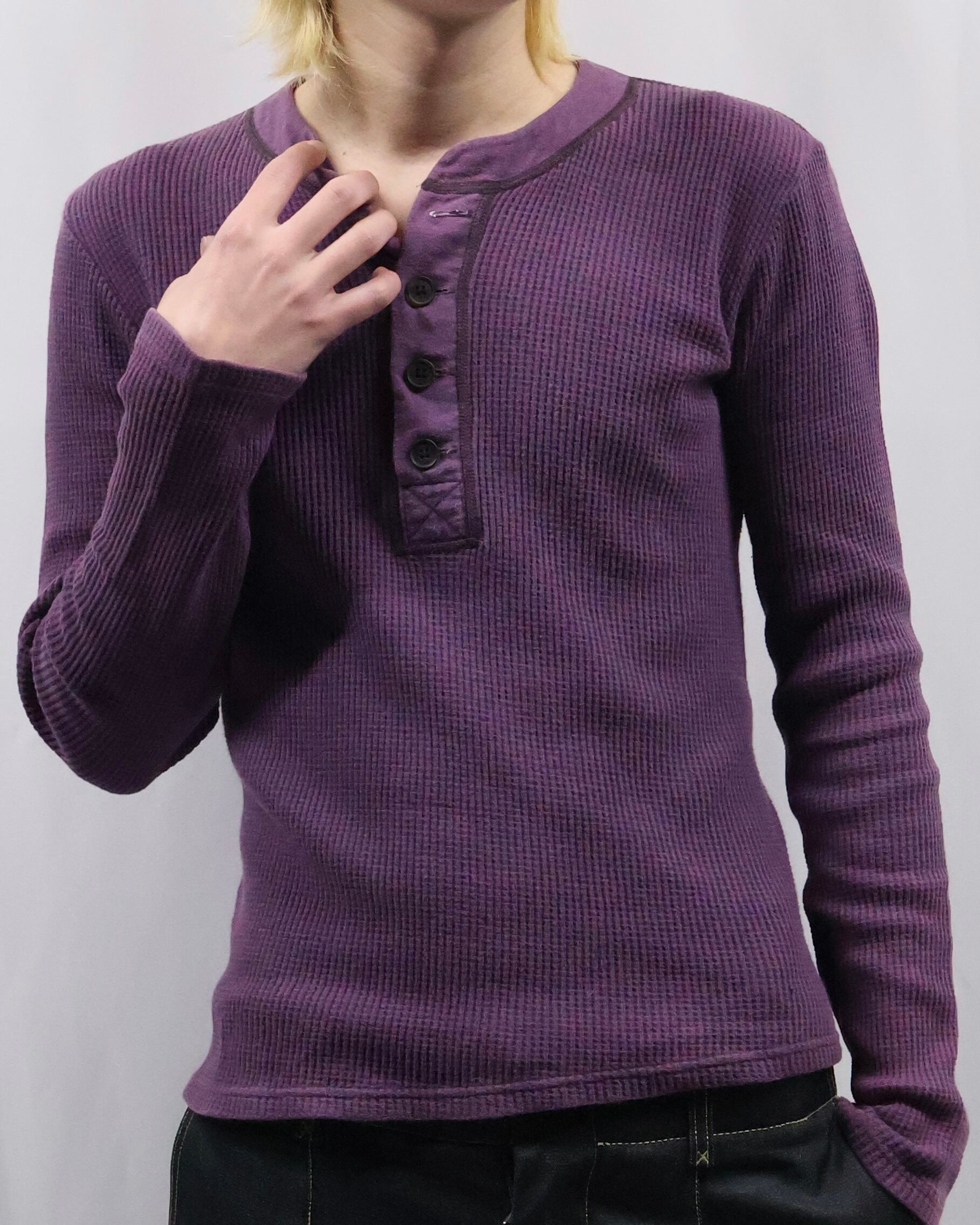 極めてシンプルな鮮やかなパープルのサーマル。夏のサーマルでここまでの毒々しさ、面白い。秋冬のインナーとしてもタイトで色だけをコーディネートに加えてくれる、シャツやジャケットの中に入れたくなる一枚。