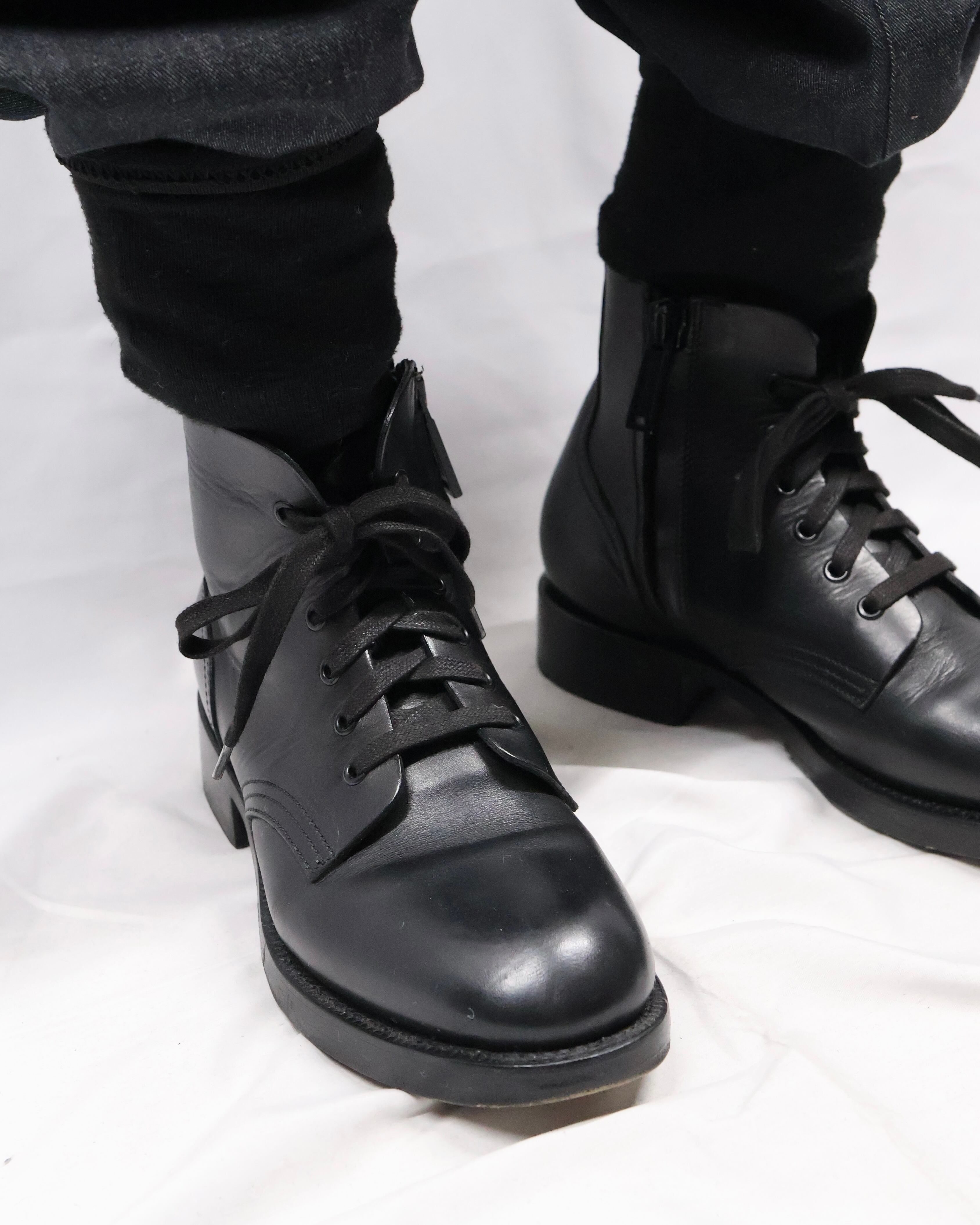 ミニマルな作りで合わせやすいジップアップショートブーツ。着脱のしやすいありがたいジップアップでデザインとしてのレースをあしらったニュートラルな一足。流行り廃りのないデザインでタイムレスに着用いただける汎用性の高いアイテムで、一足ベーシックなものを持っておきたい方におすすめ。