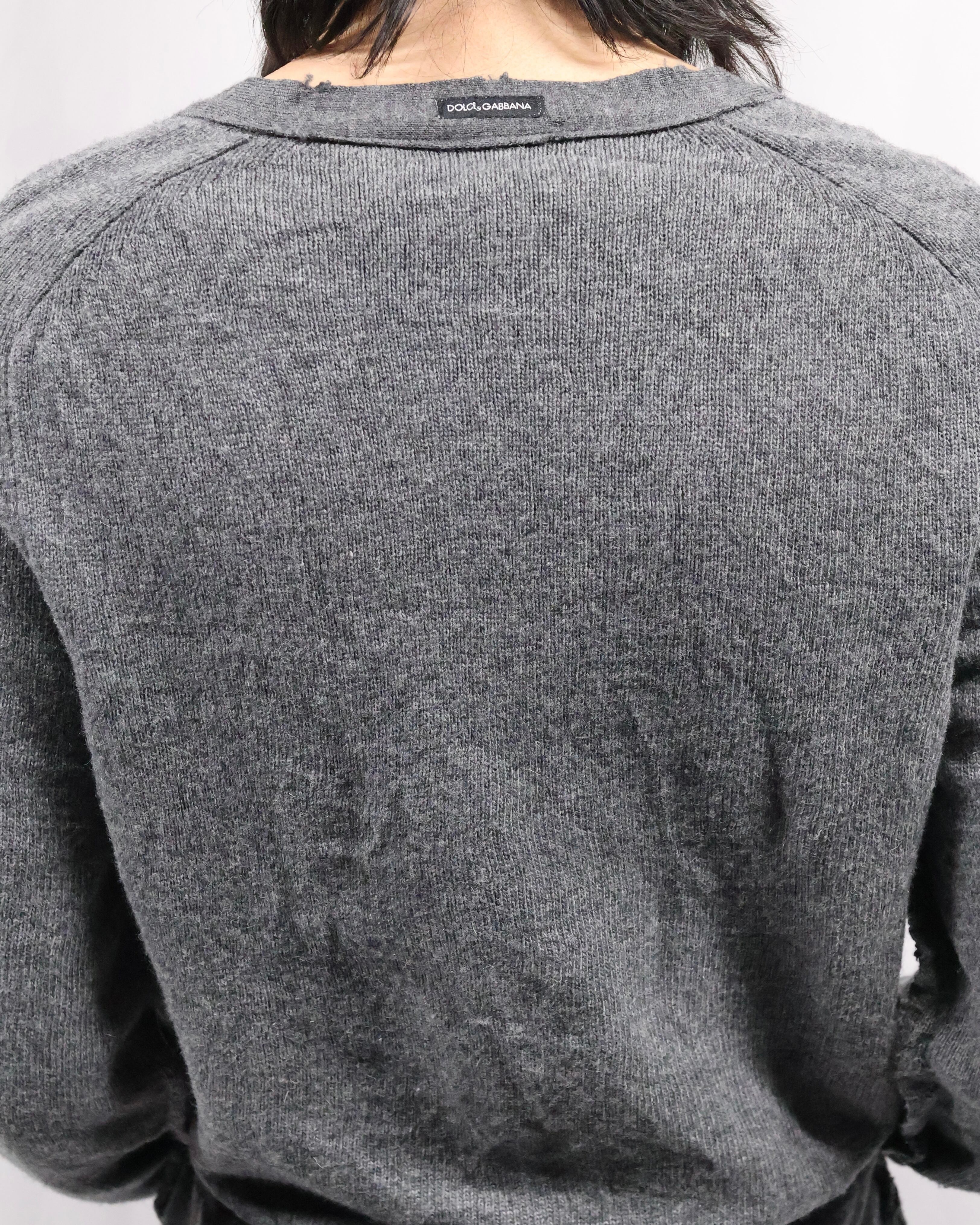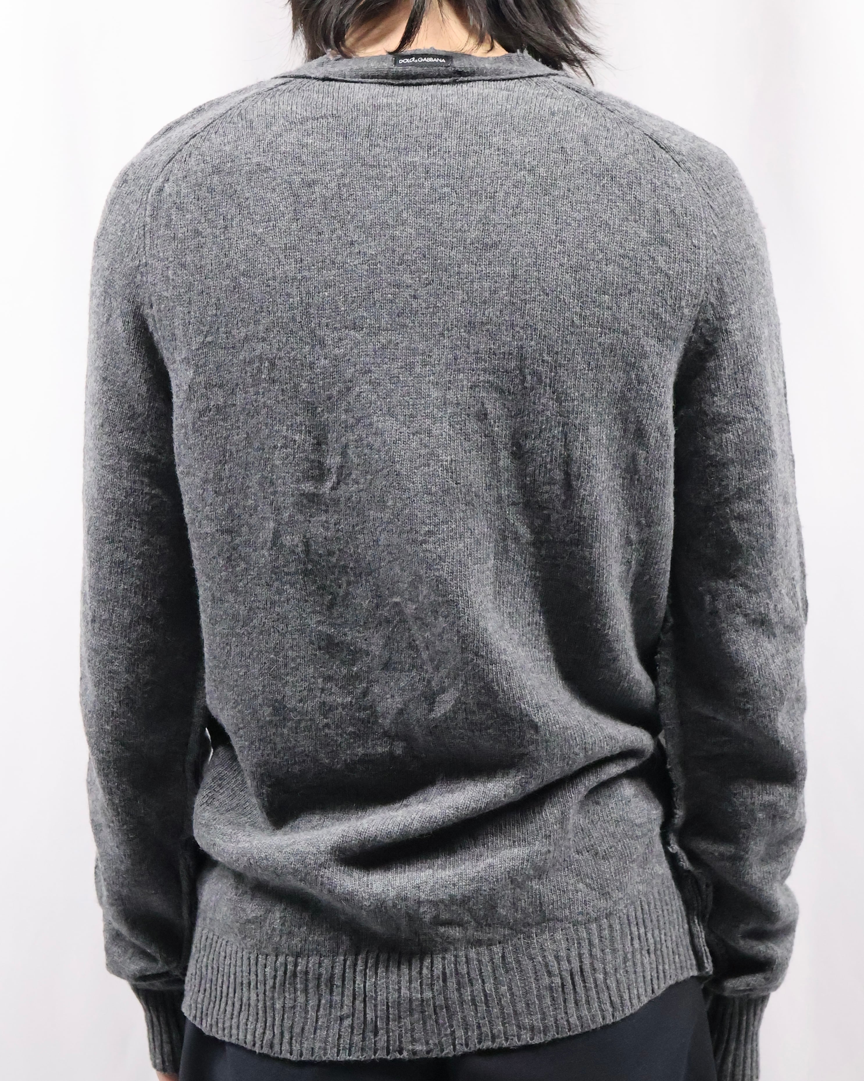【DOLCE&GABBANA】v-neck inside out damage knit