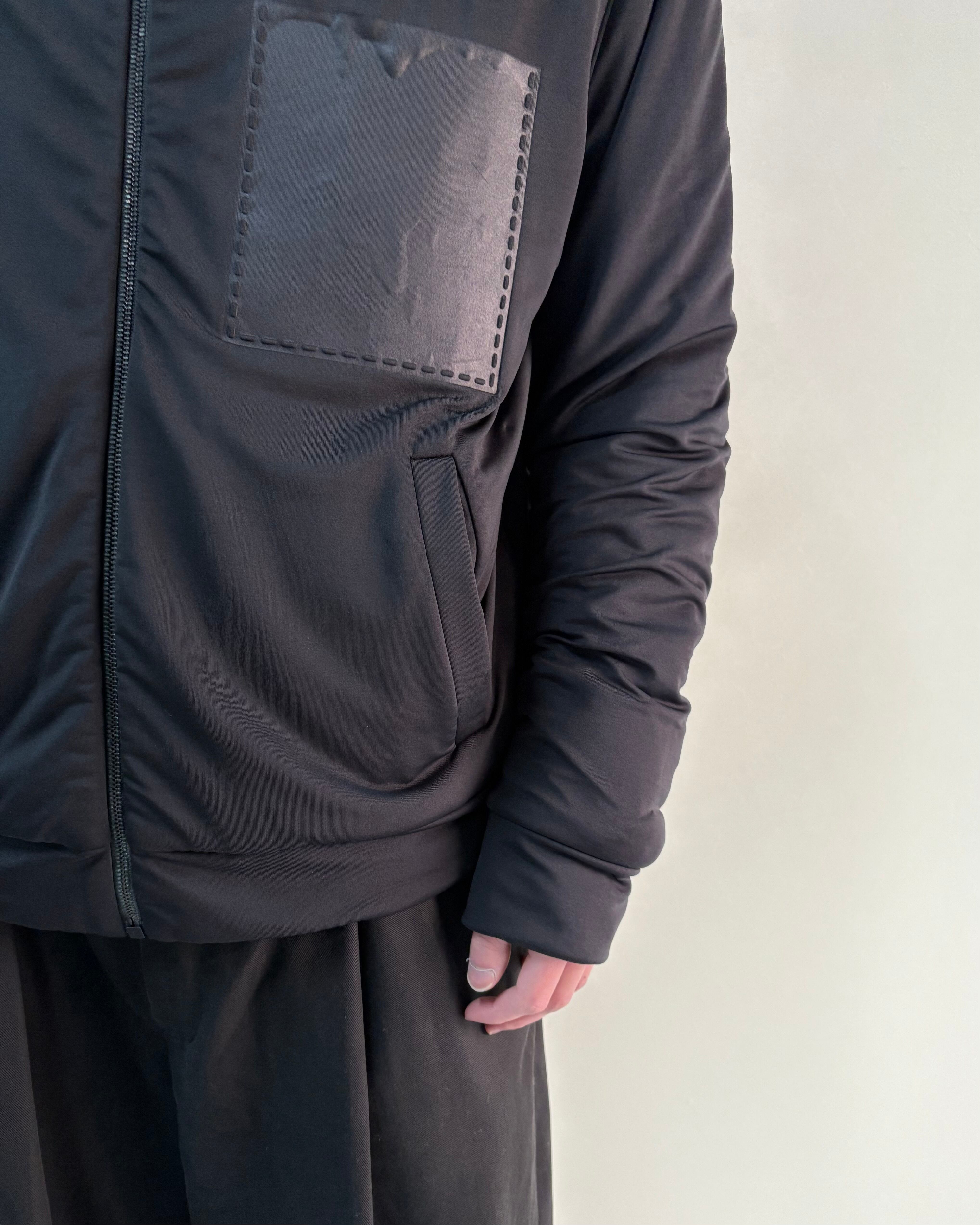 ミニマルなボディに存在感のあるパッチを配したデザインが印象的な一着